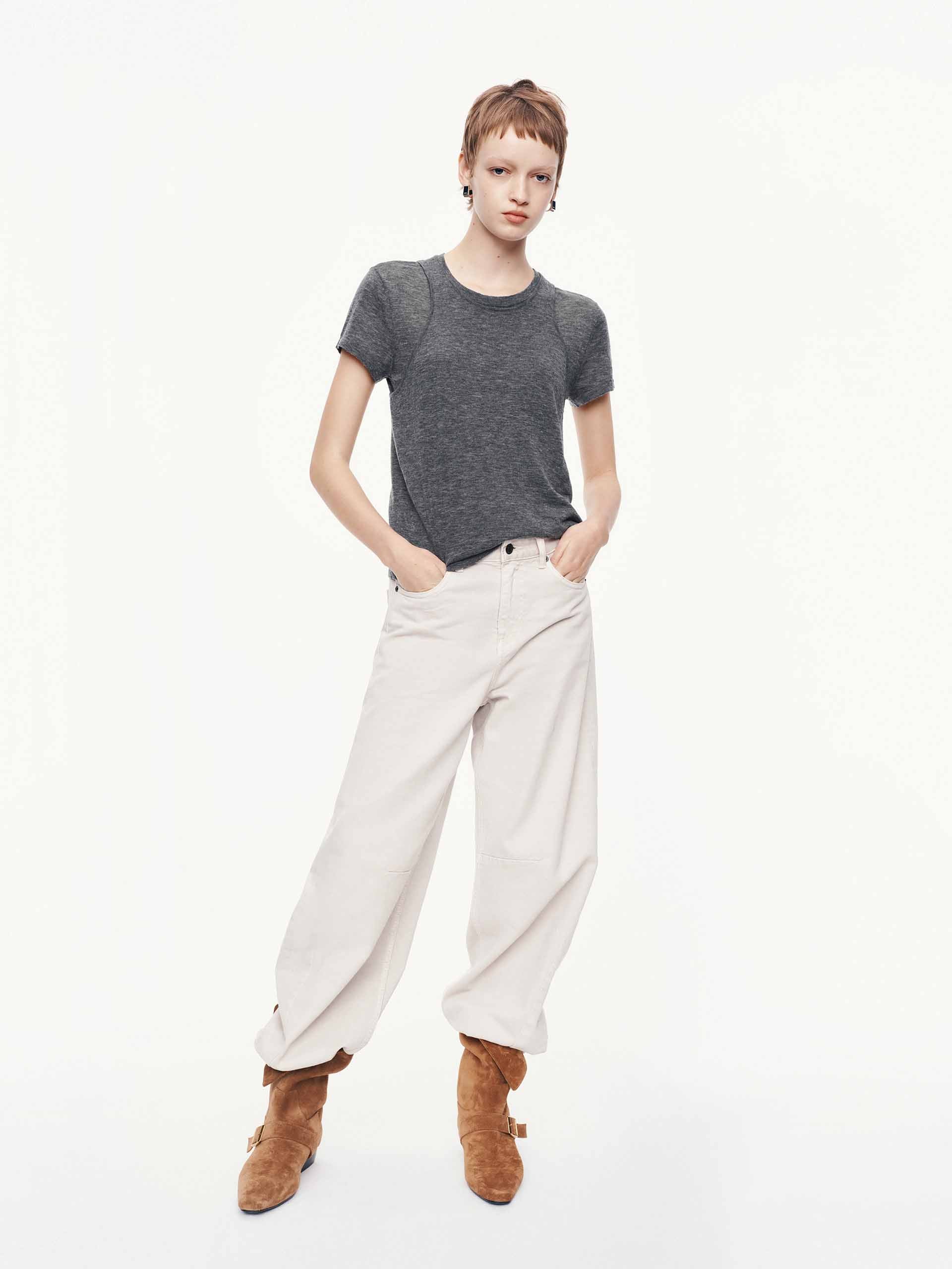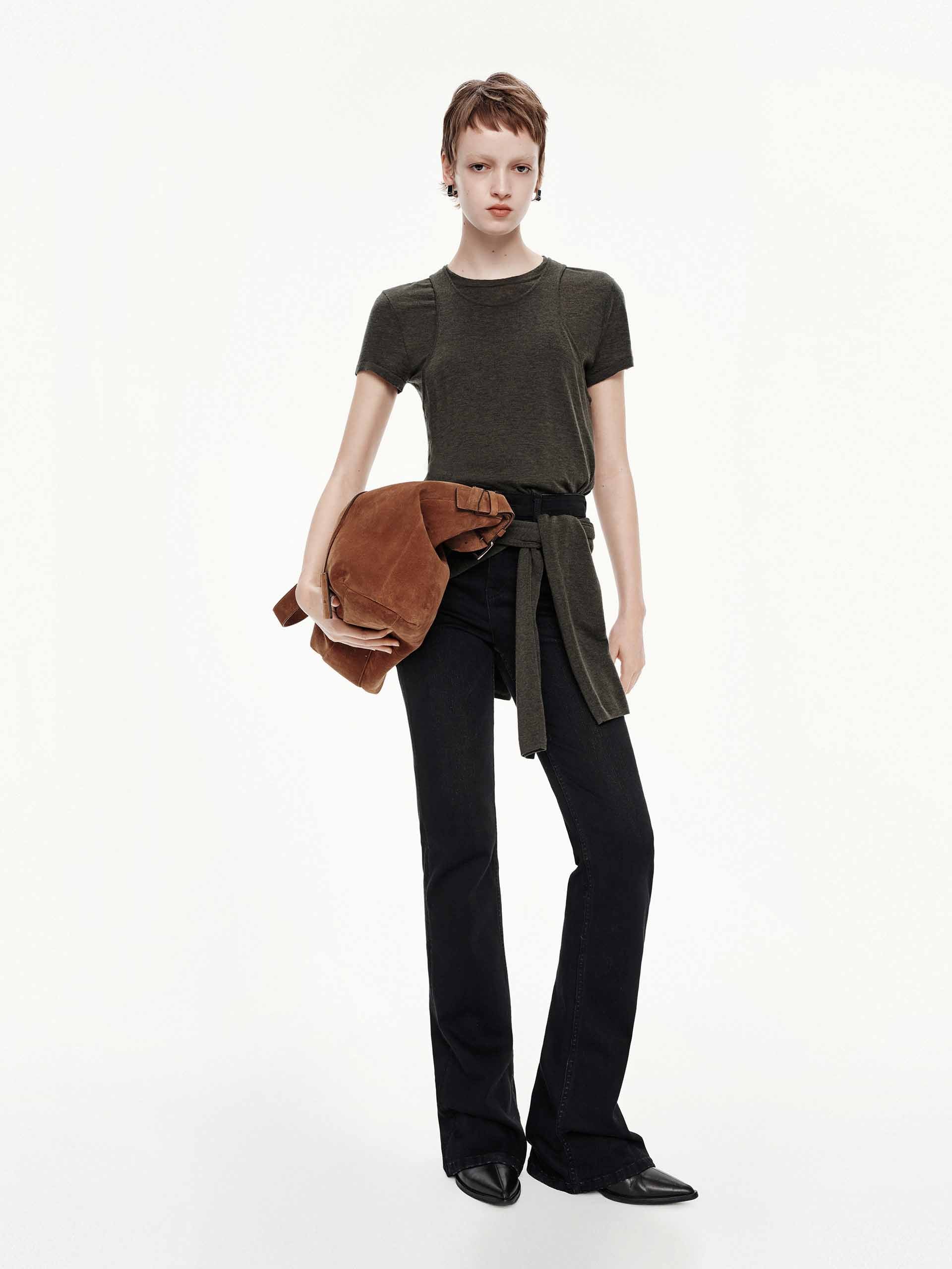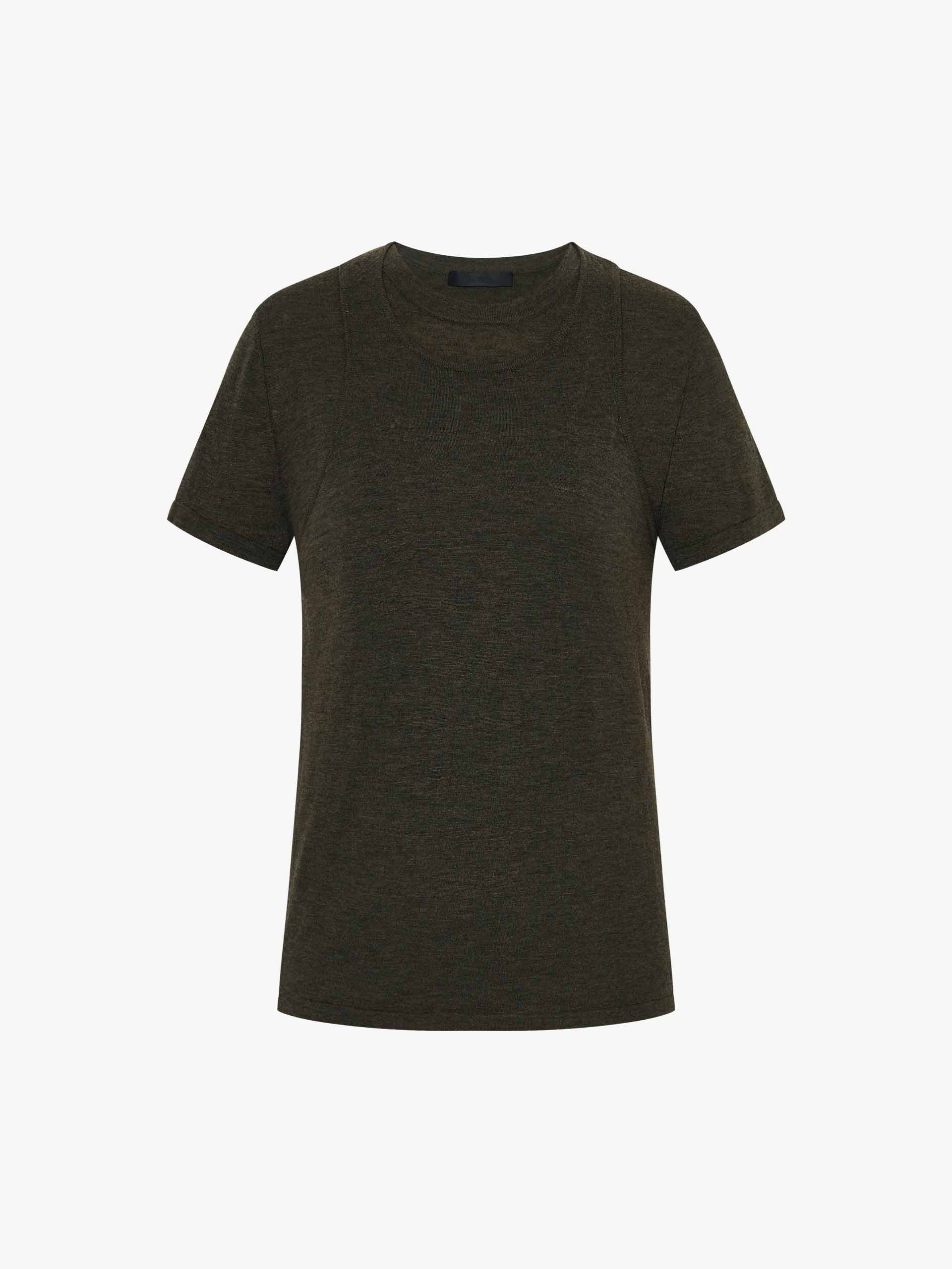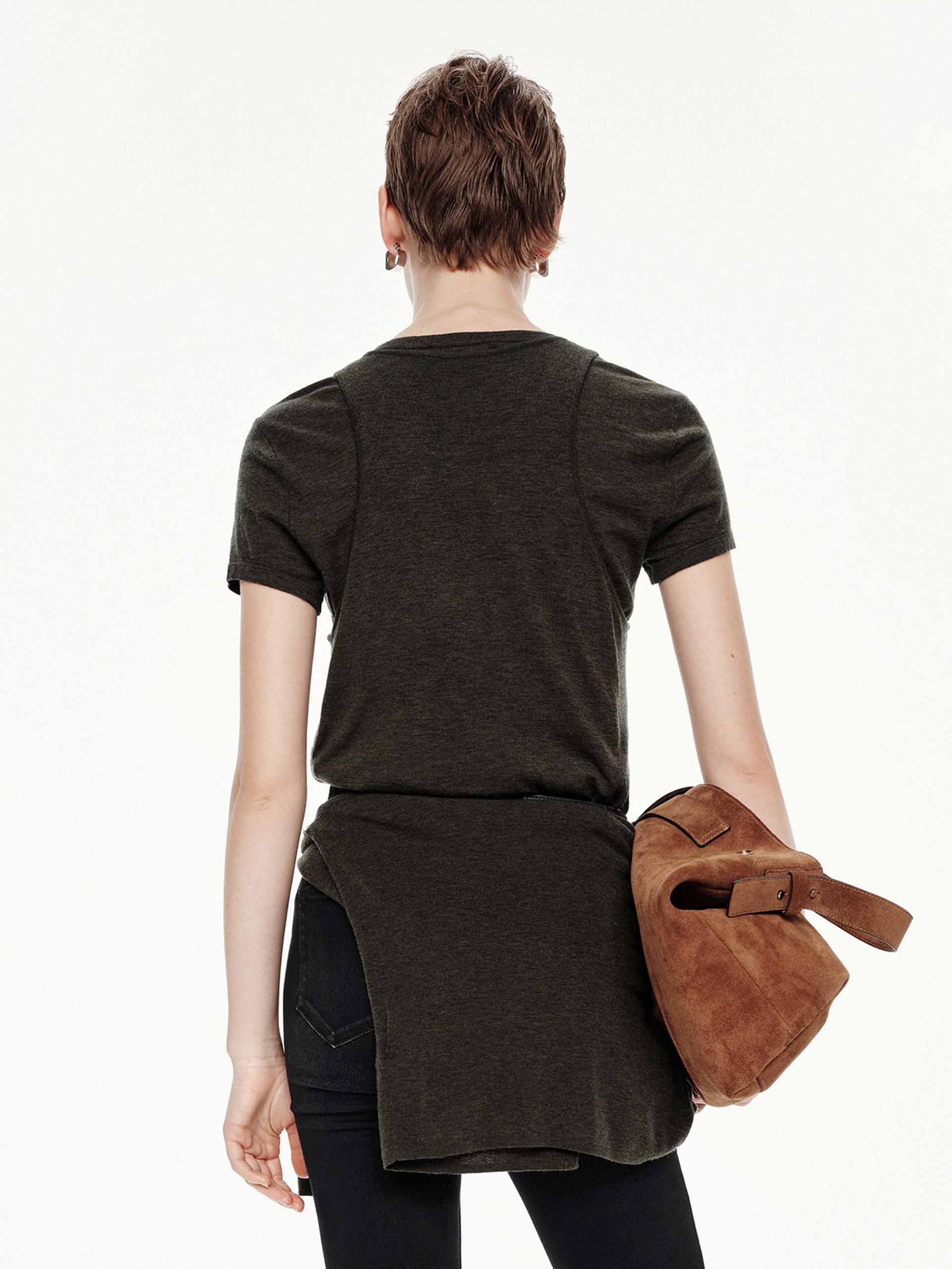 Experience timeless sophistication with this knitted top, crafted from 100% premium wool for exceptional softness and breathable comfort. The slim-fit silhouette flatters the figure with understated elegance, while the classic round neck and short sleeves offer versatile, seasonless appeal. Designed as a stylish layered set, it pairs perfectly with its matching tank for added coverage and dimension.
