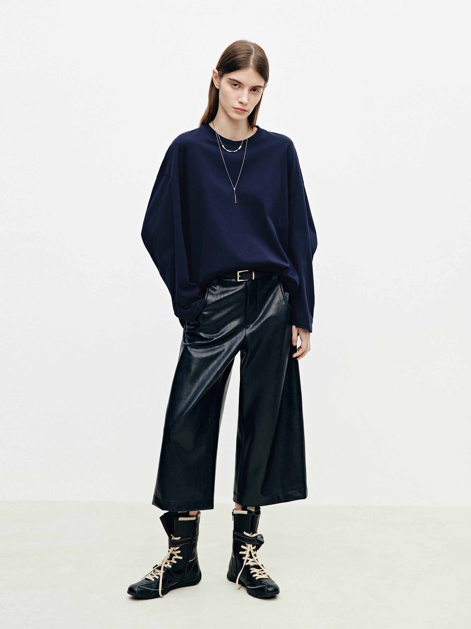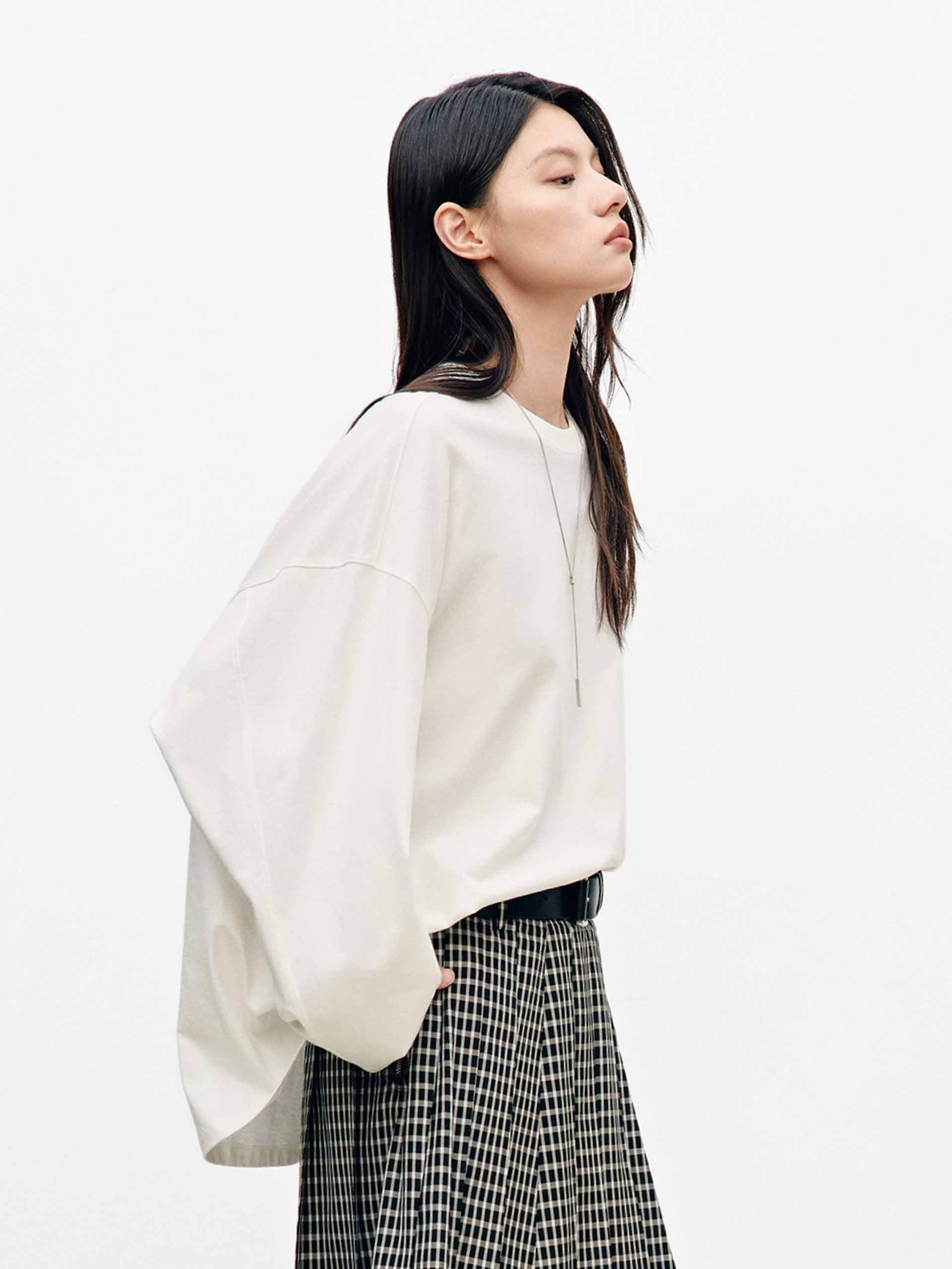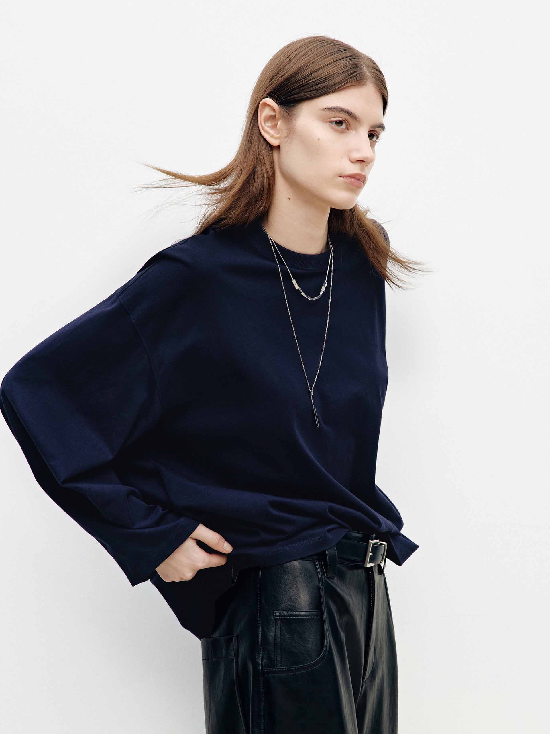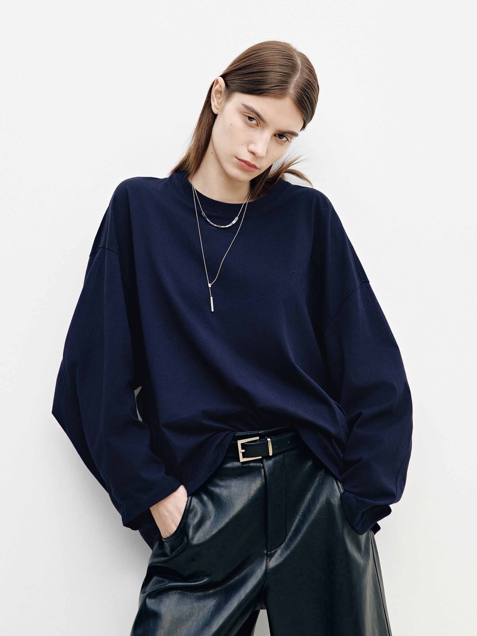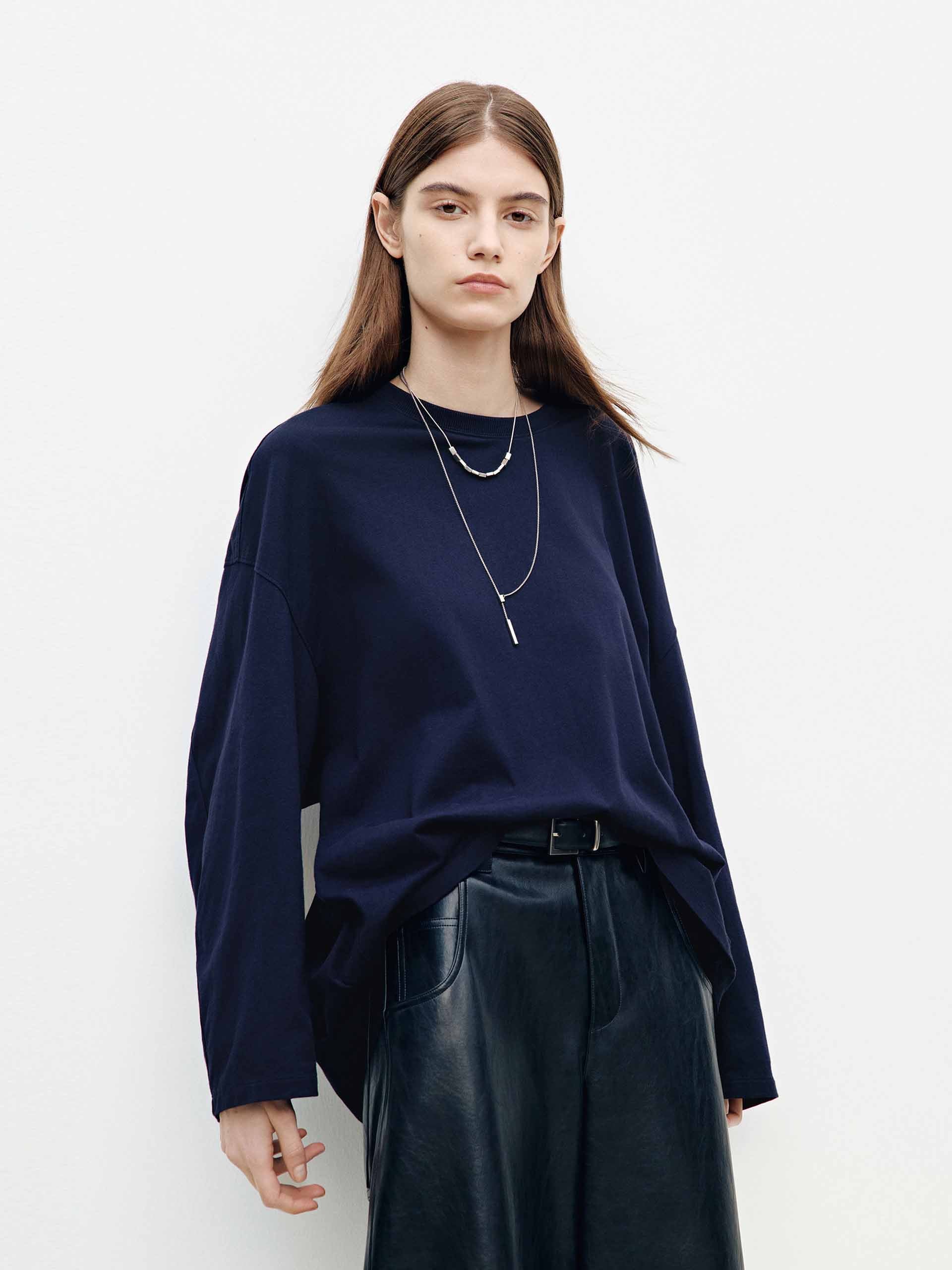 - Round neck and long sleeves