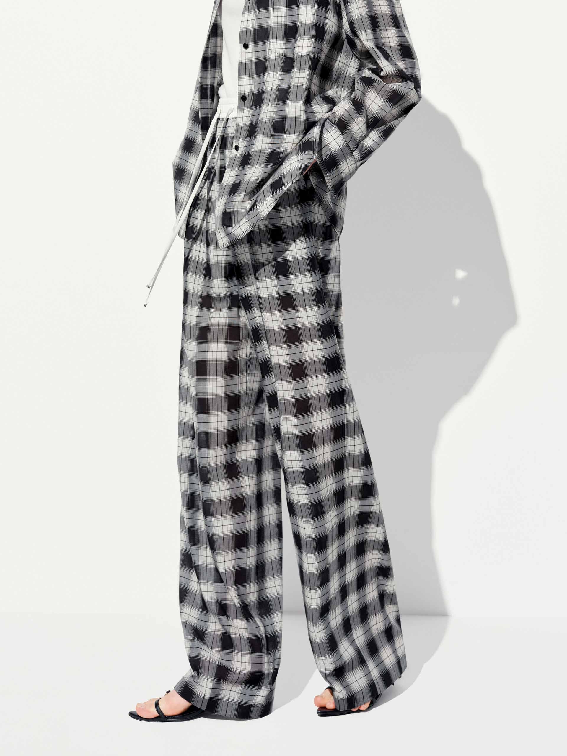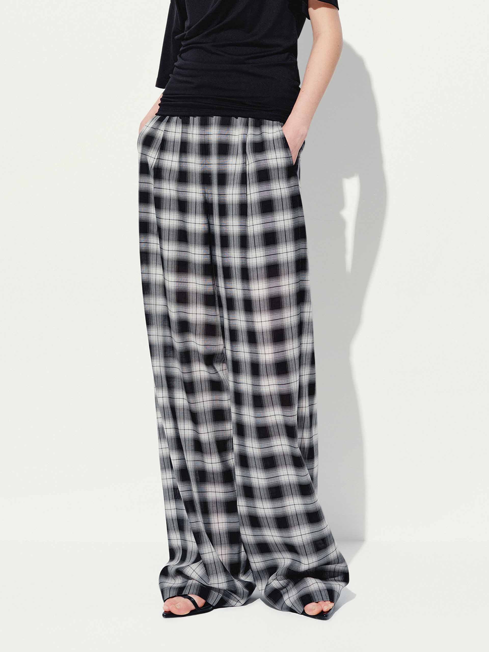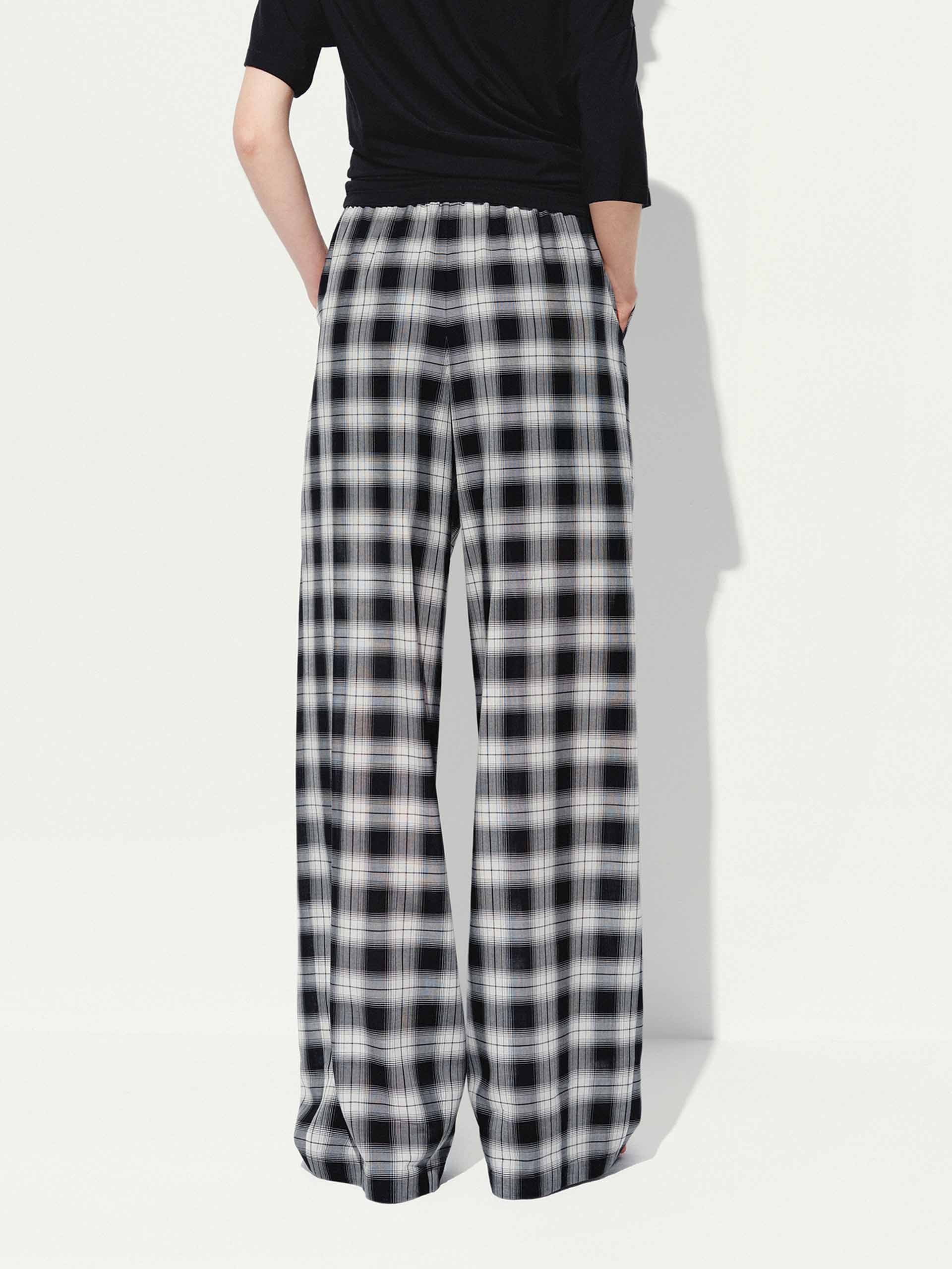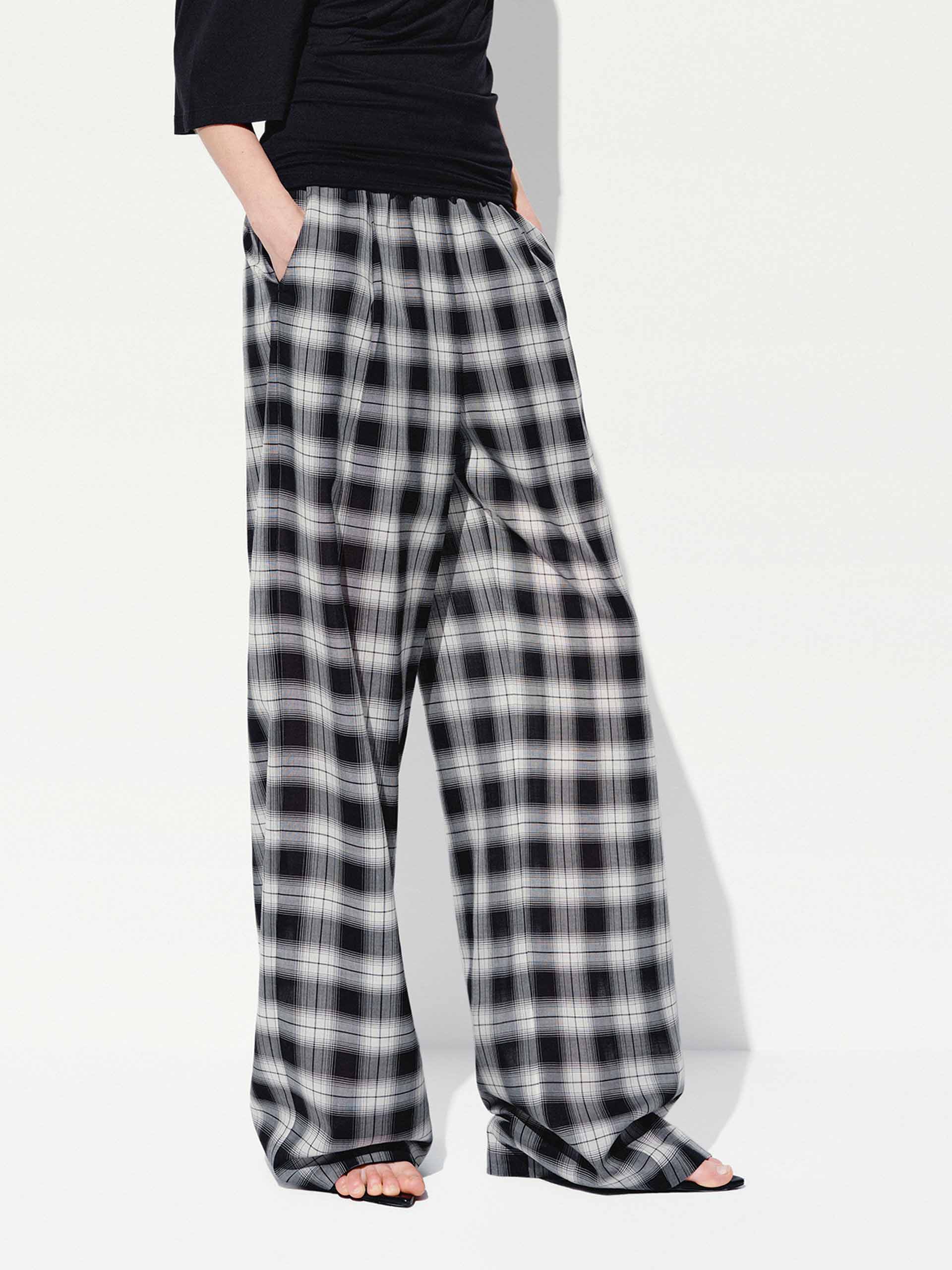 Effortlessly smart and endlessly versatile, these trousers blend tailored polish with laid-back comfort. The timeless checked pattern adds a touch of heritage-inspired charm, while the elasticated waistband with drawstring detail ensures an adjustable, easygoing fit. Practical side pockets offer both functionality and clean lines, making them ideal for all-day wear.