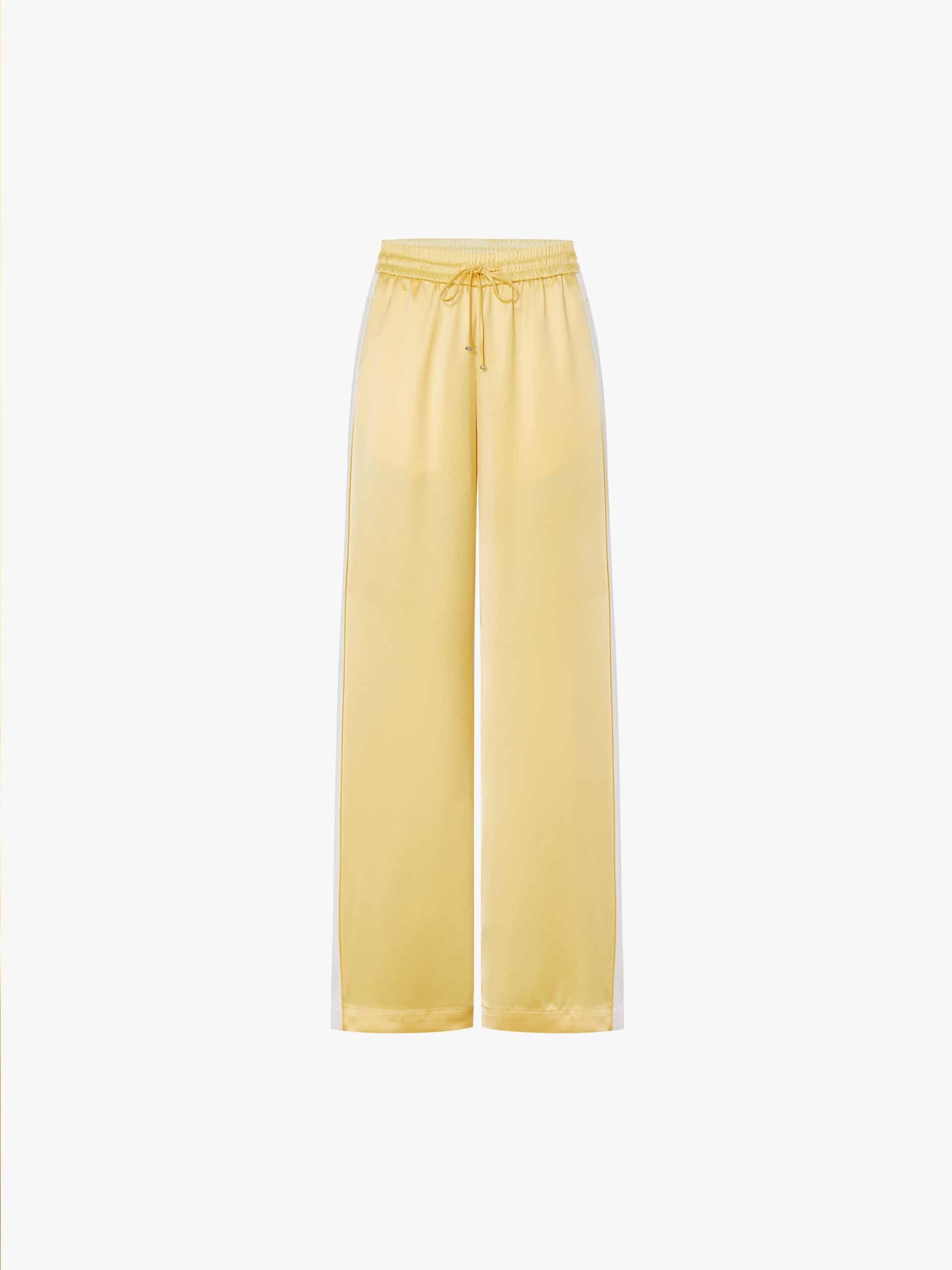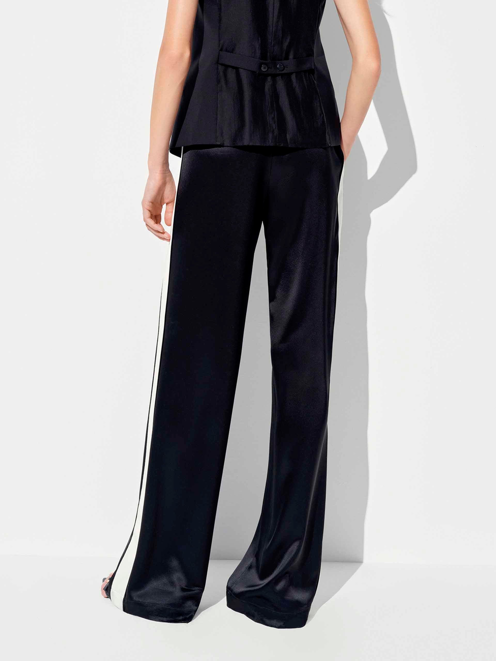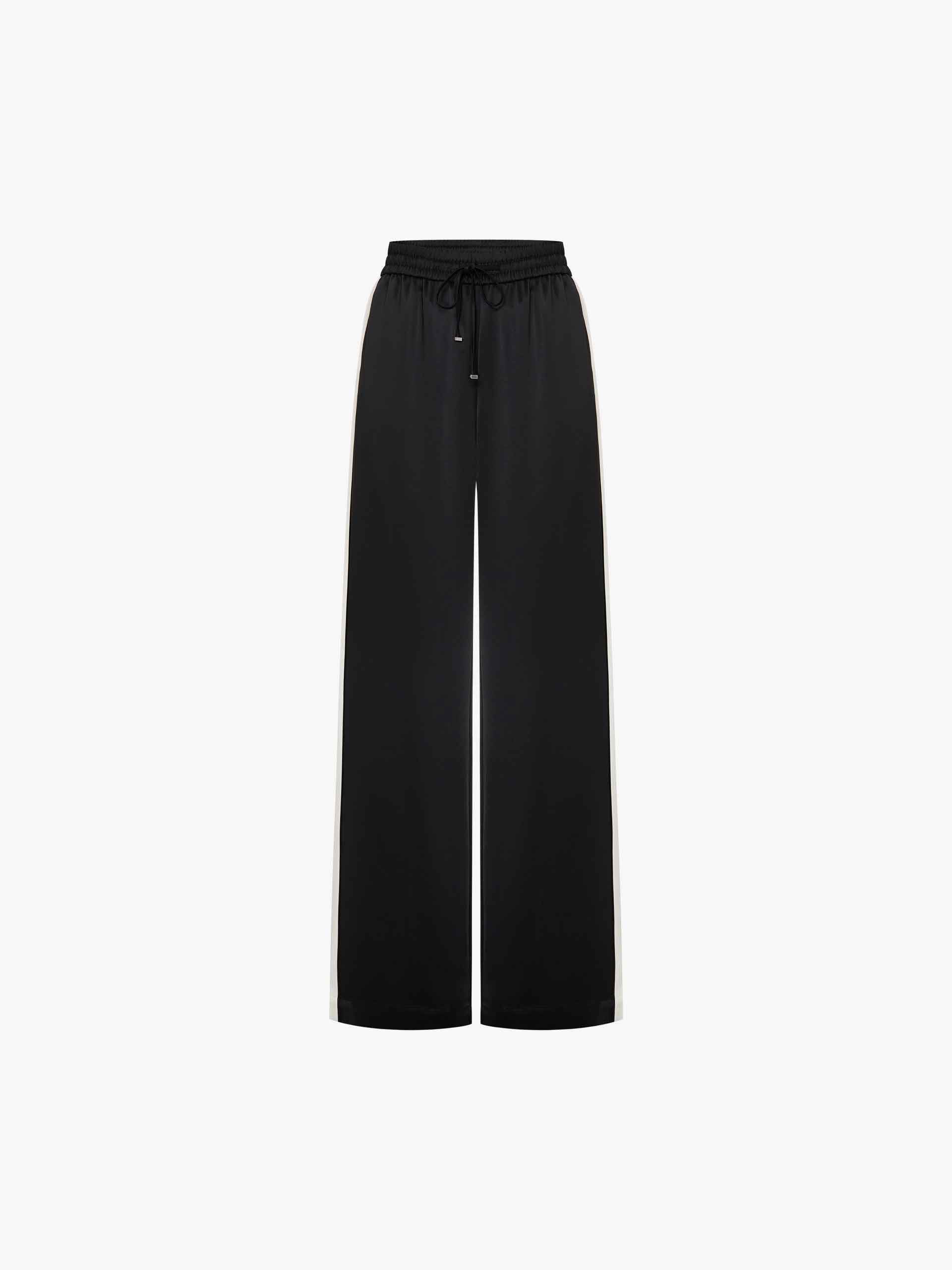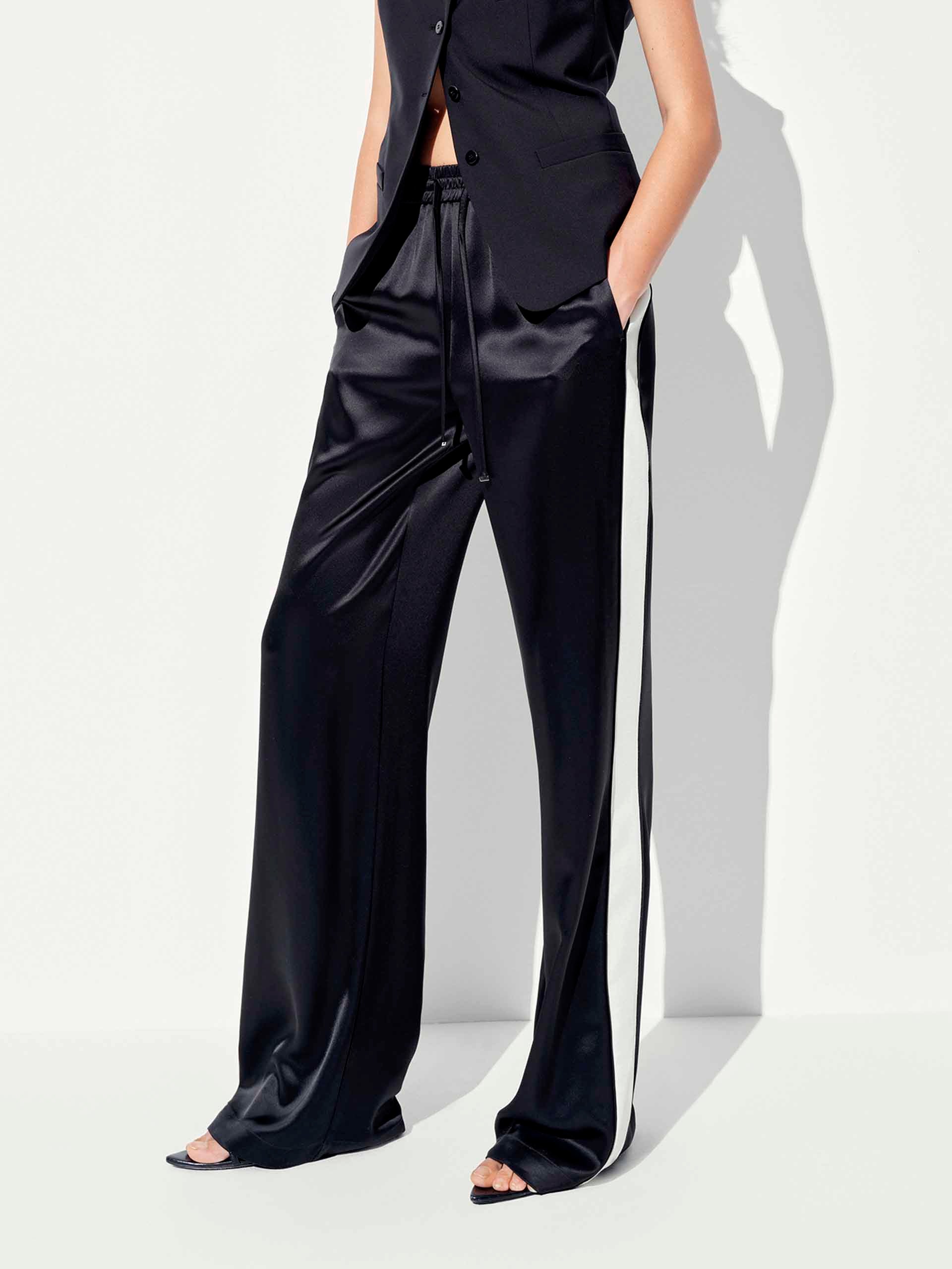 Elevate your off-duty style with these luxe-feeling straight-leg pants that marry athletic edge with downtown polish. The crisp white contrast piping highlights the streamlined silhouette, while the elastic waist with adjustable drawcord ensures all-day comfort.