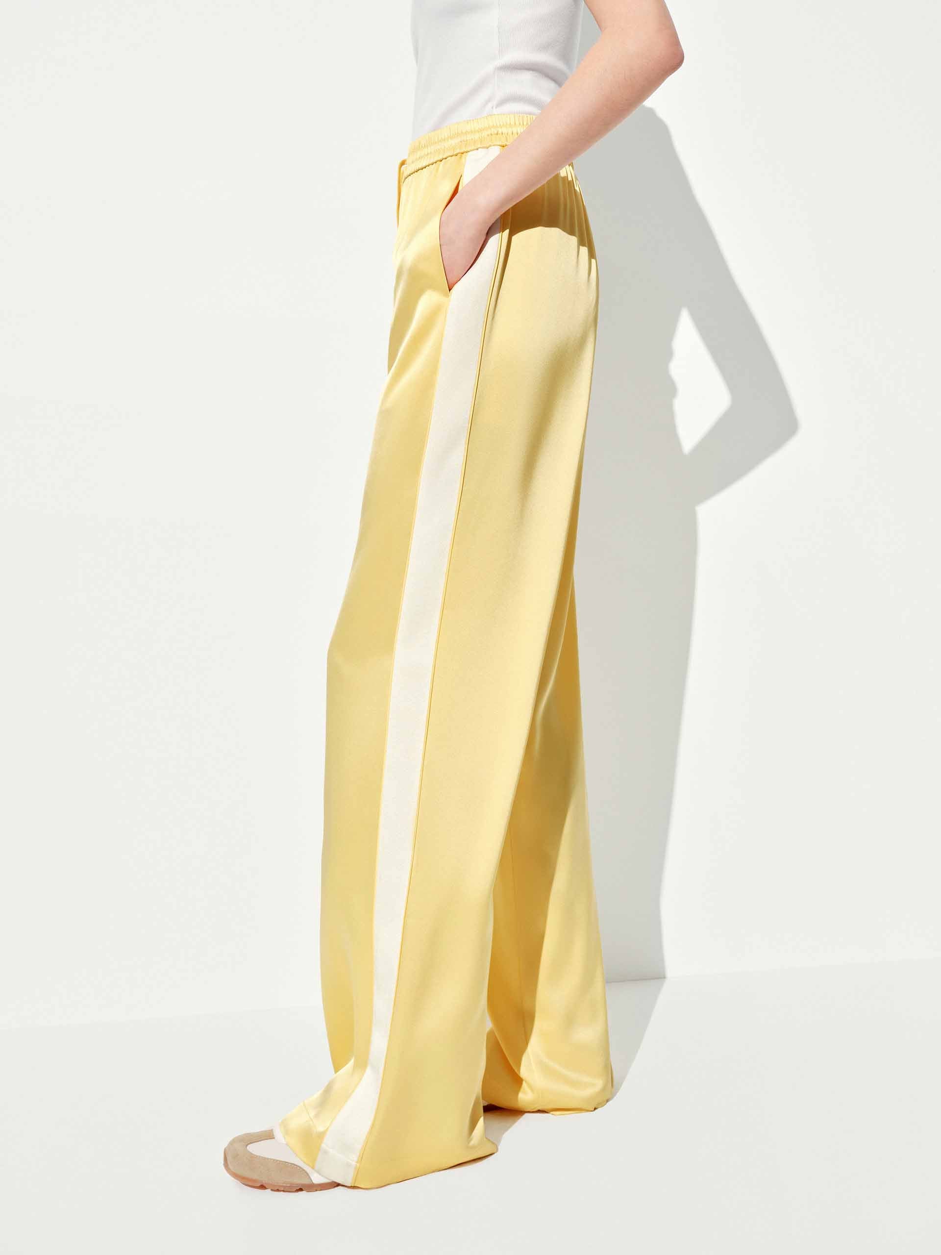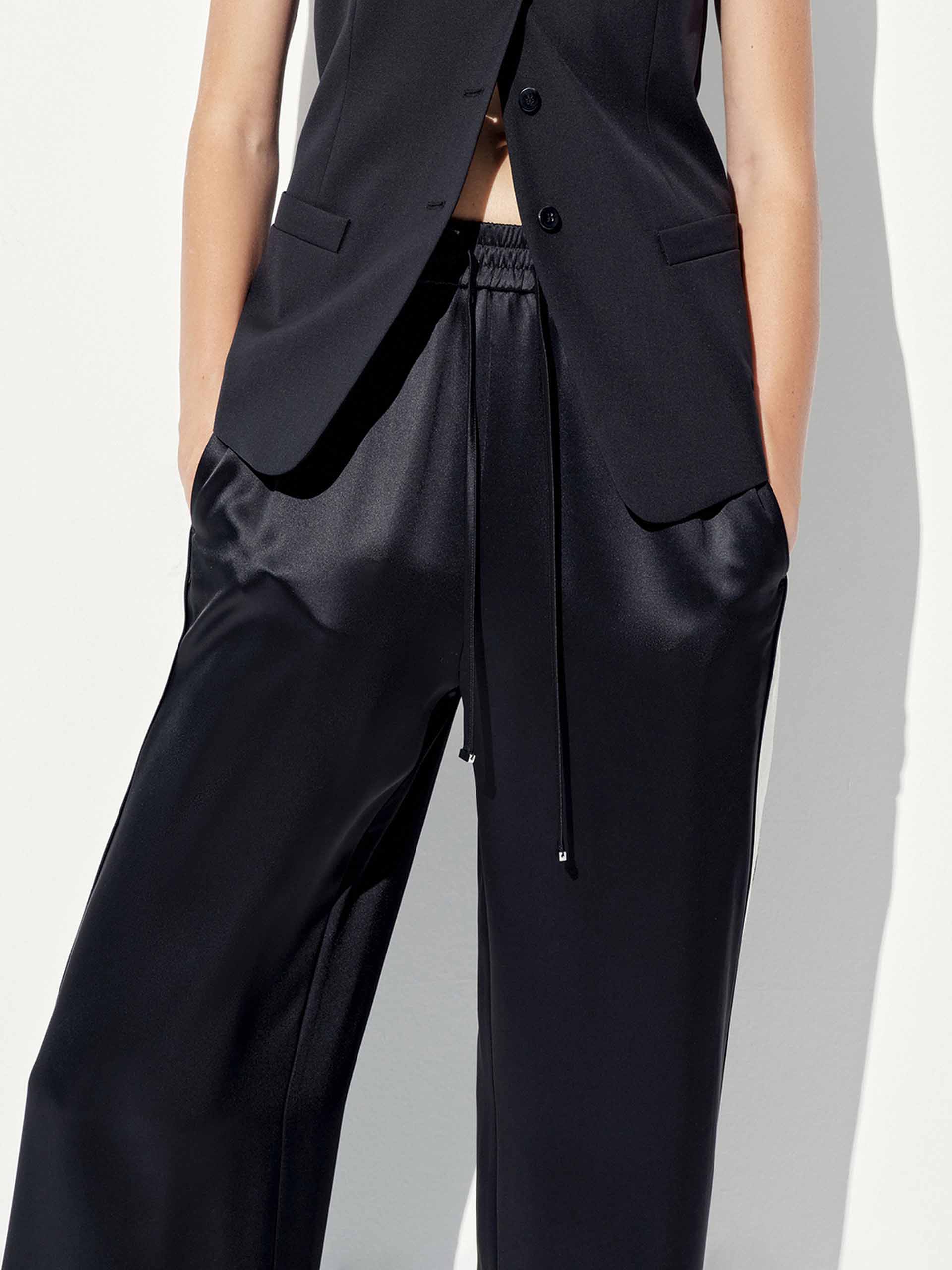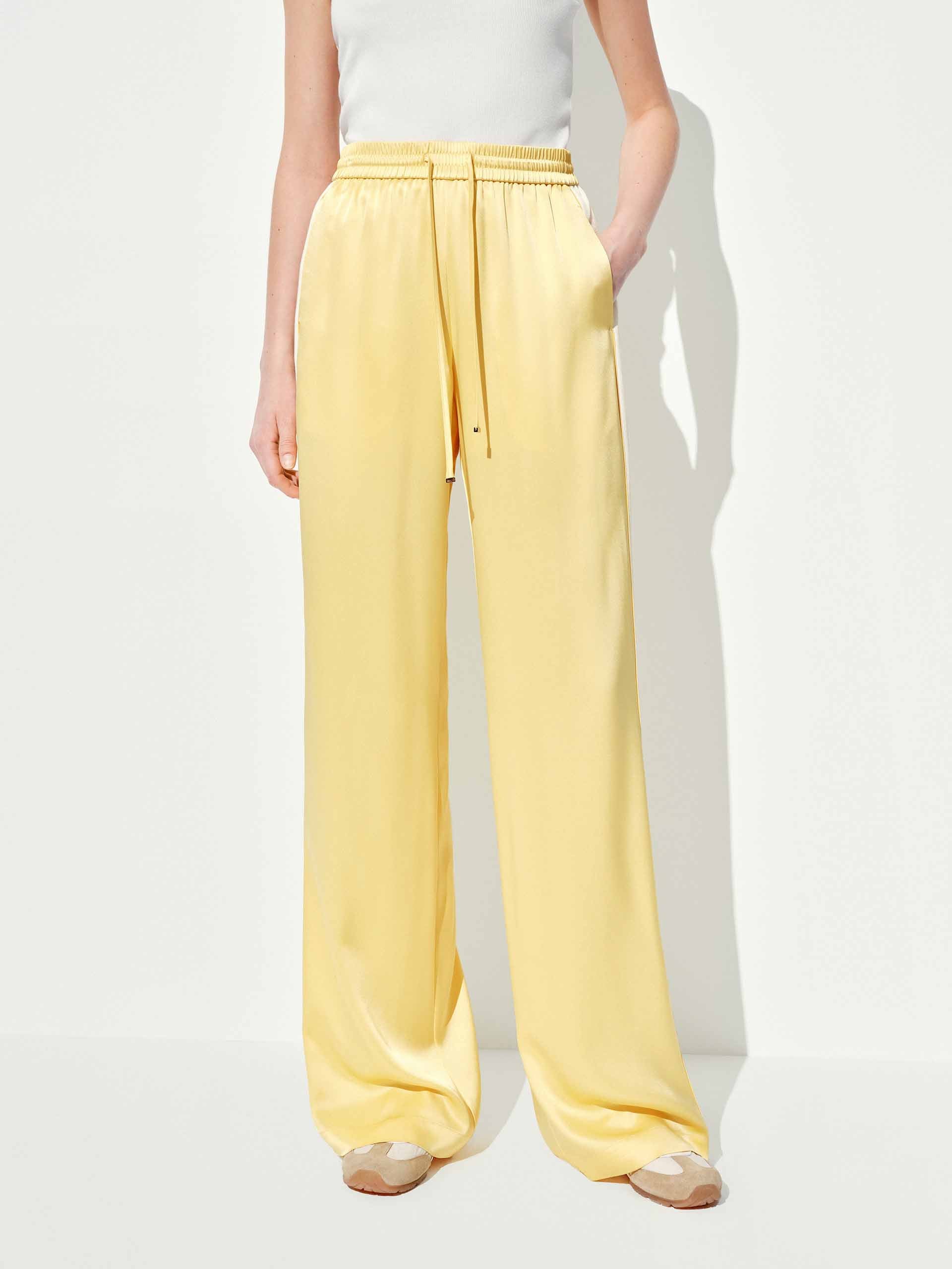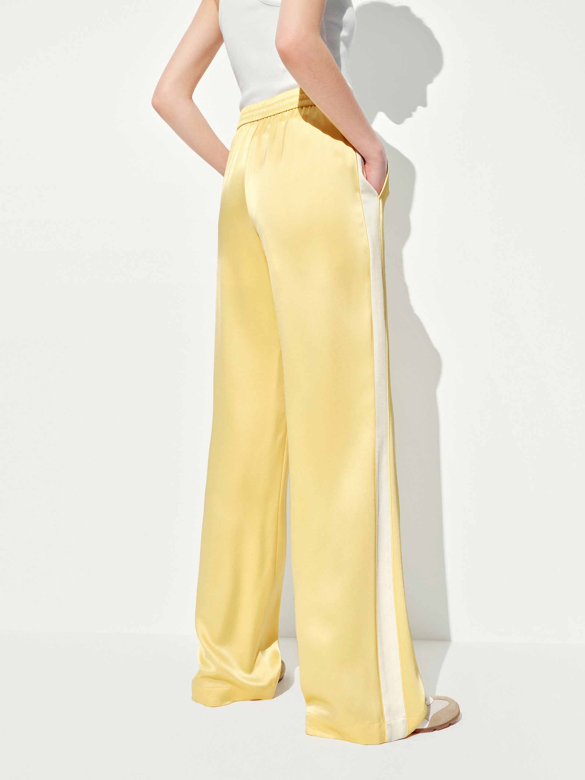 Elevate your off-duty style with these luxe-feeling straight-leg pants that marry athletic edge with downtown polish. The crisp white contrast piping highlights the streamlined silhouette, while the elastic waist with adjustable drawcord ensures all-day comfort.