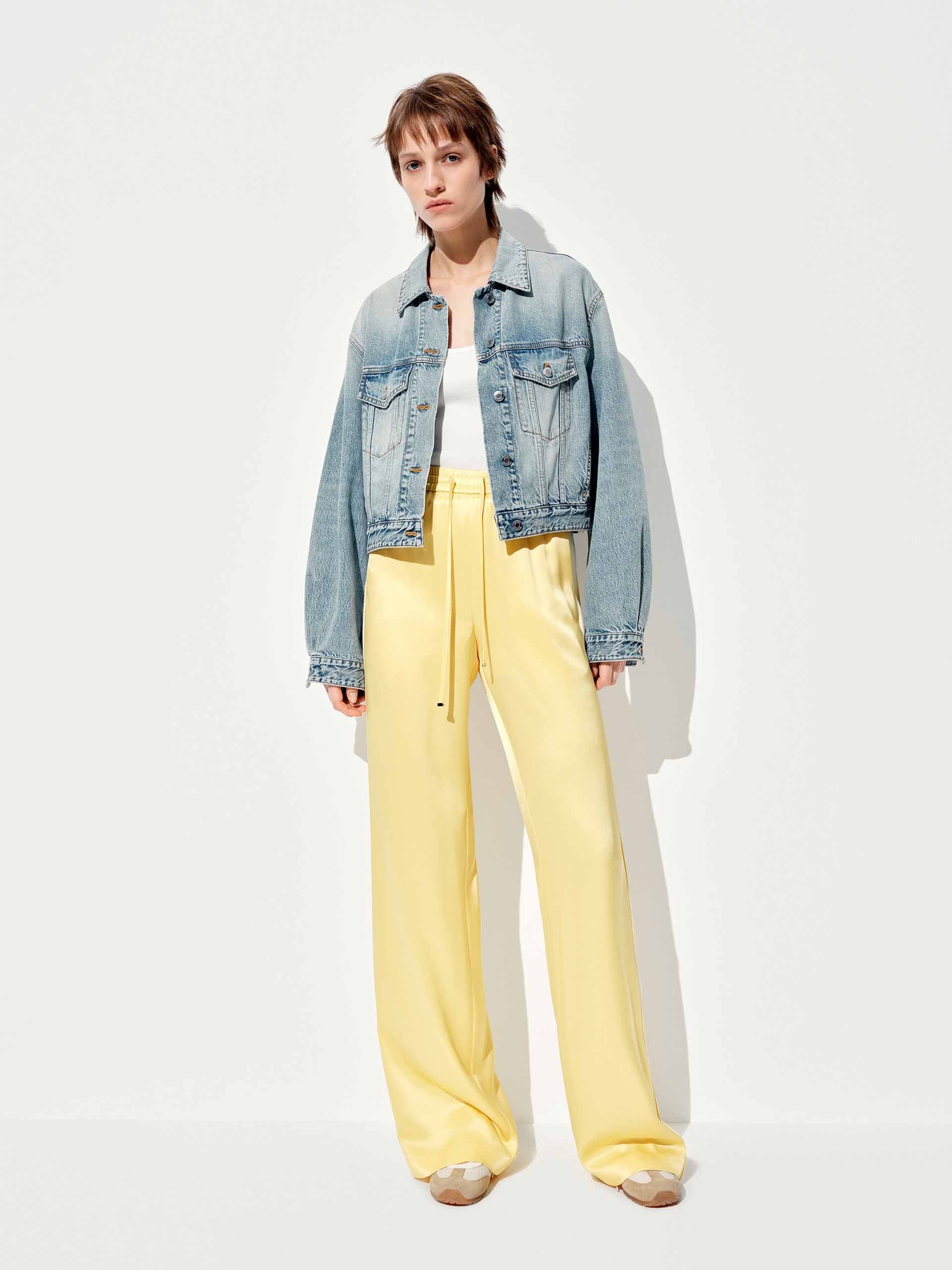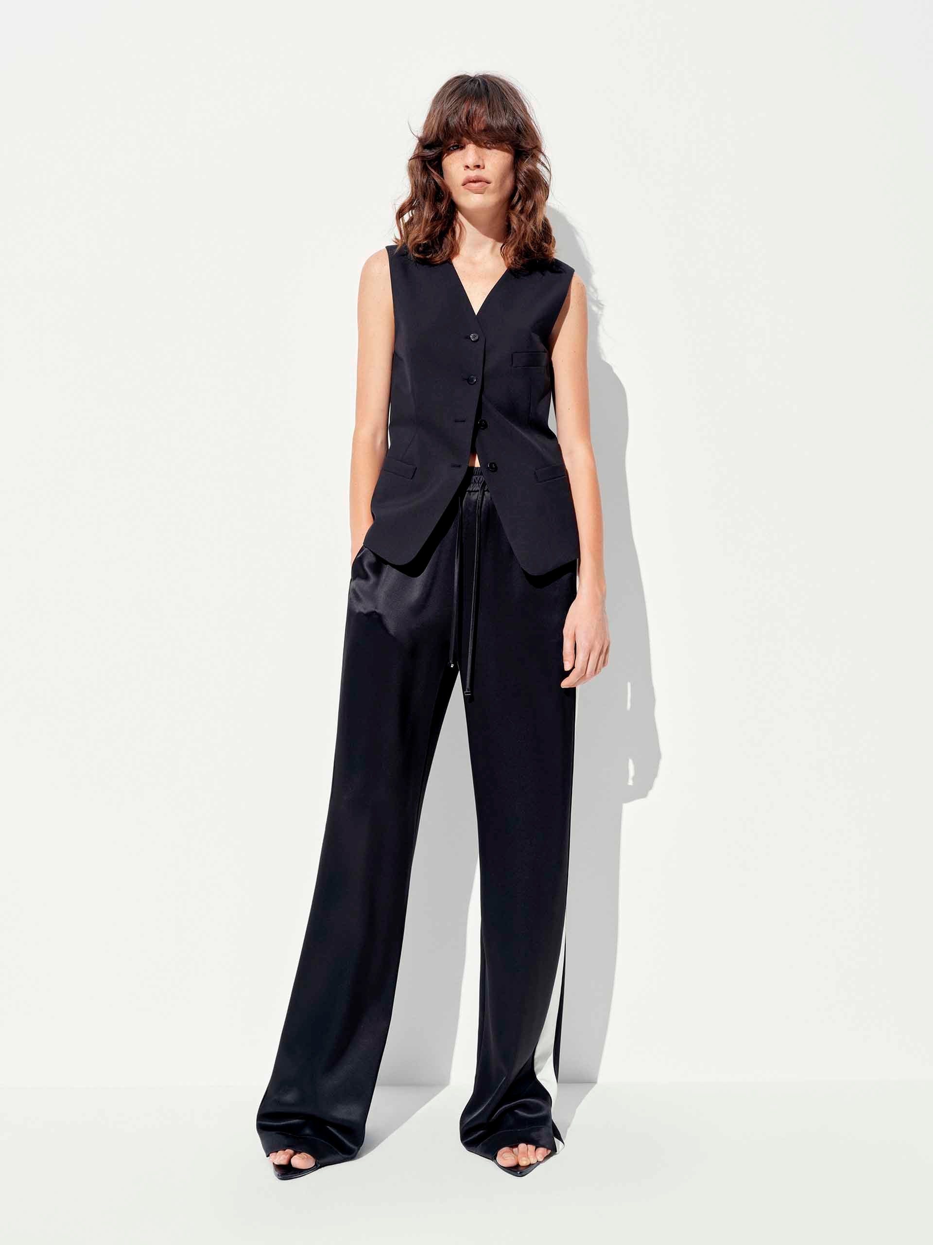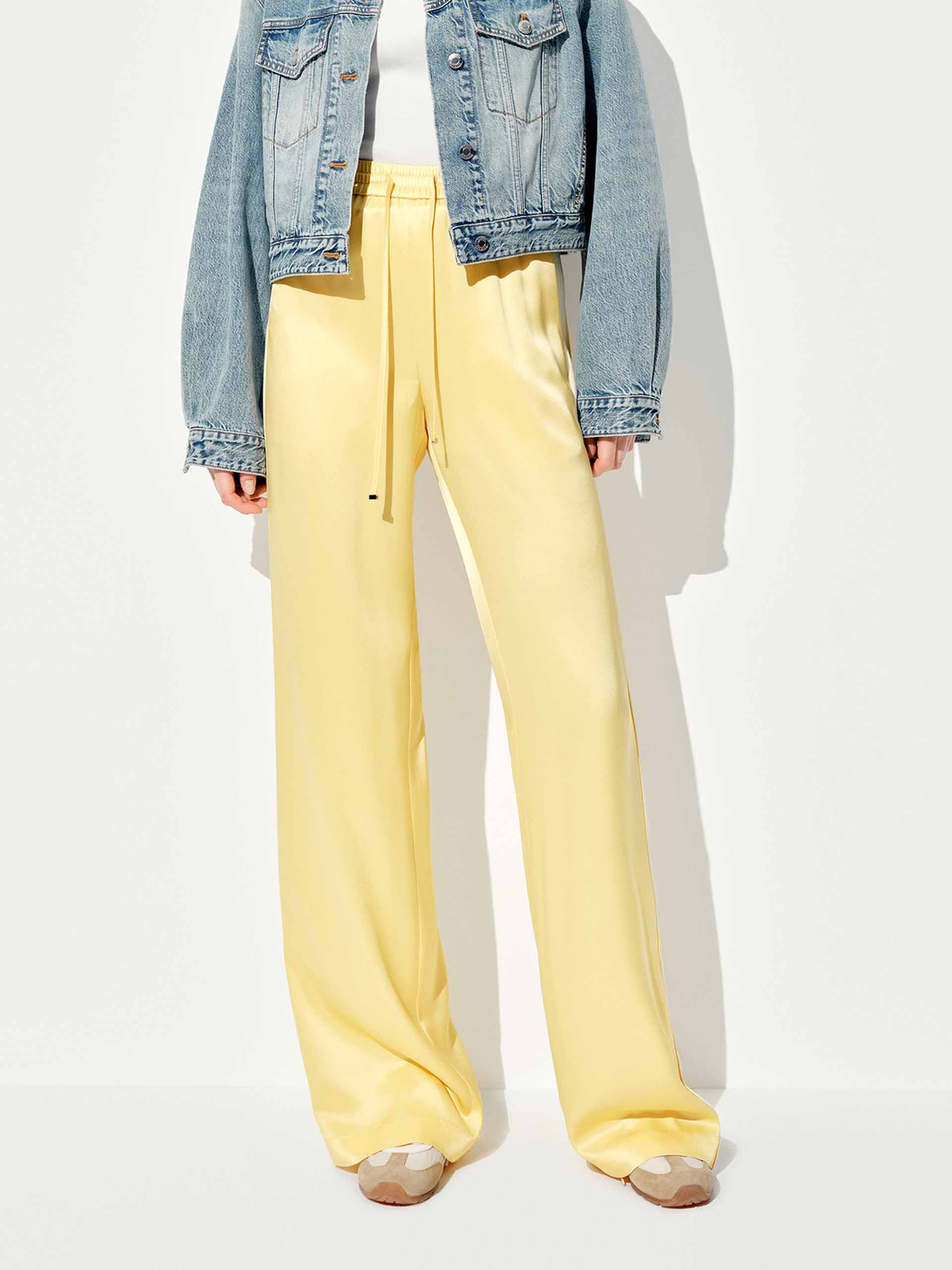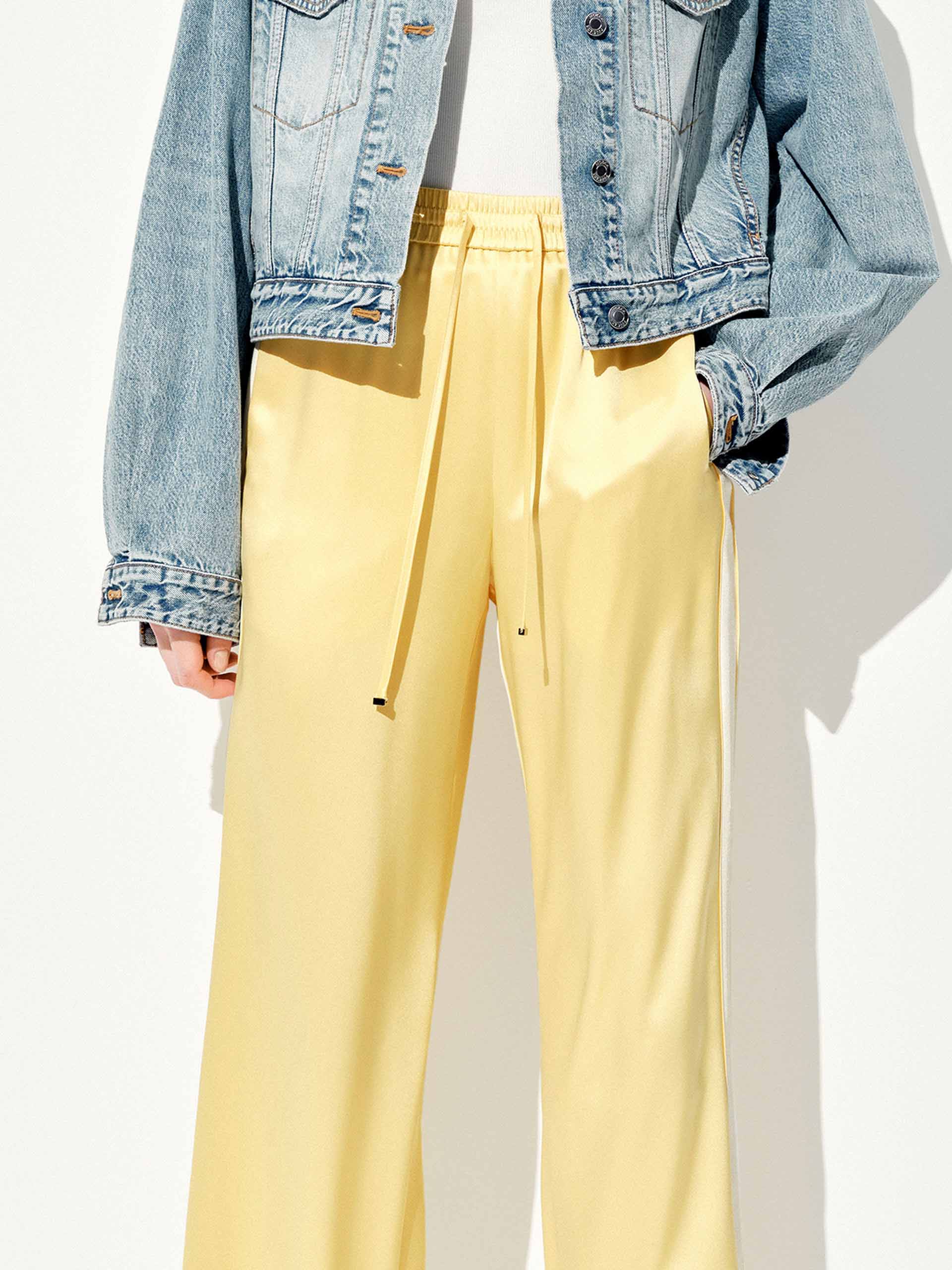 Elevate your off-duty style with these luxe-feeling straight-leg pants that marry athletic edge with downtown polish. The crisp white contrast piping highlights the streamlined silhouette, while the elastic waist with adjustable drawcord ensures all-day comfort.