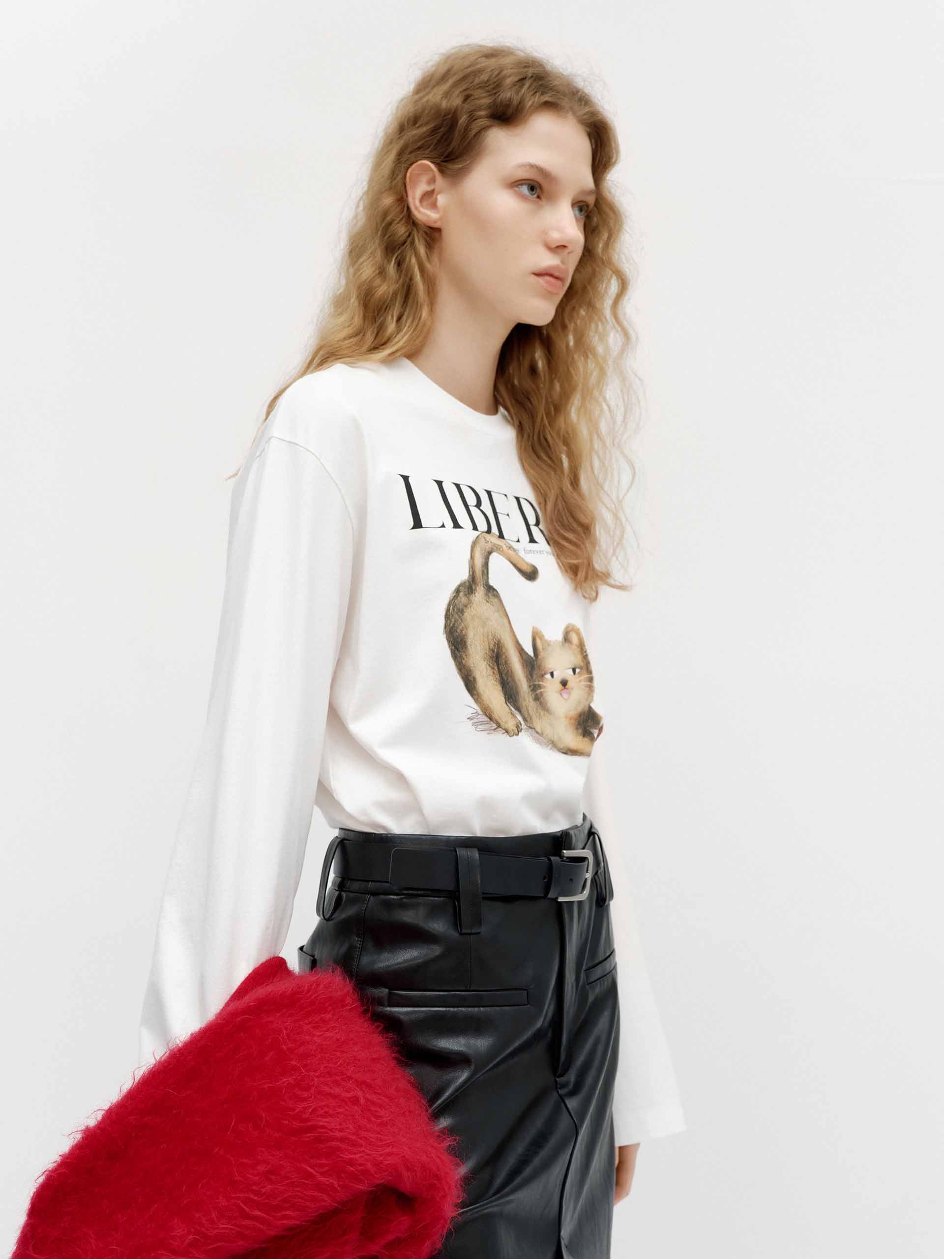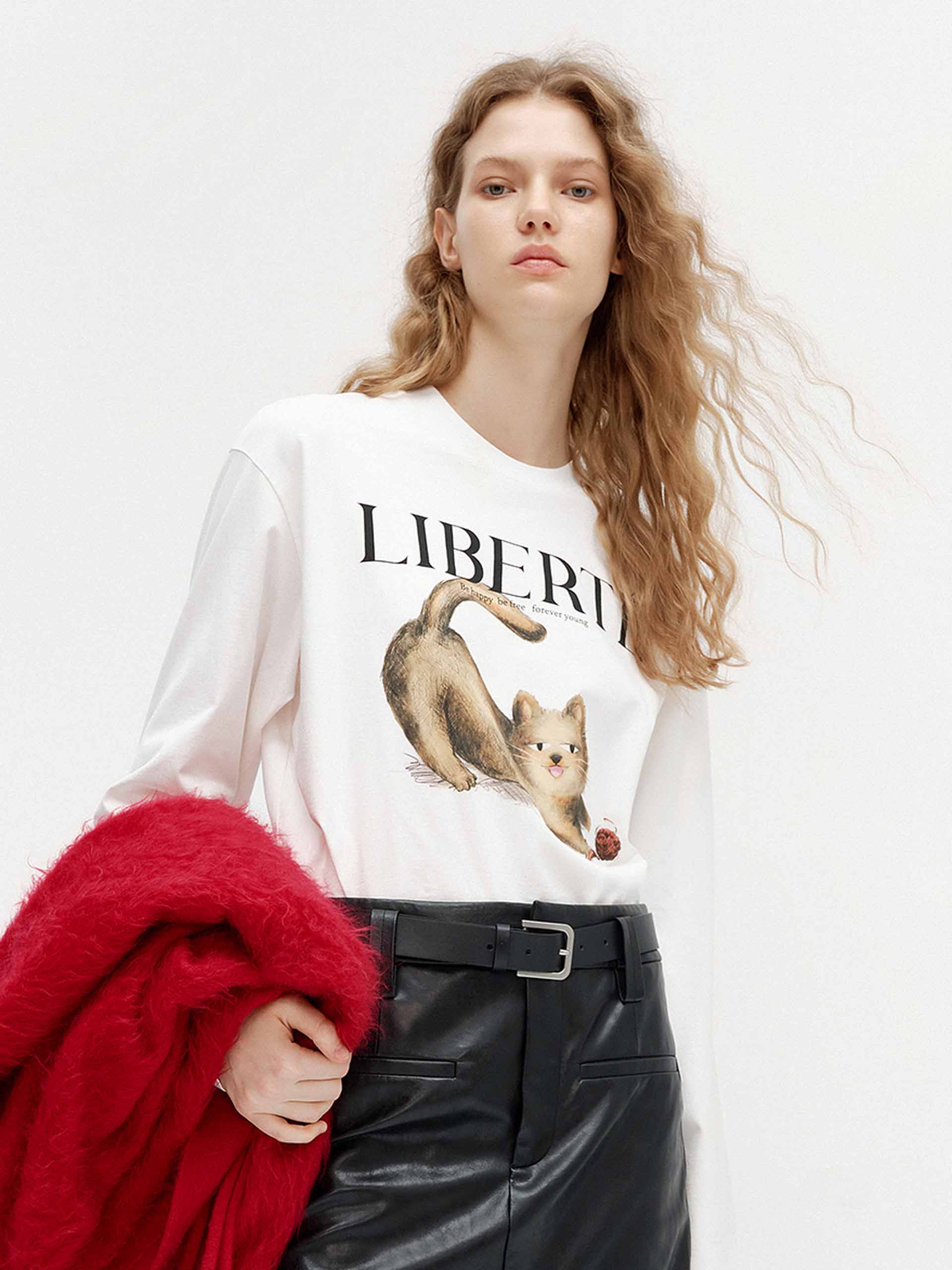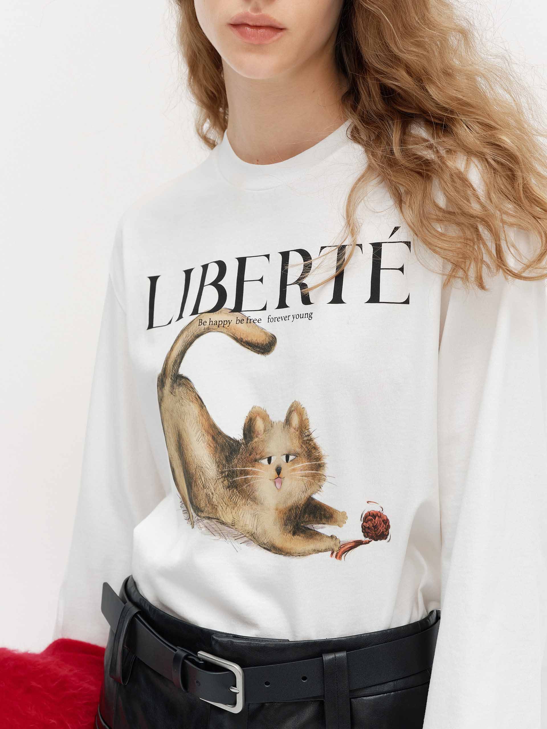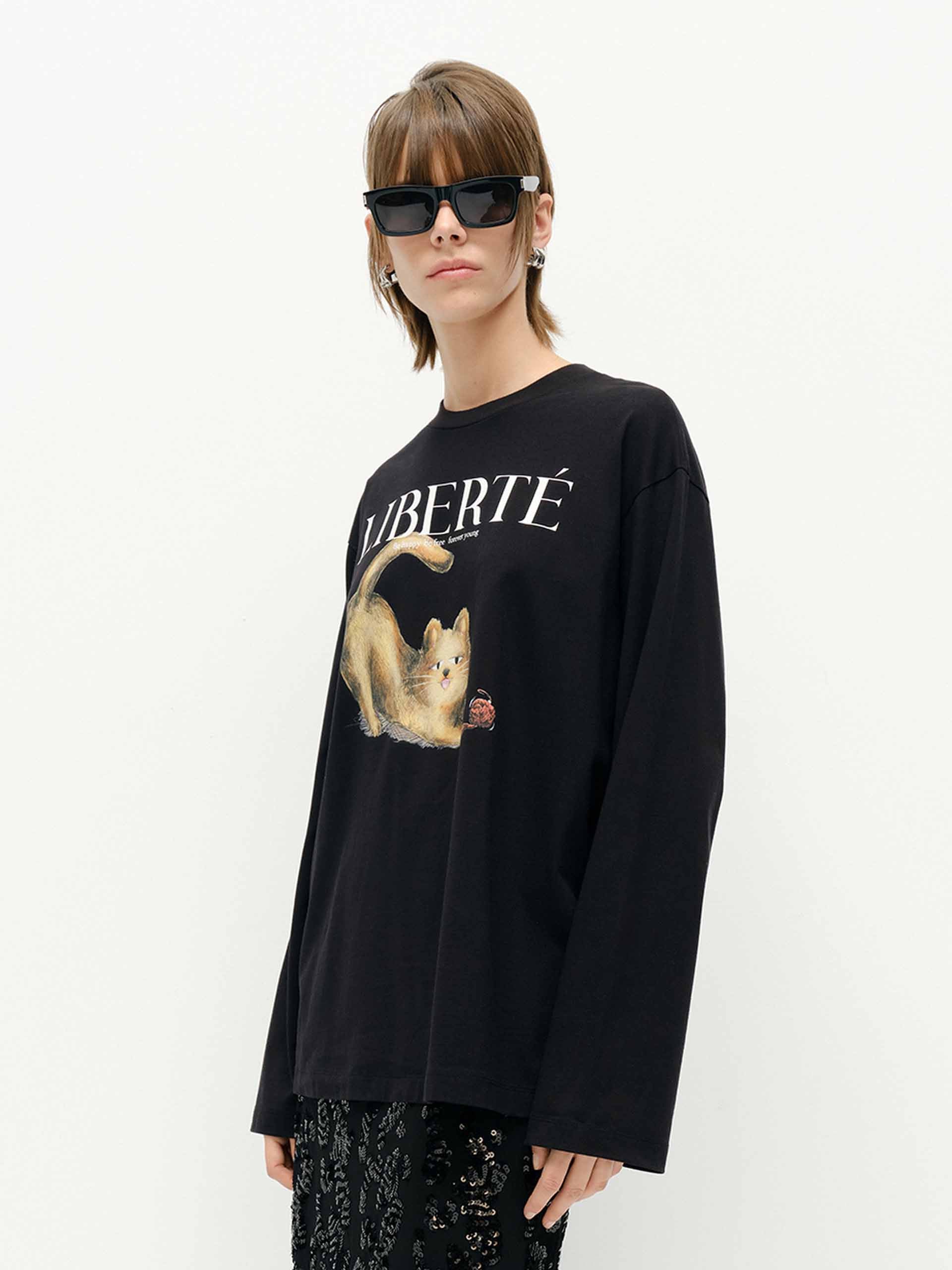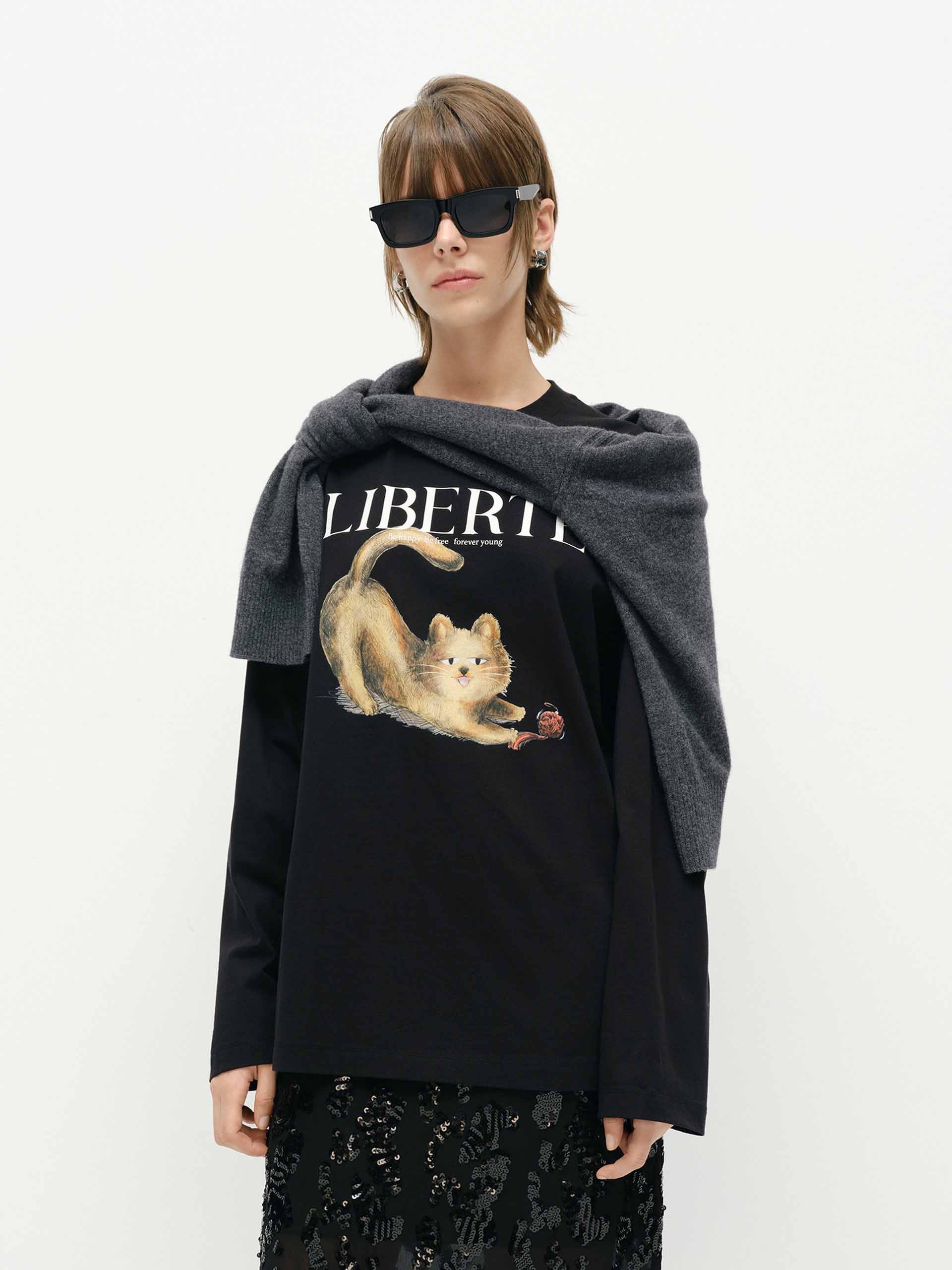 This t-shirt is perfect for those who value comfort and style. Made from breathable cotton, it offers a loose fit with a crew neck for ultimate comfort. The cute and fun cat and slogan print adds a playful touch, making it easy to pair with skirts or jeans.