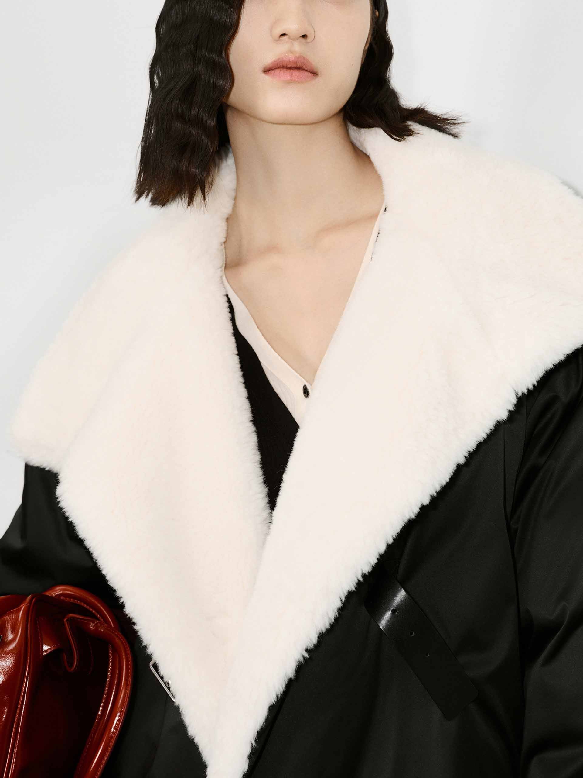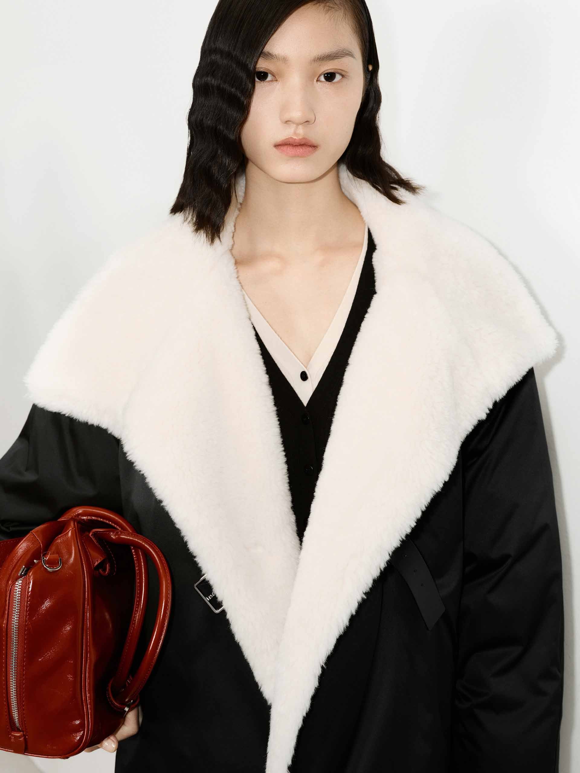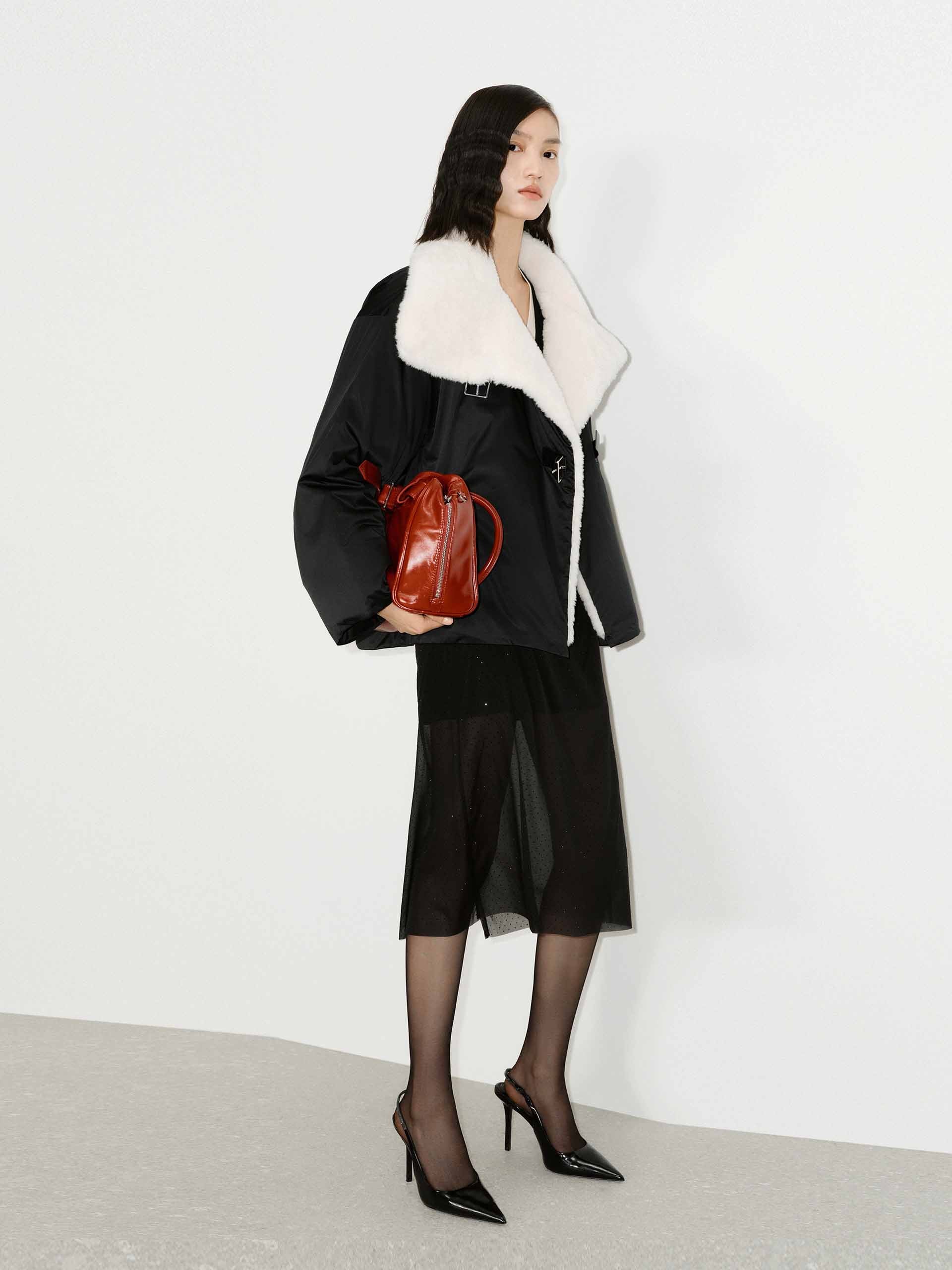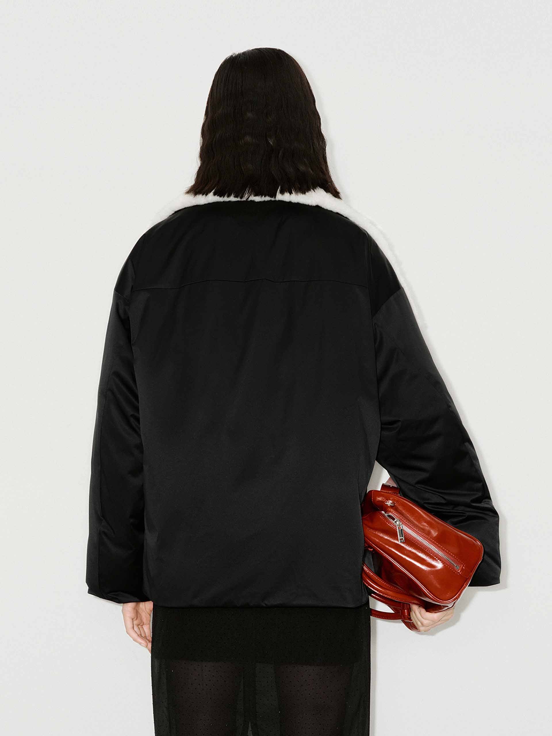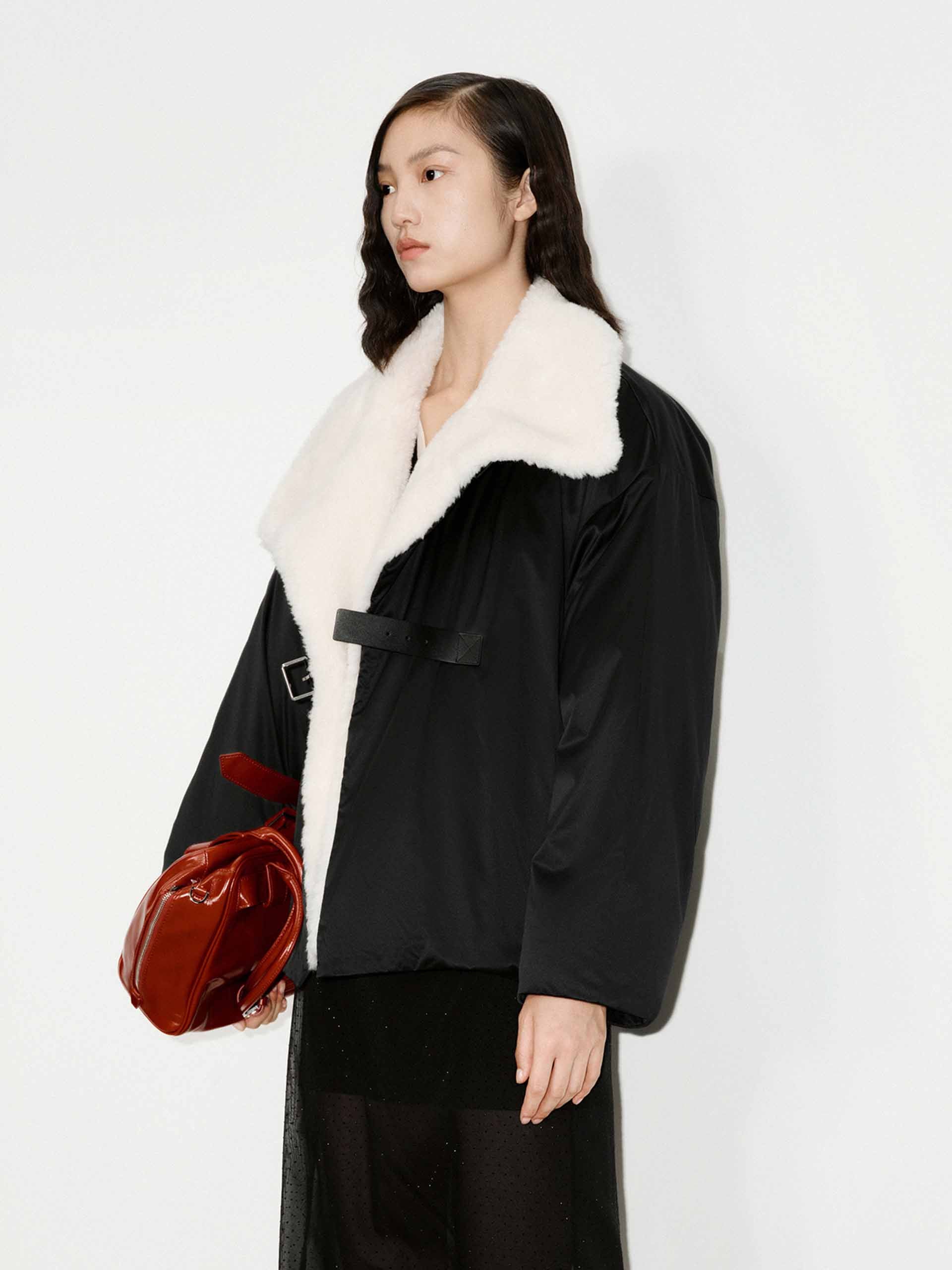 Stay warm and stylish during the cooler months with this jacket. This down jacket is filled with duck down, while its lightweight design offers a comfortable fit. Feature a shearling collar and placket detail add a touch of luxury, and the side pockets provide convenient storage.