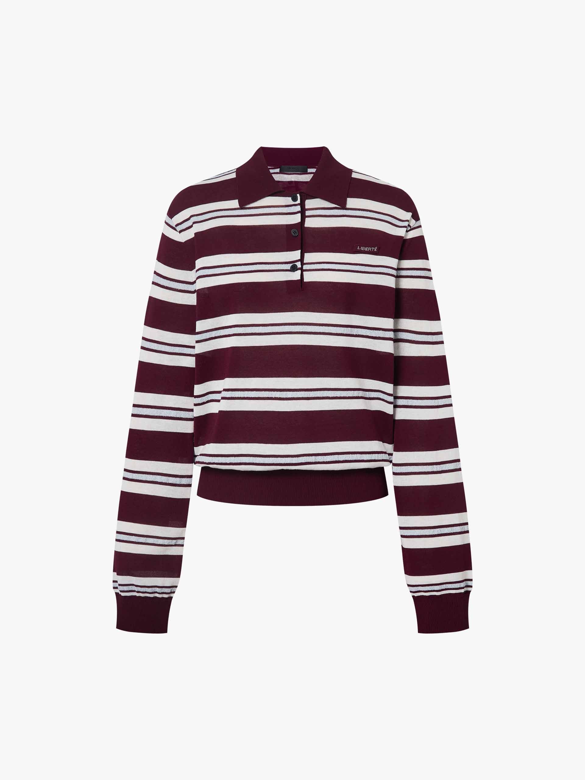 Polo Collar Striped Knit Top