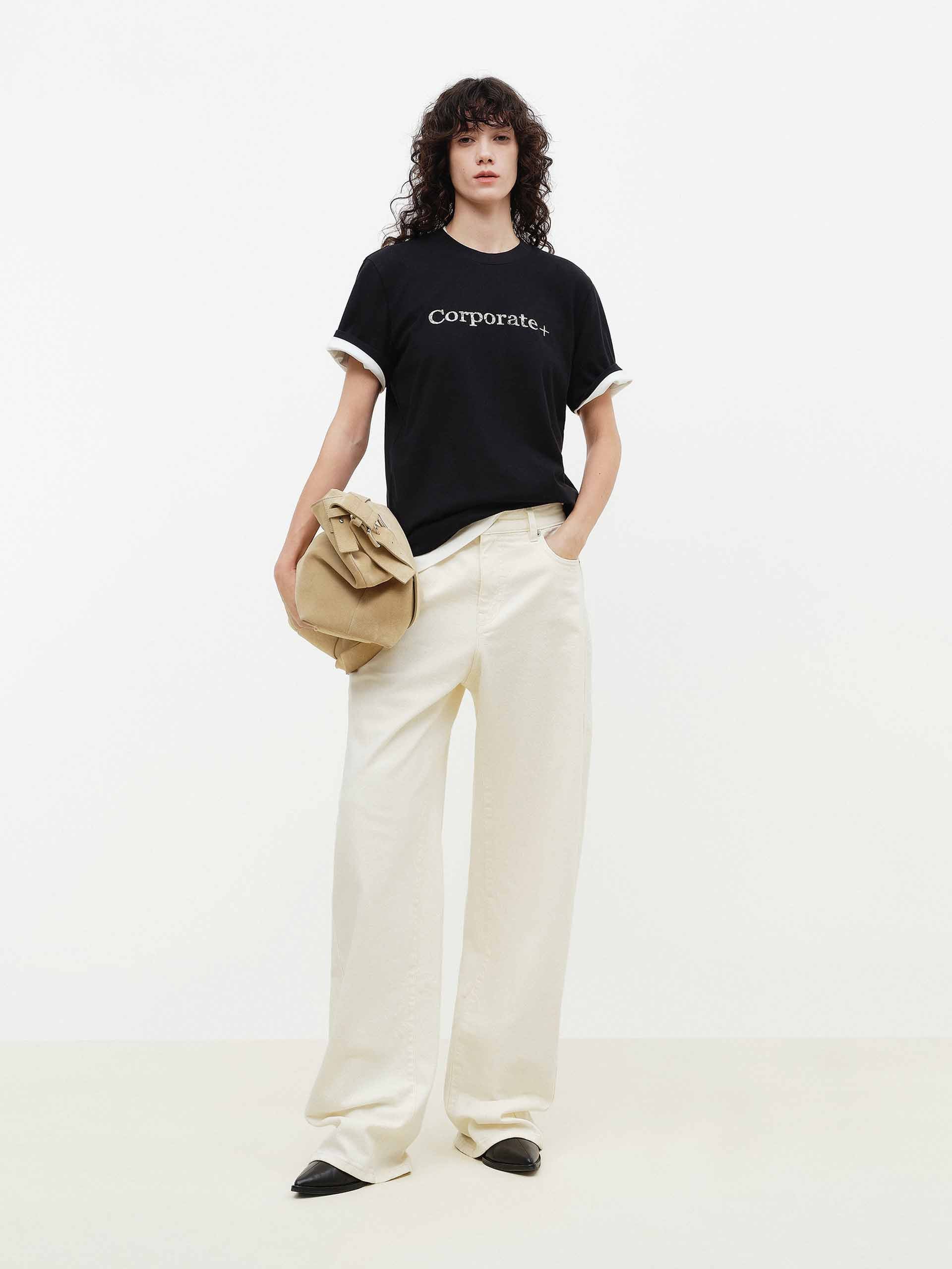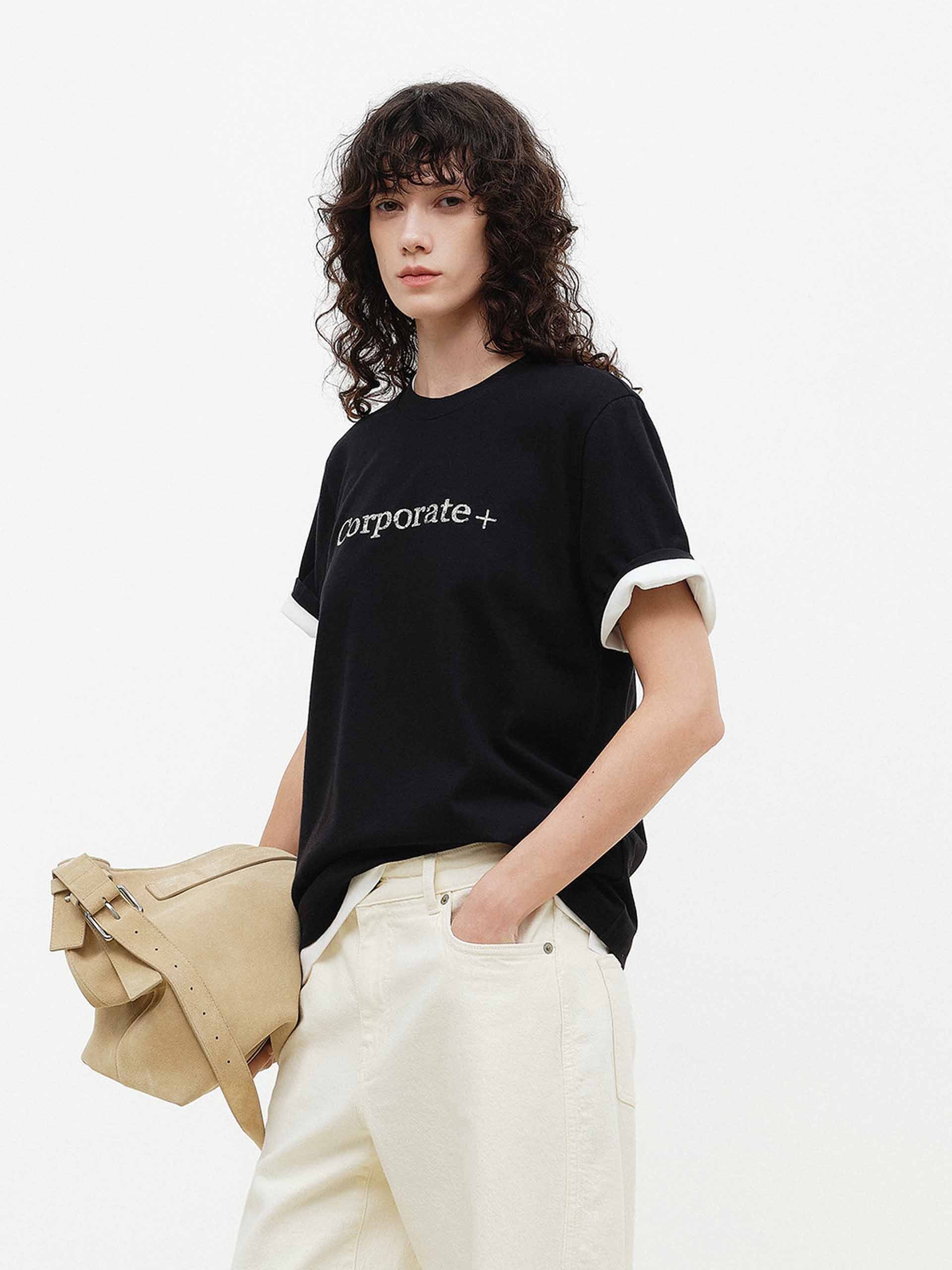 Rhinestone Detail Cotton T-shirt