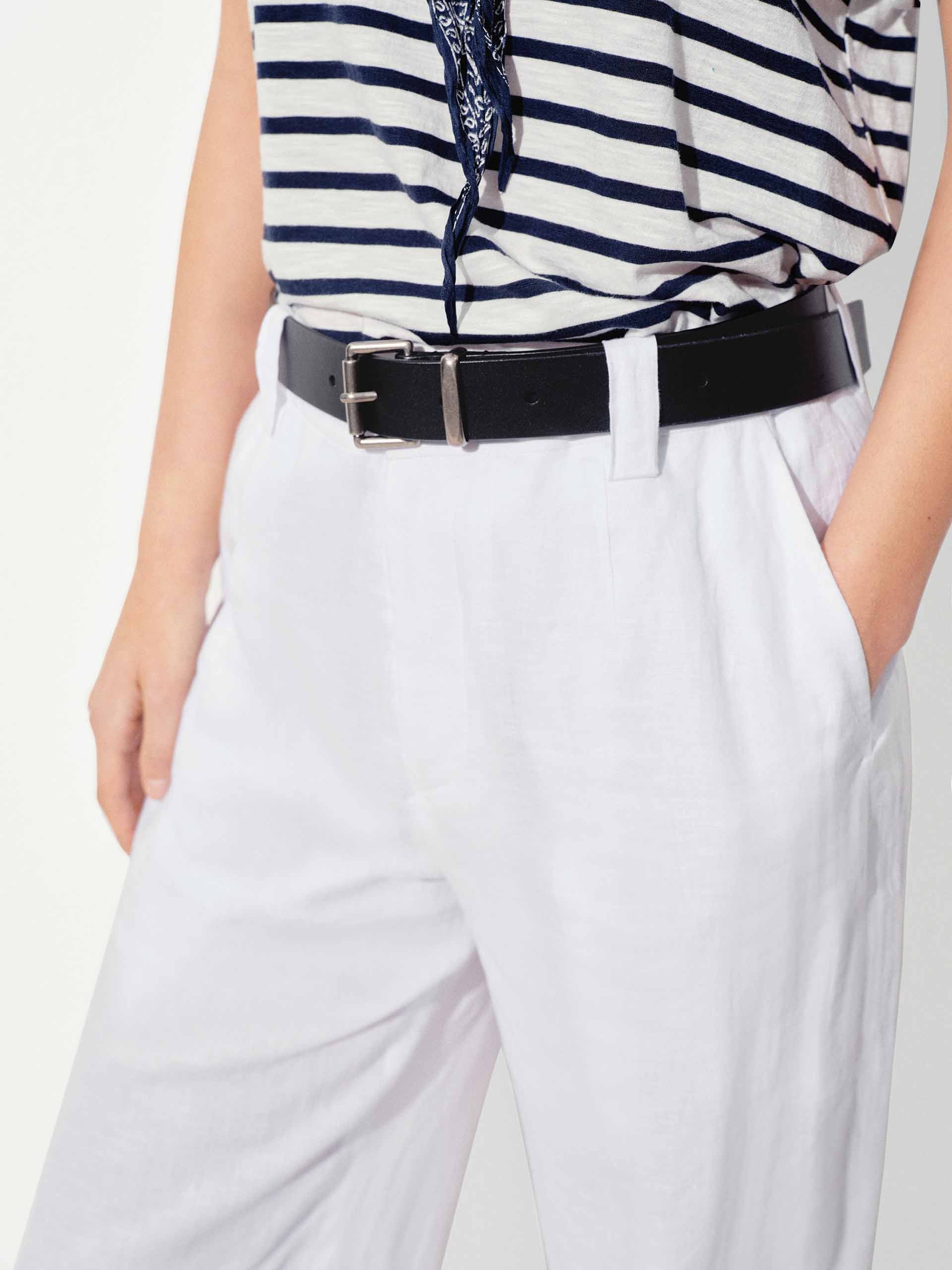 Crafted from premium linen, our trousers offer exceptional airflow, perfect for warm-weather wear. Designed with practicality in mind, these trousers feature a concealed zip closure and functional side pockets, blending utility with minimalist style. Pair with the matching t-shirt for a more sophisticated and charming look.