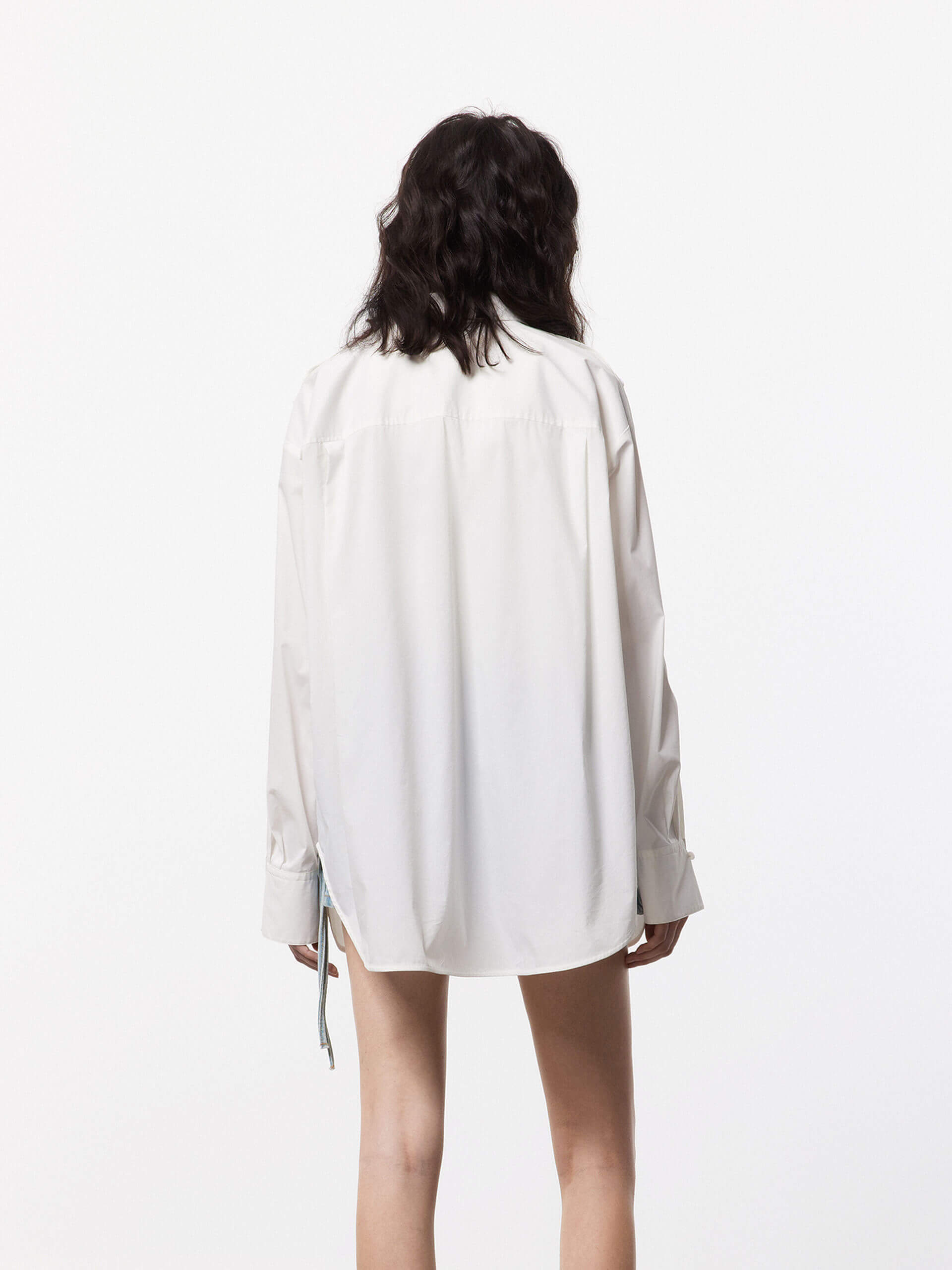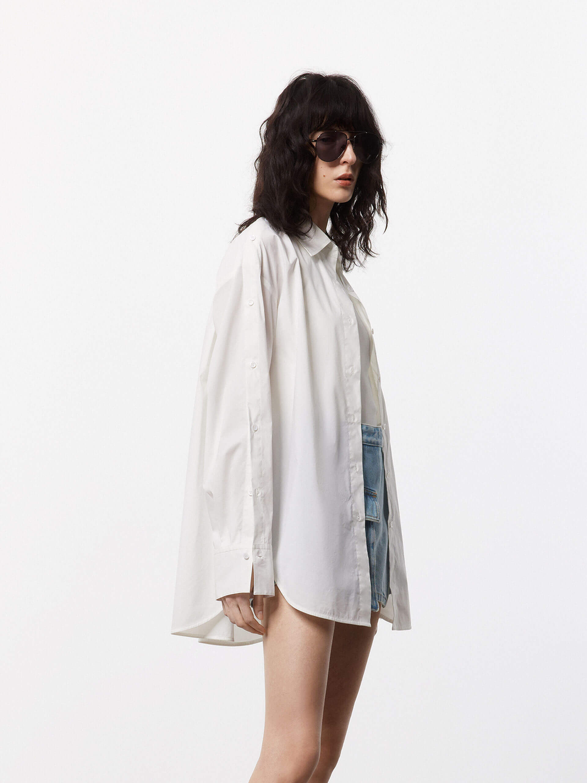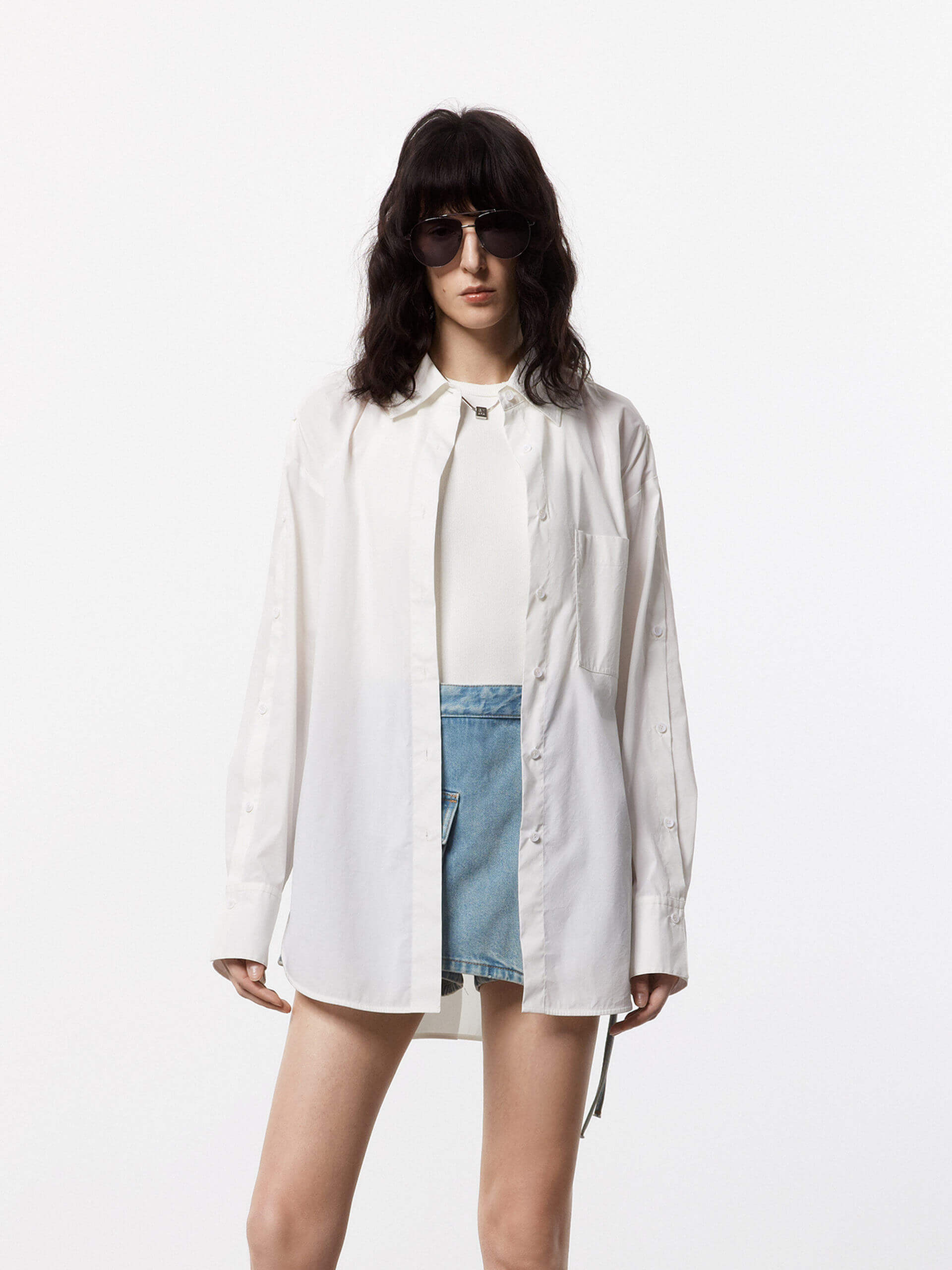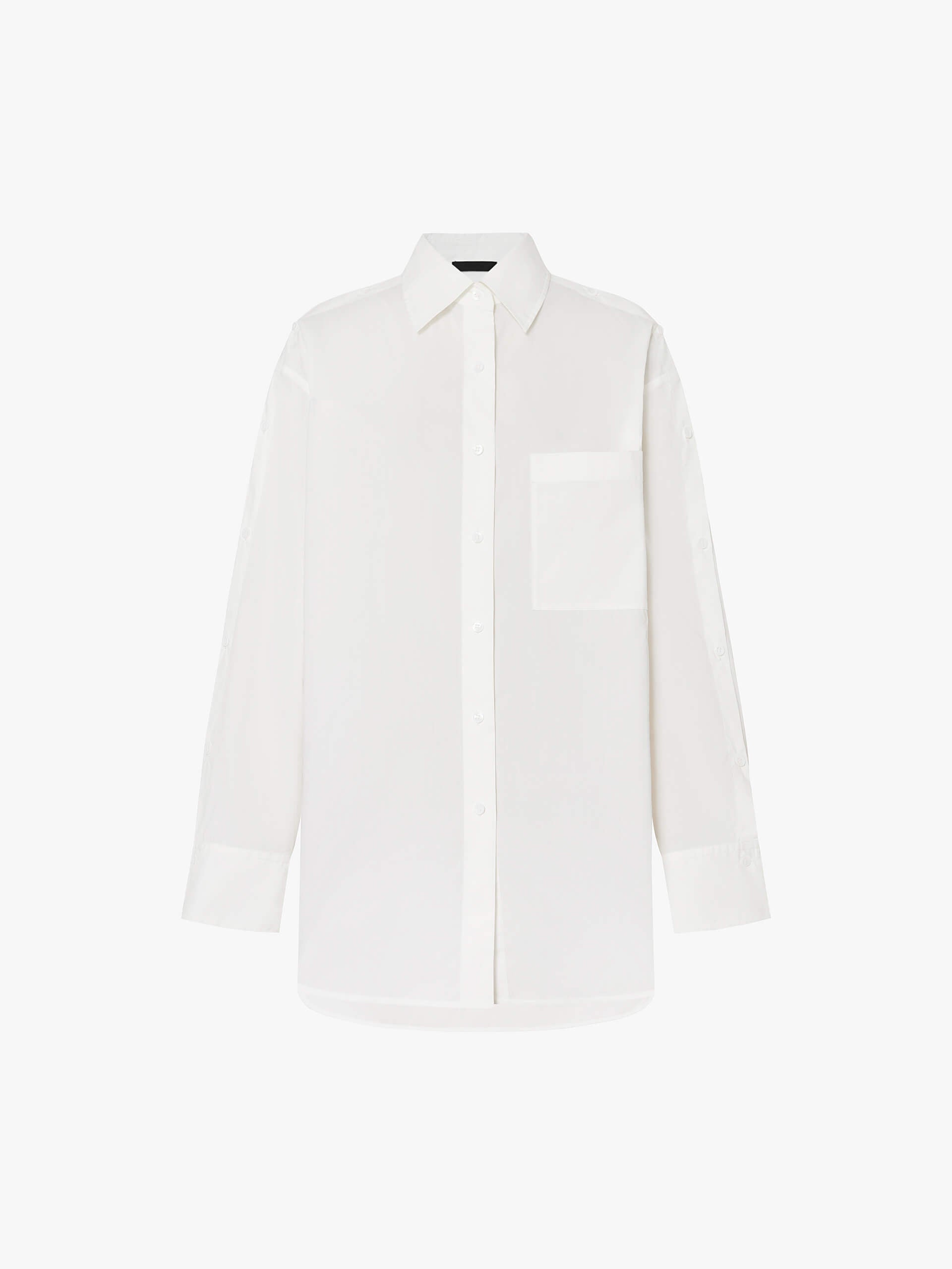 This shirt is a classic style made from a comfortable cotton blend fabric. It features long sleeves with button details on the cuffs, adding a touch of sophistication. The collar is a traditional point collar, and there is a chest pocket for added convenience. It has a mint and white hue, creating a fresh and clean look. Pair well with khaki pants or dark-wash denim for a casual look.
