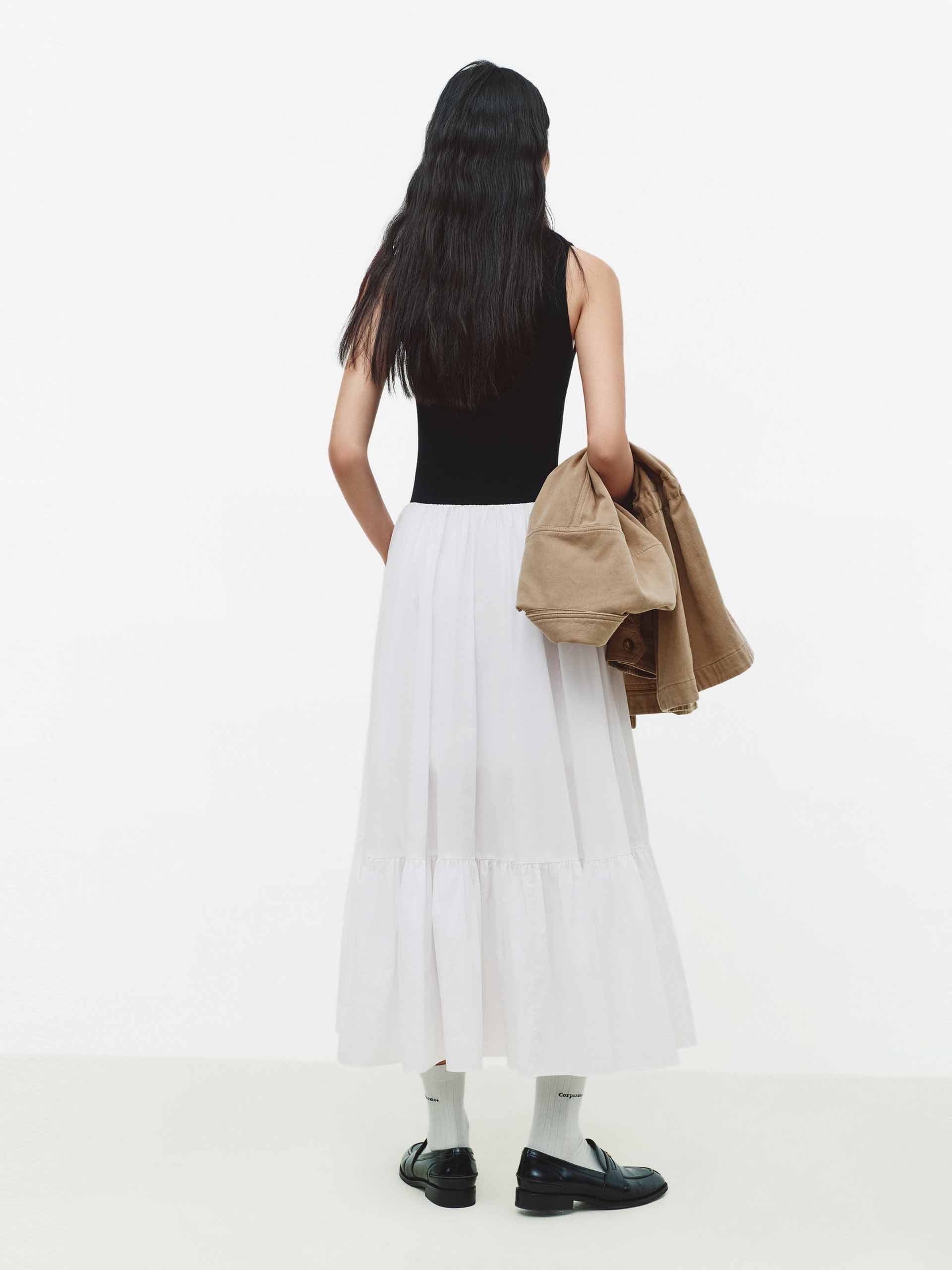 - A-line silhouette, midi length