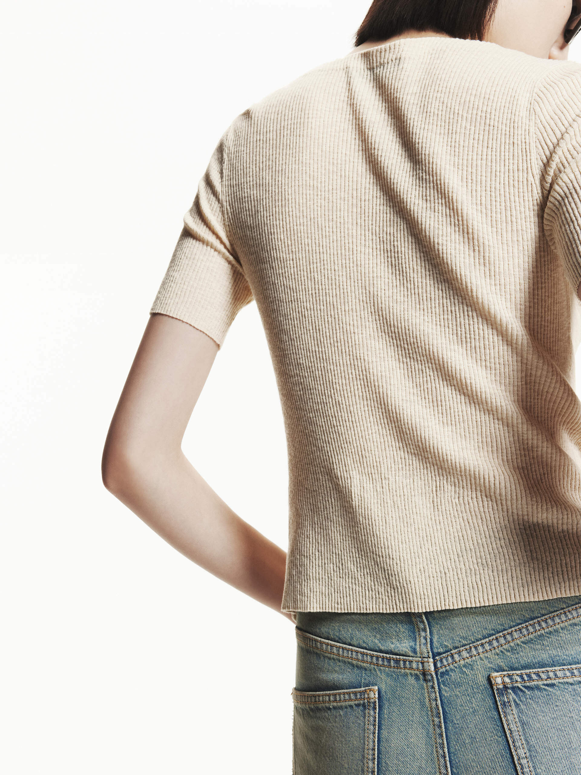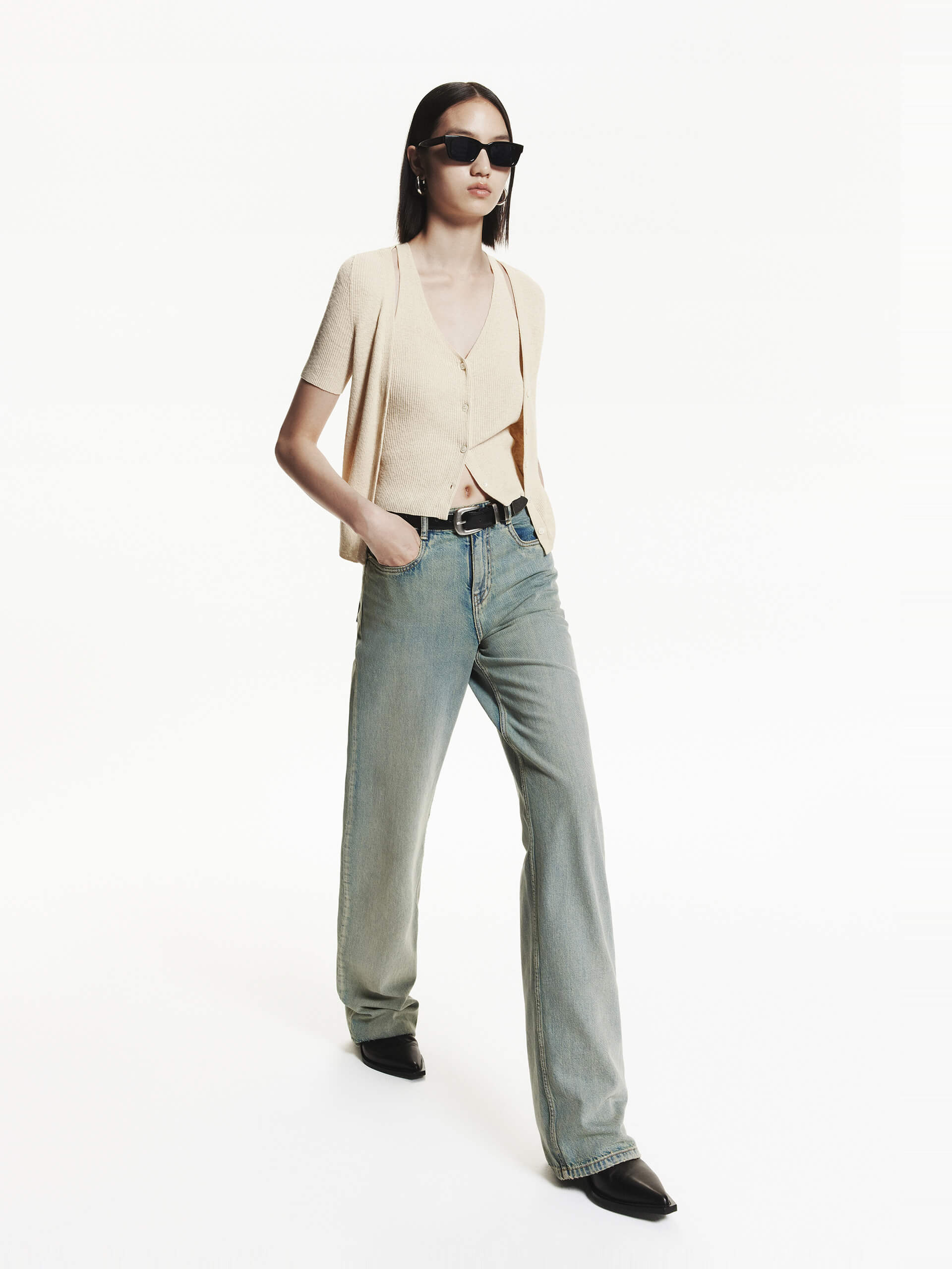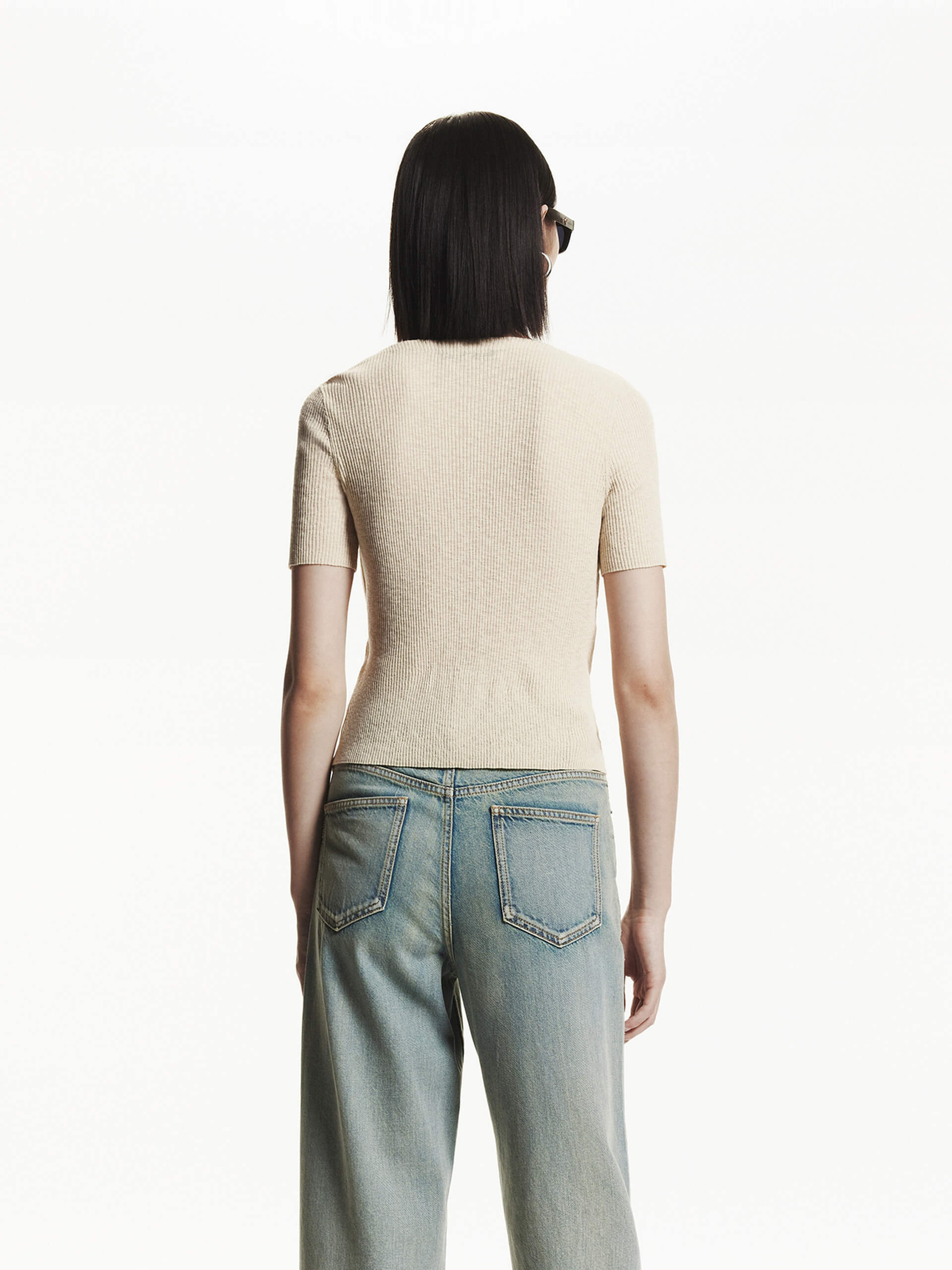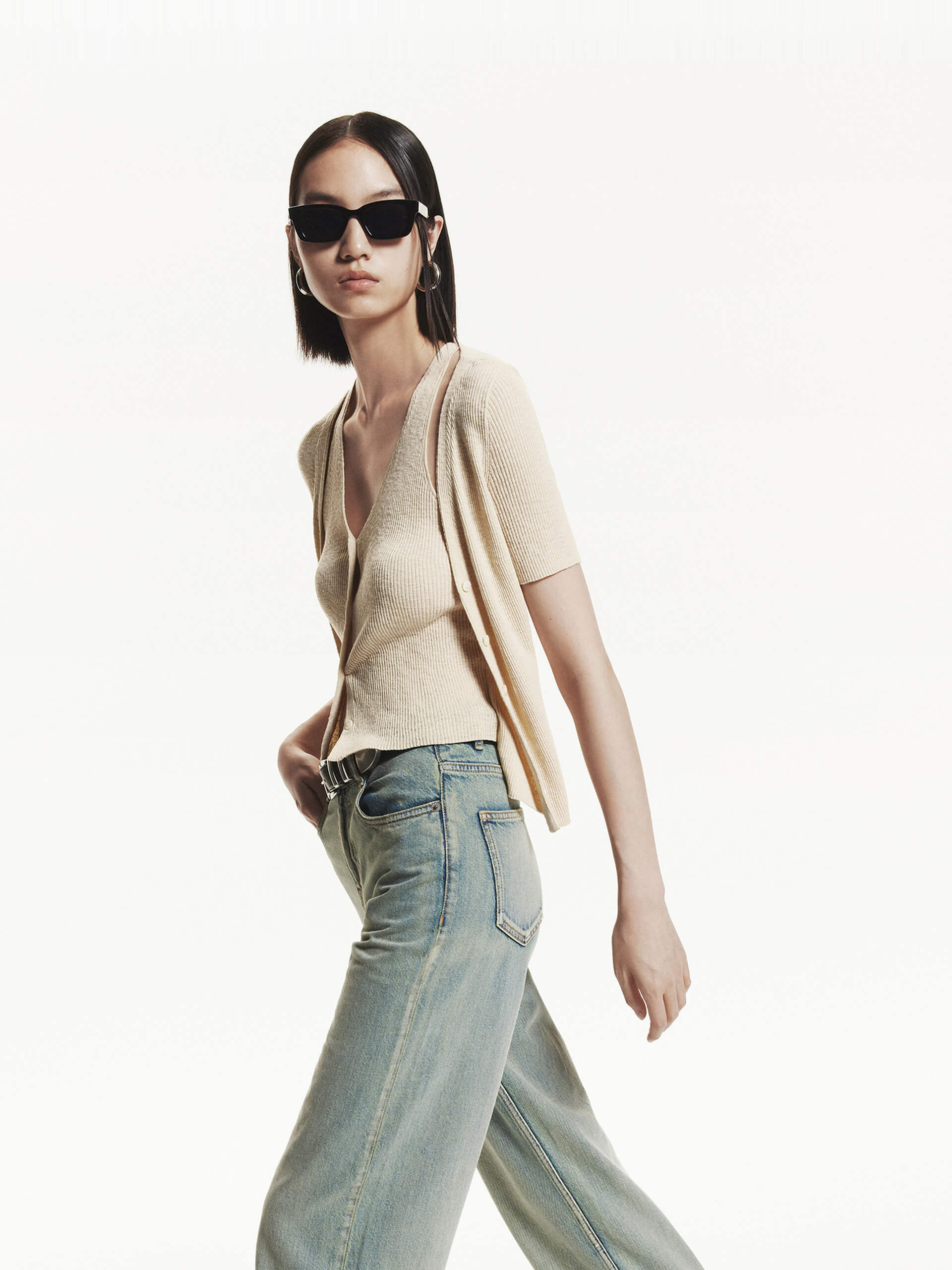 This cardigan is crafted from cotton, linen, and other fibers. The slim fit and ribbed knit add stylish texture, while the short sleeves make it perfect for layering. Pair it with high-waisted jeans for a chic and versatile look. Expertly designed for a flattering fit and comfortable wear.