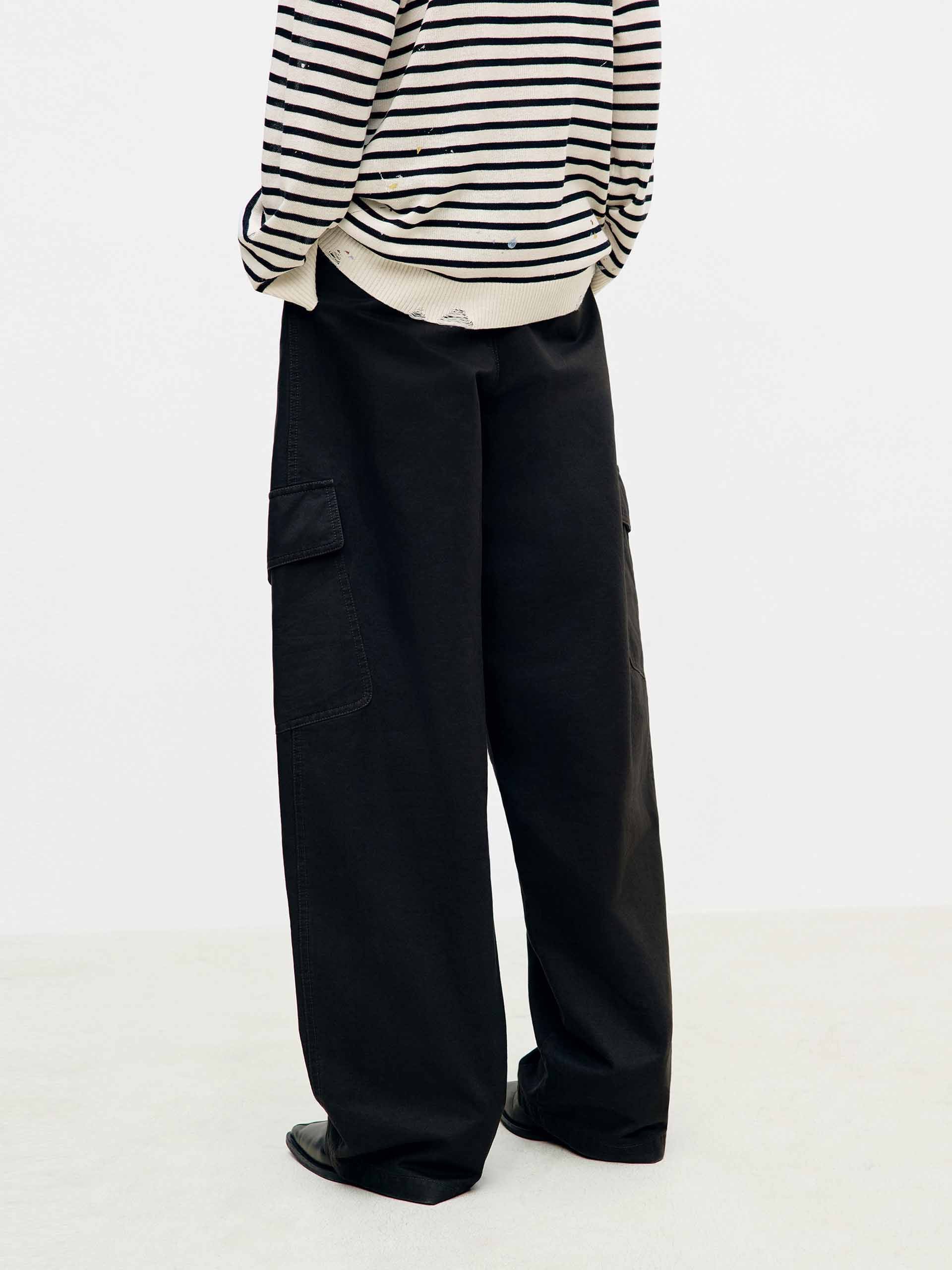 These pants feature multiple pockets with a cargo-style design for both utility and dimensional layering, while the drawstring adjustment at the waist allows for a customizable fit. Seam stitching details add subtle structural accents. Perfect for spring, they pair effortlessly with any top for a cool, confident look—an essential versatile piece for your wardrobe.