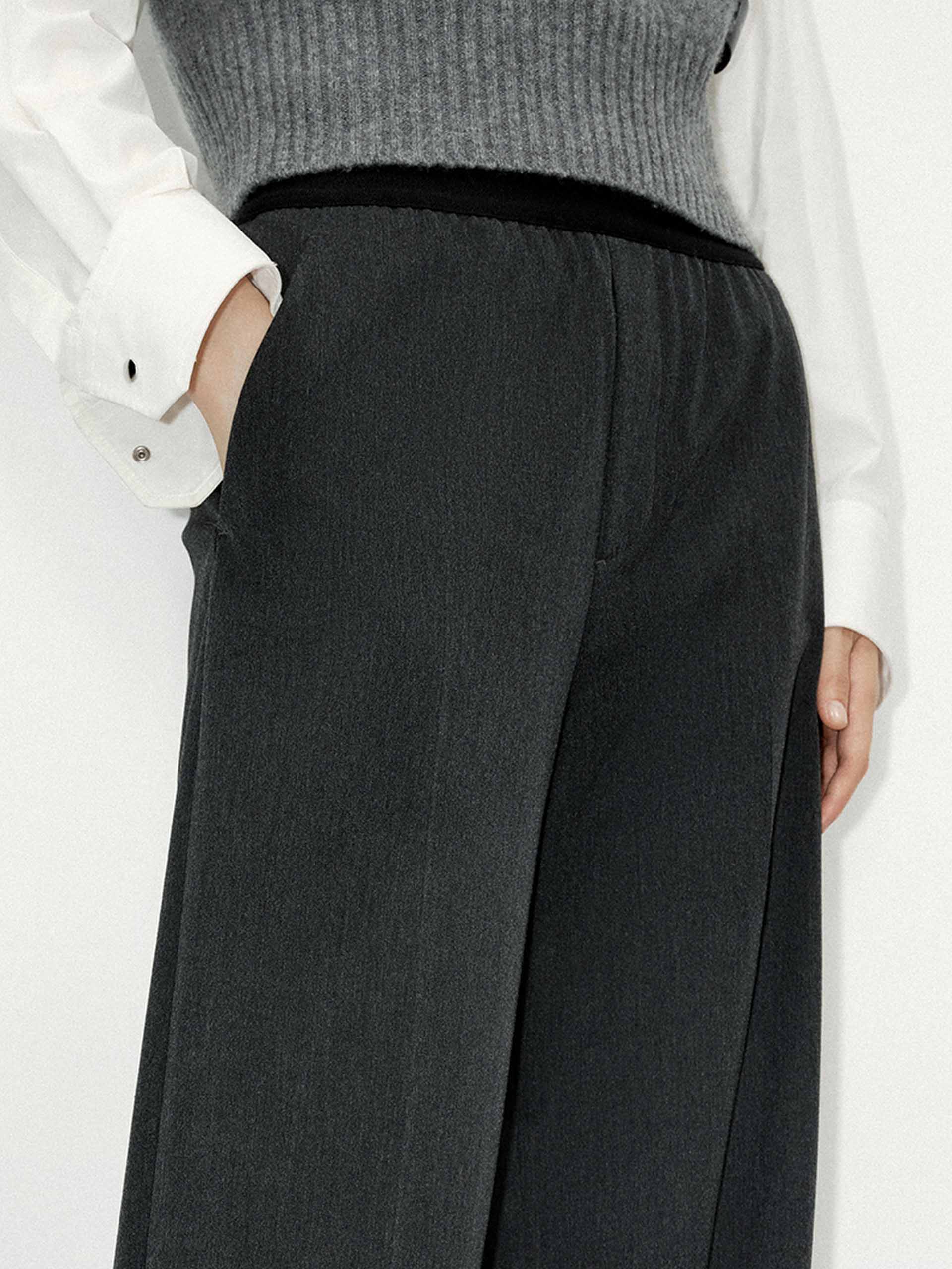 Crafted from a cozy and durable material, these pants offer a relaxed fit that drapes effortlessly over the body. With a side pocket design for added functionality and a stylish webbing elastic waist detail, these pants are perfect for a comfortable yet sophisticated look.