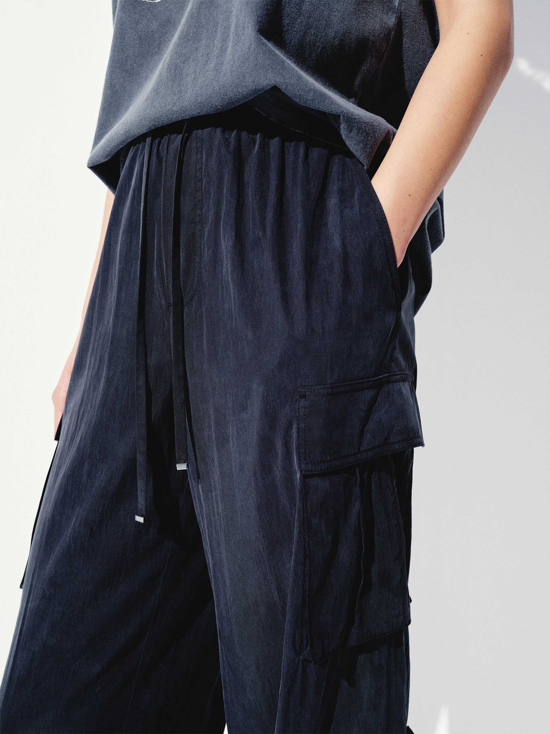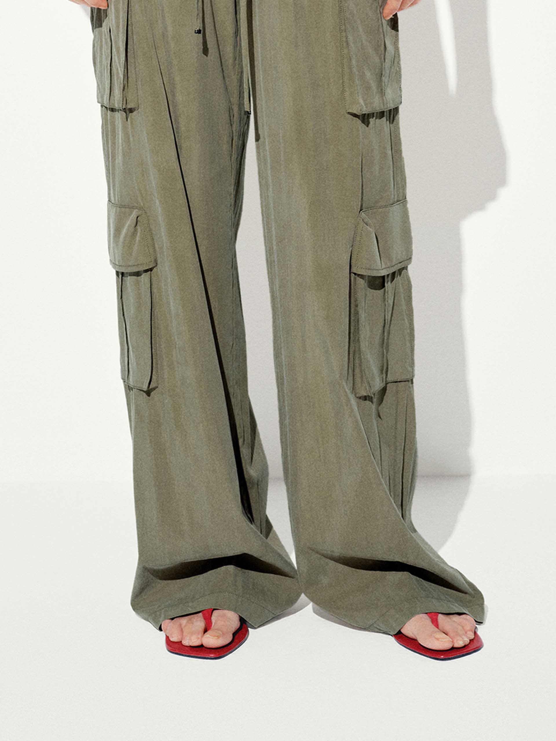 Crafted from sustainable materials, these relaxed-fit trousers combine effortless style with thoughtful design. Features a comfortable elasticated waistband and multiple functional pockets, while the lightweight fabric offers a graceful, fluid drape for all-day wear.