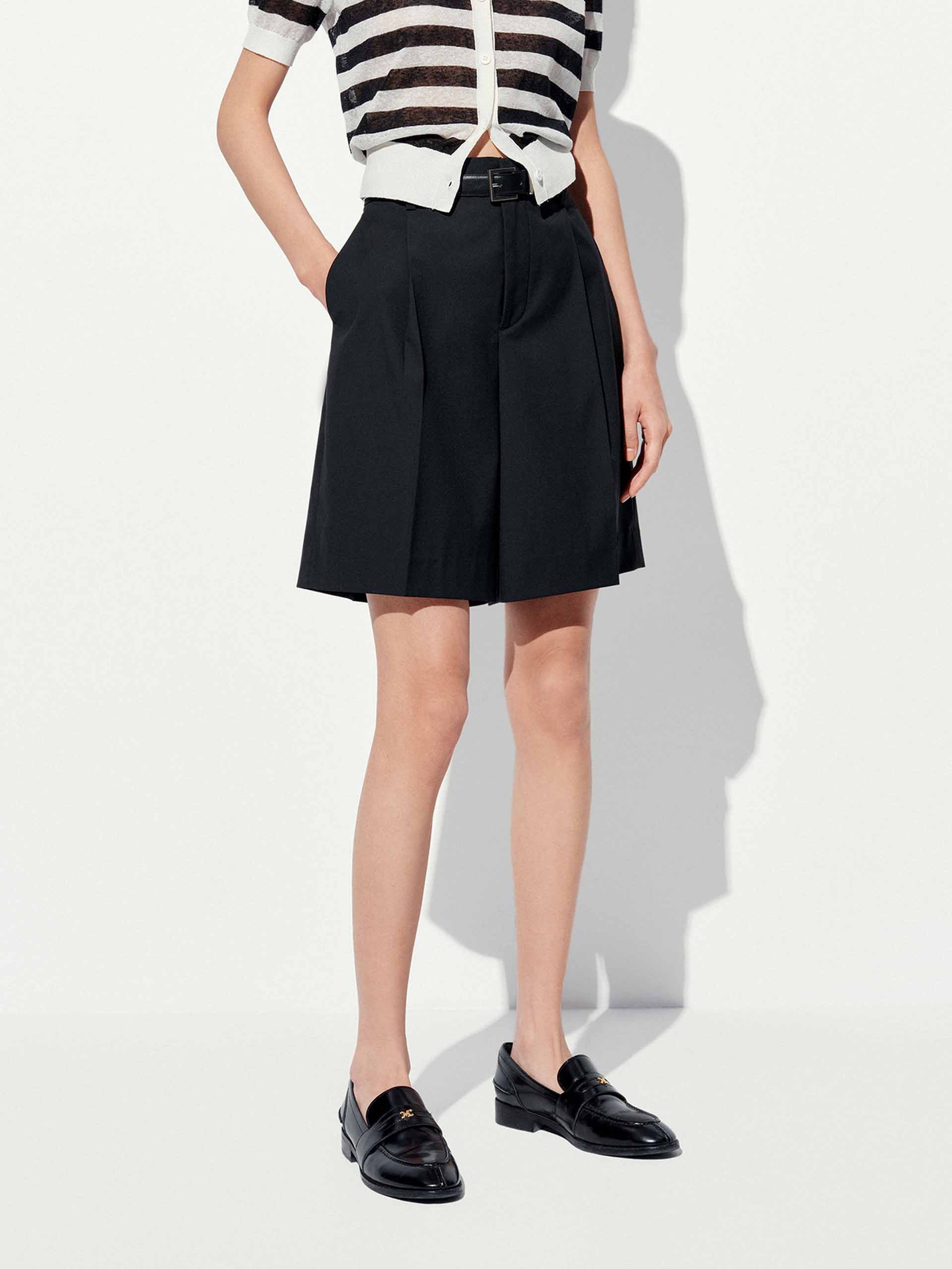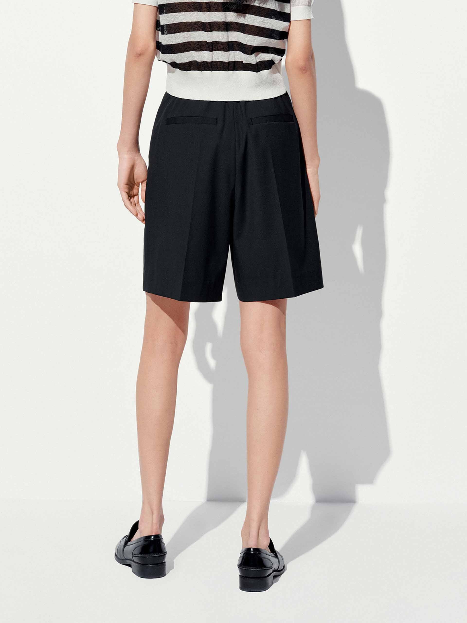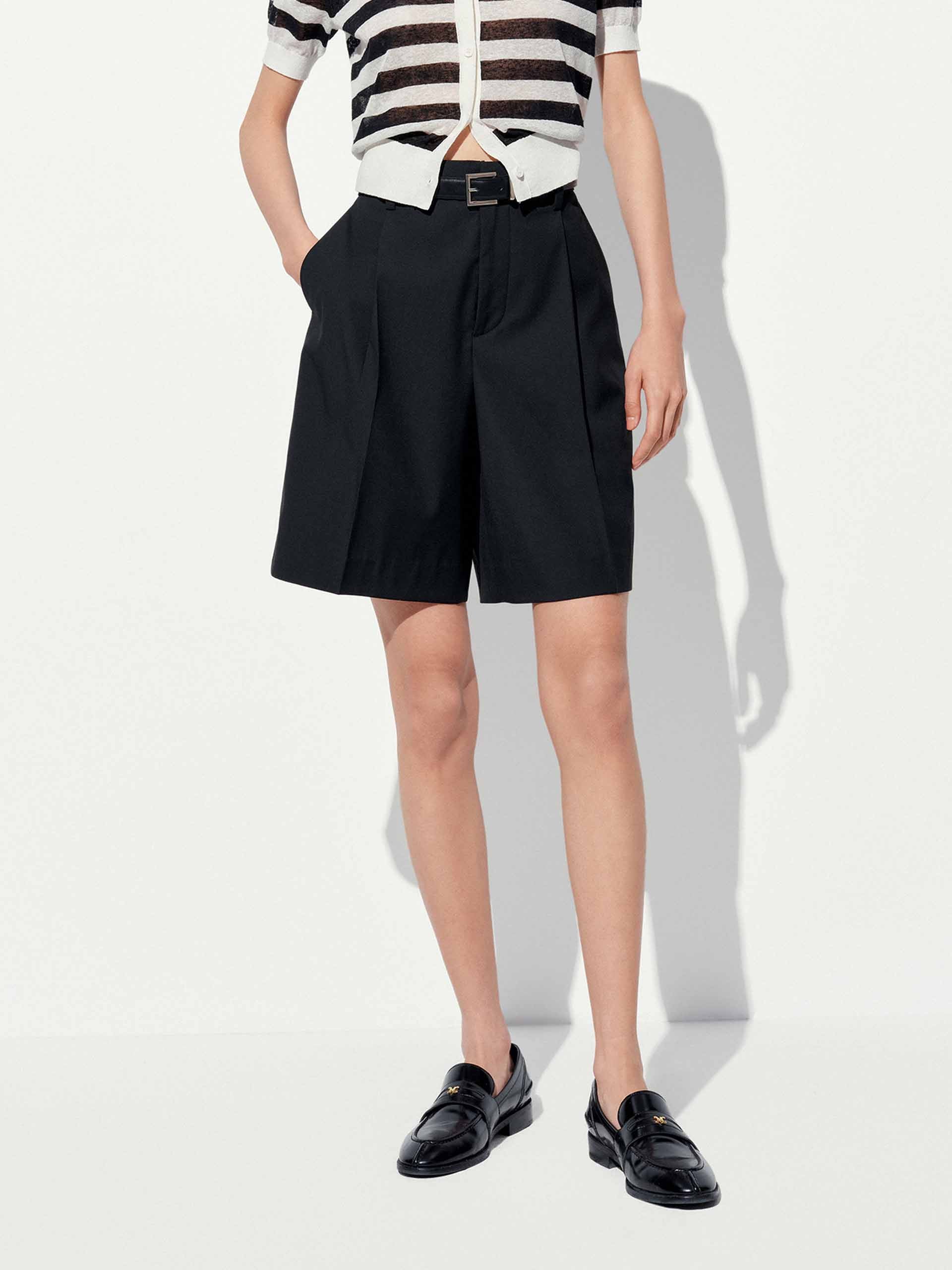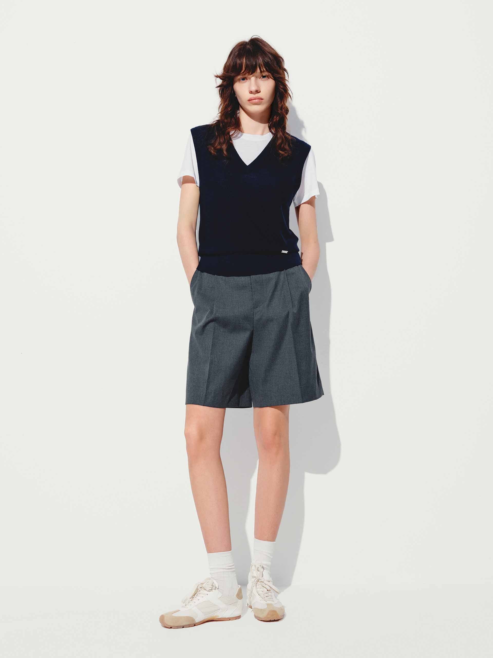 These knee-length shorts propose an effortless take on tailoring. Crafted with well-done fabric, they're designed with buttoned tabs for a perfect shape and feature sharp pleats along each leg and practical side pockets. Style them with the matching knit vest.