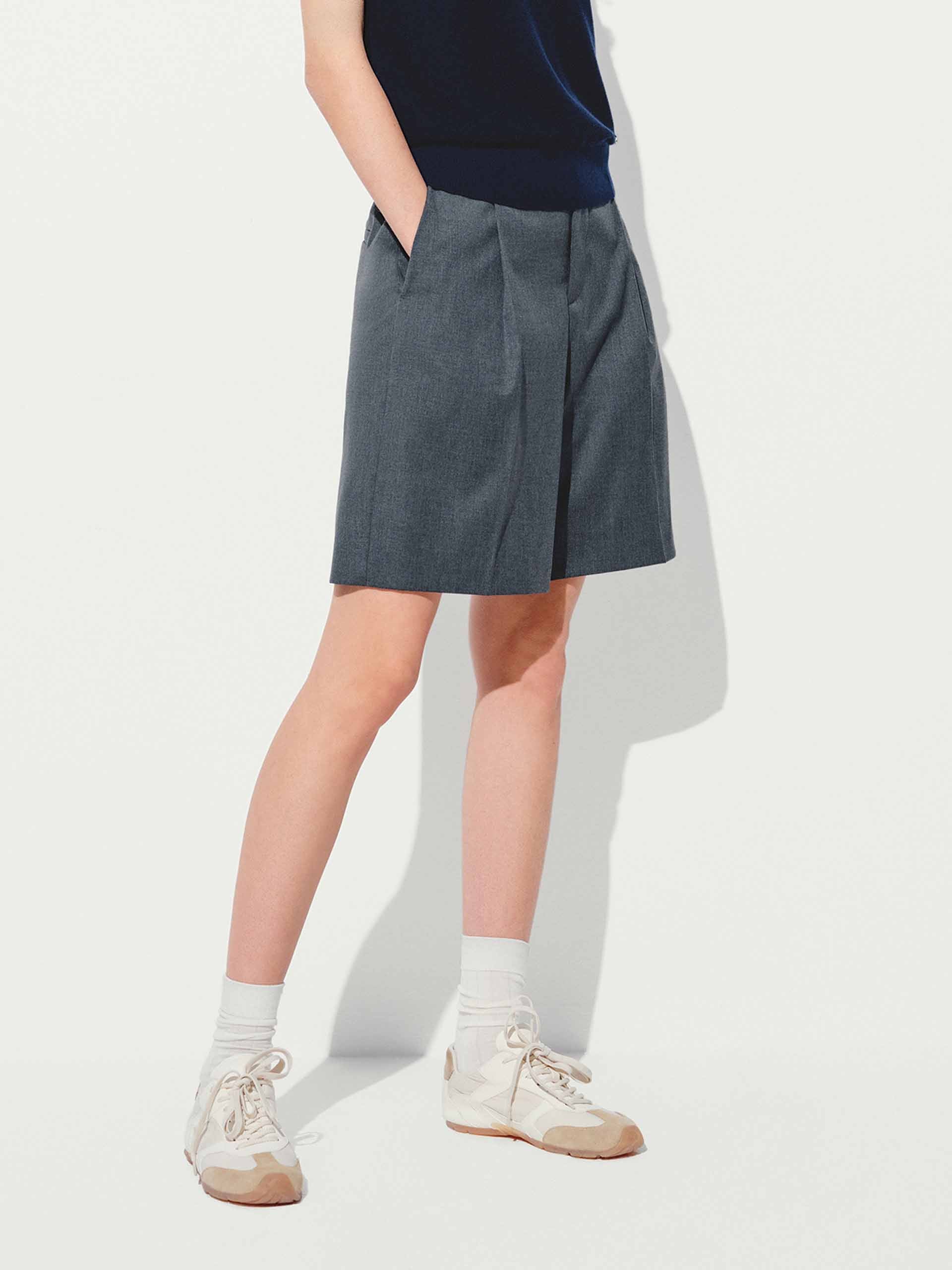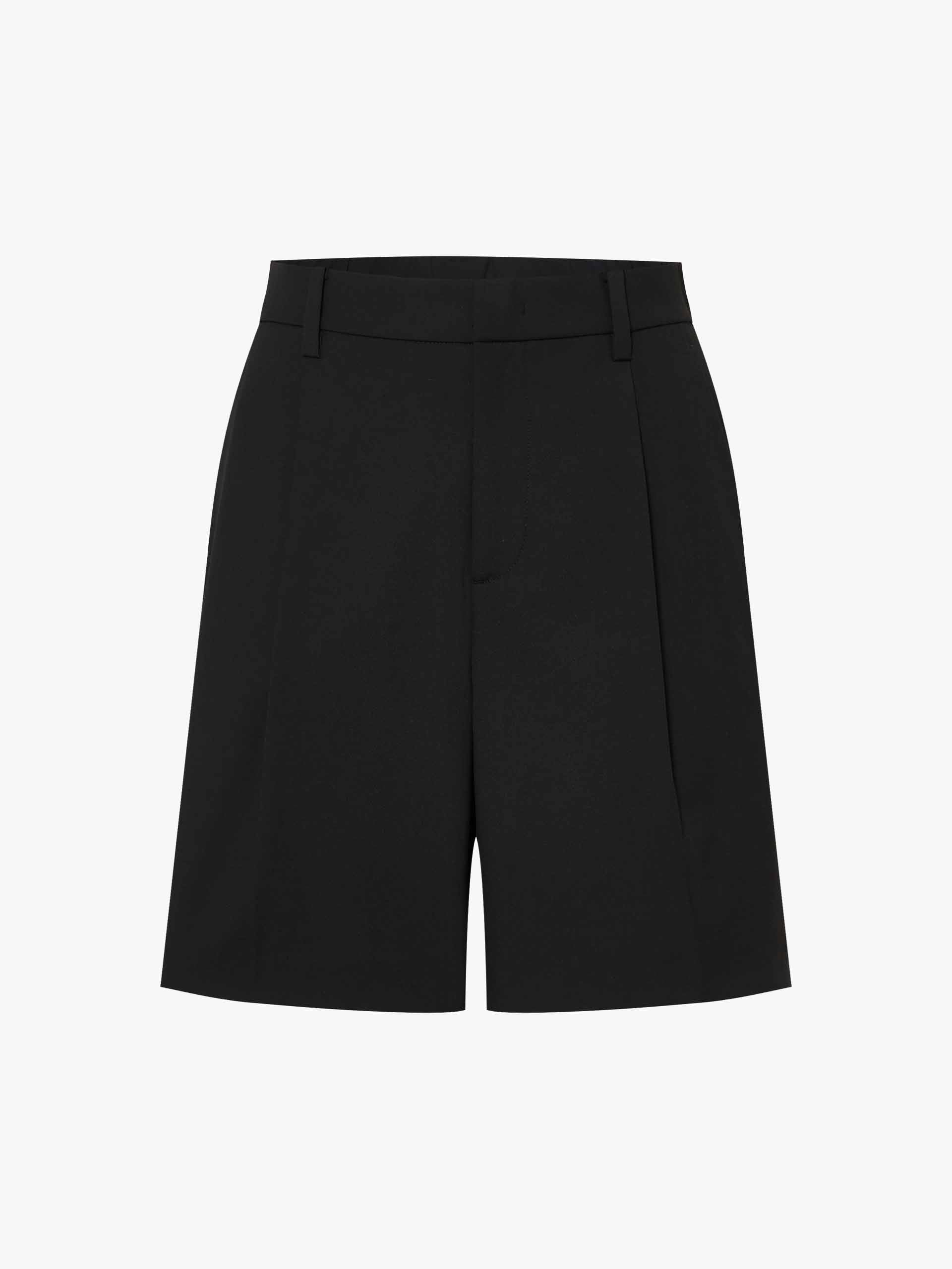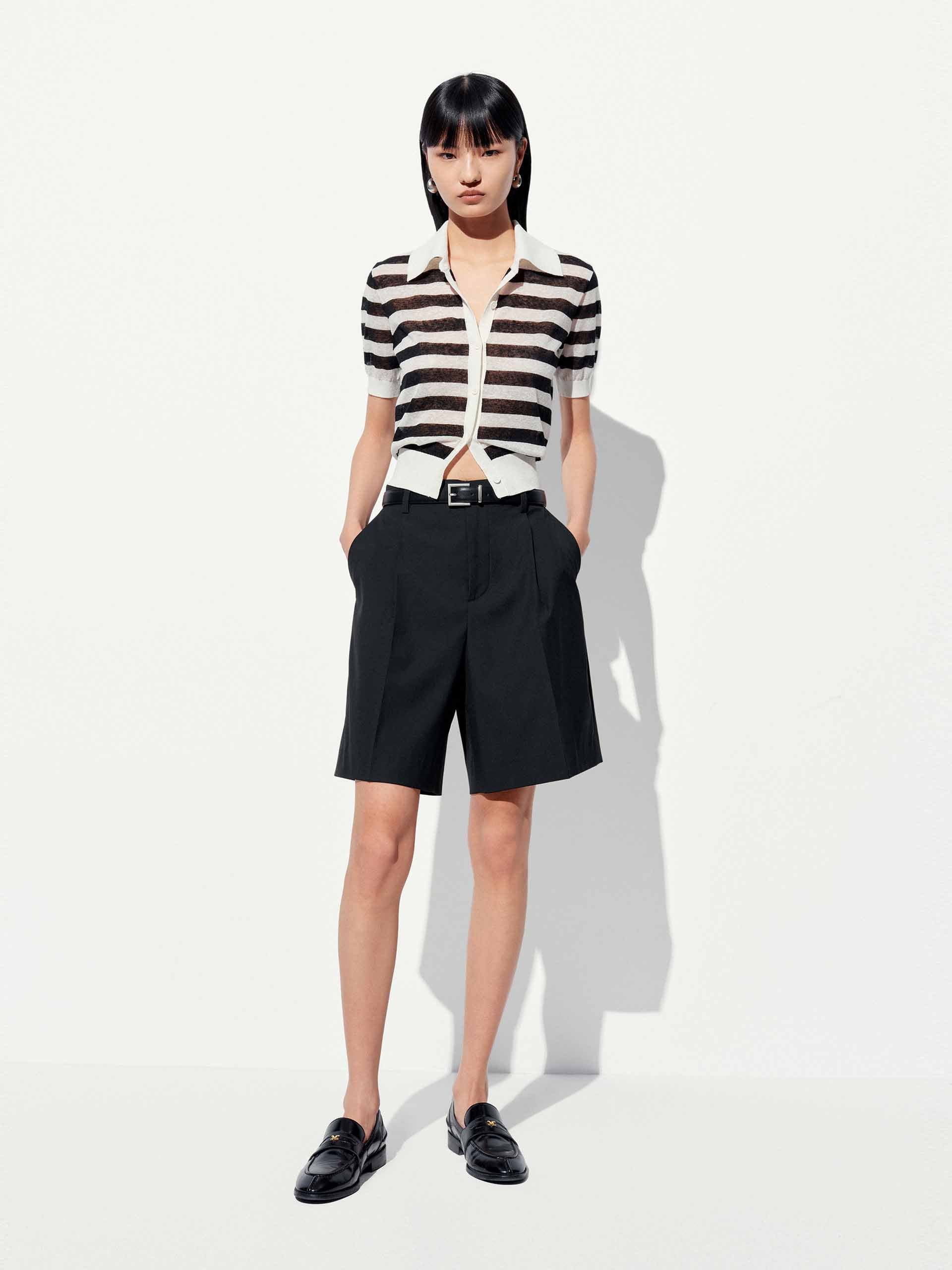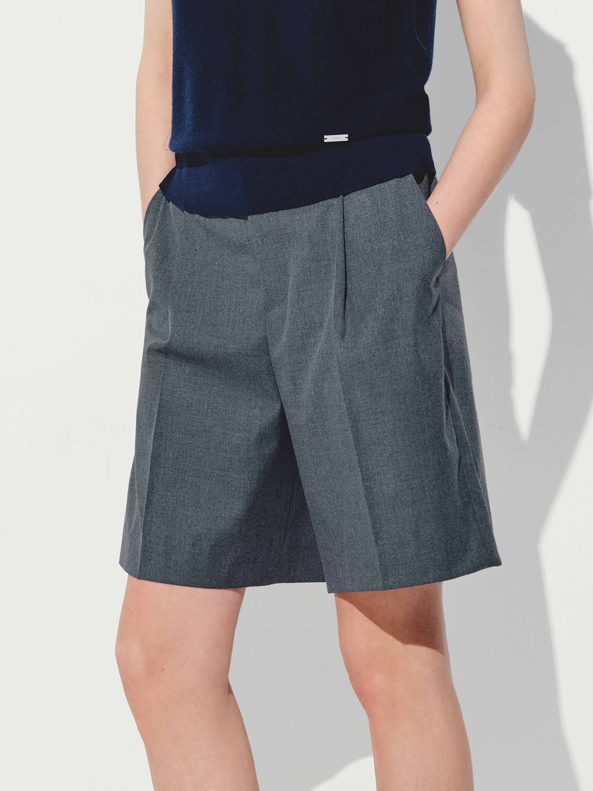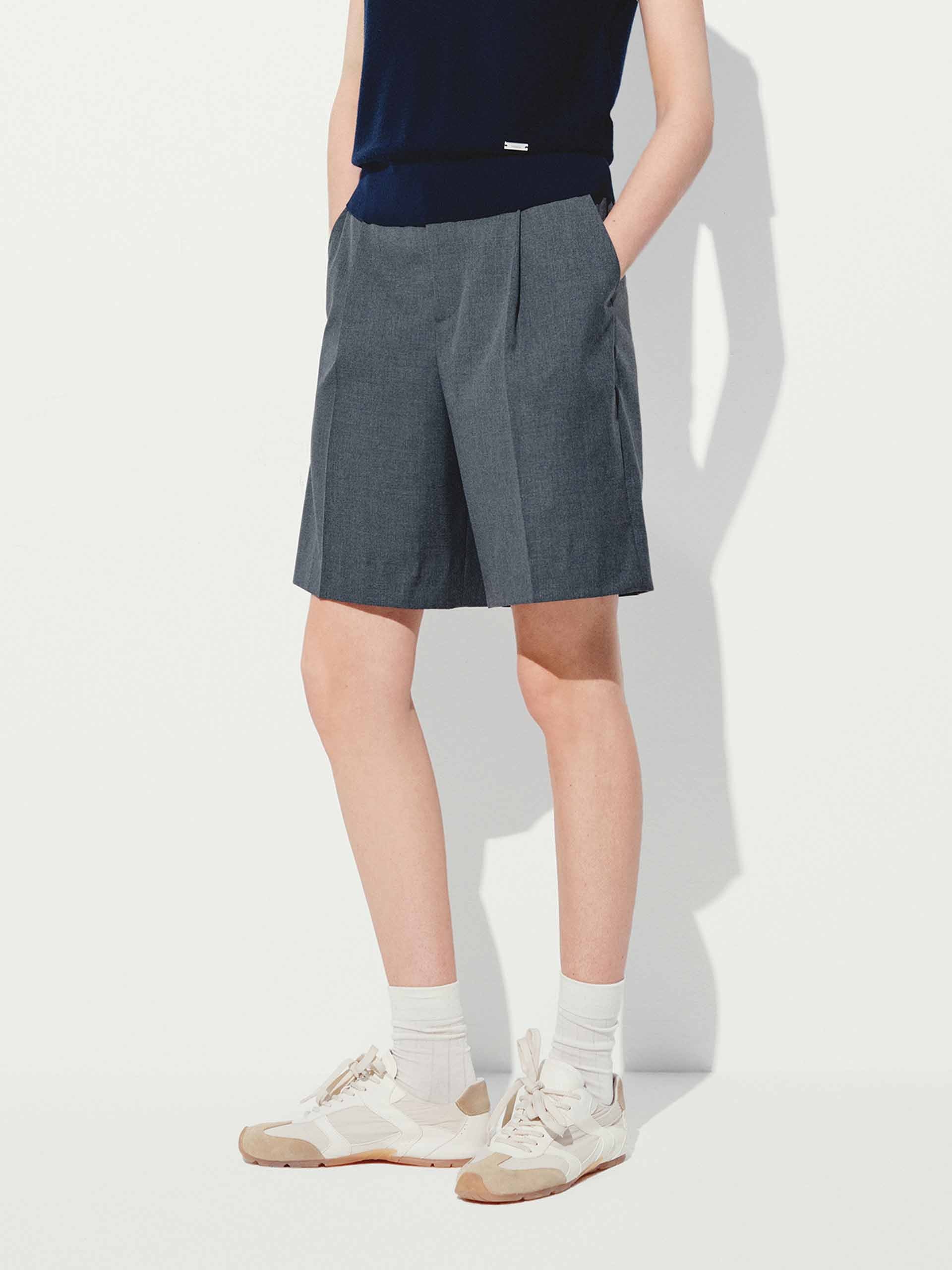 These knee-length shorts propose an effortless take on tailoring. Crafted with well-done fabric, they're designed with buttoned tabs for a perfect shape and feature sharp pleats along each leg and practical side pockets. Style them with the matching knit vest.