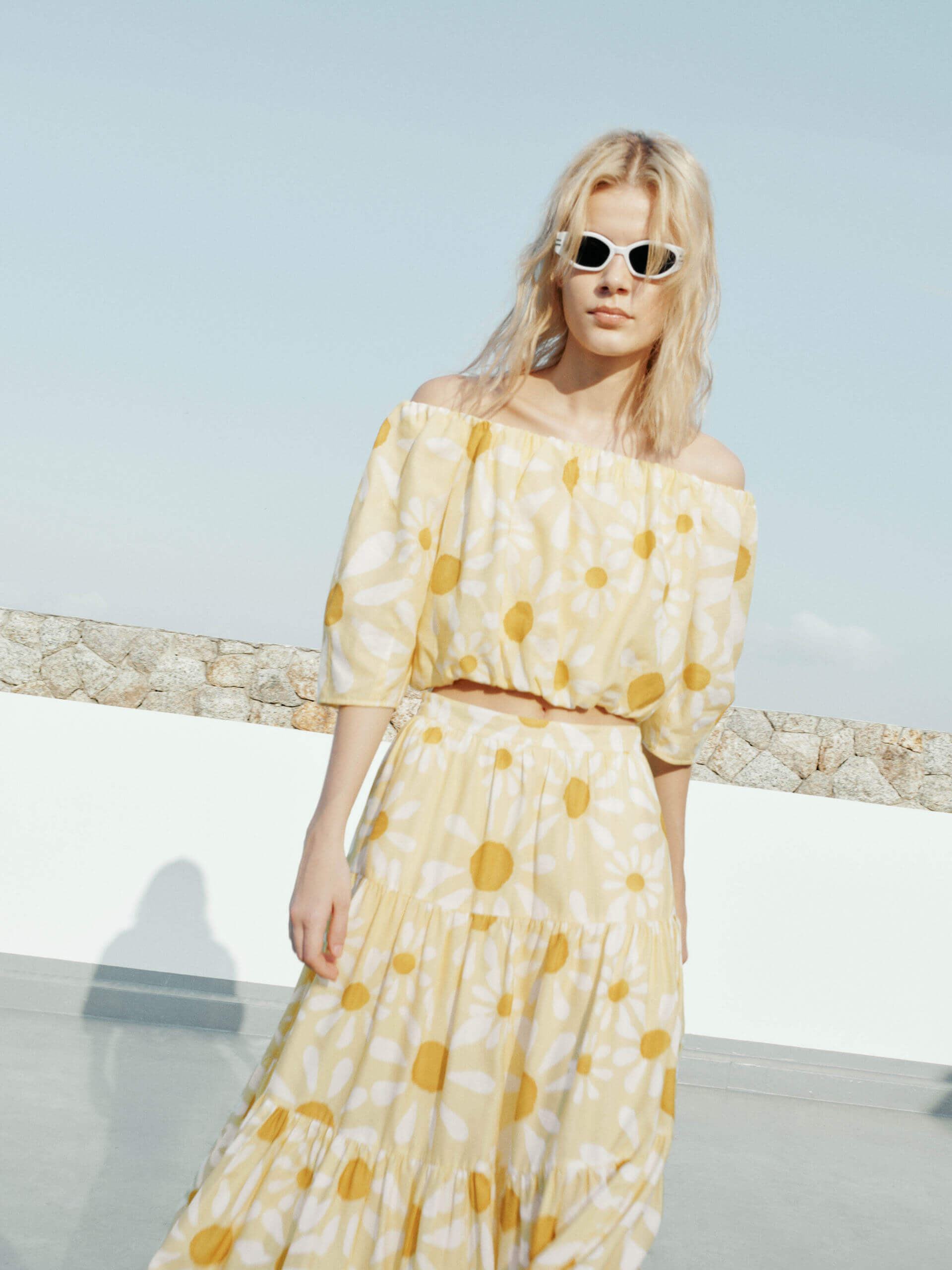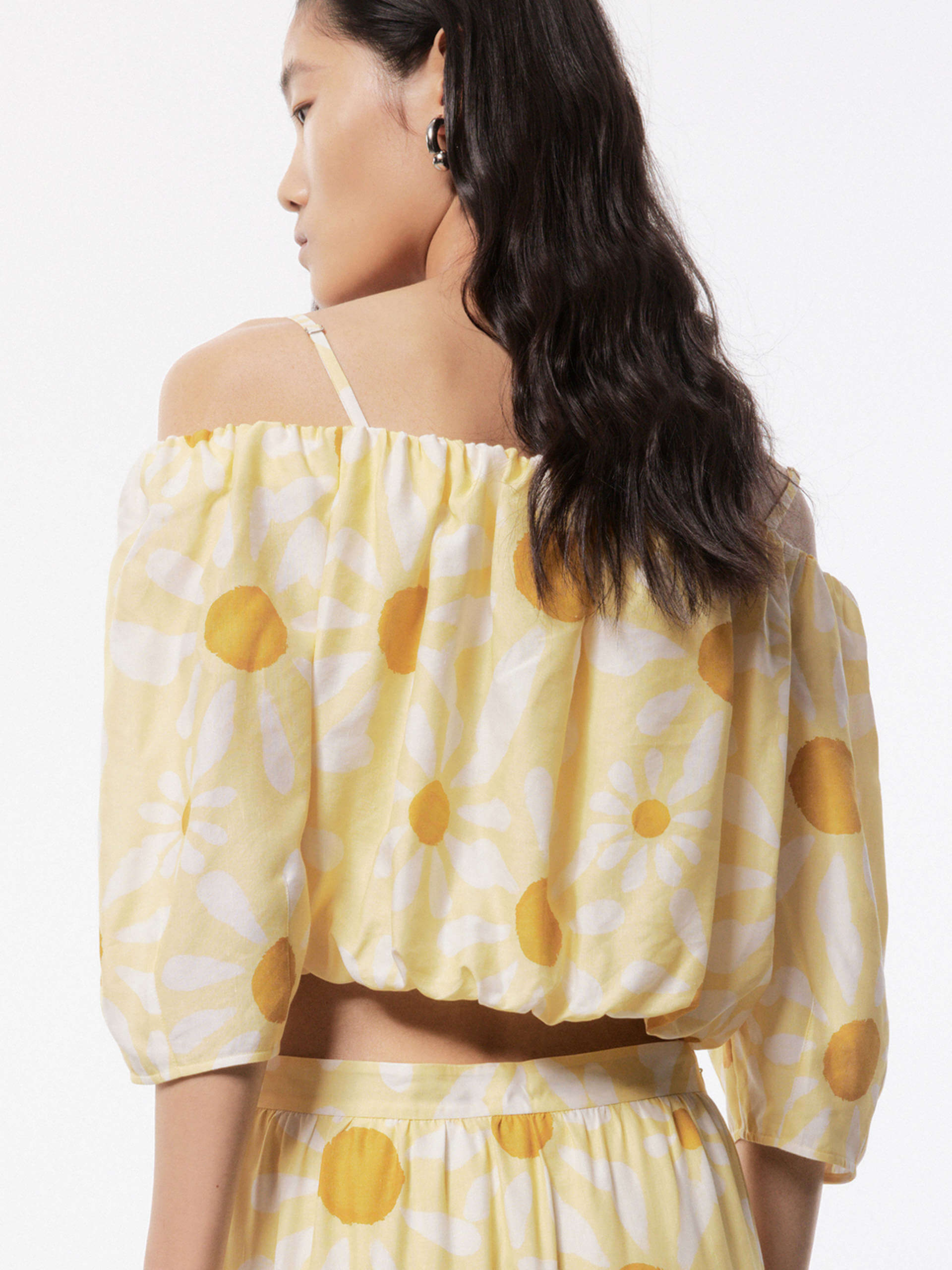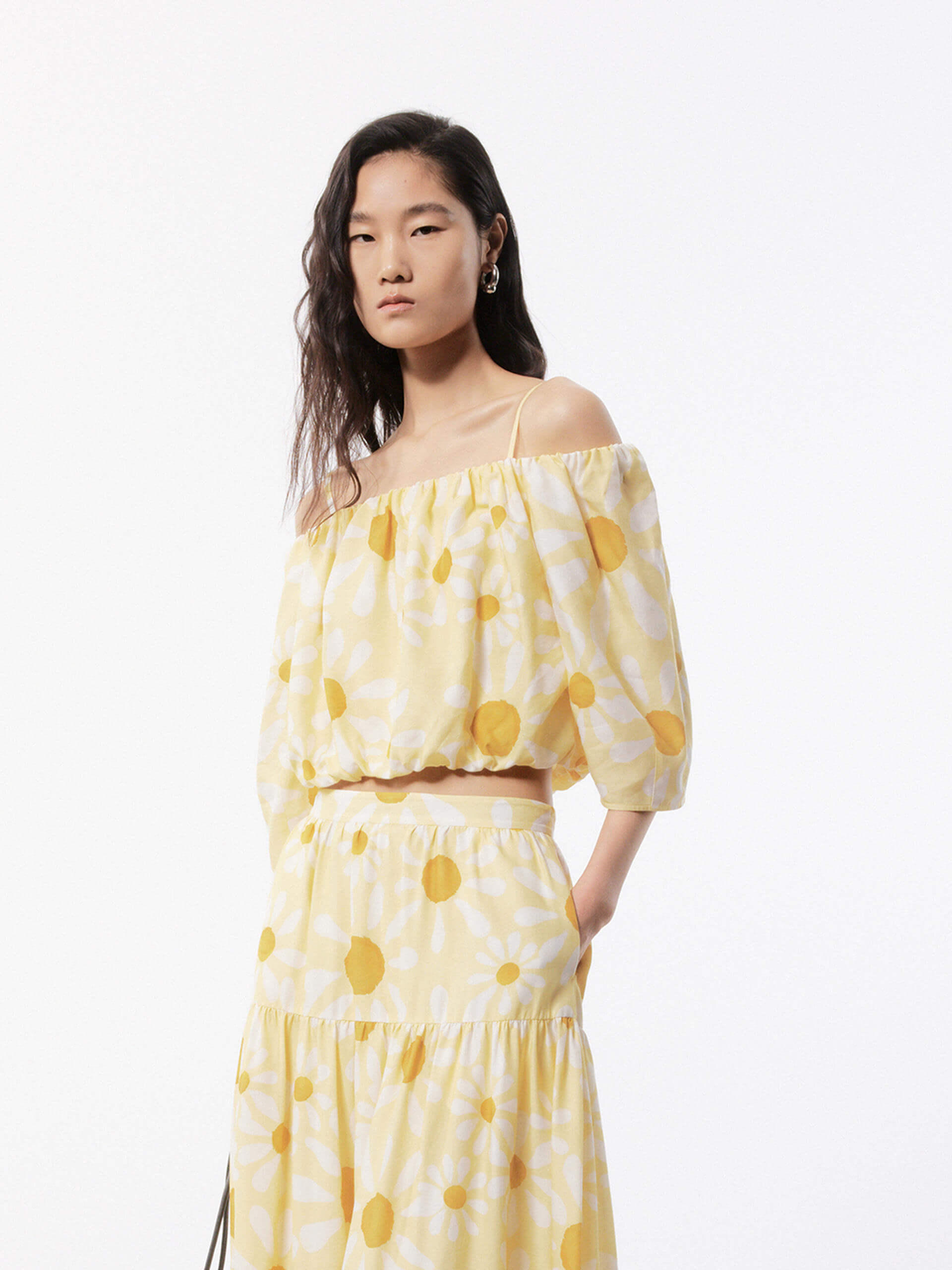 Made from a blend of Lyocell and linen fabric, it is lightweight and breathable, making it ideal for keeping cool in hot temperatures. Feature a floral print design that adds a feminine and romantic touch for holiday outings. The off-shoulder design adds a playful and flirty touch, while the cropped cut keeps it modern and on-trend. Pair it with a coordinating skirt or high-waisted jeans for a stylish look.