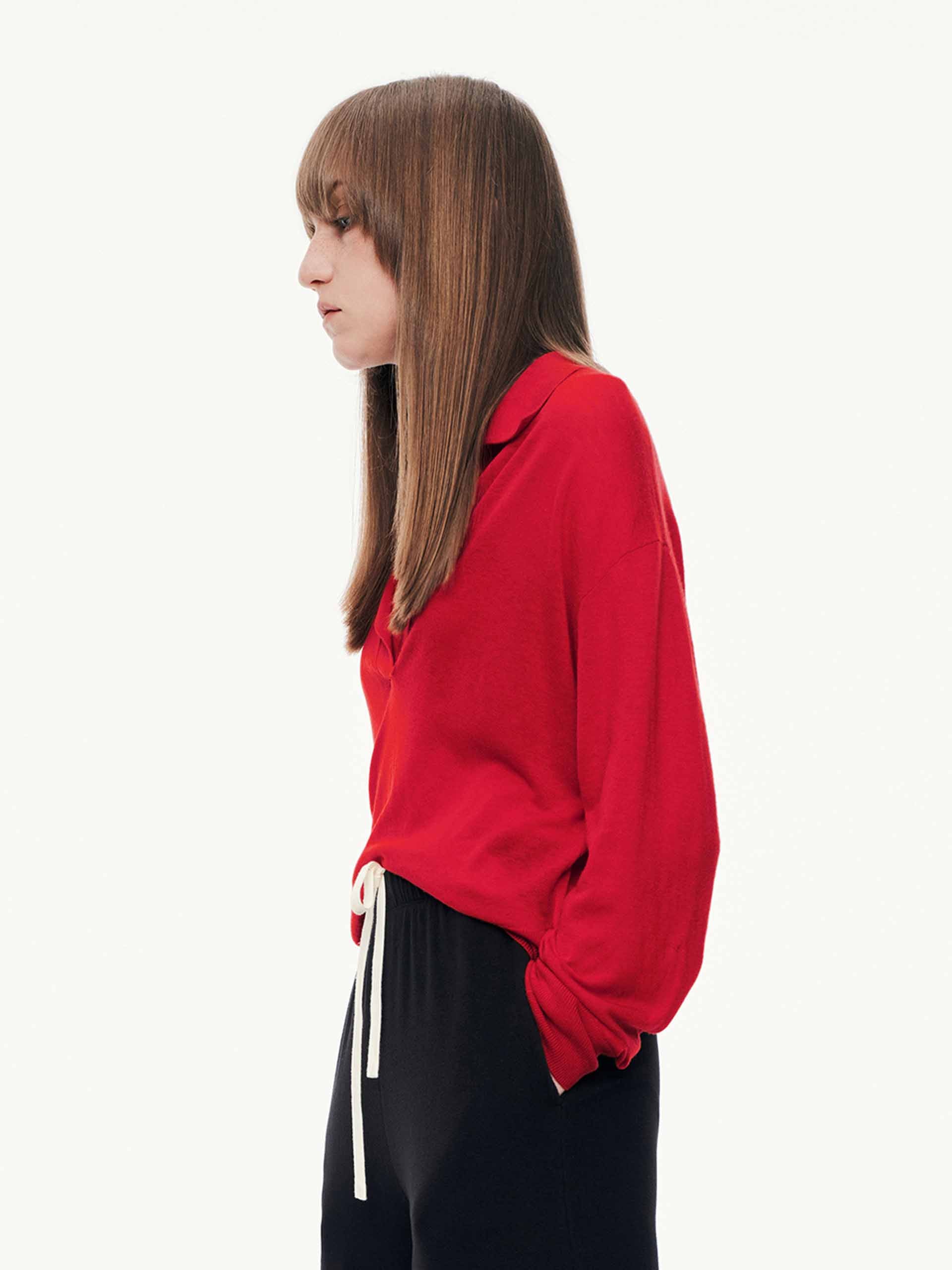- Polo collar and long sleeves detail