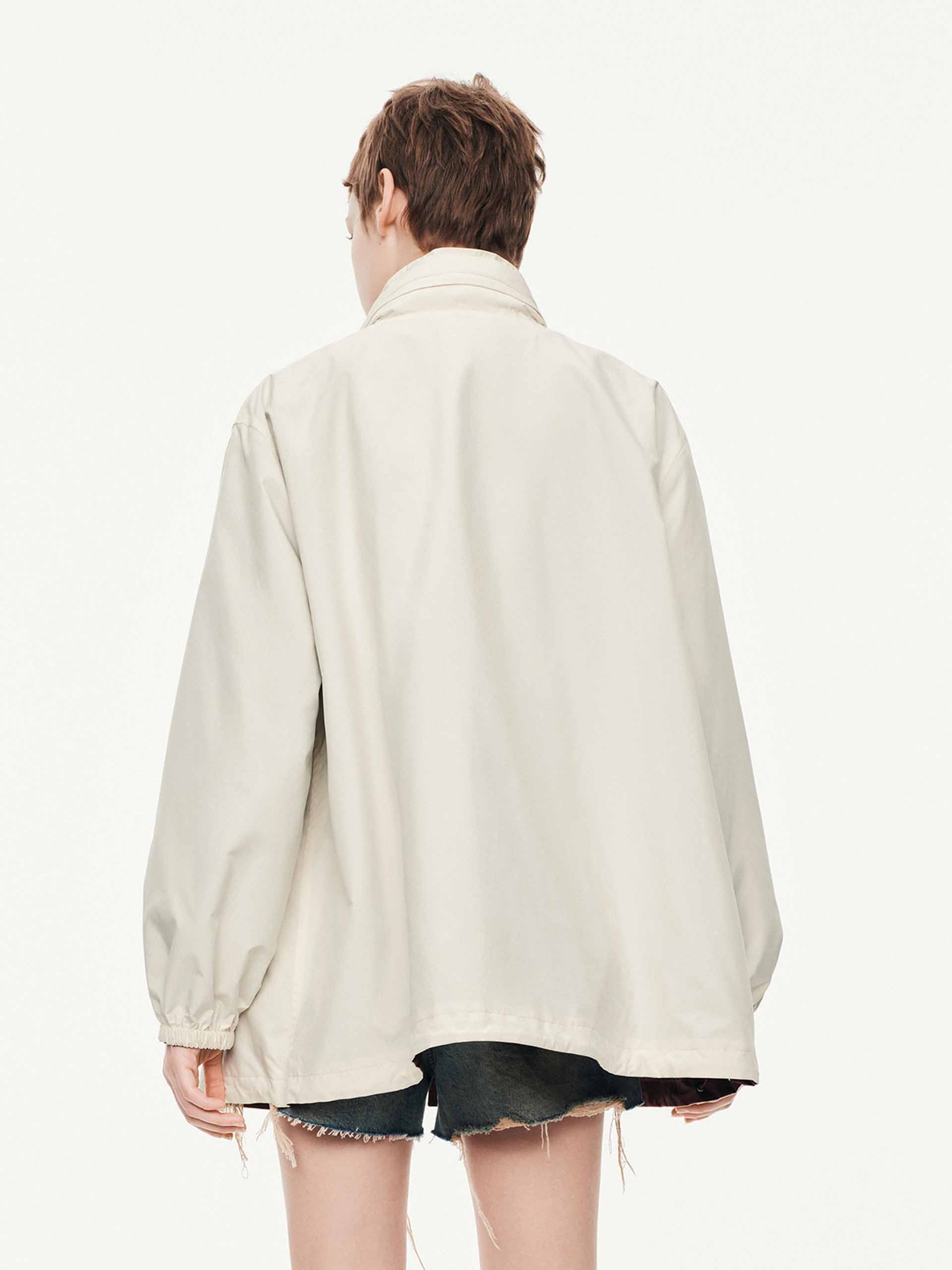 - Two-way zip and snap button closure