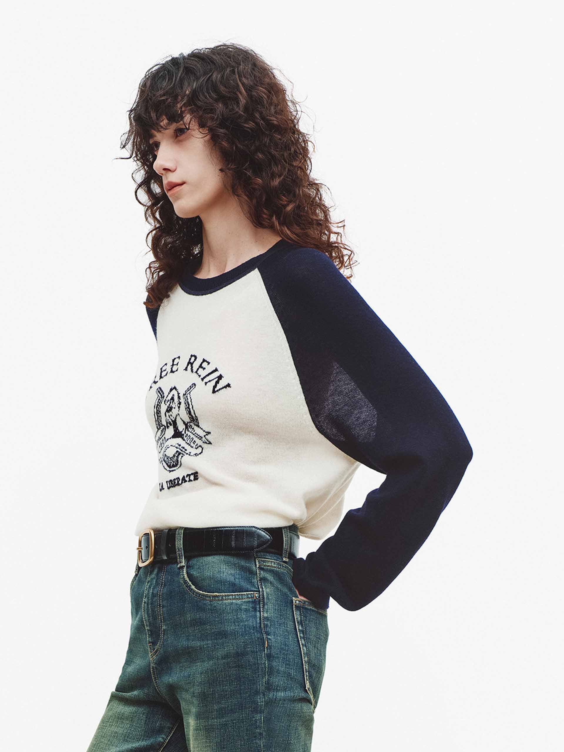 - Round neck and contrast raglan sleeves design