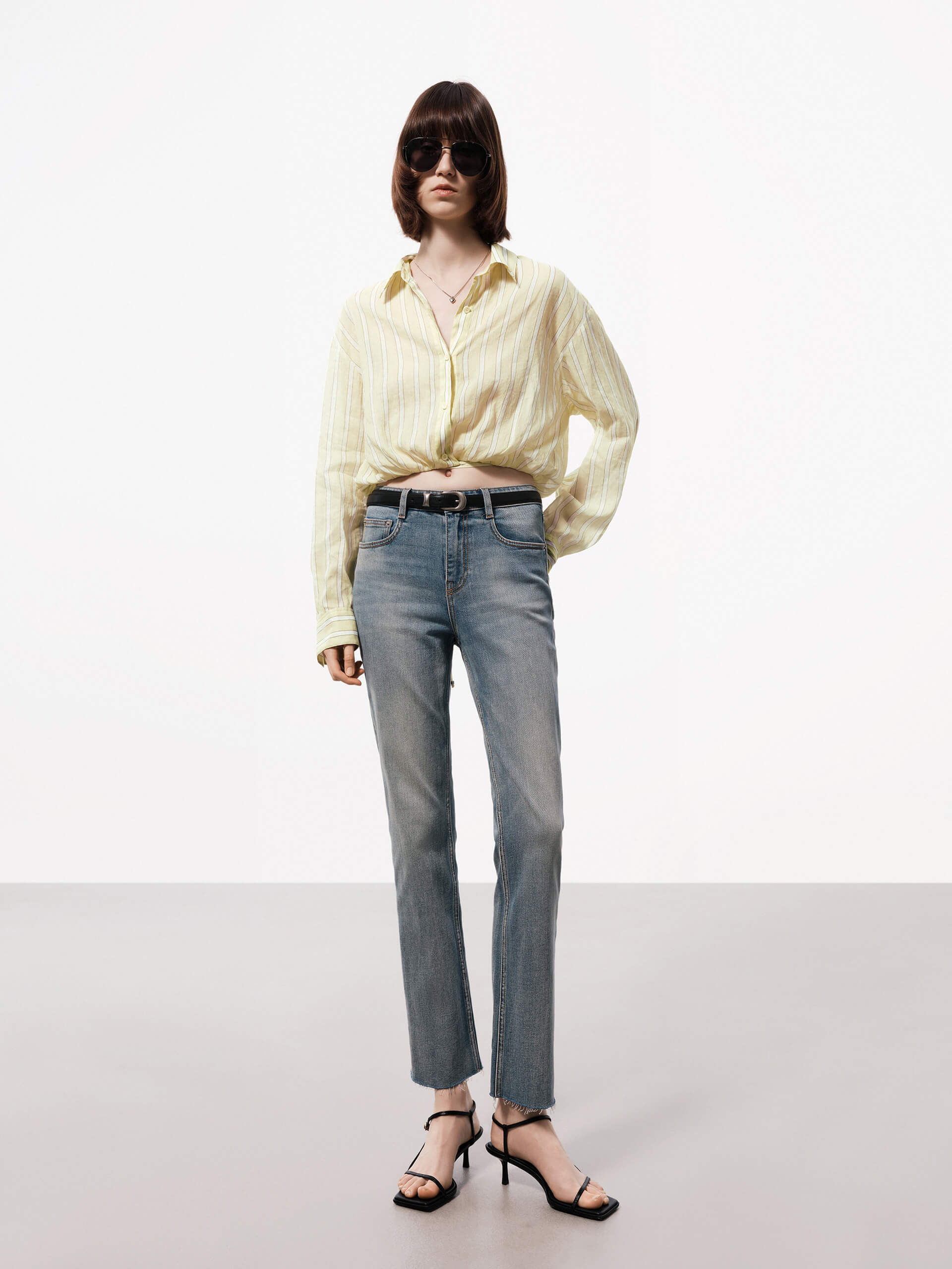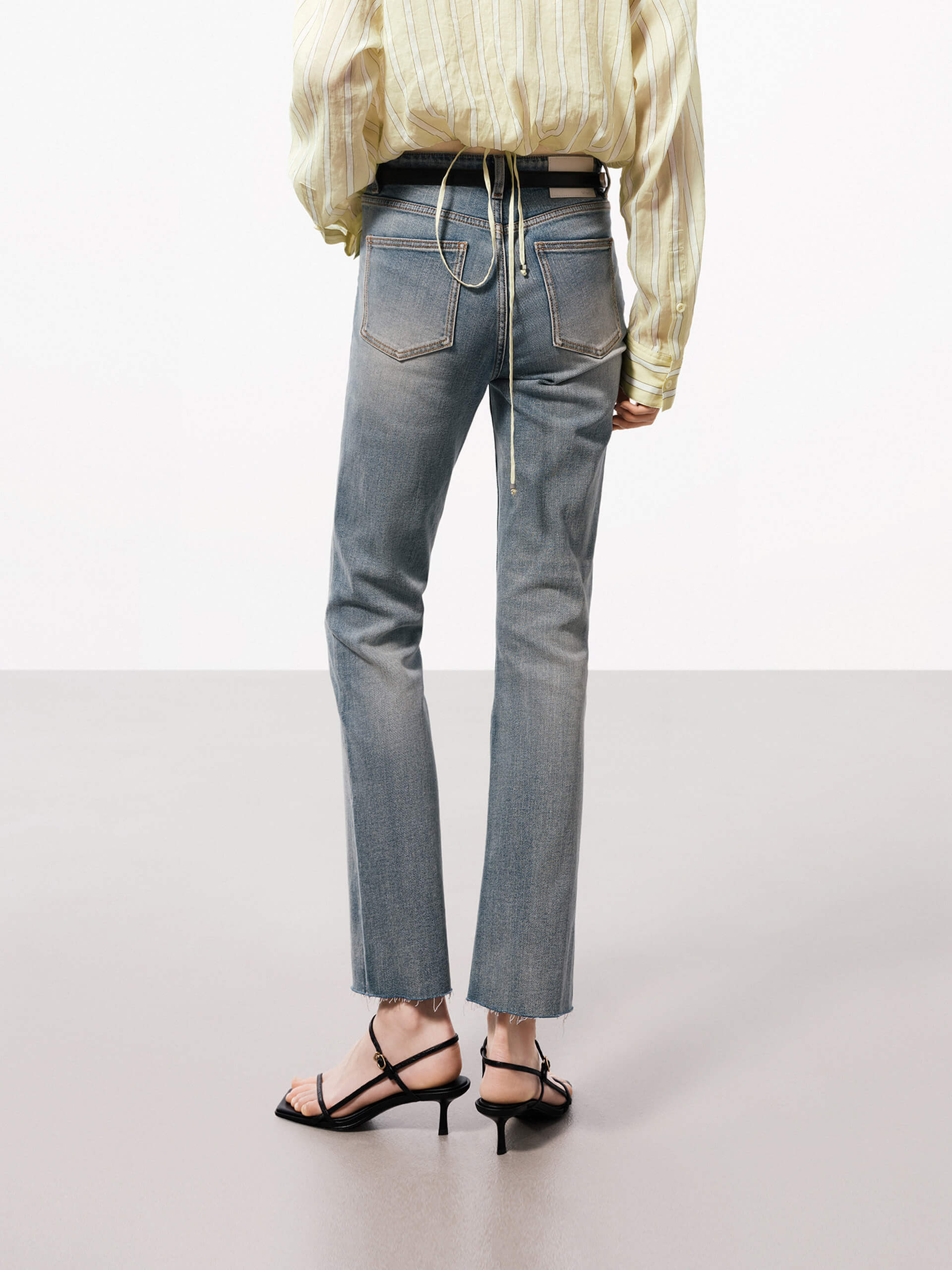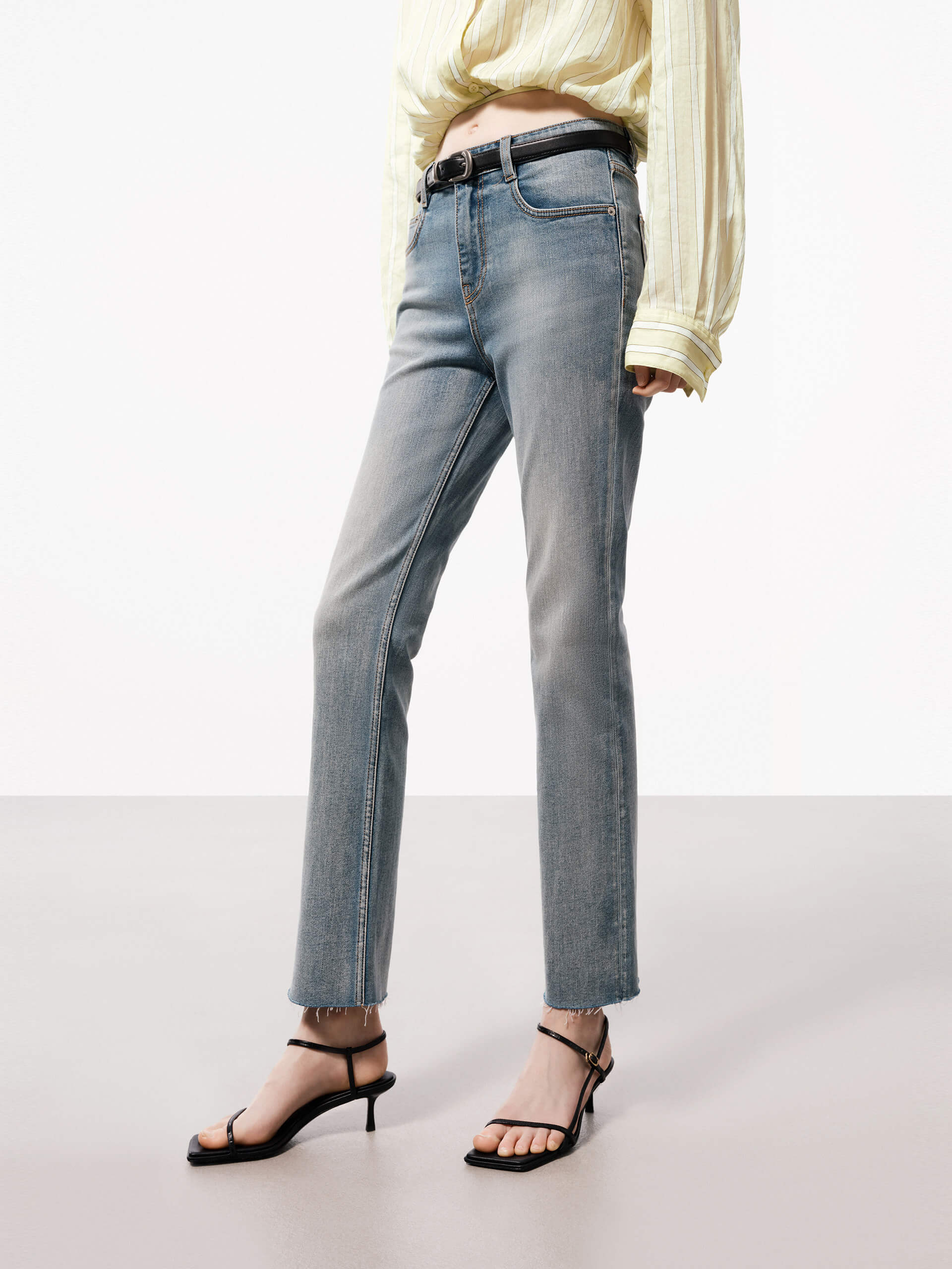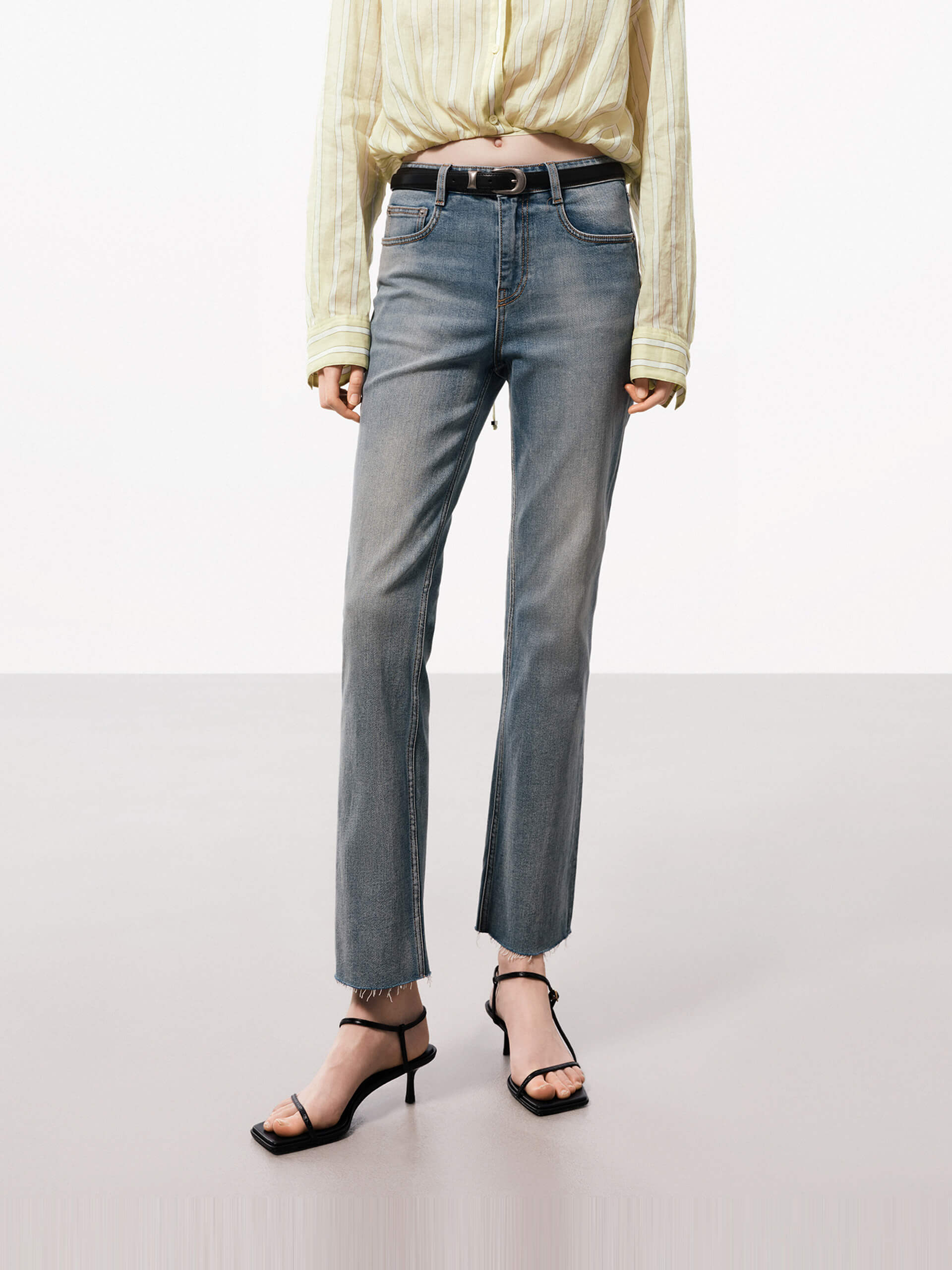 MO&Co. Women's Ankle Raw Detail Denim Jeans