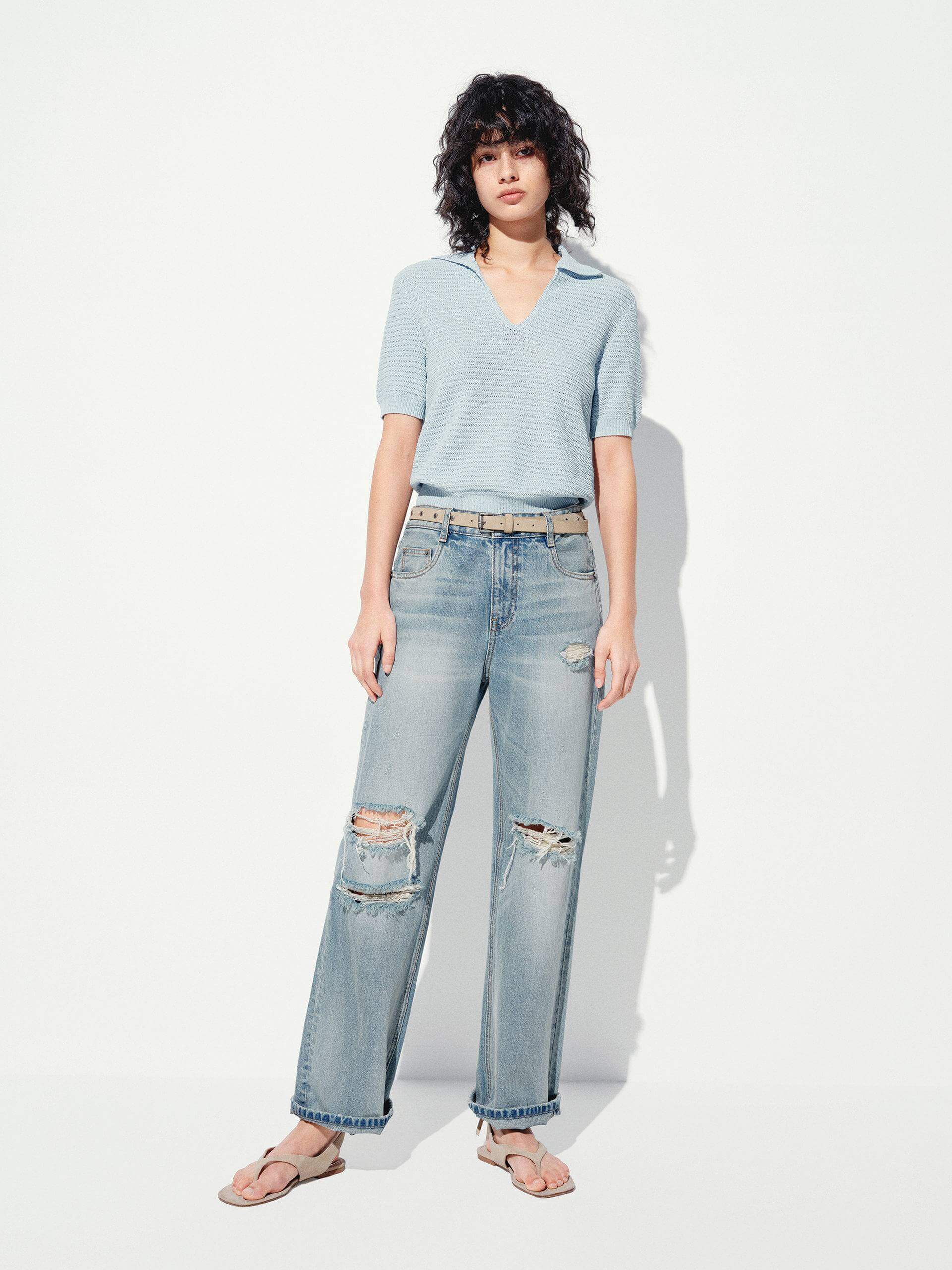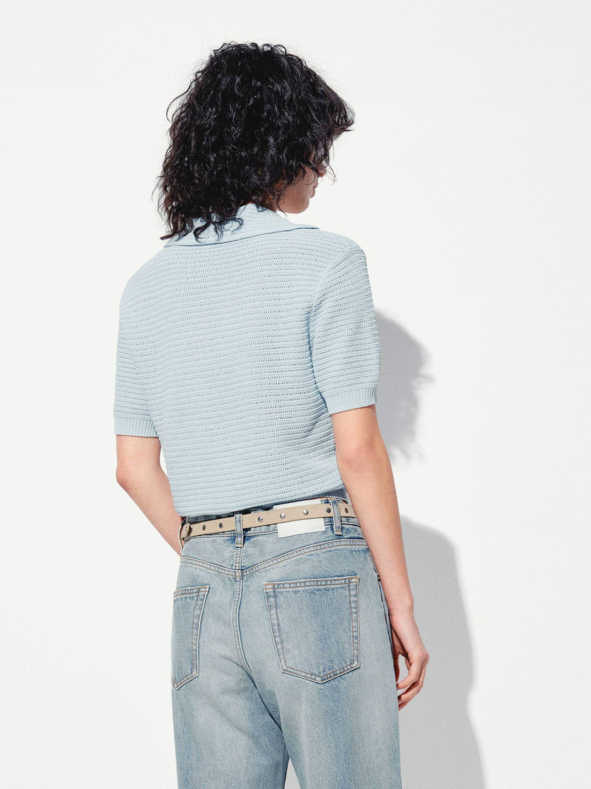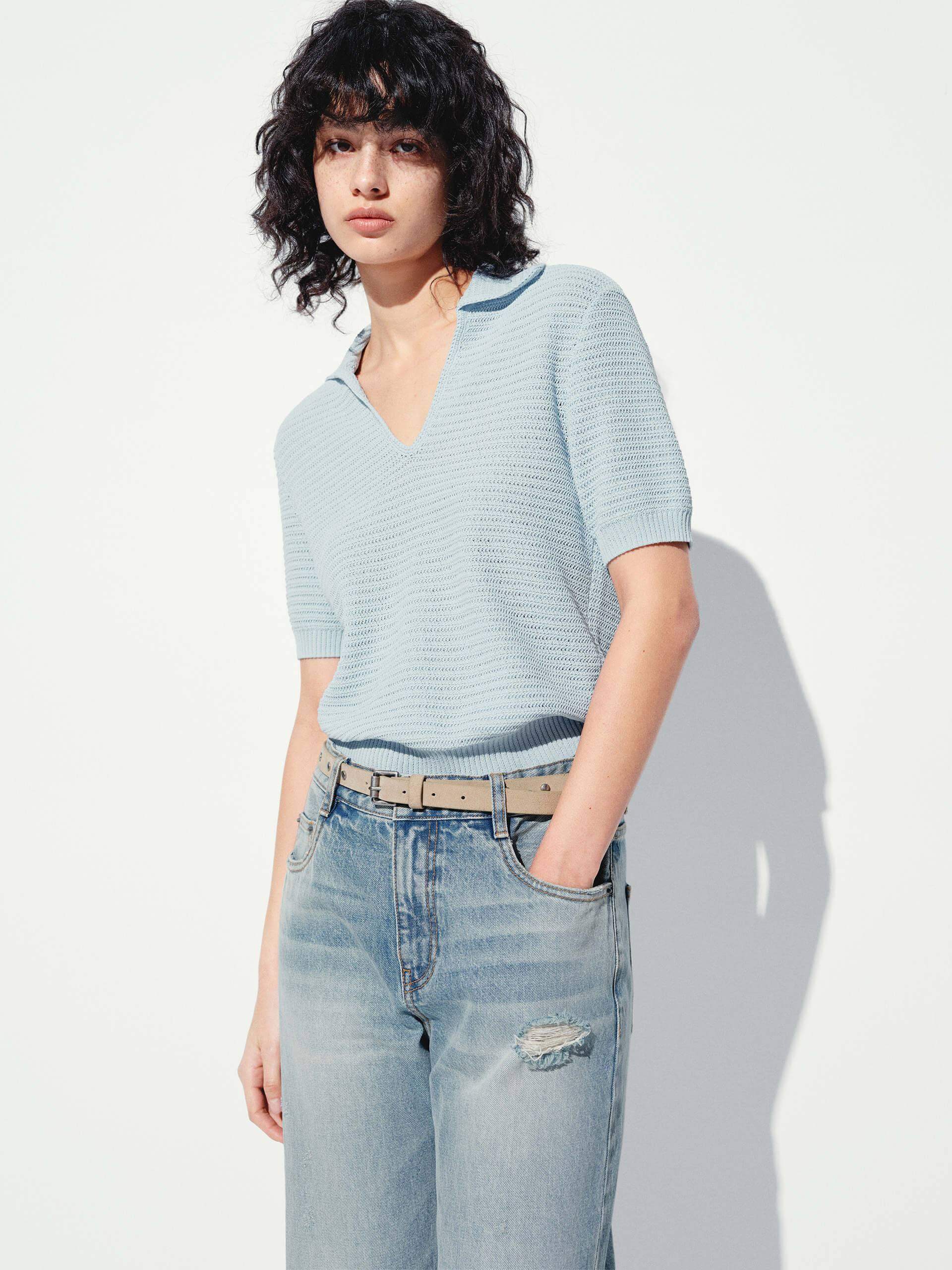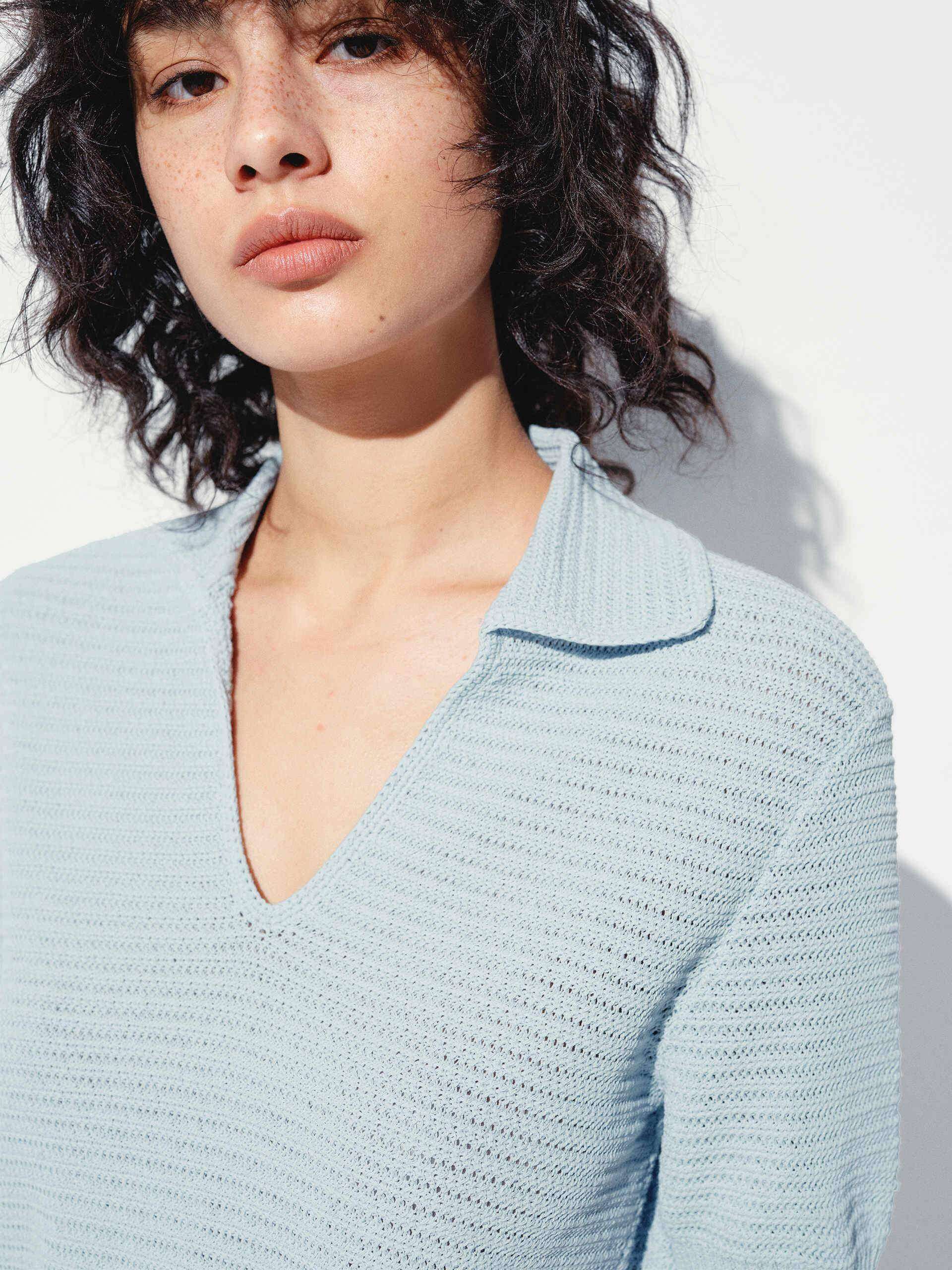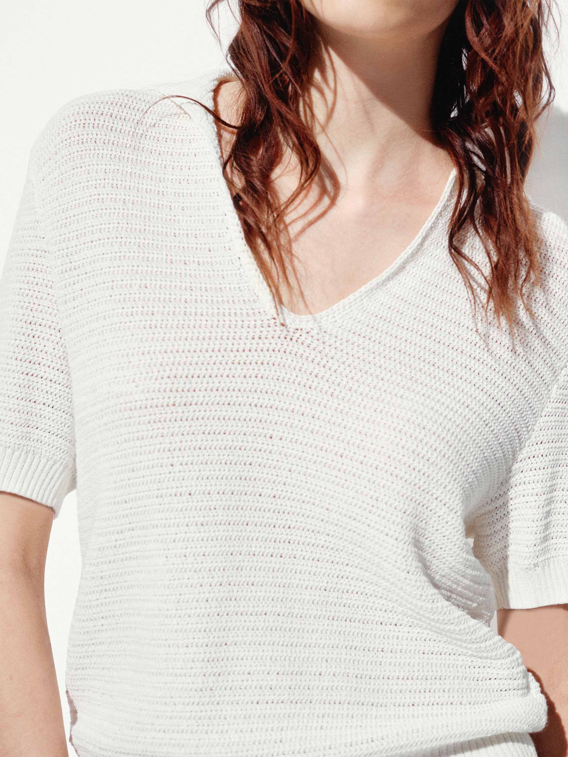 Crafted for effortless everyday wear, this soft and stretchy knit top combines comfort with timeless appeal. The V-neckline adds a touch of elegance. Thoughtful details like ribbed hem and cuffs give this top a refined finish, perfect for layering or wearing on its own.