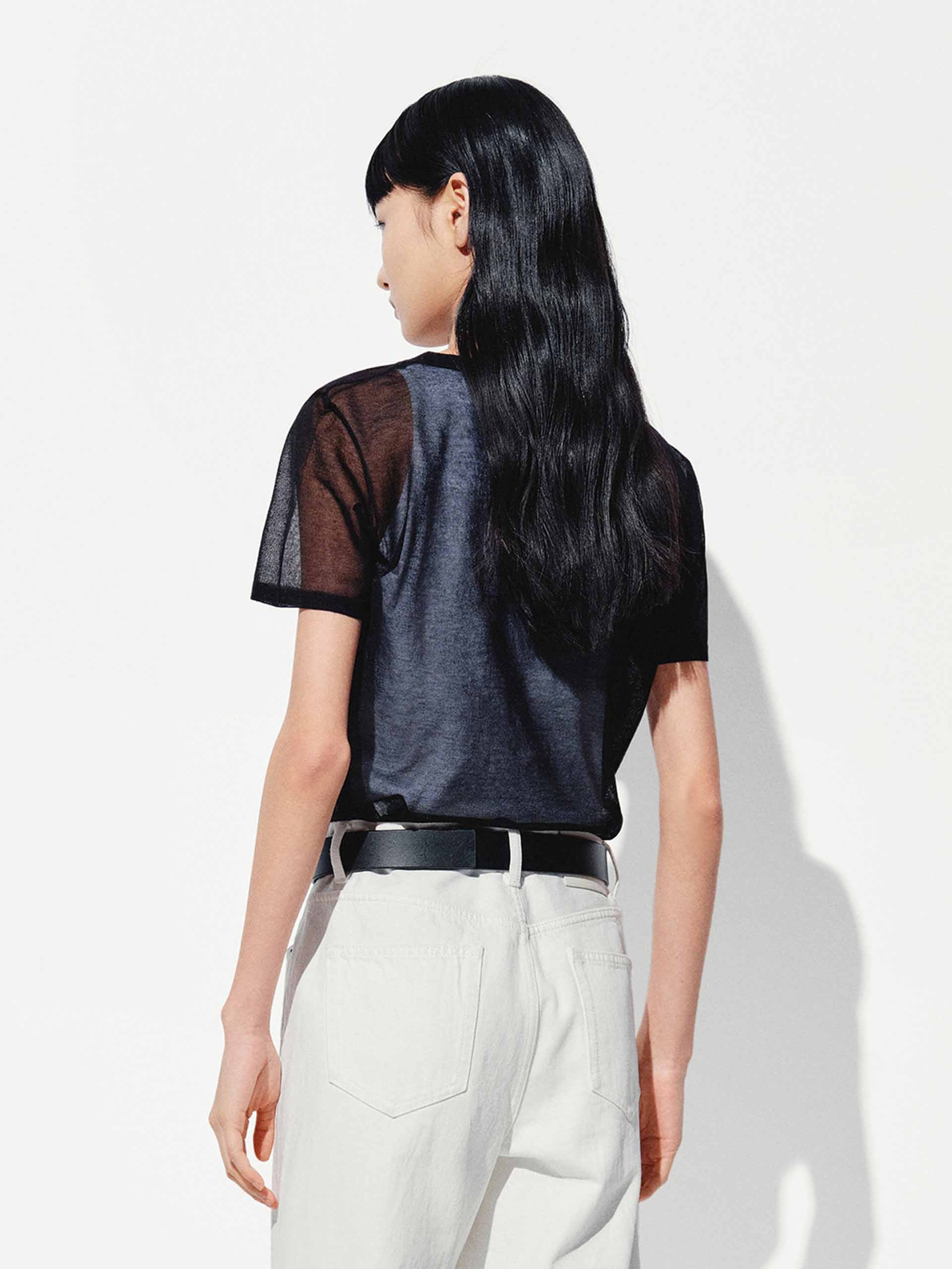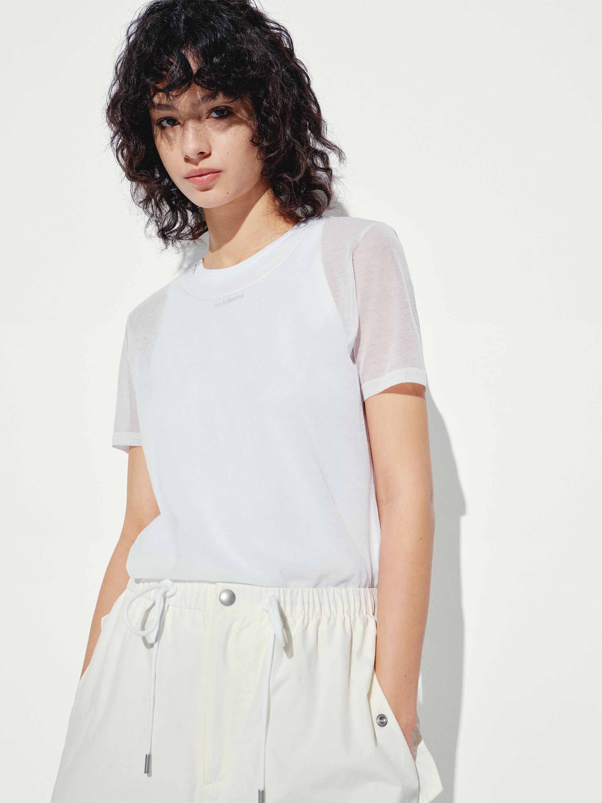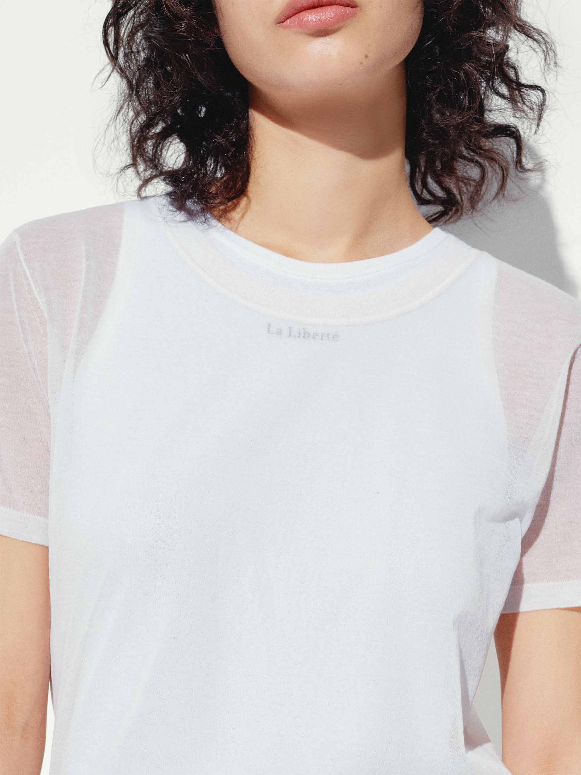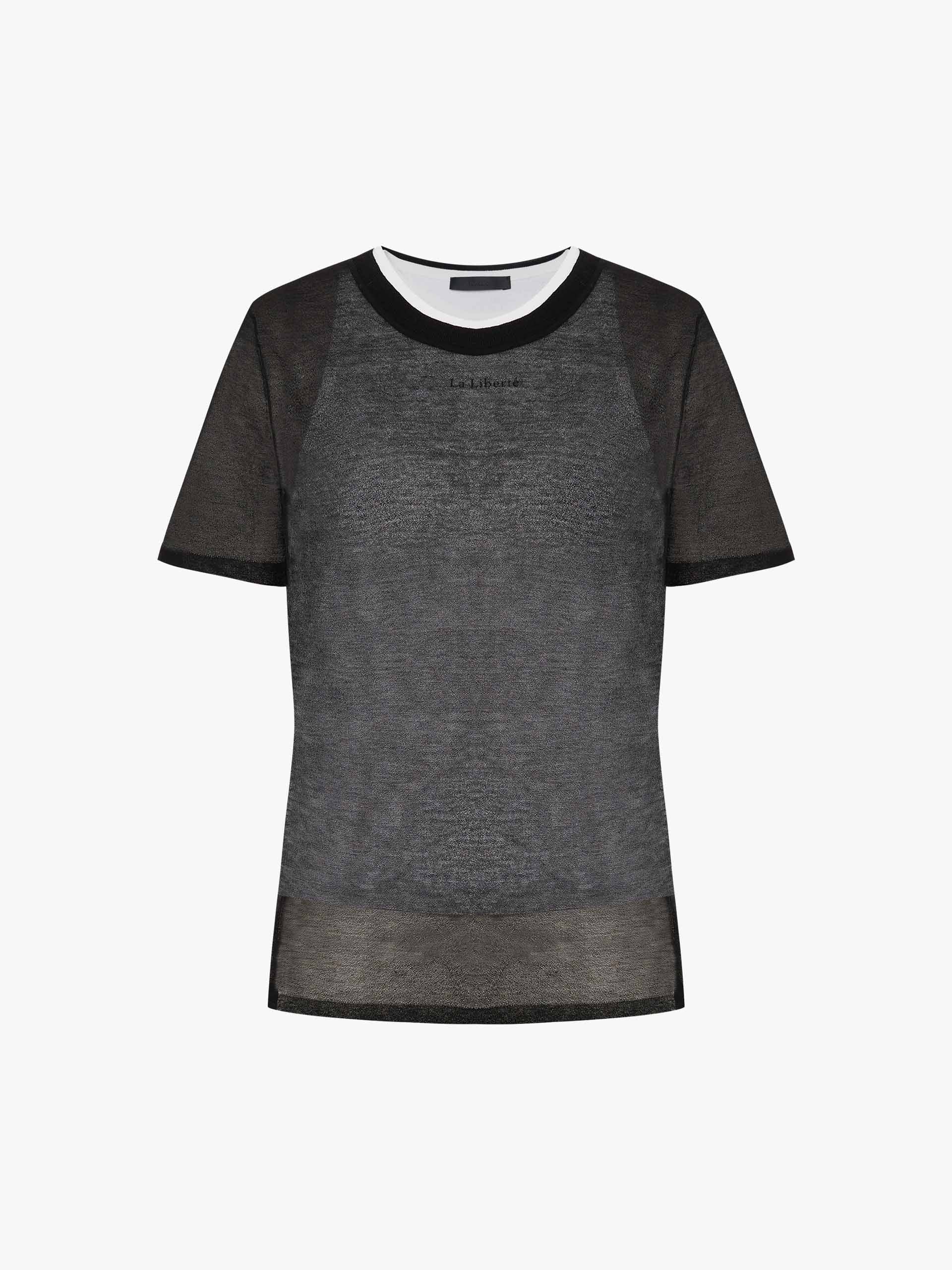 Elevate your everyday style with this effortlessly chic two-piece set, designed for a modern layered look. The regular-fit top features a classic round neck and short sleeves, offering timeless appeal, while the built-in vest lining adds structure and coverage beneath the lightly sheer outer layer. Crafted from featherweight fabric, this set delivers breezy comfort with a touch of delicate allure.