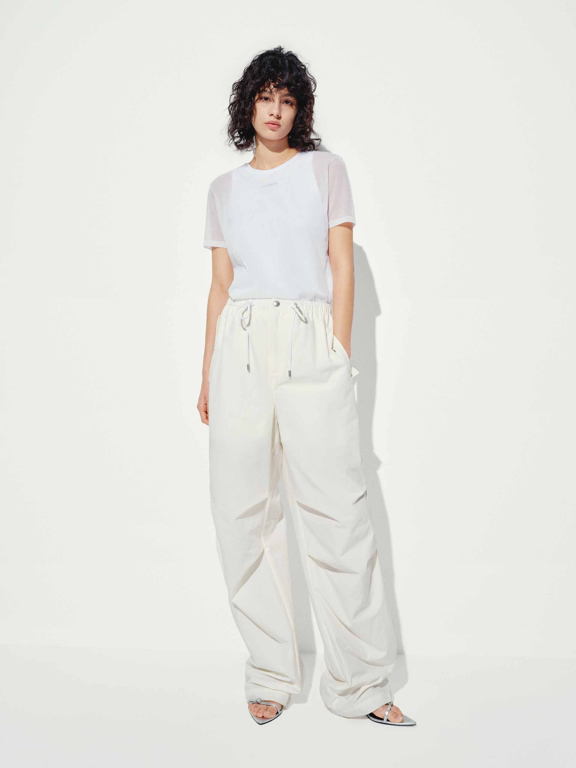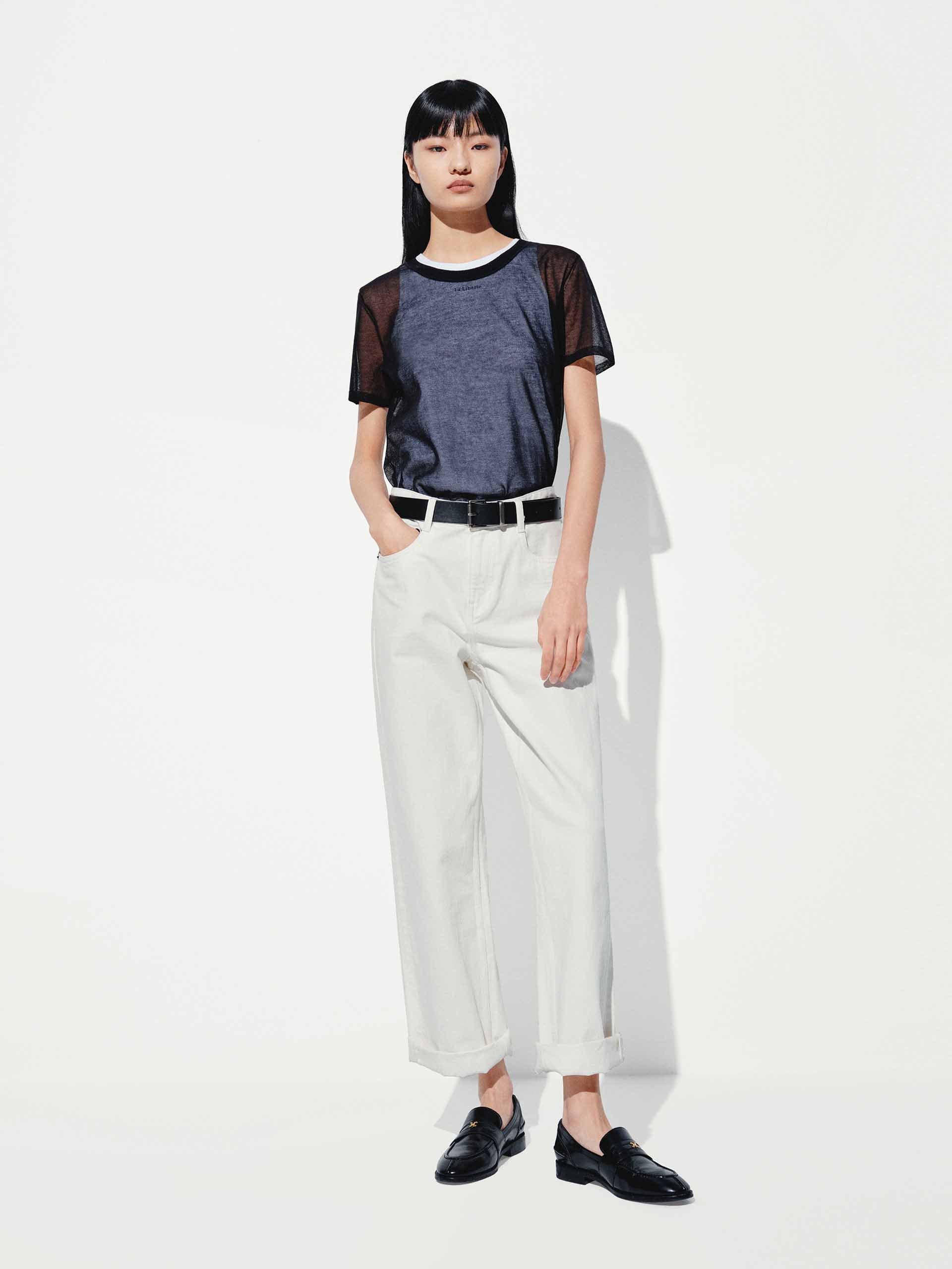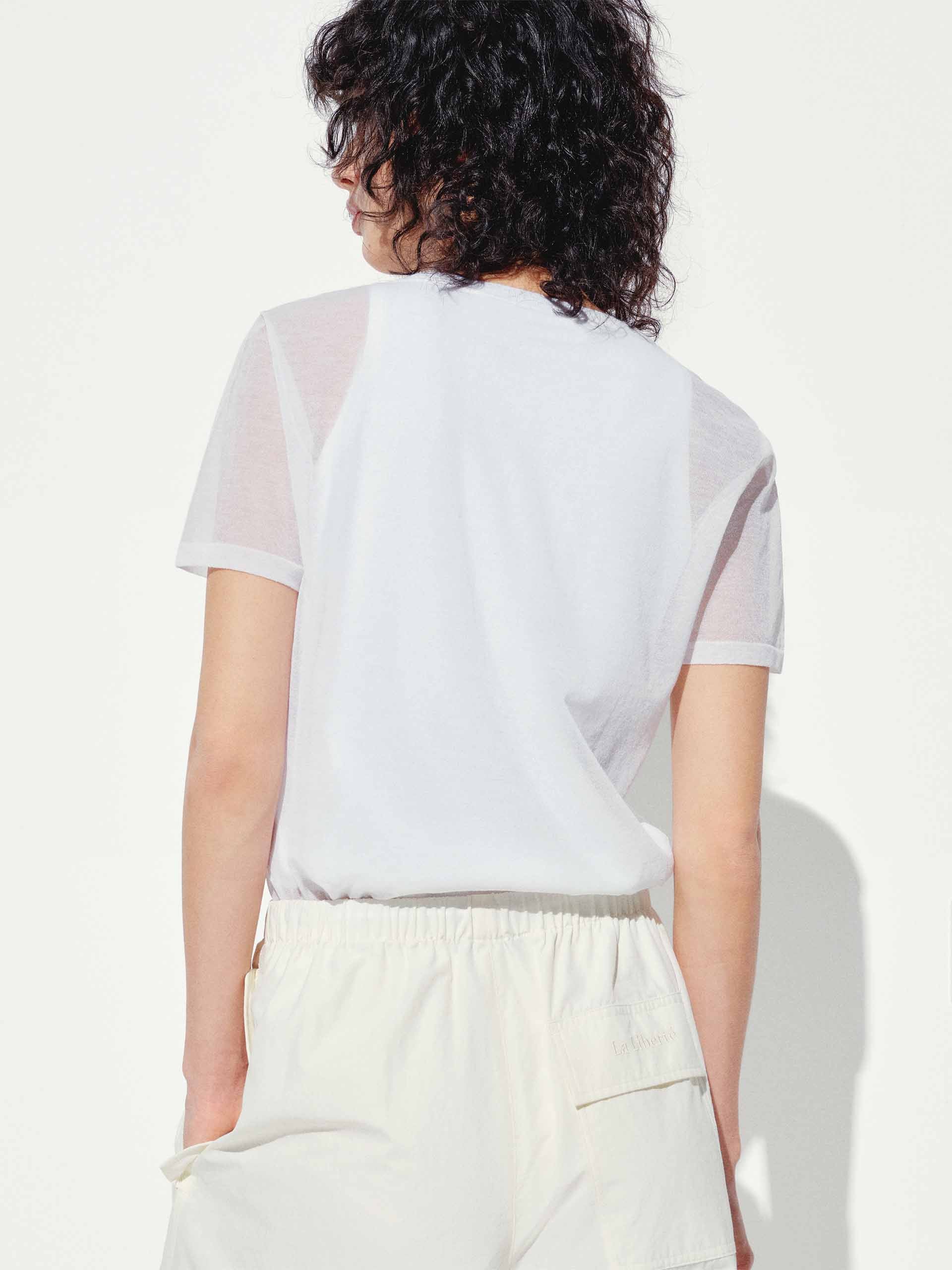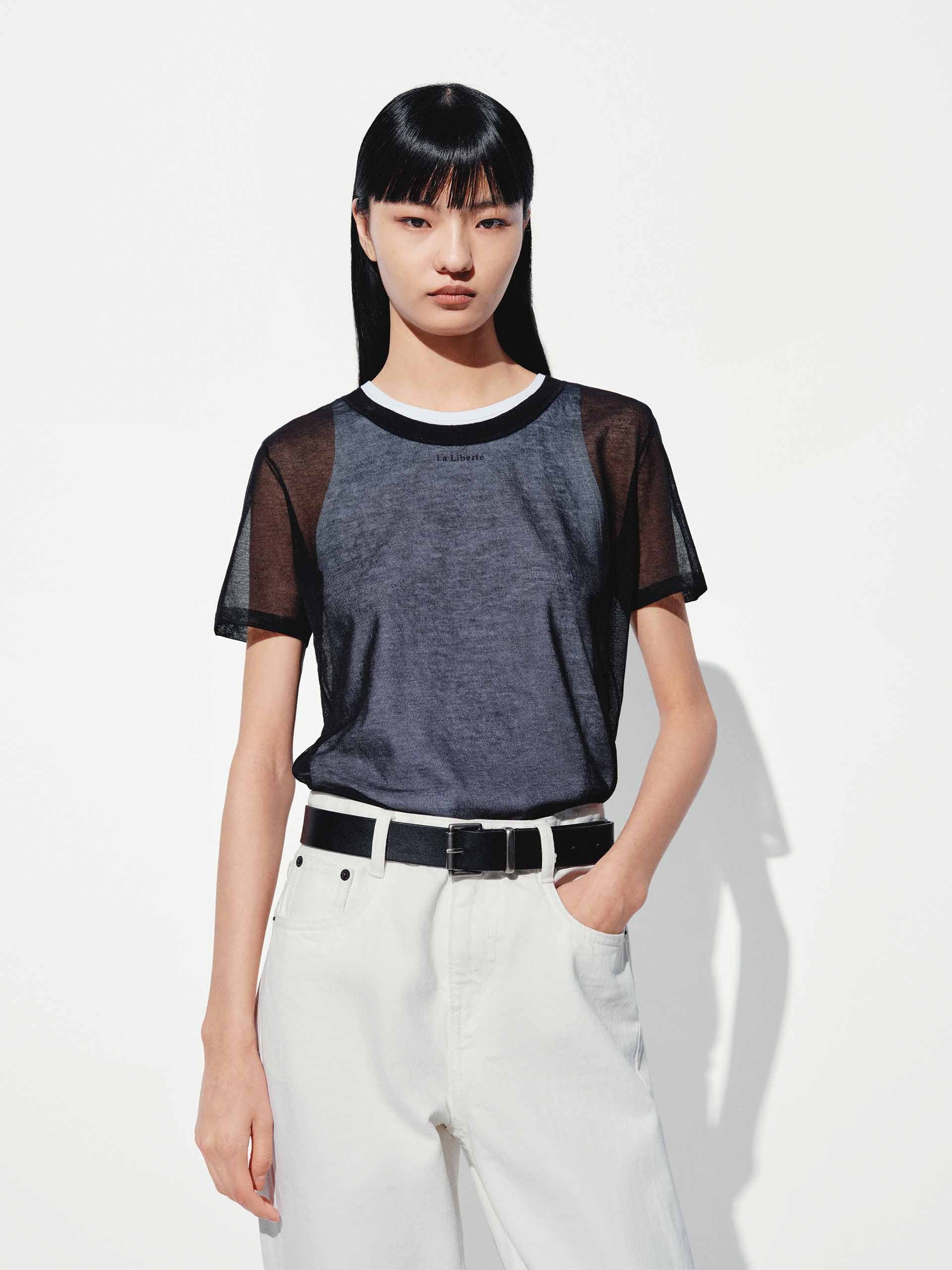 Elevate your everyday style with this effortlessly chic two-piece set, designed for a modern layered look. The regular-fit top features a classic round neck and short sleeves, offering timeless appeal, while the built-in vest lining adds structure and coverage beneath the lightly sheer outer layer. Crafted from featherweight fabric, this set delivers breezy comfort with a touch of delicate allure.