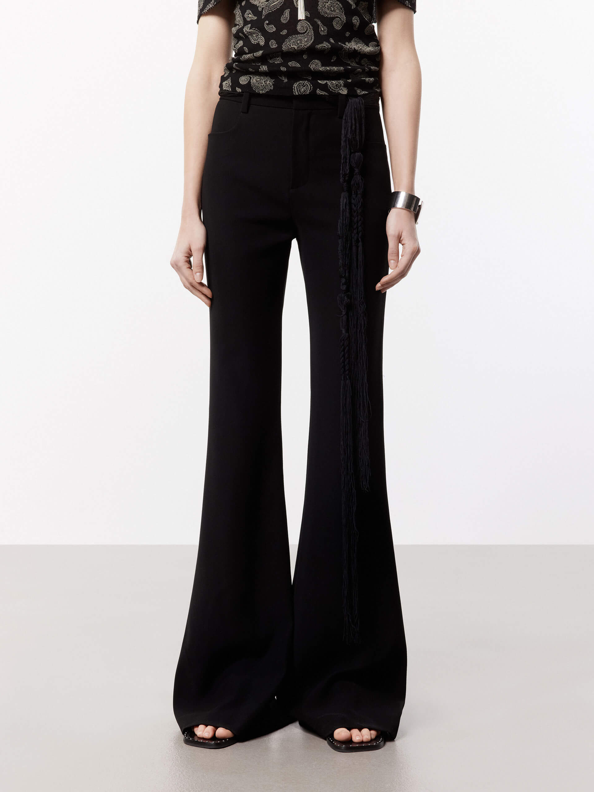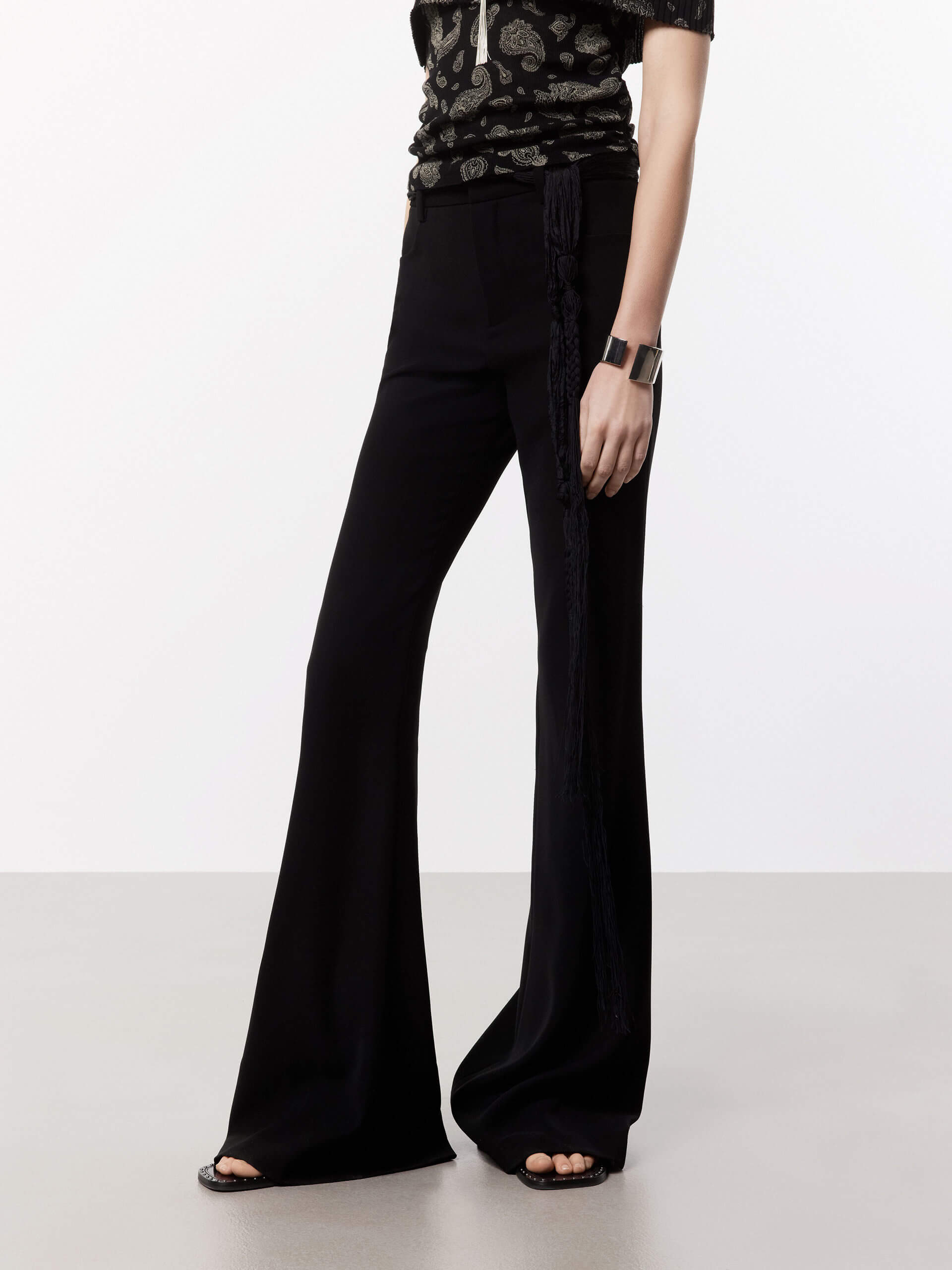 This style of pants is often associated with the 1970s fashion trend and is characterized by its full-length and wide-leg, flowing legs. The concealed closure adds a sleek and polished look to the pants, while the side slip pockets provide a functional and practical touch. Paired with a variety of tops, including tucked-in blouses, t-shirts, and crop tops, and look great with platform shoes or heels for added height and drama.