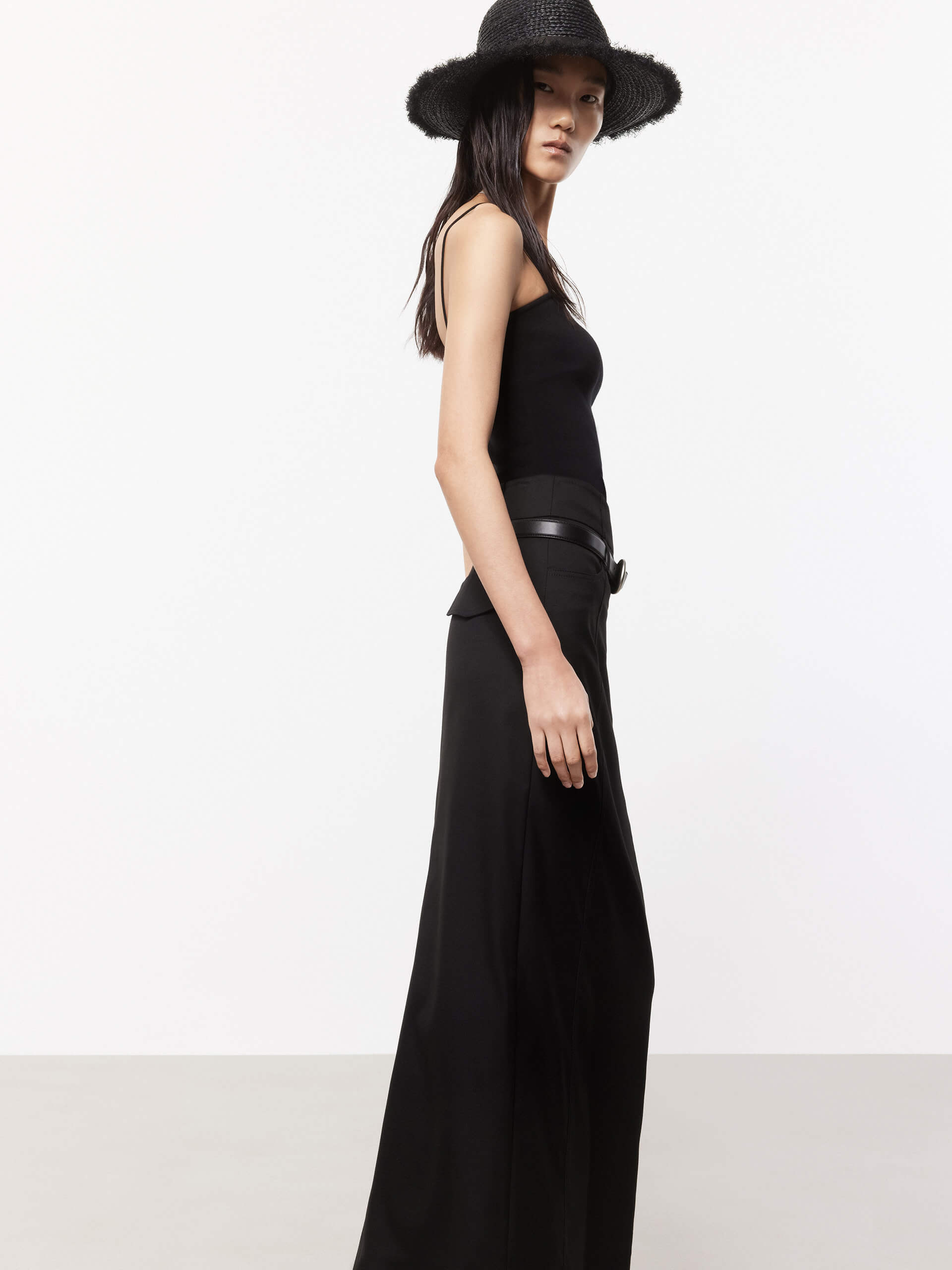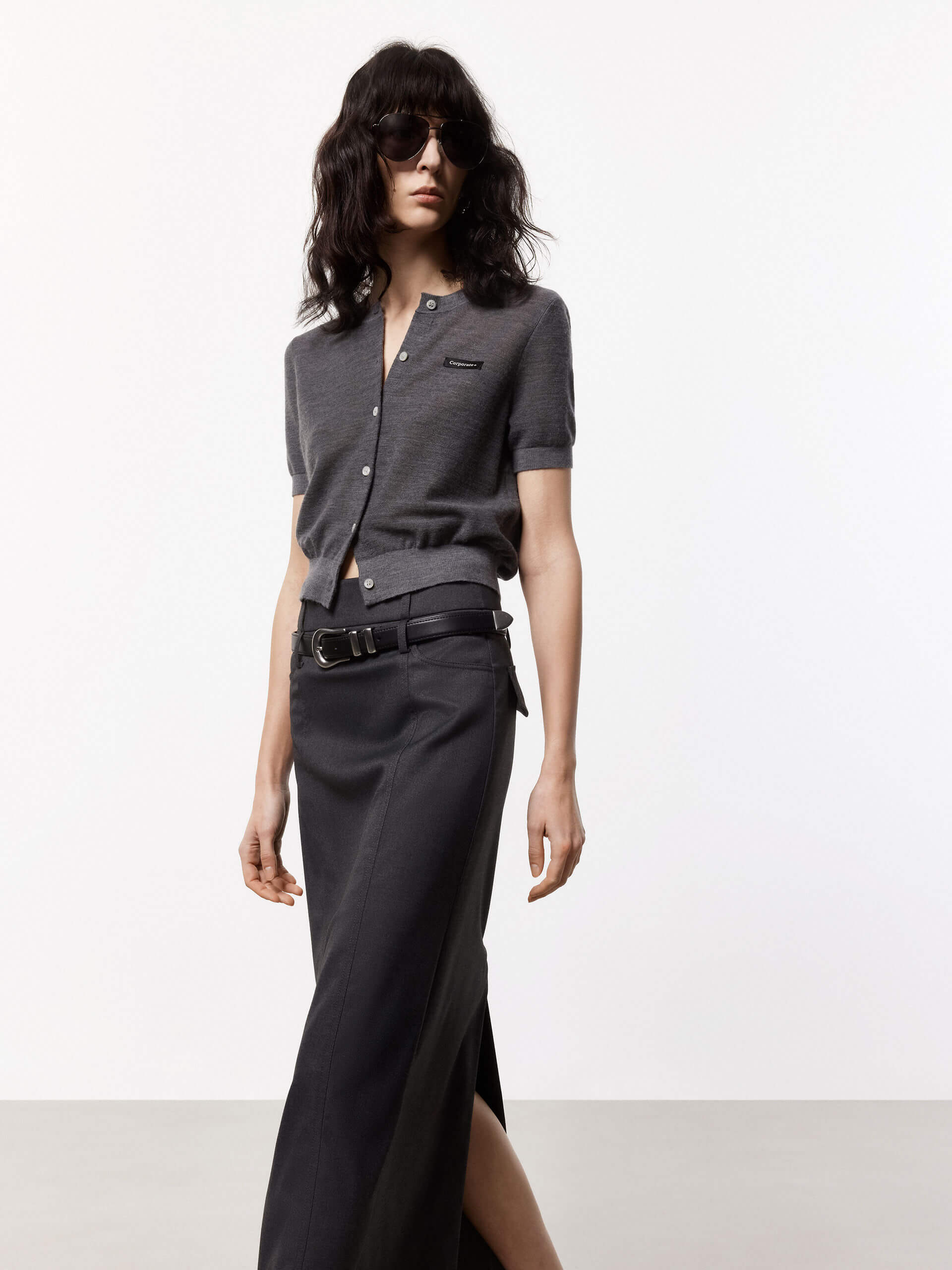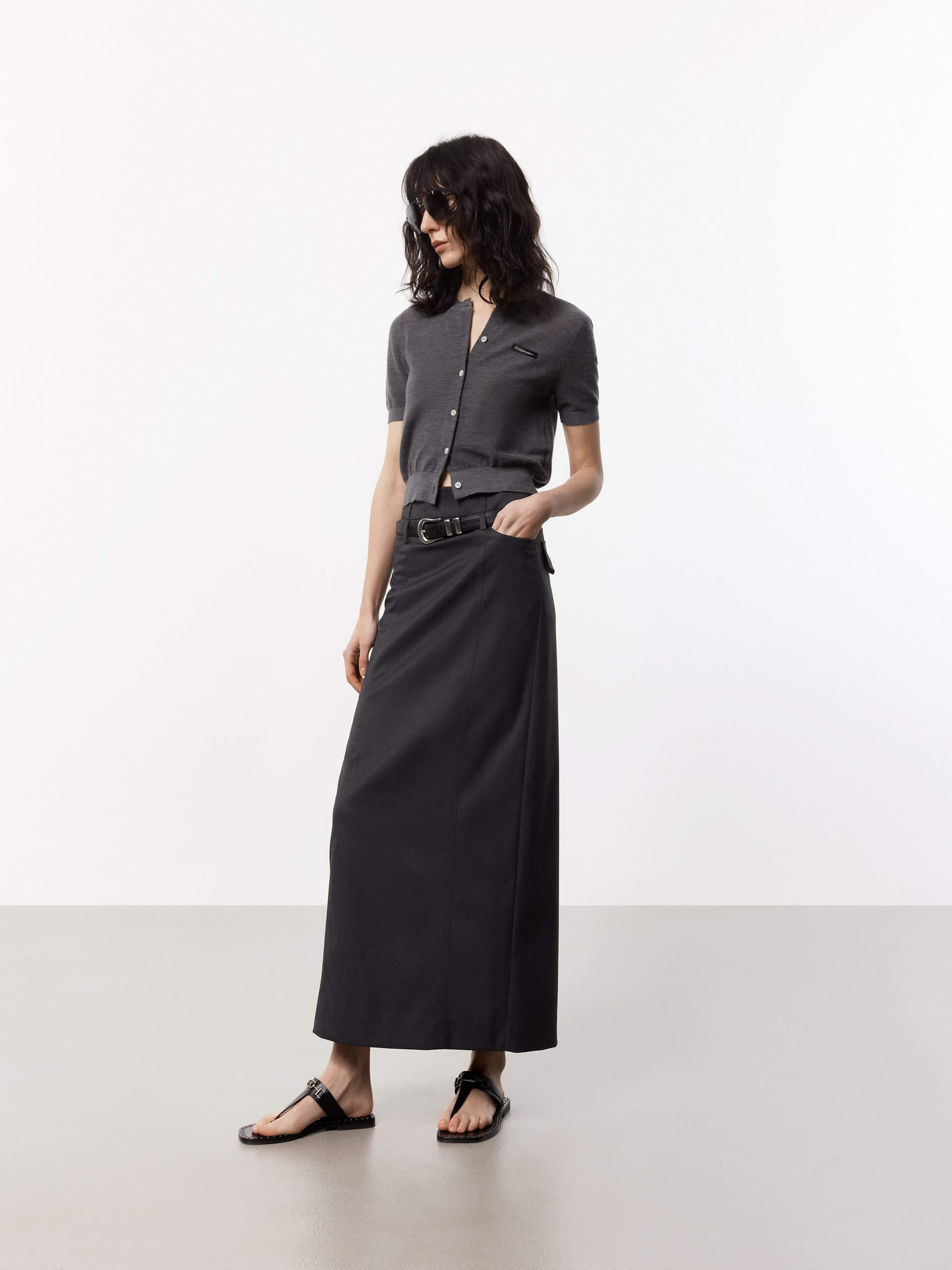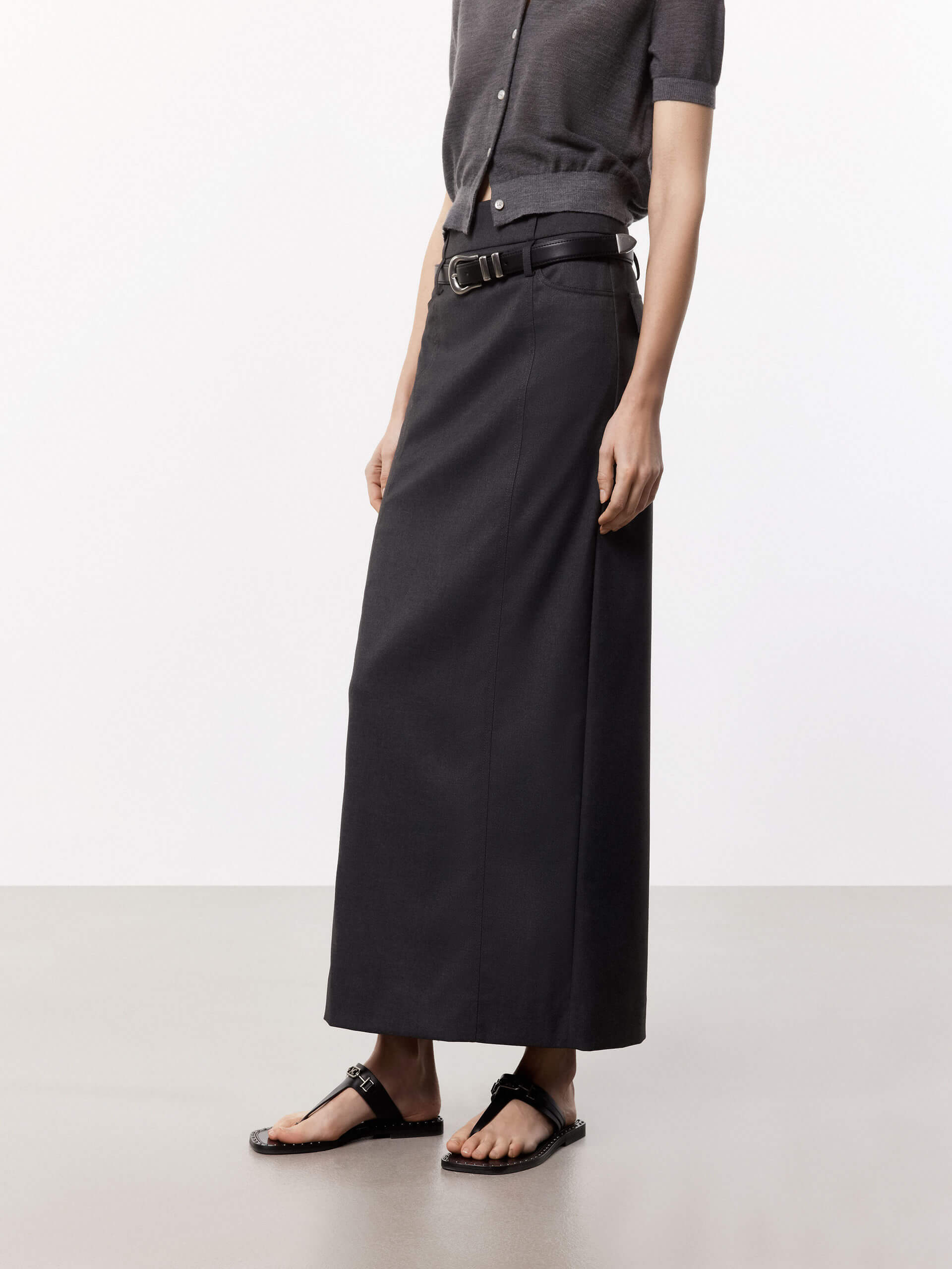 This skirt with a straight-cut silhouette is a versatile and elegant piece that can be dressed up or down depending on the occasion. Made from well-made fabric, this skirt is designed to drape beautifully and provide a comfortable fit. Features a wide waist design and the back slit detail adds a touch of sophistication and allows for easy movement. Pair it with a t-shirt and sandals for a laid-back vibe.