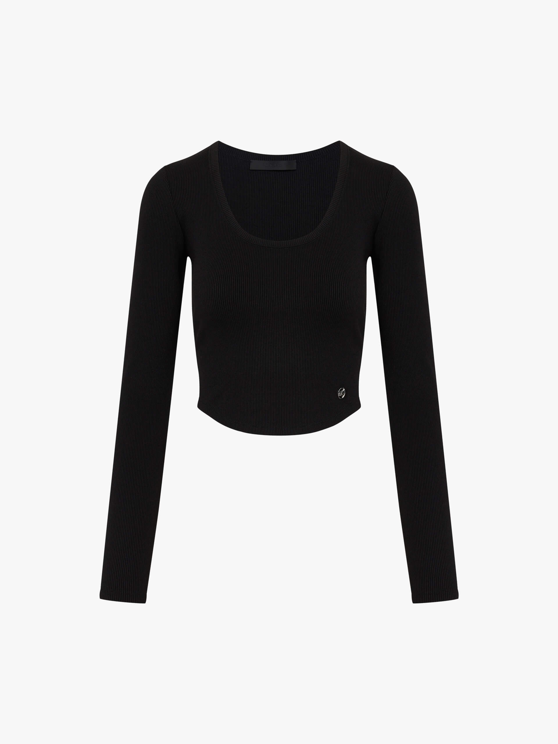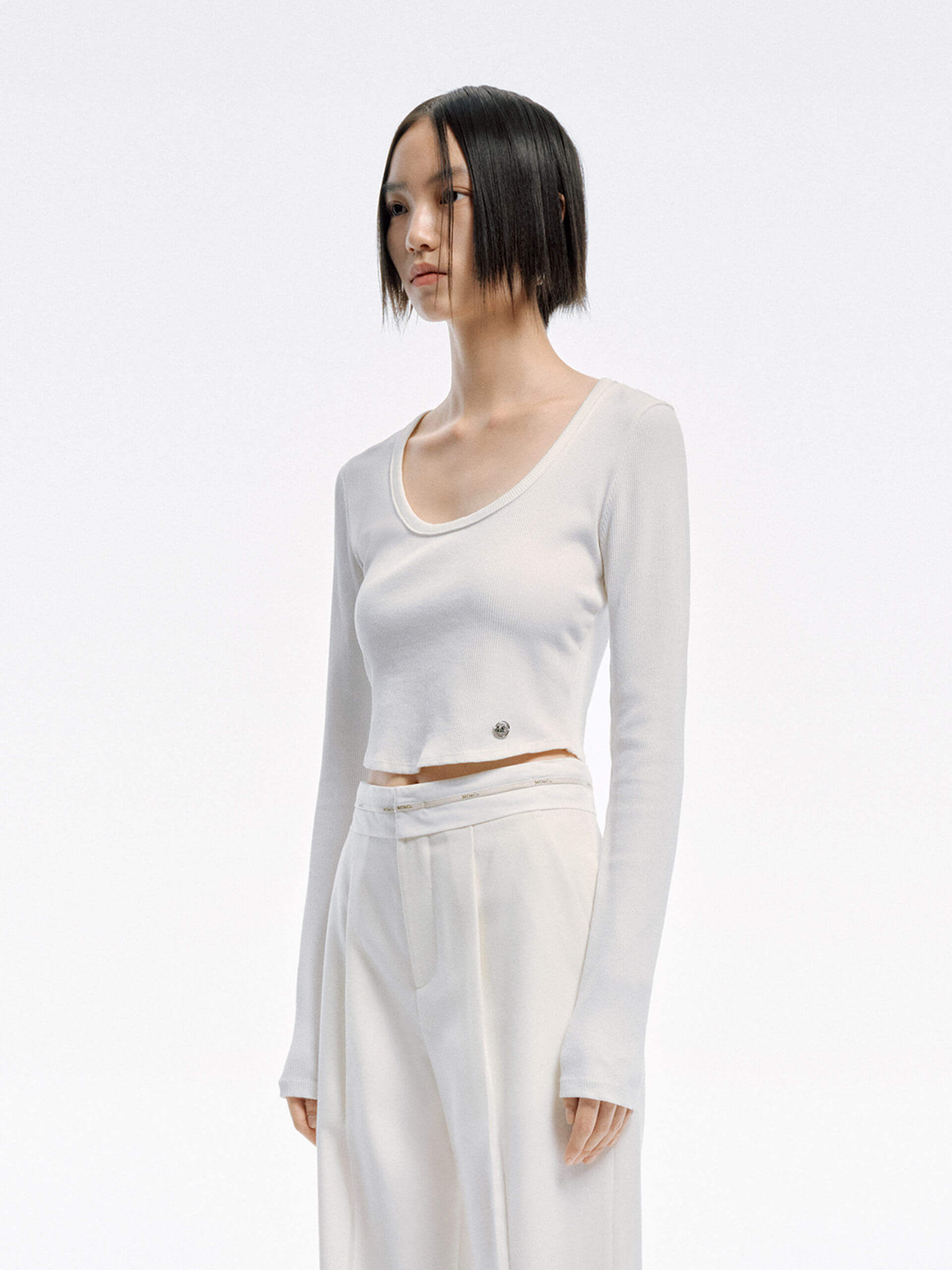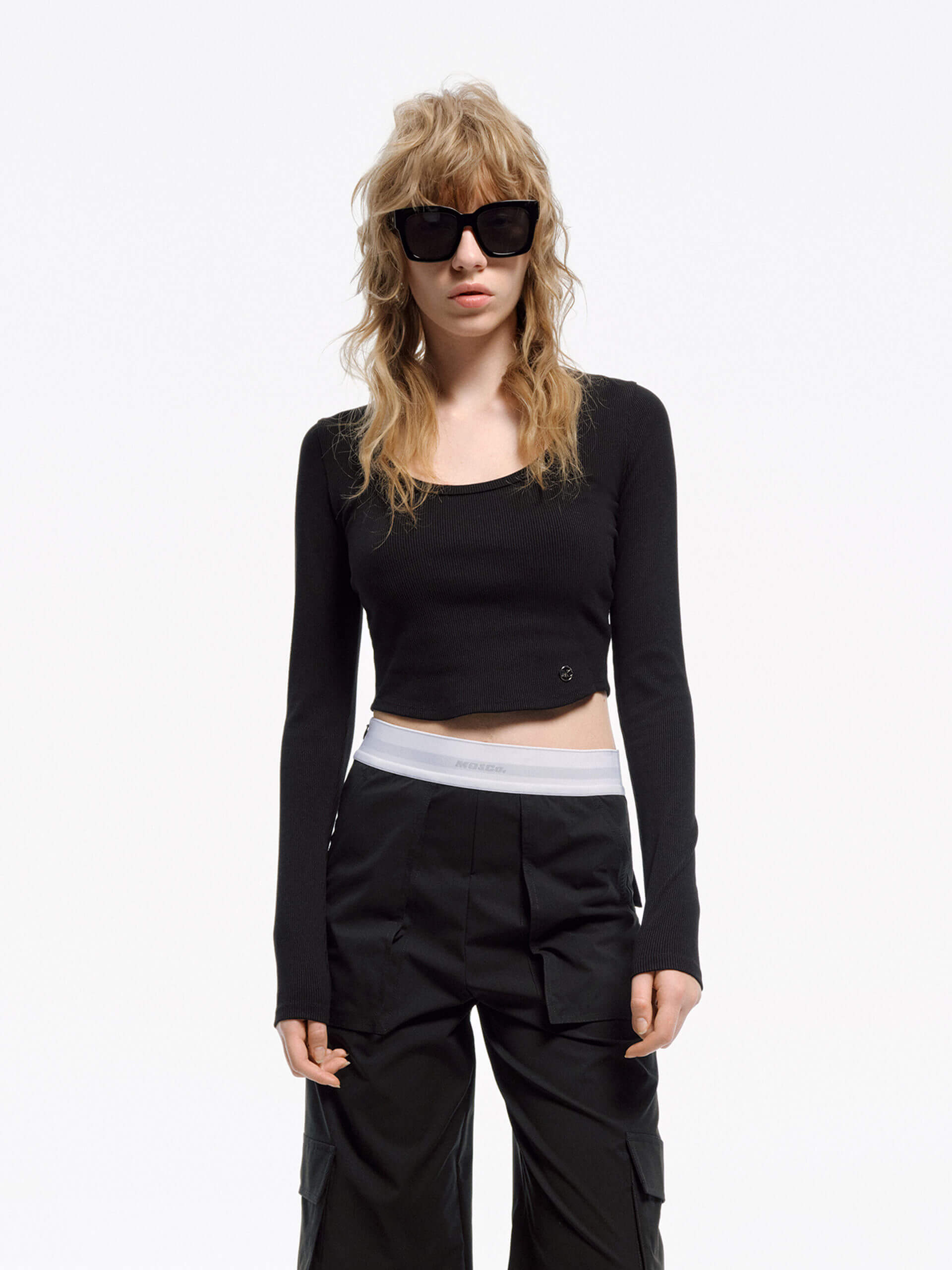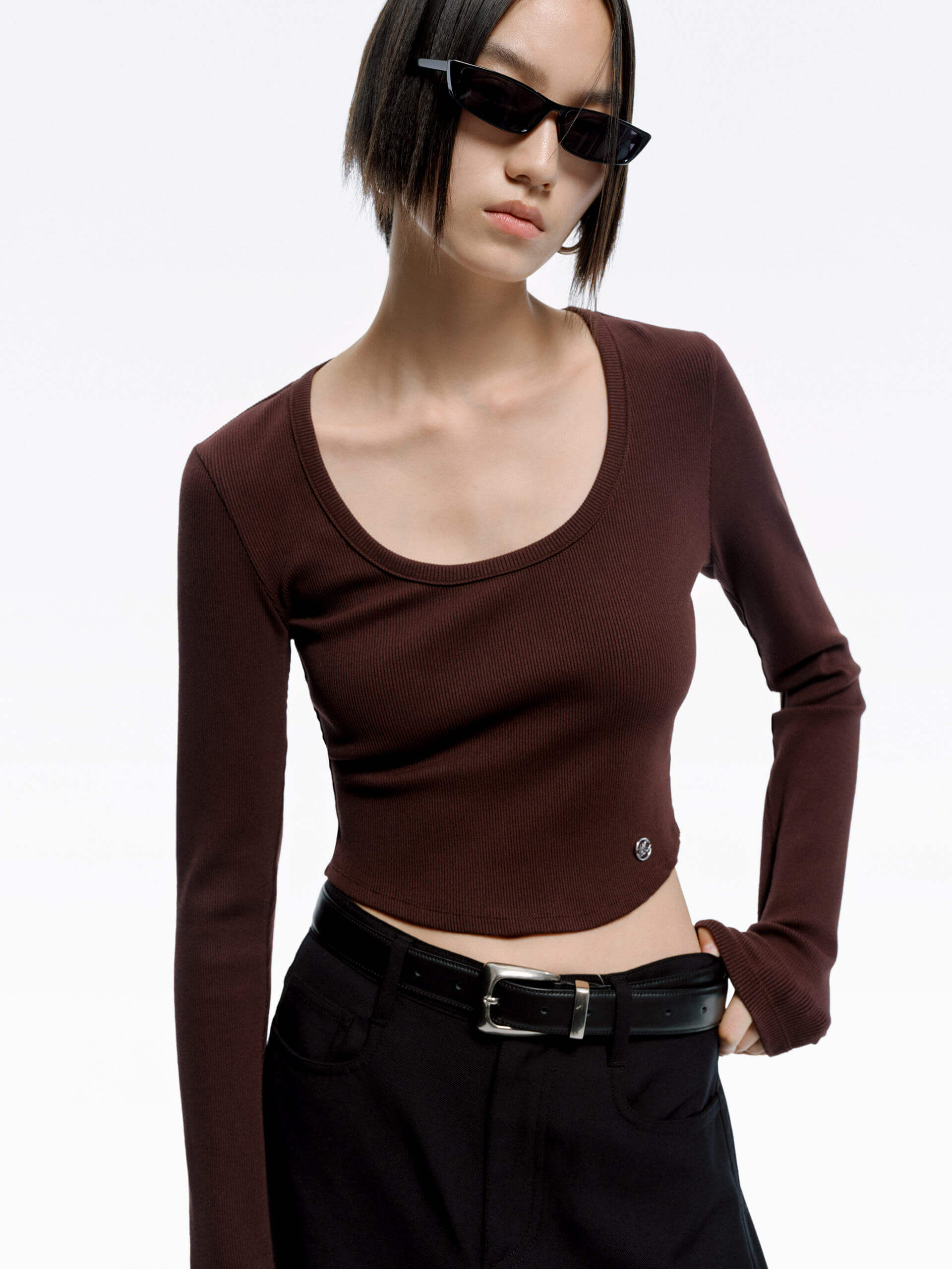 Made with stretchy and soft knit fabric, its snug fit and curved neckline will enhance your figure effortlessly. Perfect to pair with high-waisted skirts for a charming look.