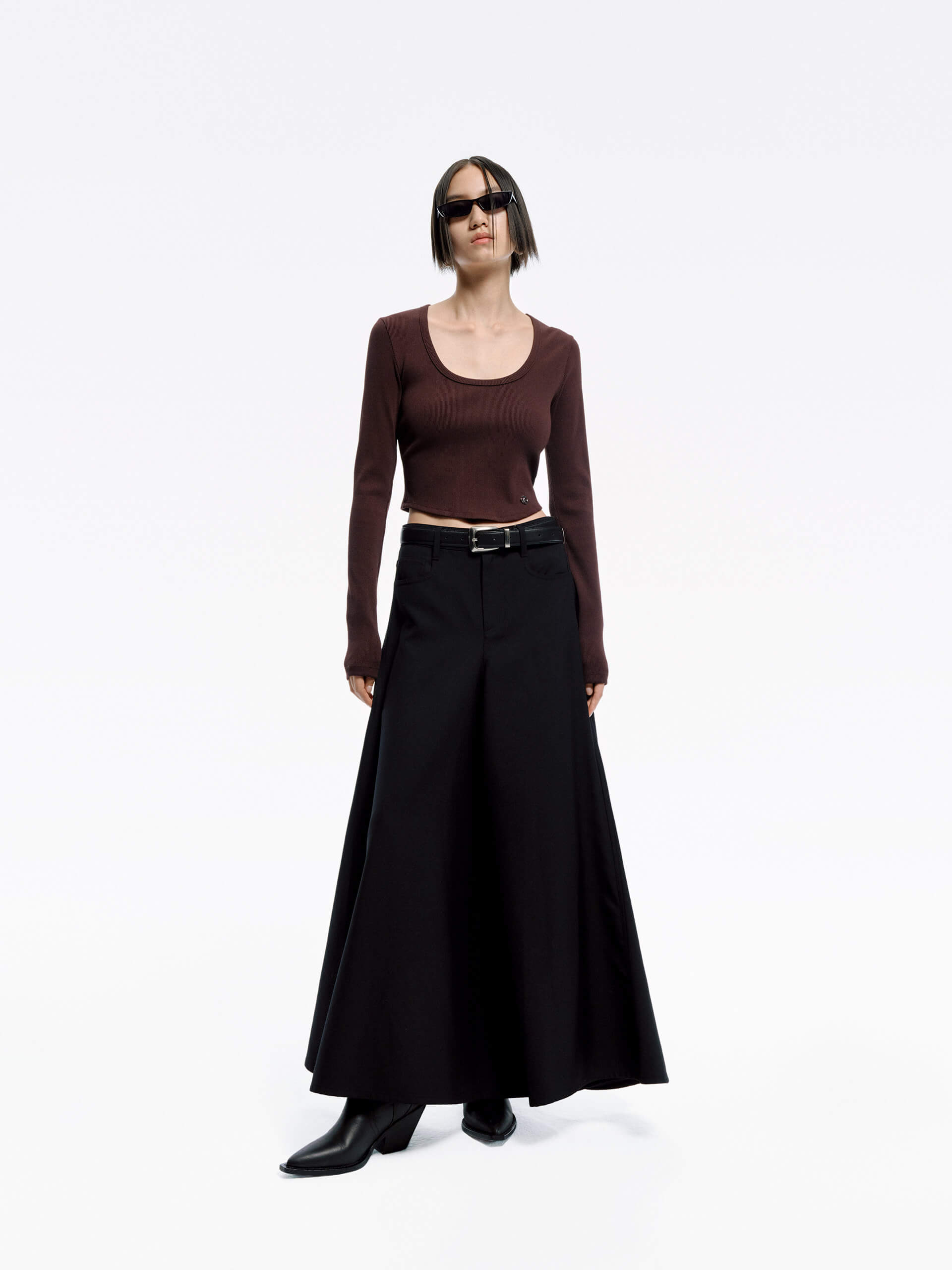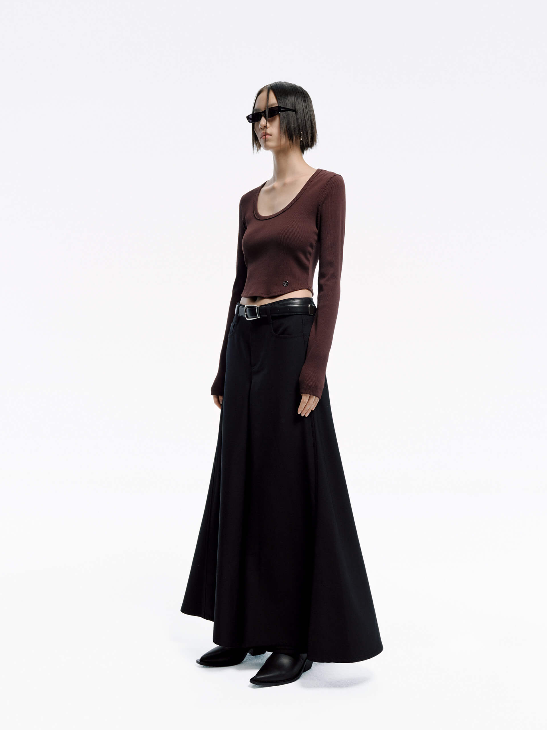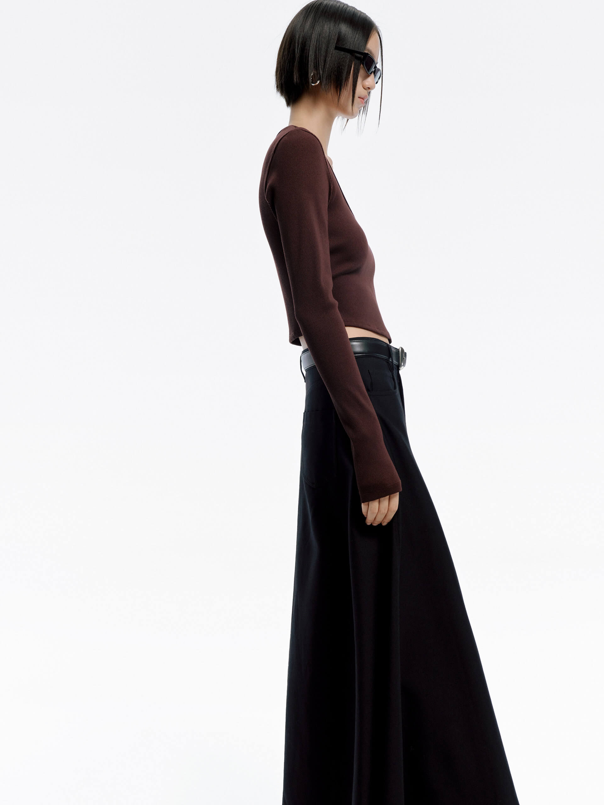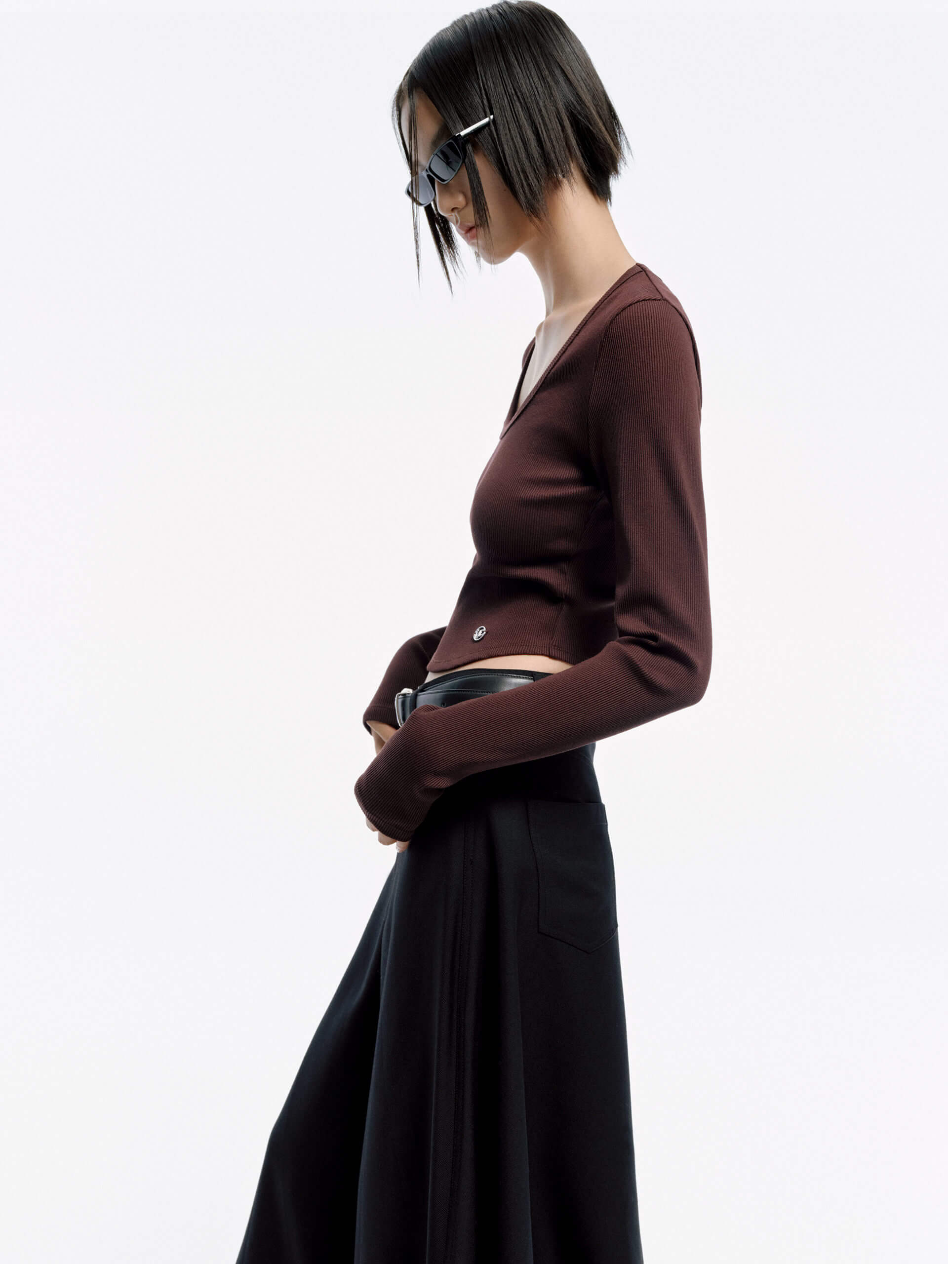 Made with stretchy and soft knit fabric, its snug fit and curved neckline will enhance your figure effortlessly. Perfect to pair with high-waisted skirts for a charming look.