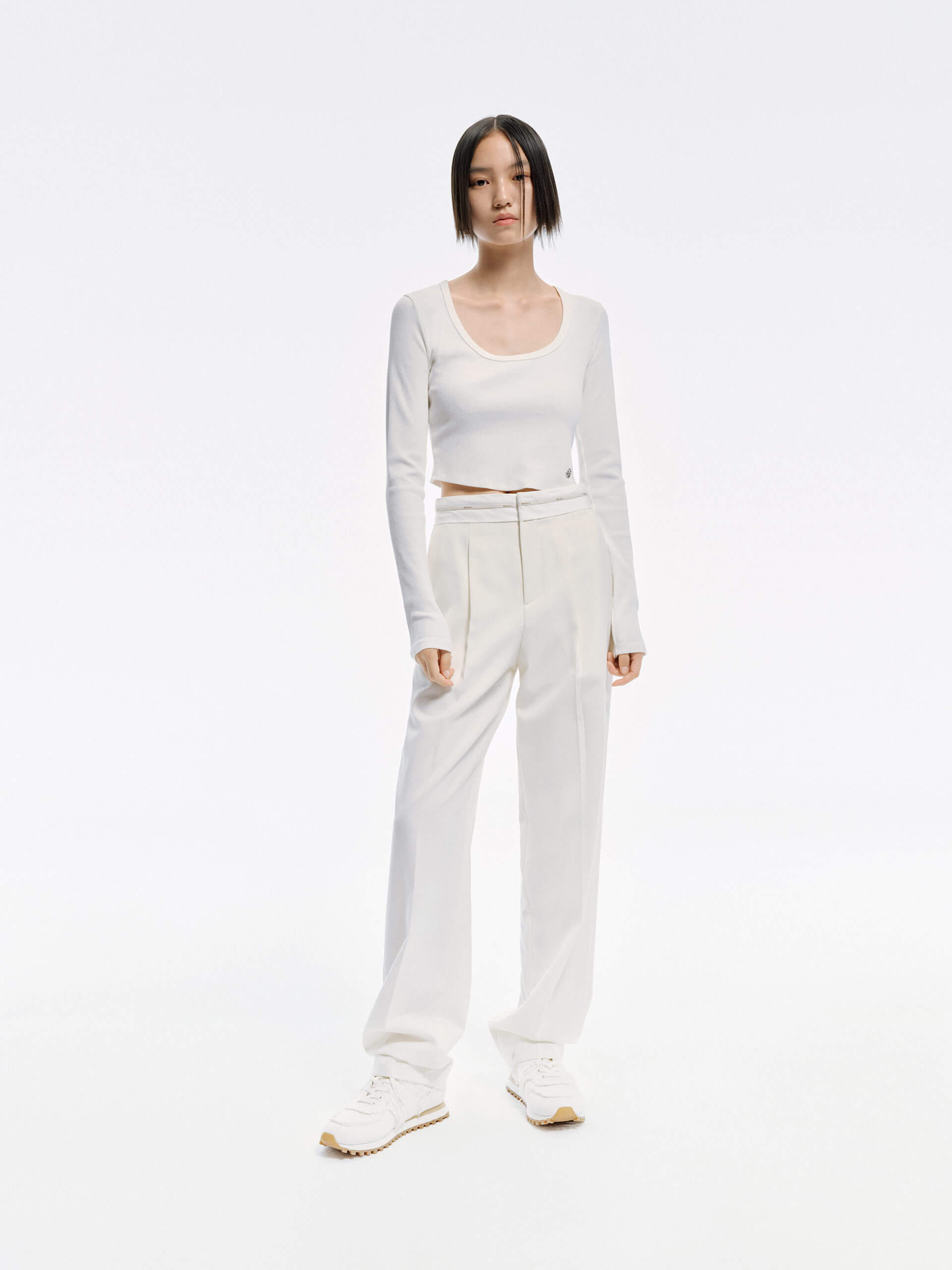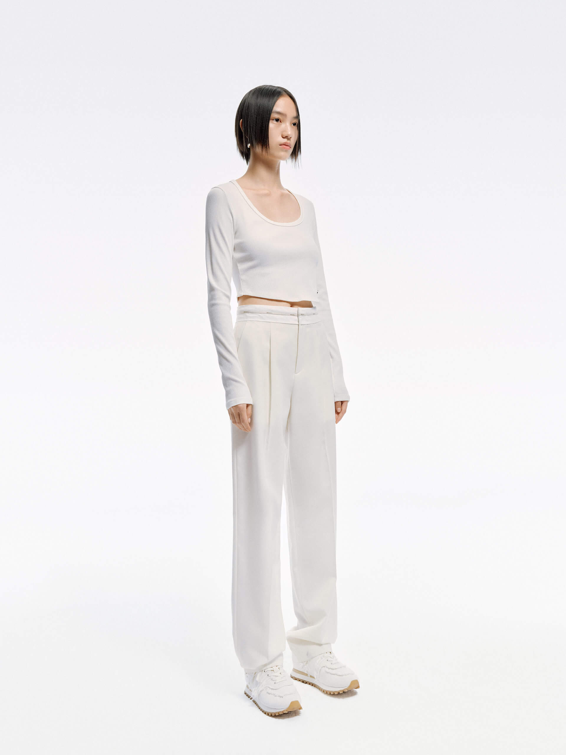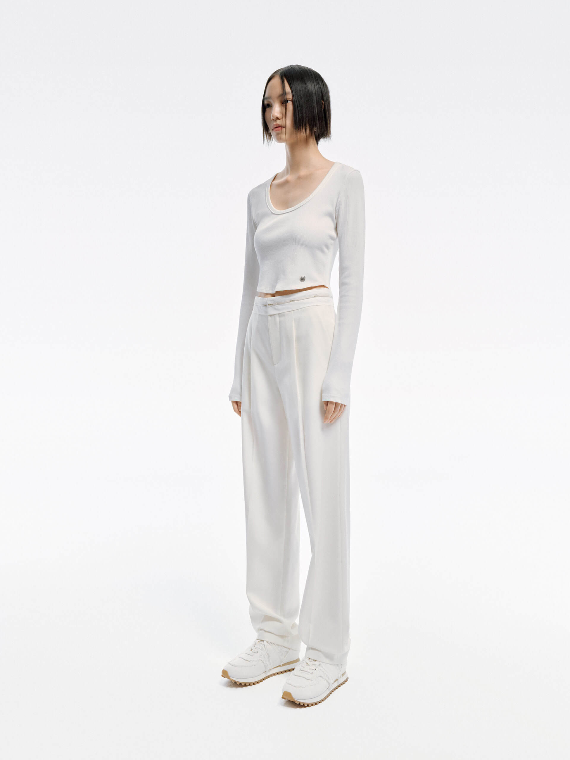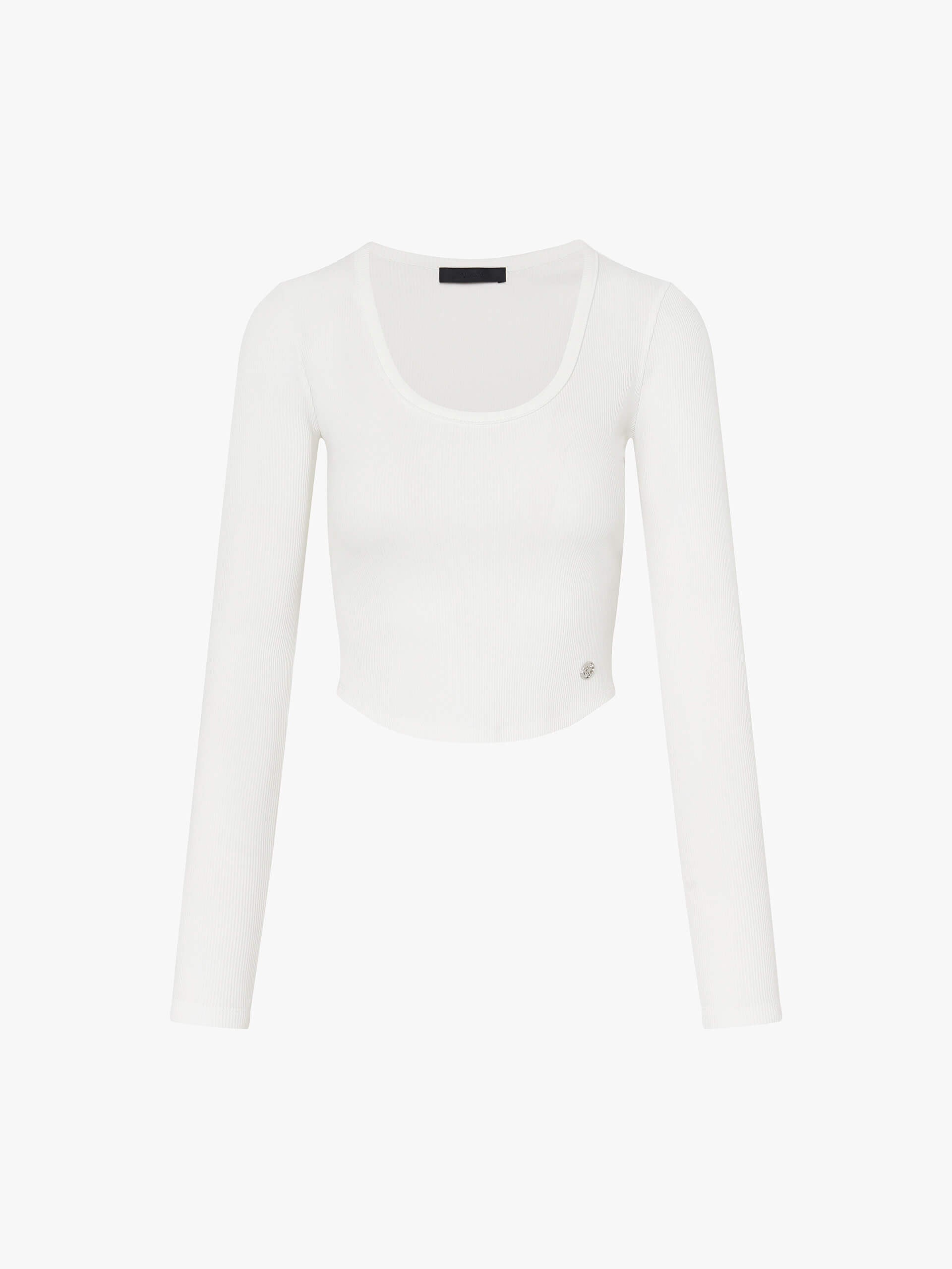 Made with stretchy and soft knit fabric, its snug fit and curved neckline will enhance your figure effortlessly. Perfect to pair with high-waisted skirts for a charming look.