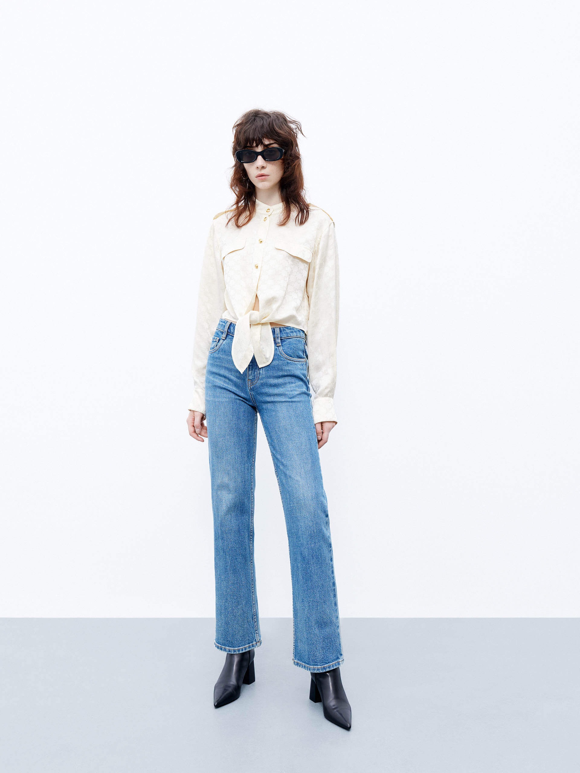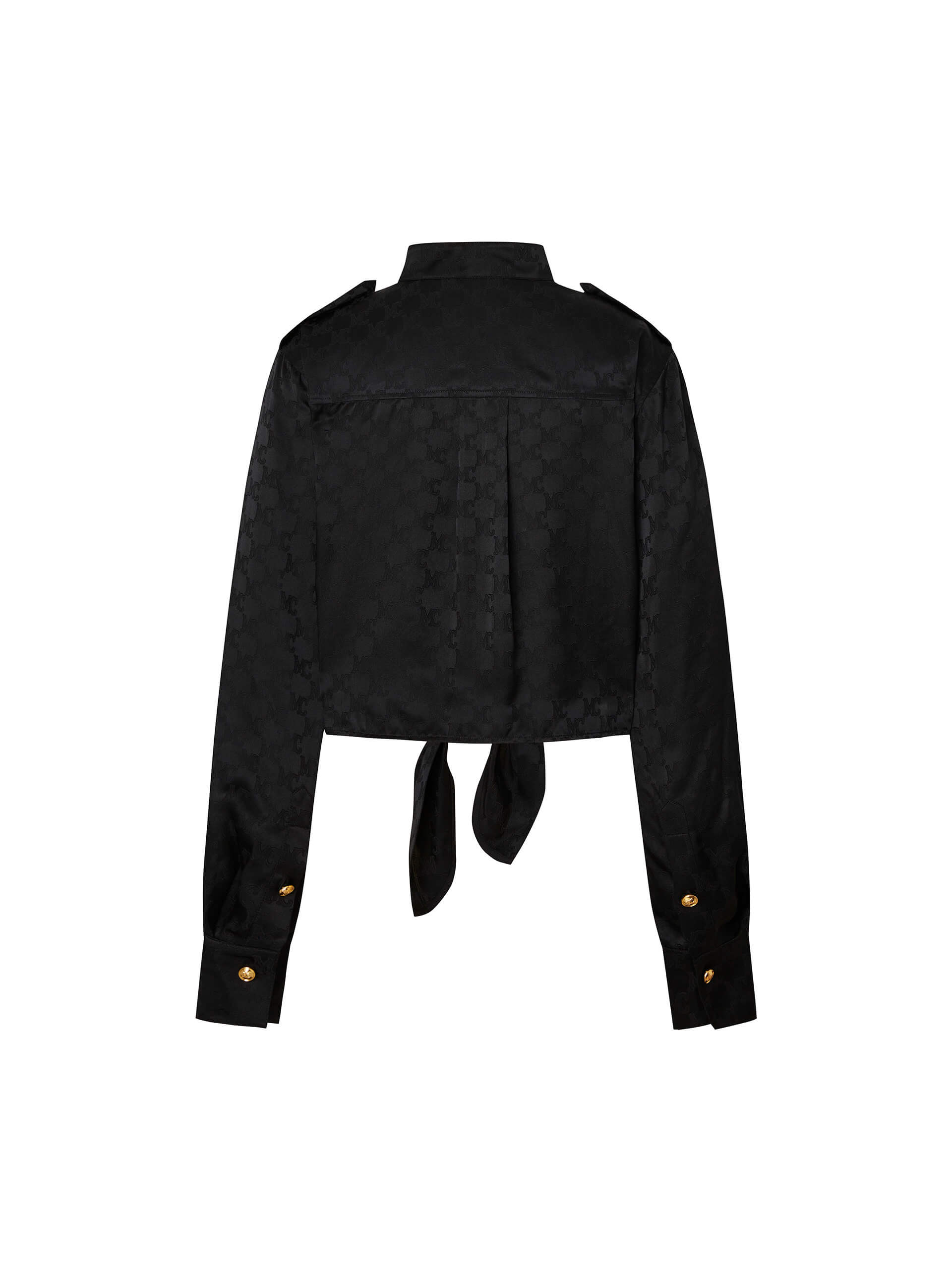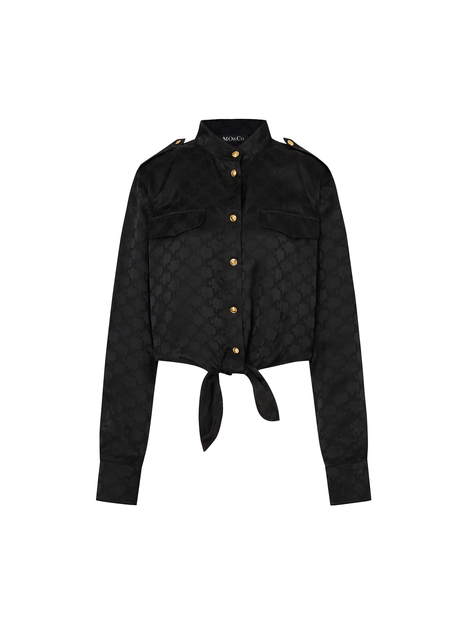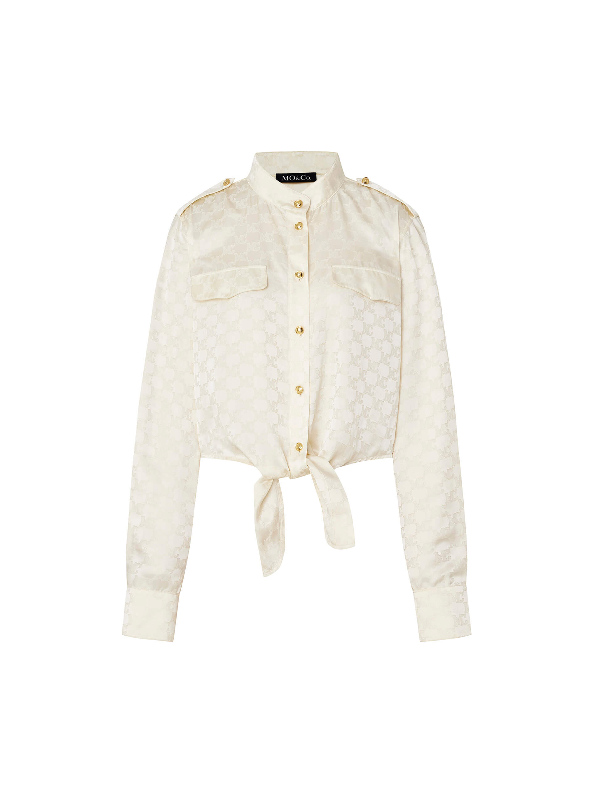 Experience effortless sophistication in our shirt, crafted from a smooth, soft silk blend. Boasting a standing collar and elegant metallic buttons, this statement piece is defined by its jacquard texture, while the tie-front hem gives it a refined finishing touch.