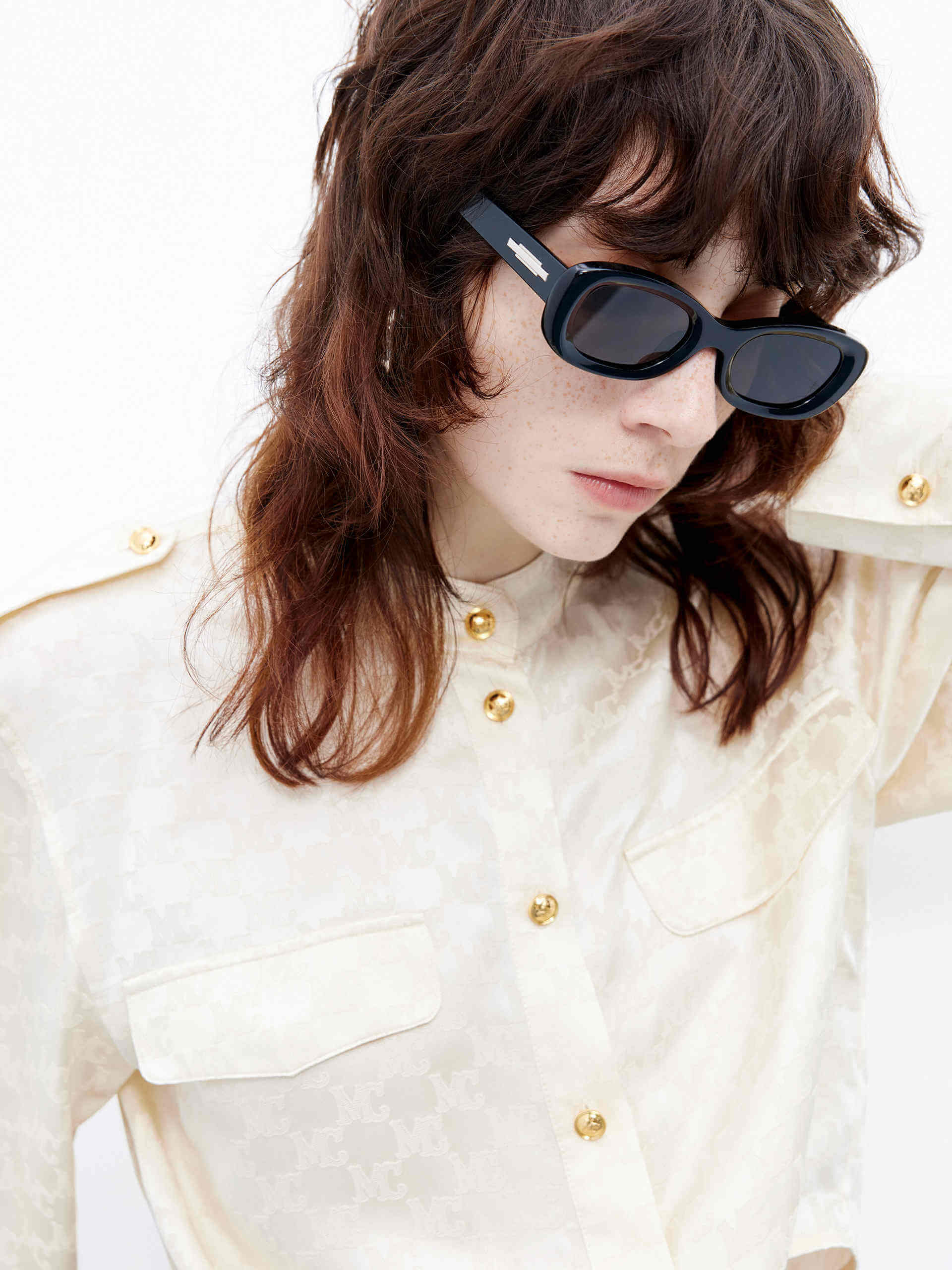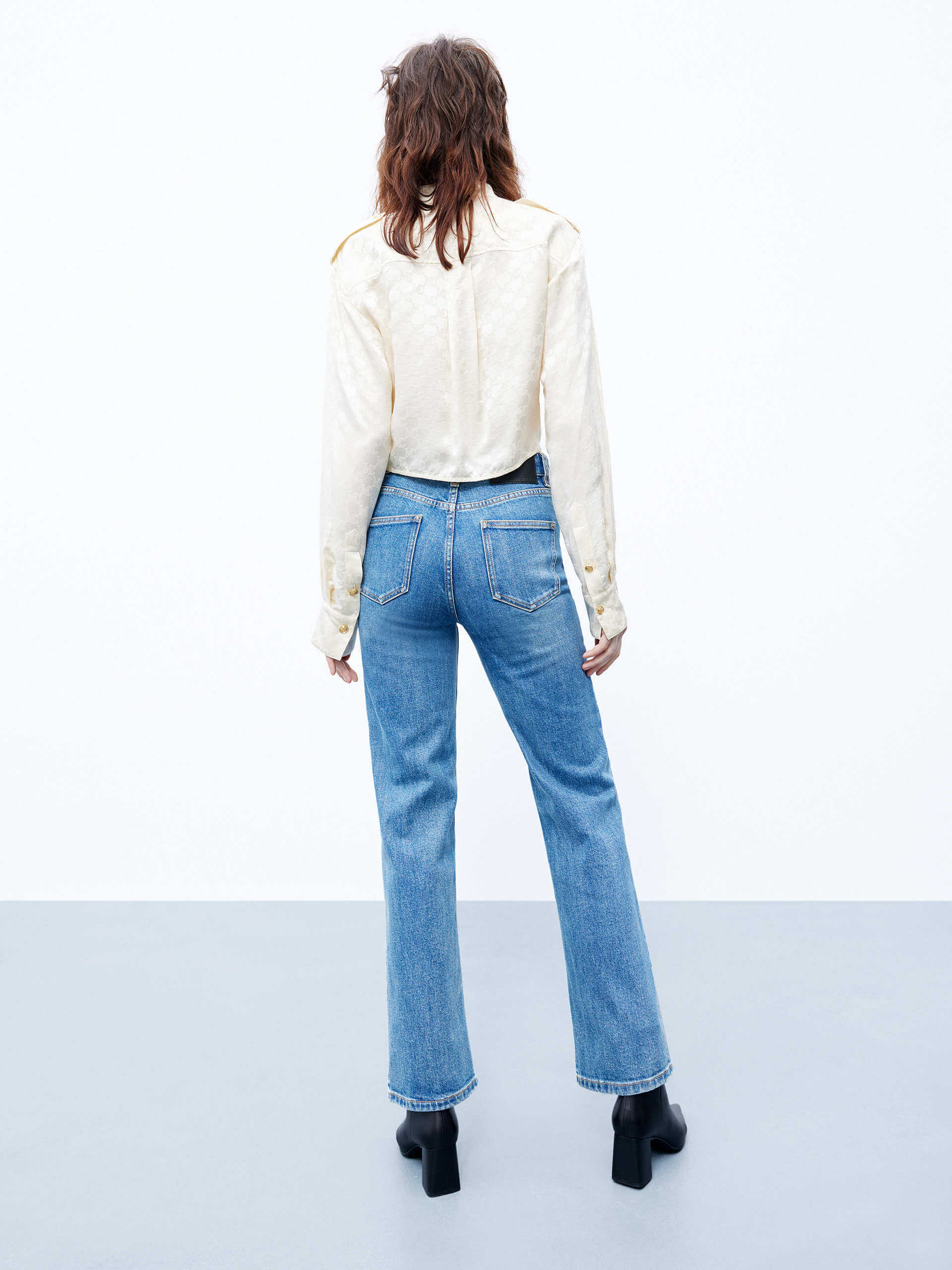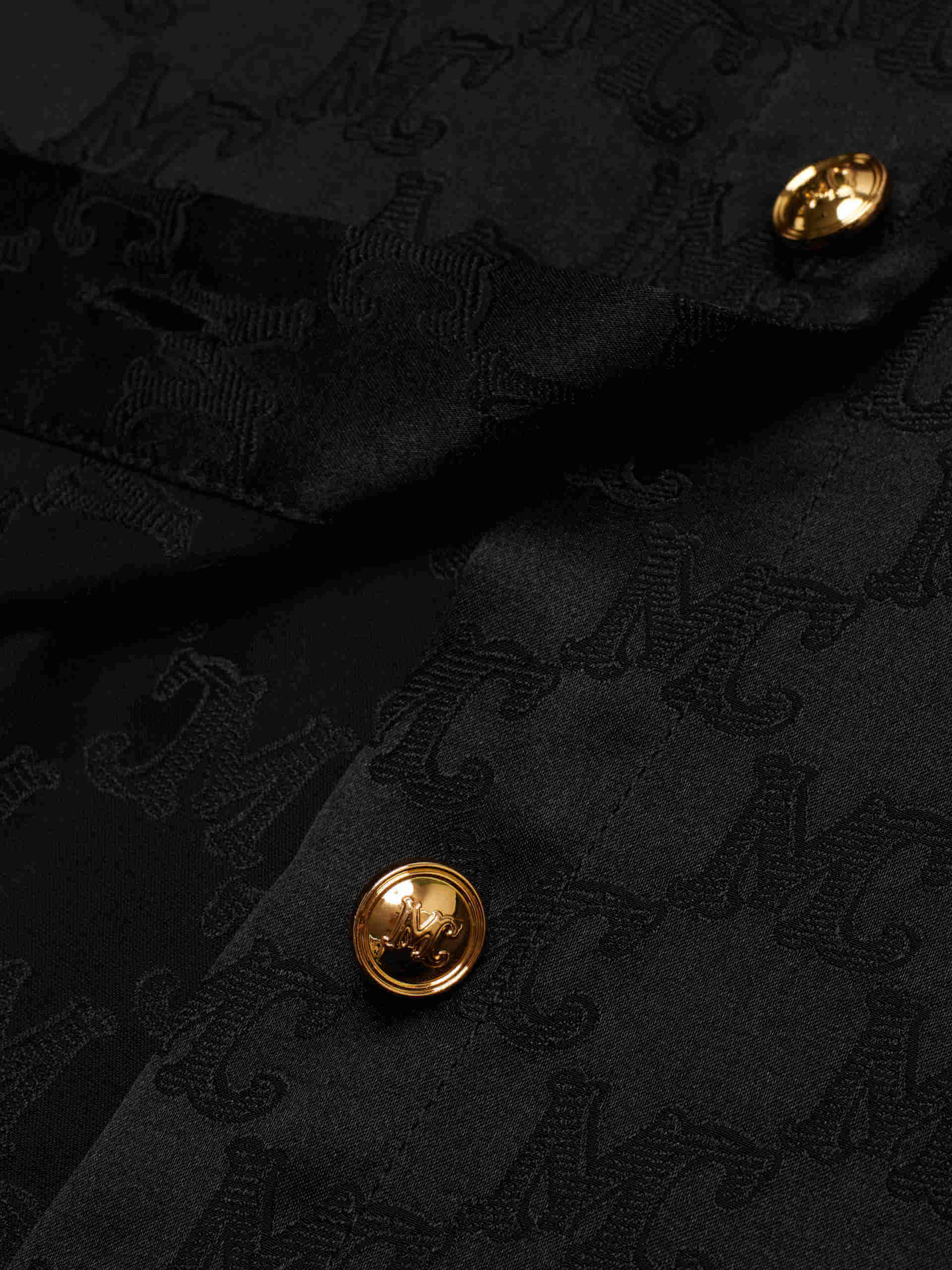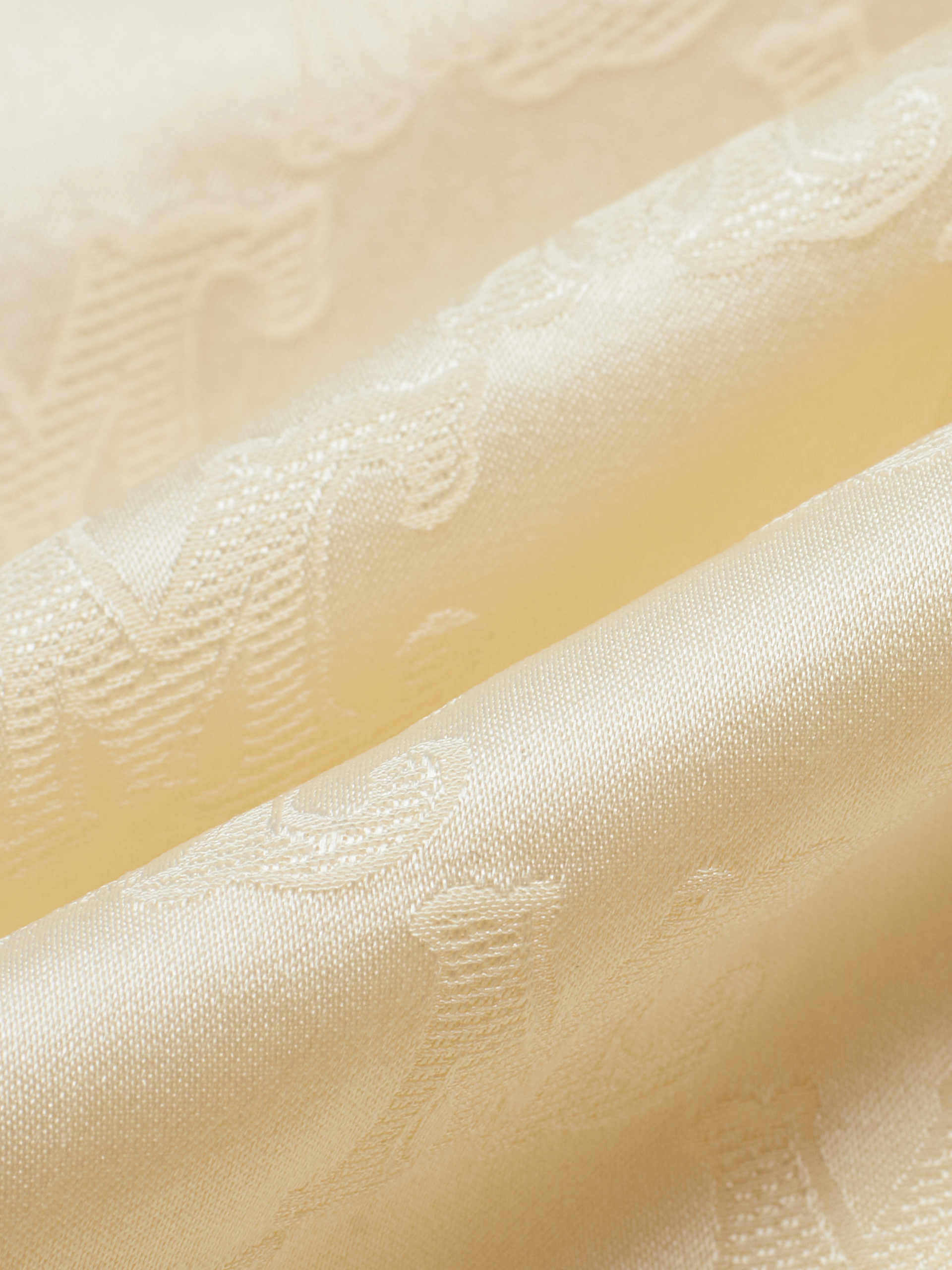 Experience effortless sophistication in our shirt, crafted from a smooth, soft silk blend. Boasting a standing collar and elegant metallic buttons, this statement piece is defined by its jacquard texture, while the tie-front hem gives it a refined finishing touch.