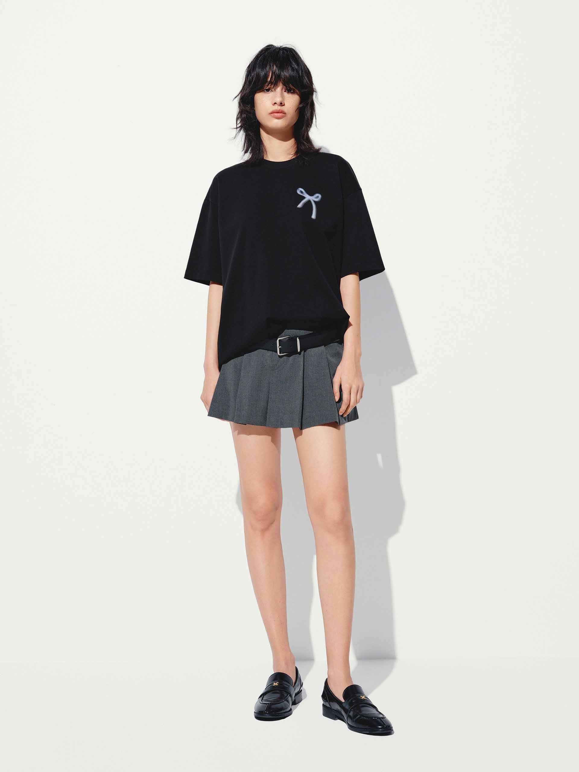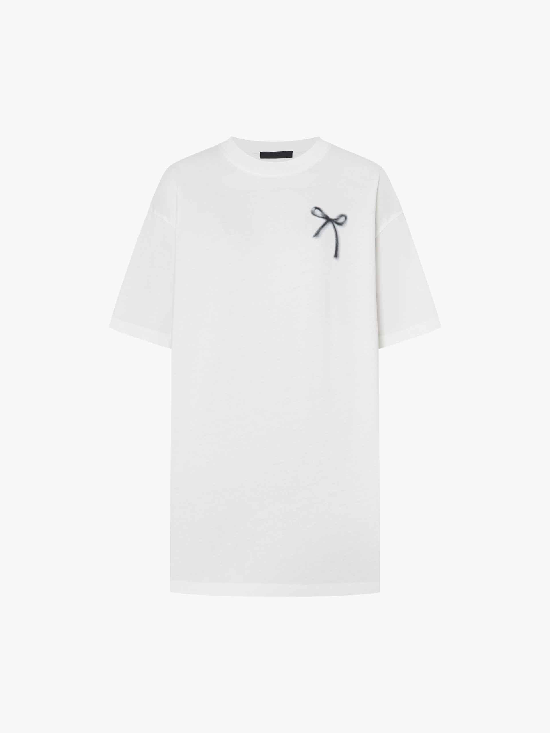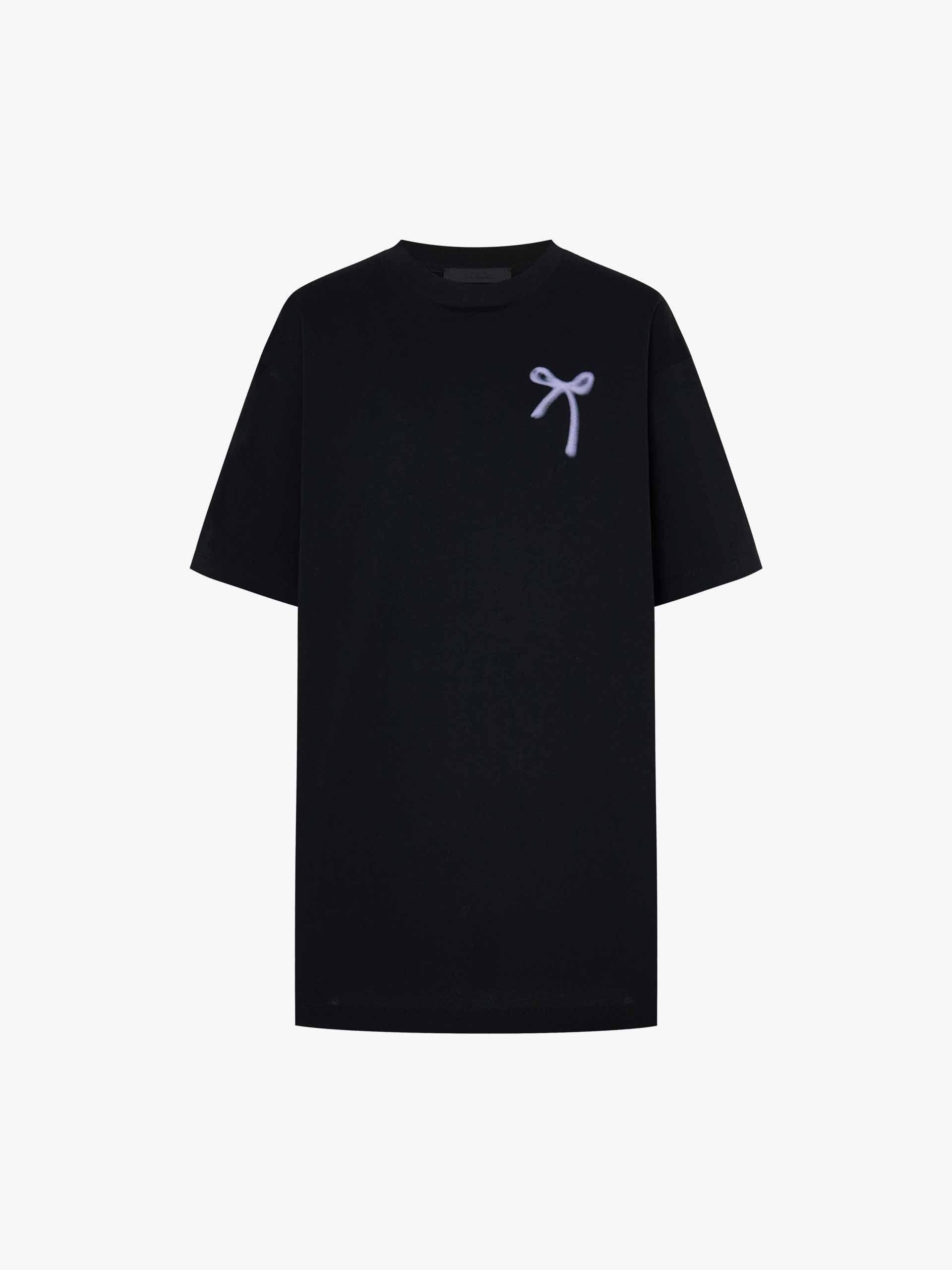 Add a touch of playful elegance to your wardrobe with our t-shirt, featuring a delicate all-over bow pattern that exudes sweet sophistication. The relaxed fit and artfully dropped shoulders create an effortlessly chic silhouette. Designed for versatility, this tee's breathable fabric and classic round neck keep you cool and comfortable, while the short sleeves offer comfort and wearability.
