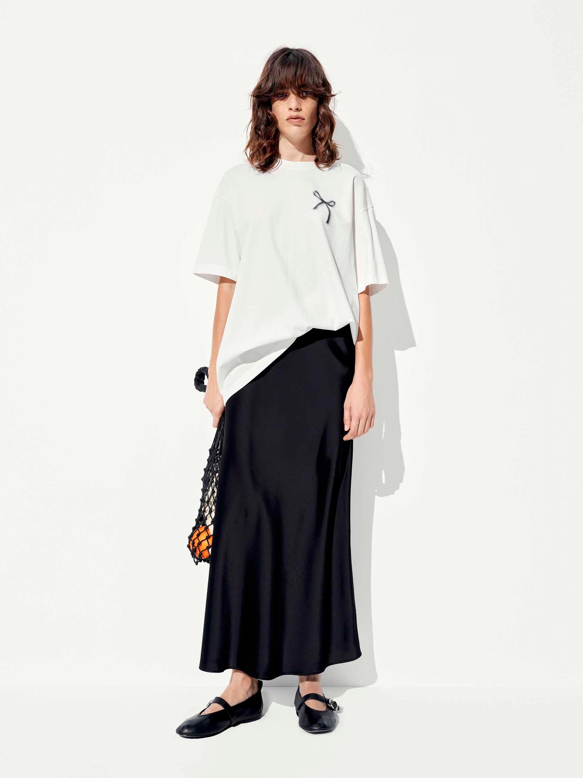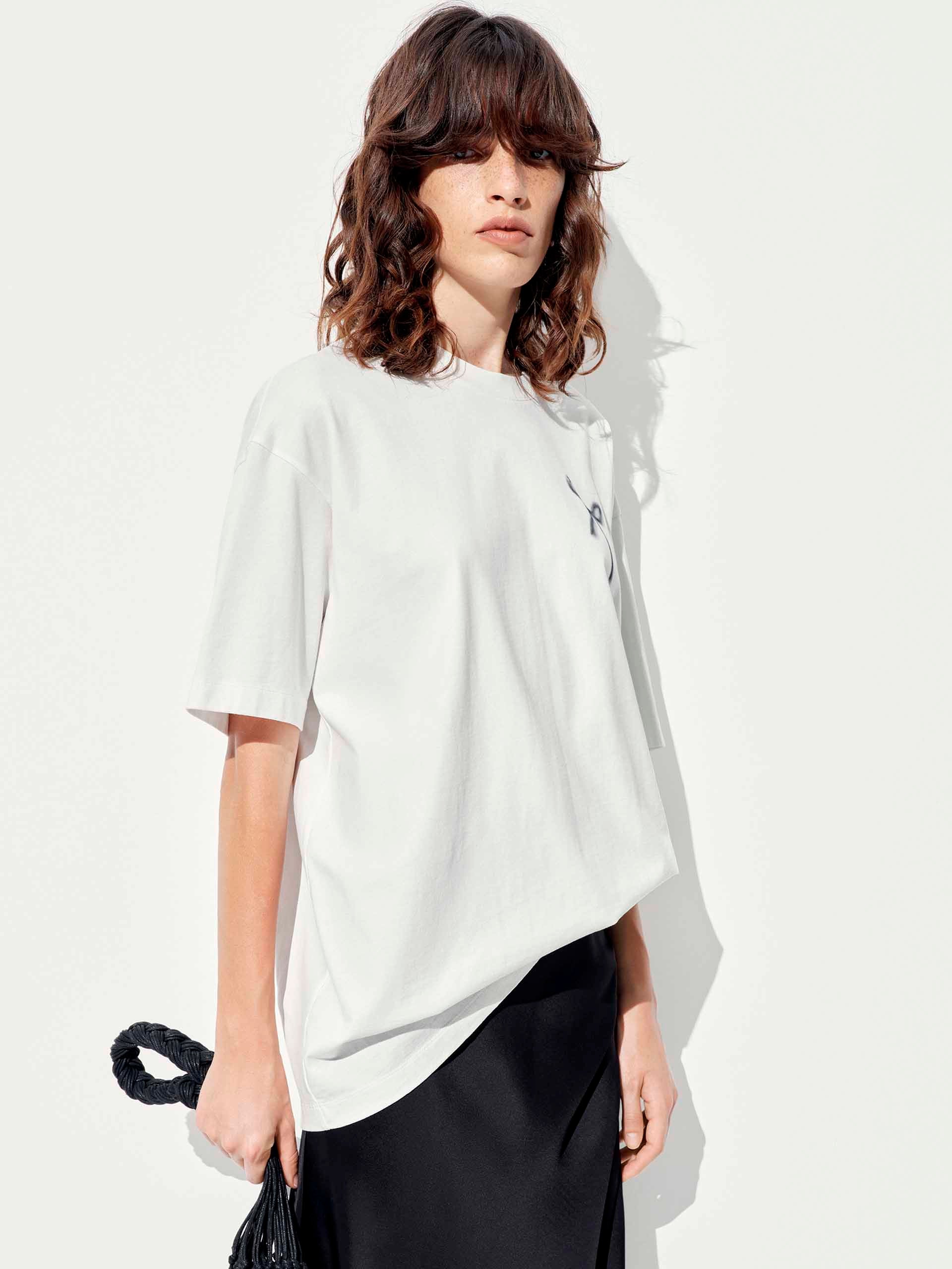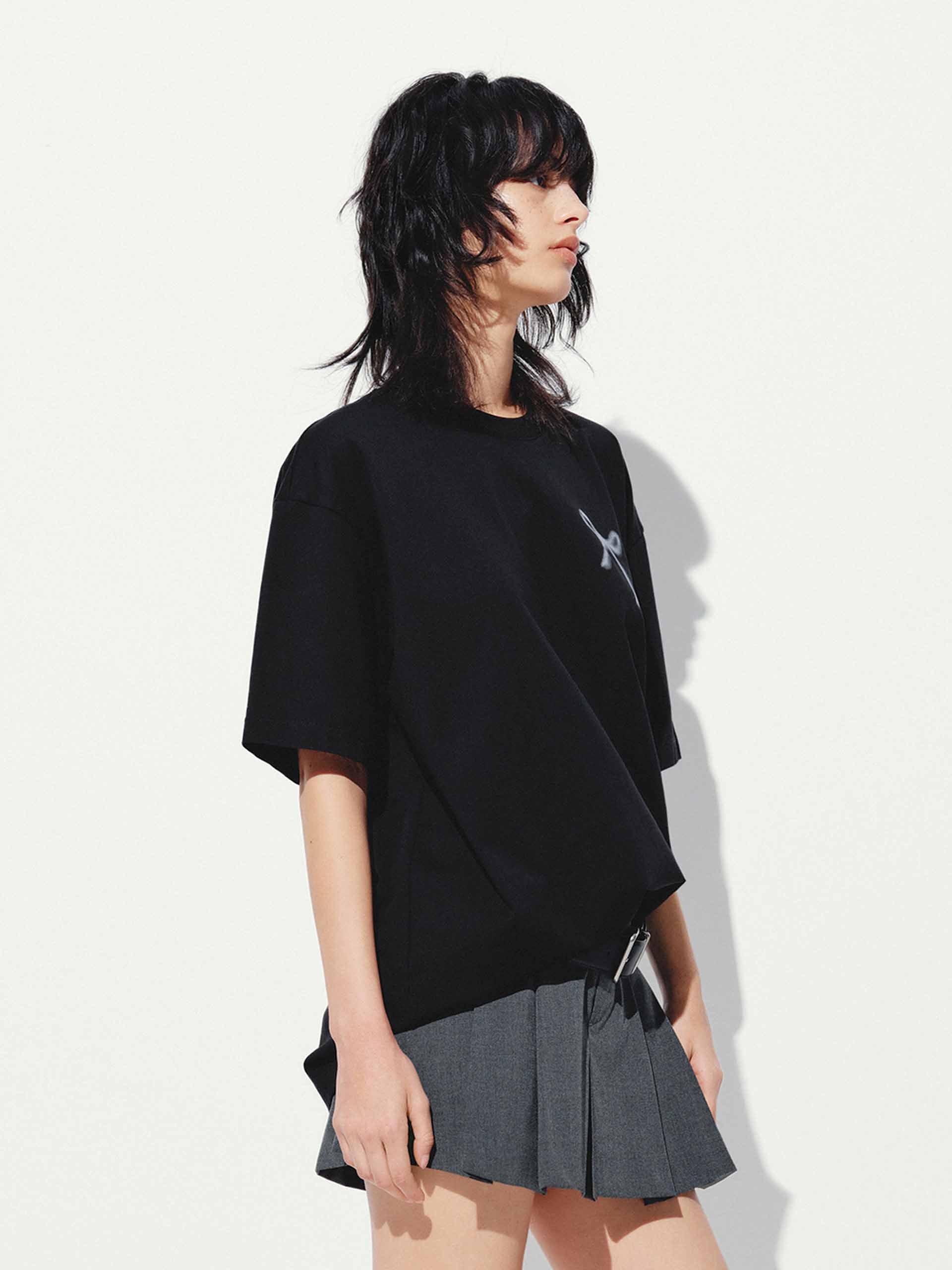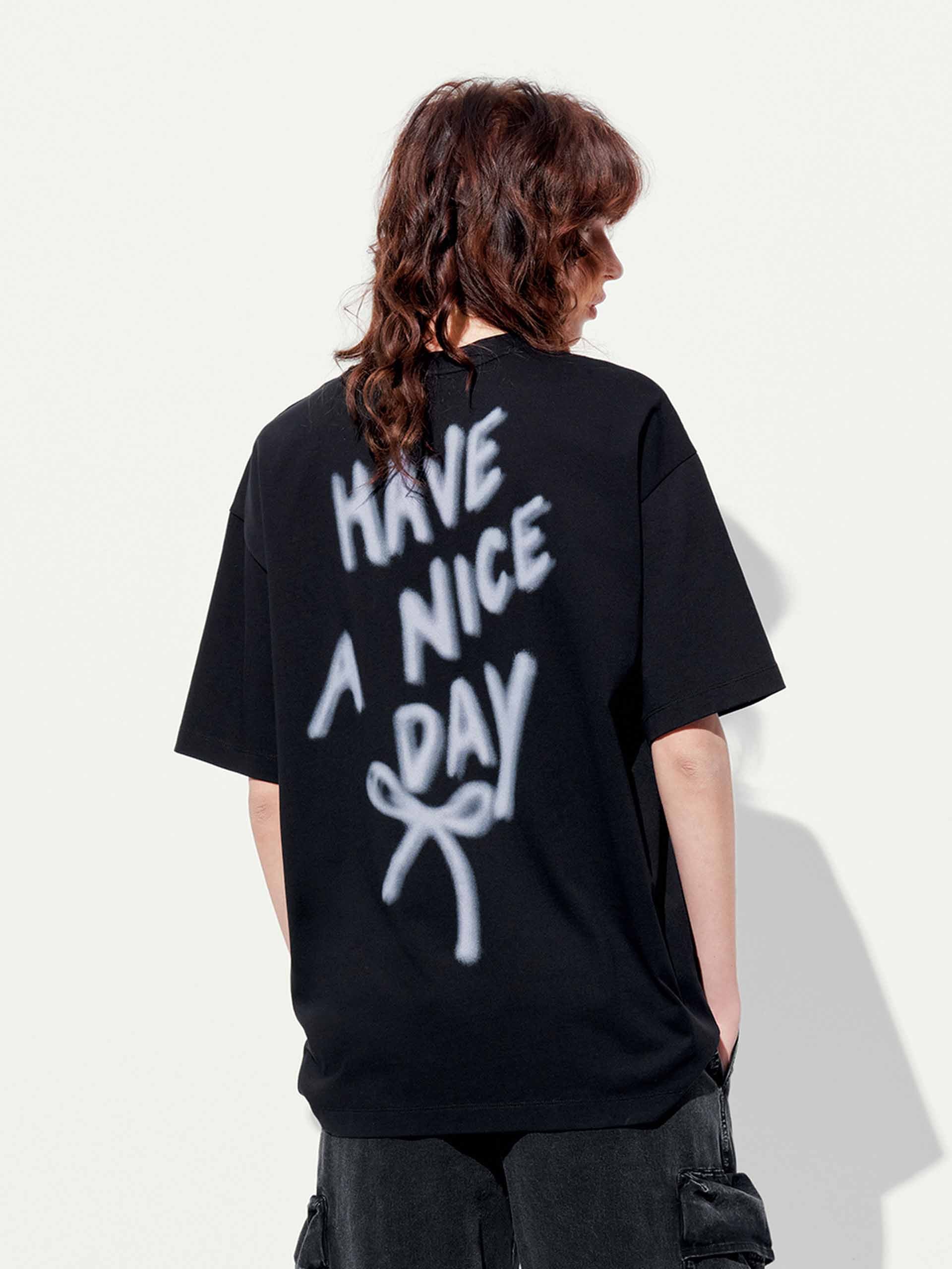 Add a touch of playful elegance to your wardrobe with our t-shirt, featuring a delicate all-over bow pattern that exudes sweet sophistication. The relaxed fit and artfully dropped shoulders create an effortlessly chic silhouette. Designed for versatility, this tee's breathable fabric and classic round neck keep you cool and comfortable, while the short sleeves offer comfort and wearability.