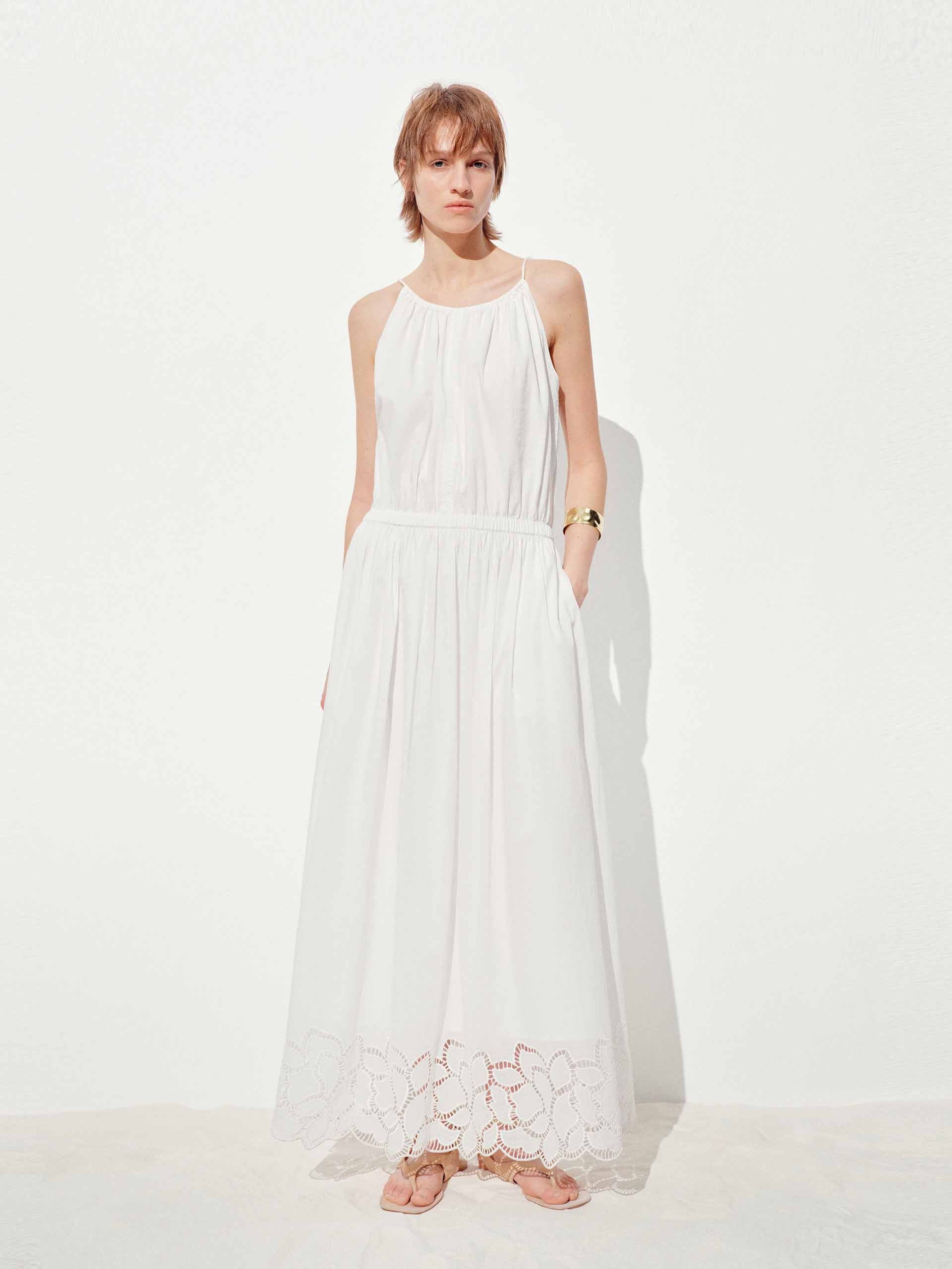 MO&Co. Women's Cutout Sweetheart Back Dress Loose Chic Round Neck White