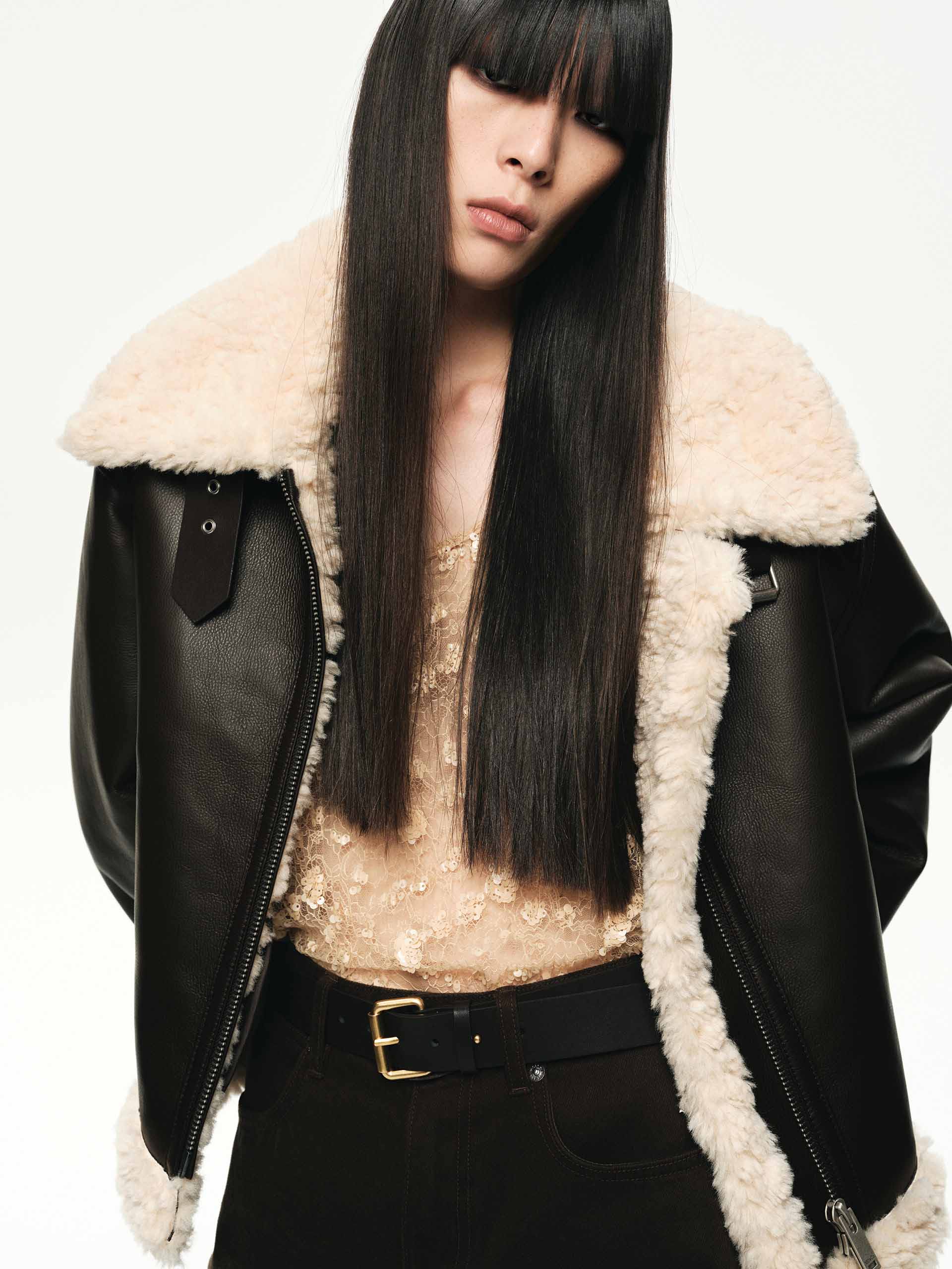 Crafted from premium PU leather, this coat delivers a sleek and modern aesthetic with a confident, cropped fit. The statement fur collar, complete with an adjustable buckle, adds a touch of luxe texture and allows for a customizable silhouette. Practicality is seamlessly integrated with a versatile two-way zip closure and handy side pockets, making it a standout piece that doesn't compromise on cozy comfort.