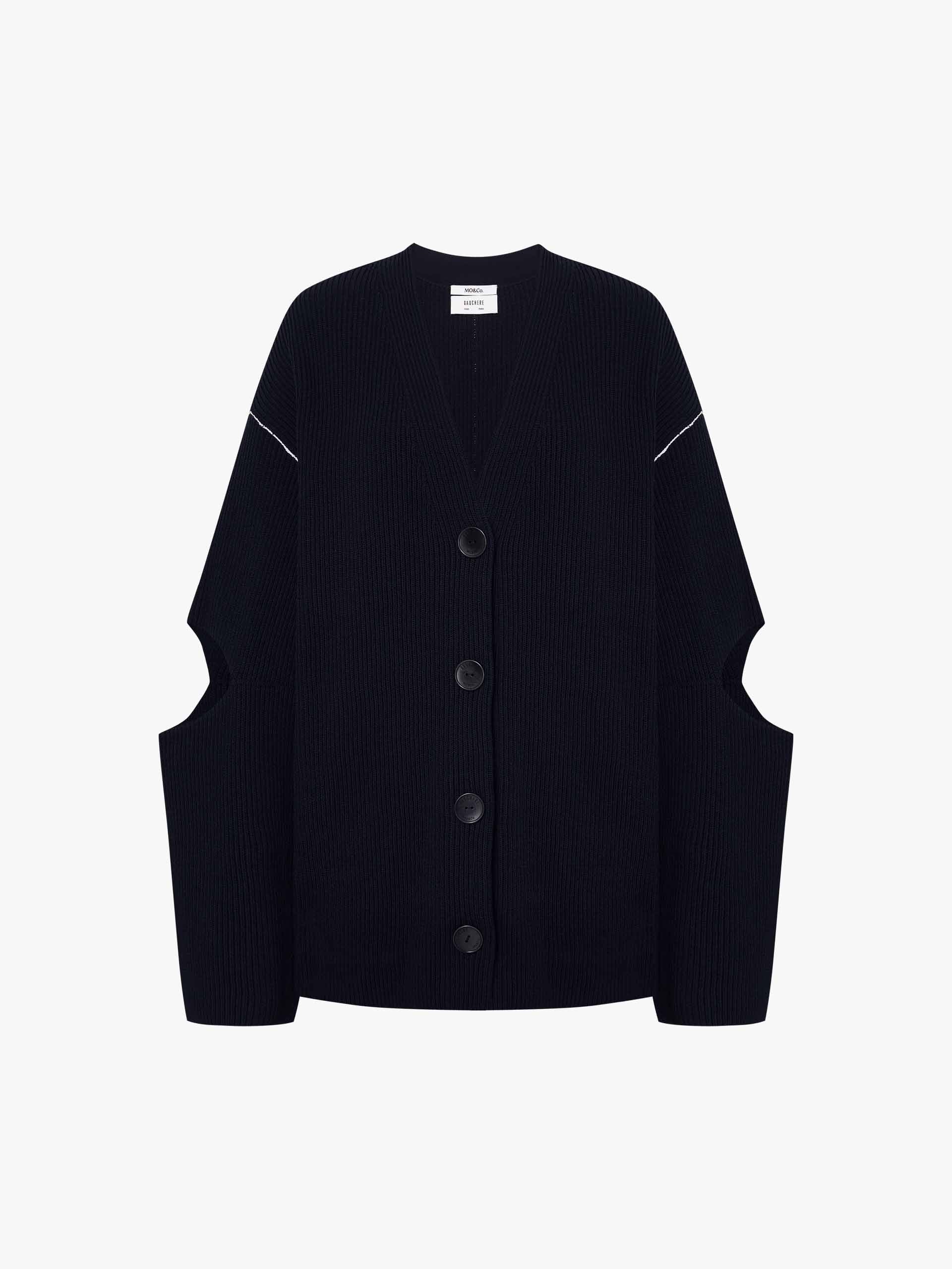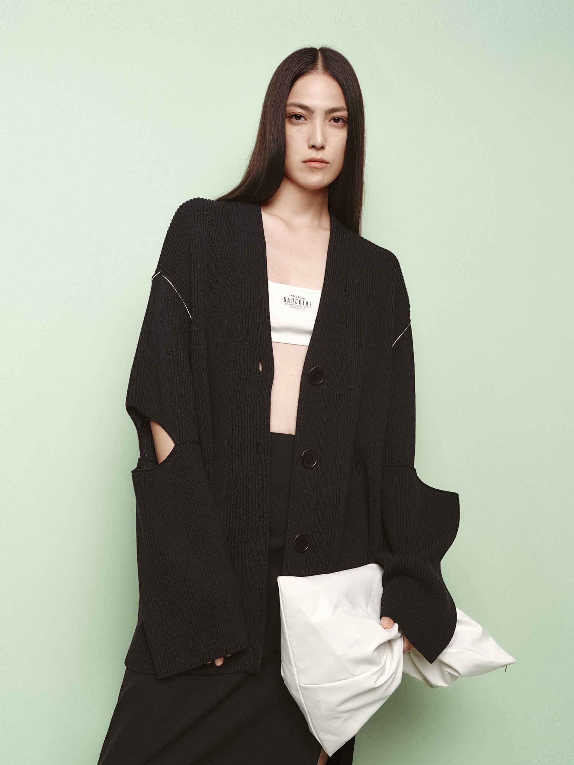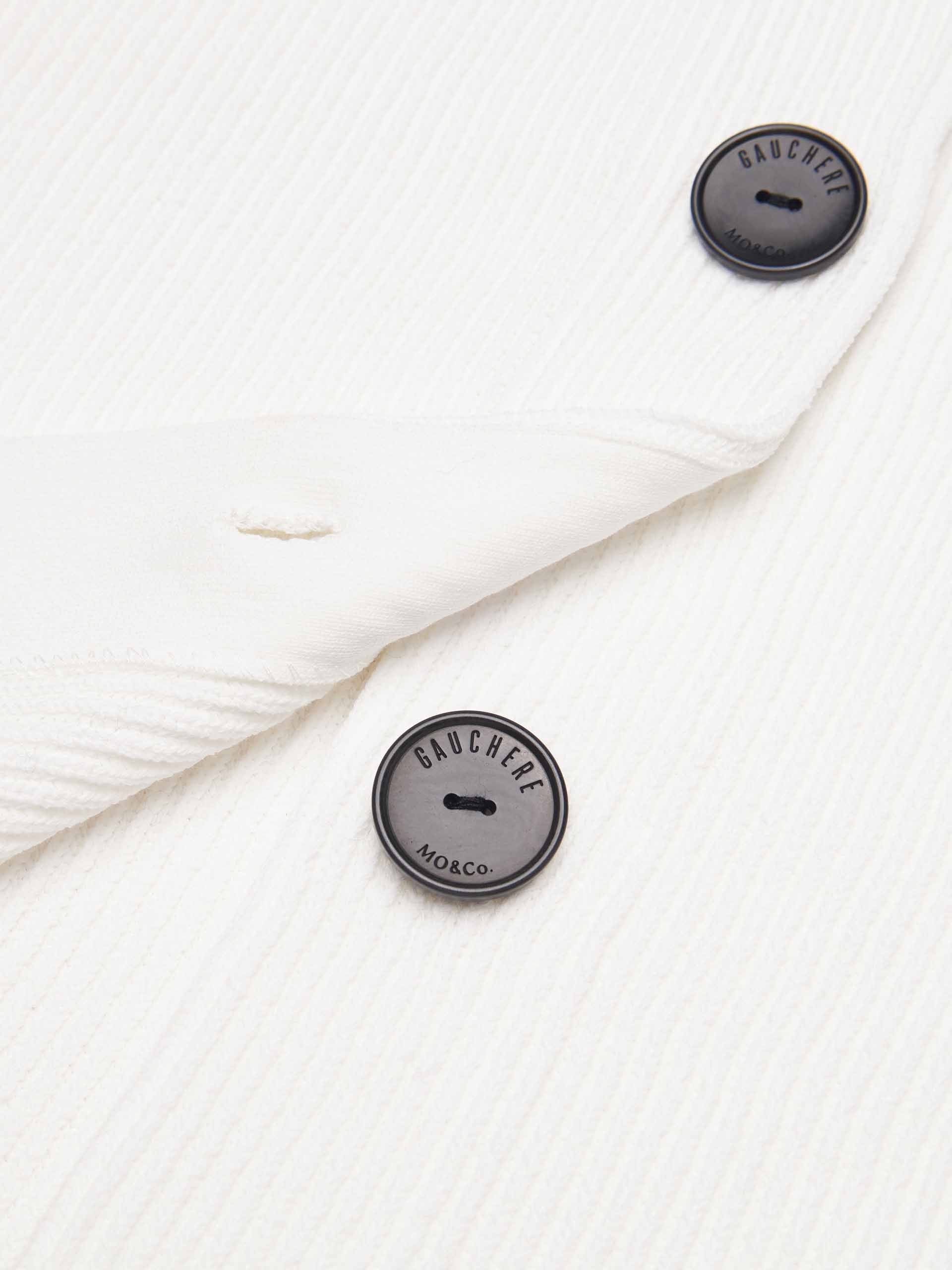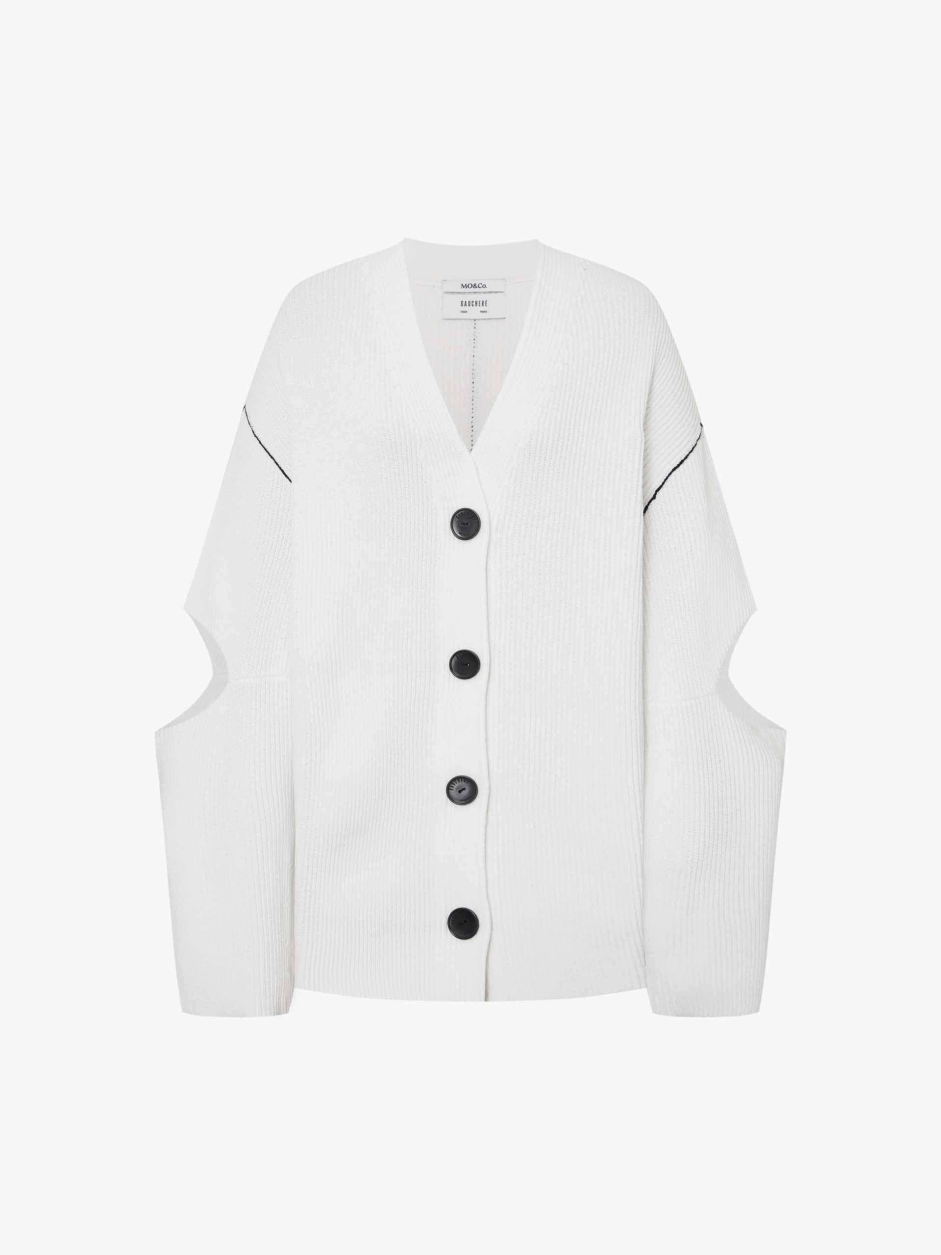 This unique piece from the MO&Co and GAUCHERE collaboration combines modern design with effortless style. It features a V-neckline with a button closure and the dropped shoulders with contrast seamlines add a relaxed yet structured silhouette, while the cut-out detail at the sleeves introduces a bold and contemporary touch.