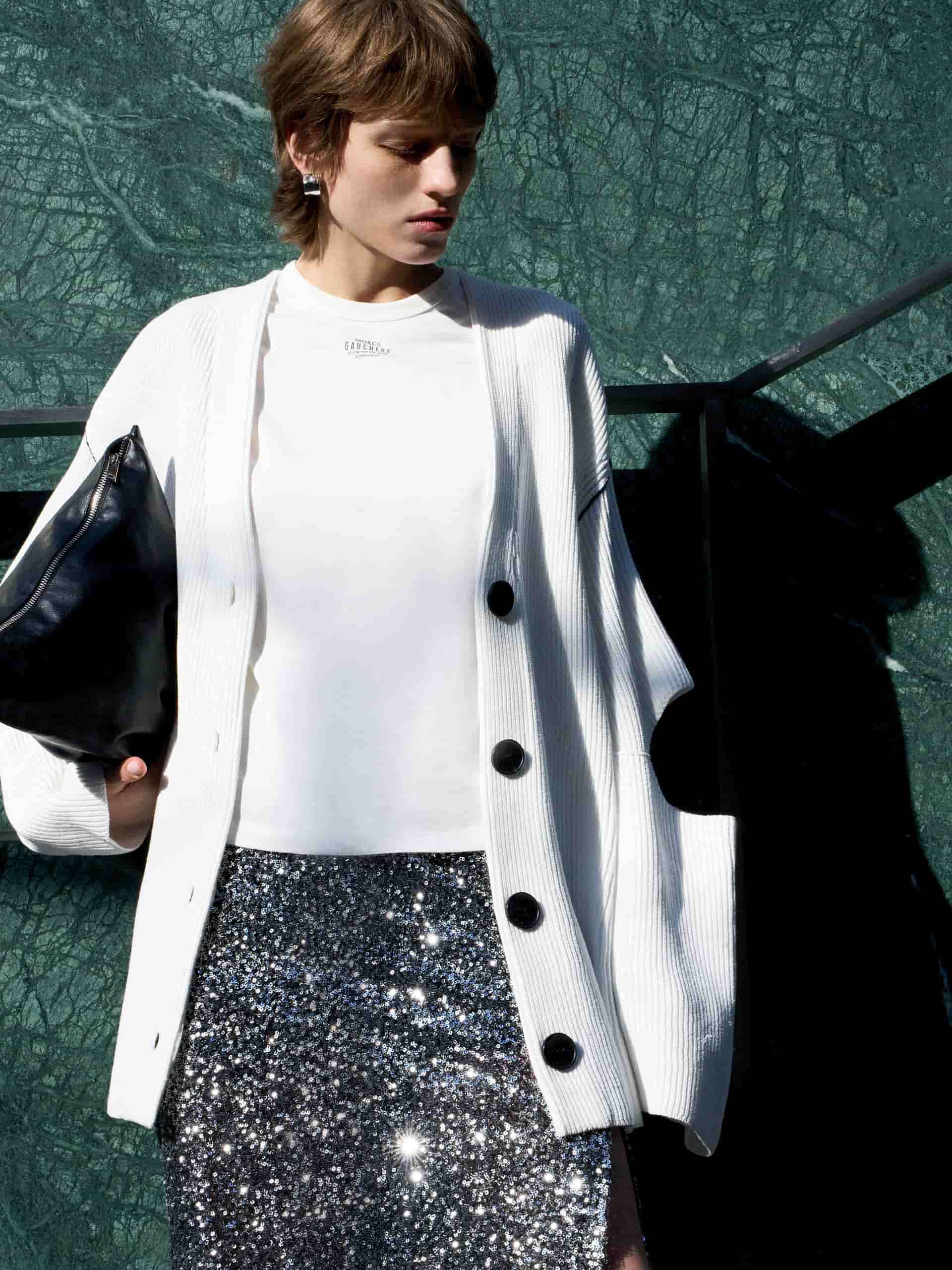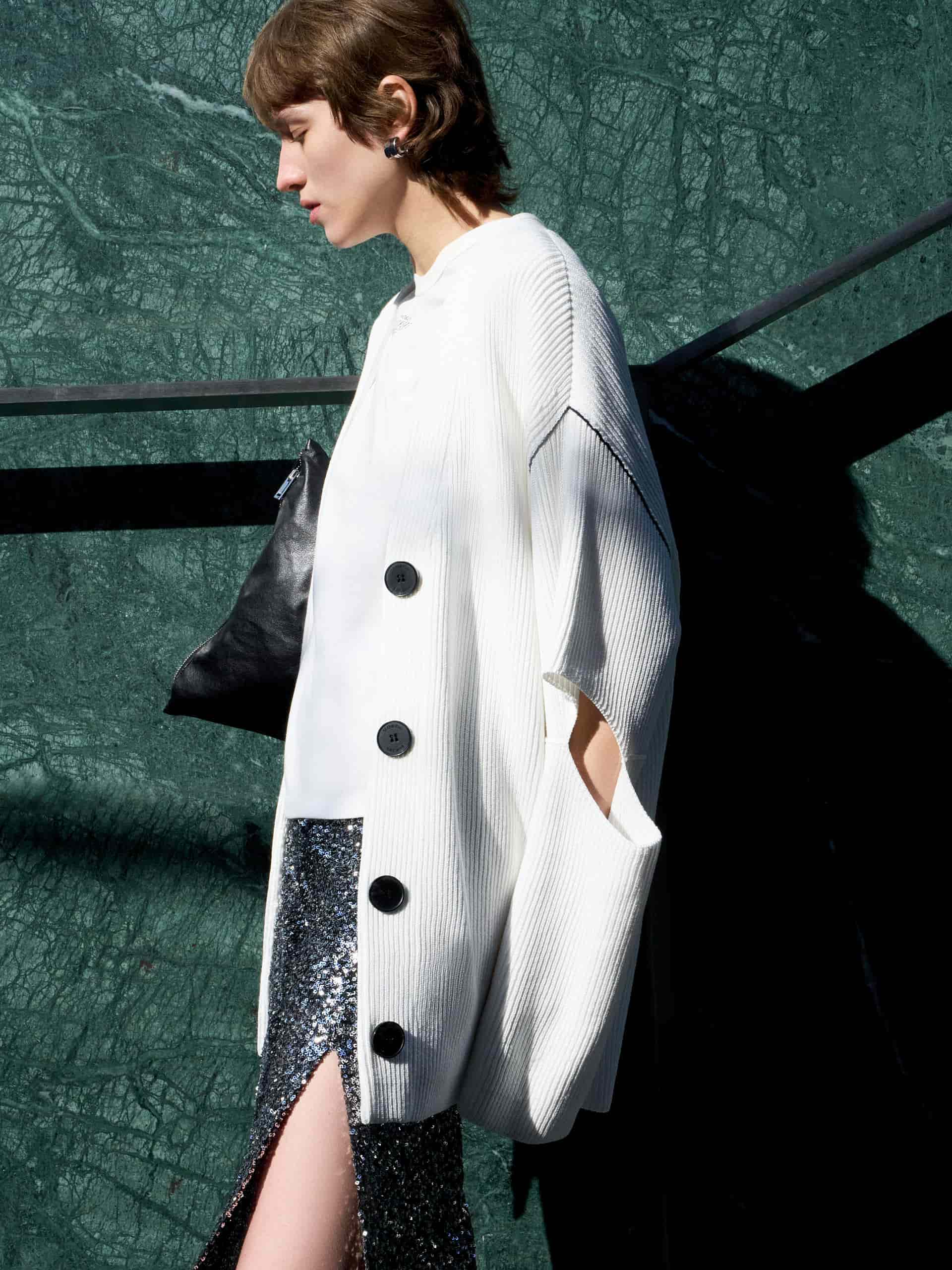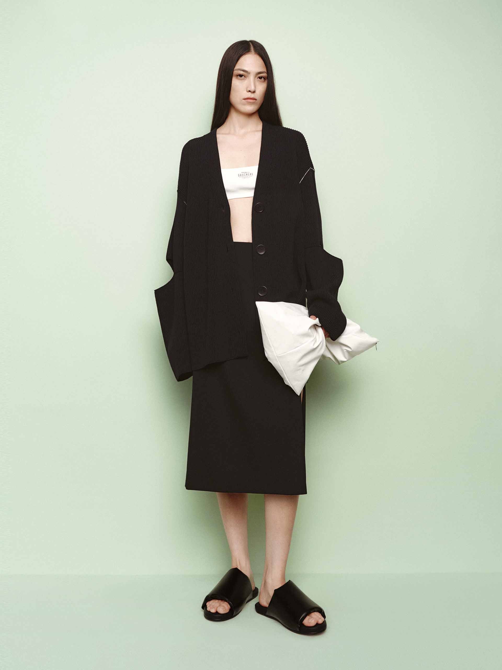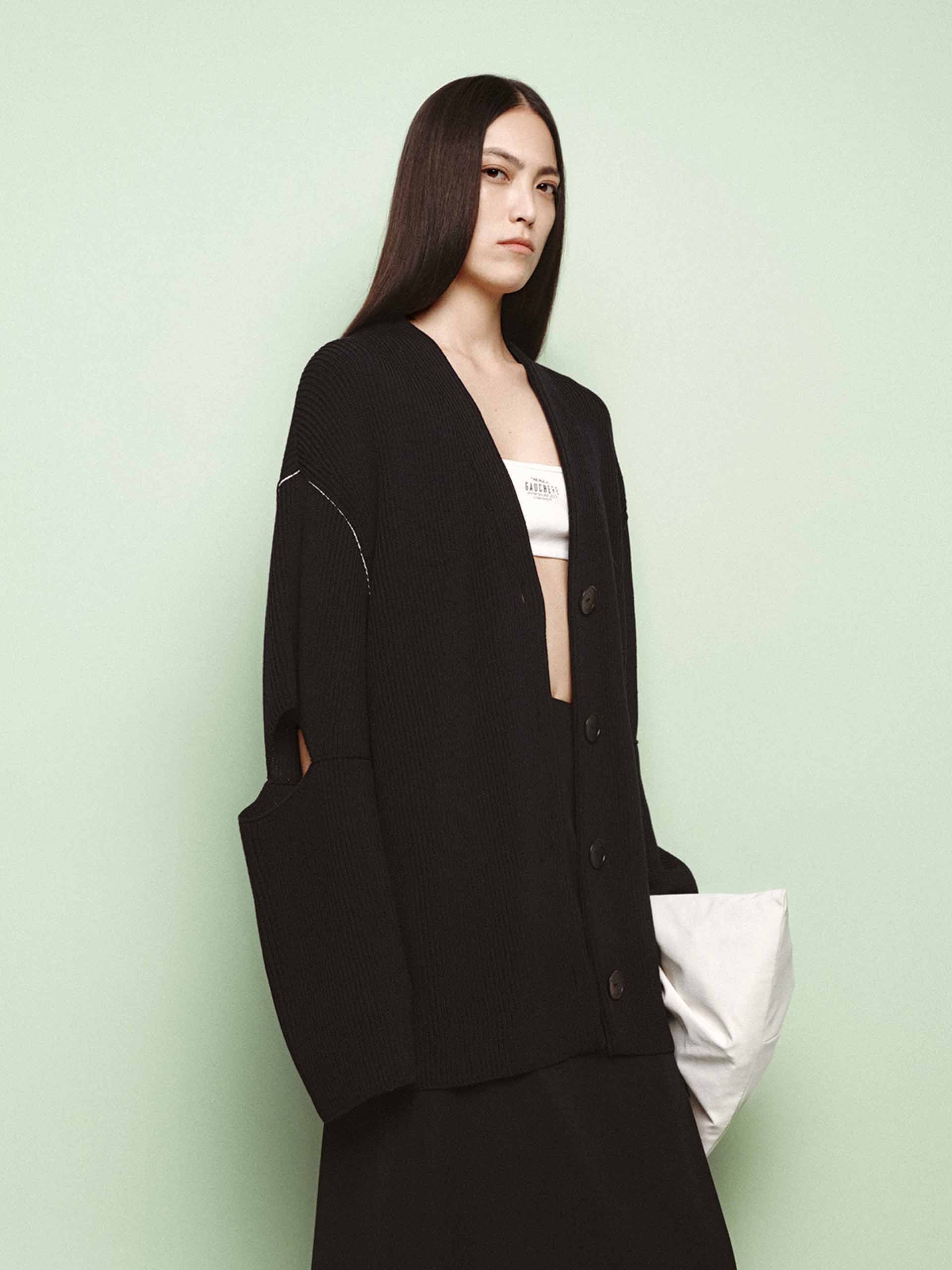 This unique piece from the MO&Co and GAUCHERE collaboration combines modern design with effortless style. It features a V-neckline with a button closure and the dropped shoulders with contrast seamlines add a relaxed yet structured silhouette, while the cut-out detail at the sleeves introduces a bold and contemporary touch.