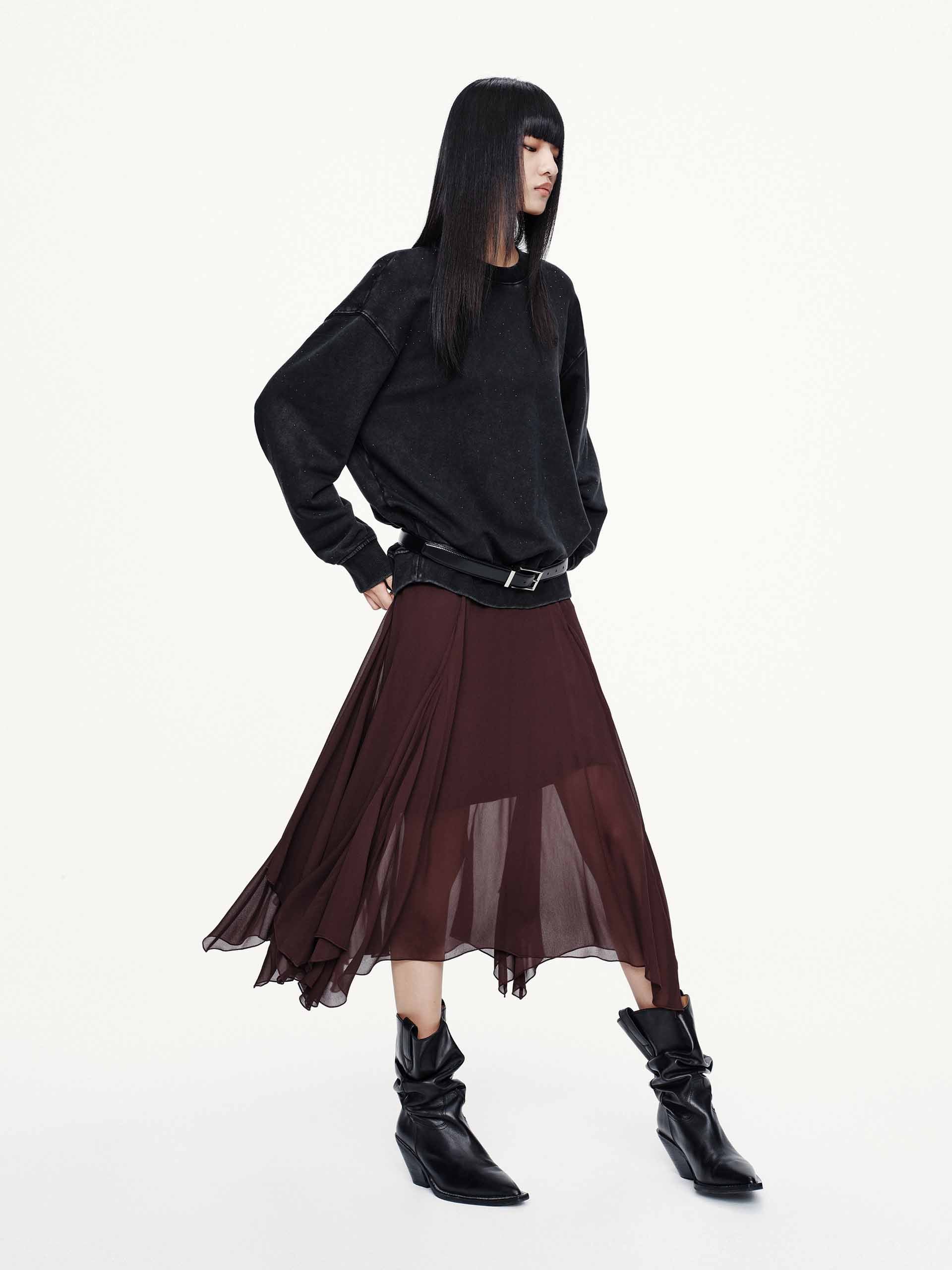 - Asymmetrical and flowy hem design