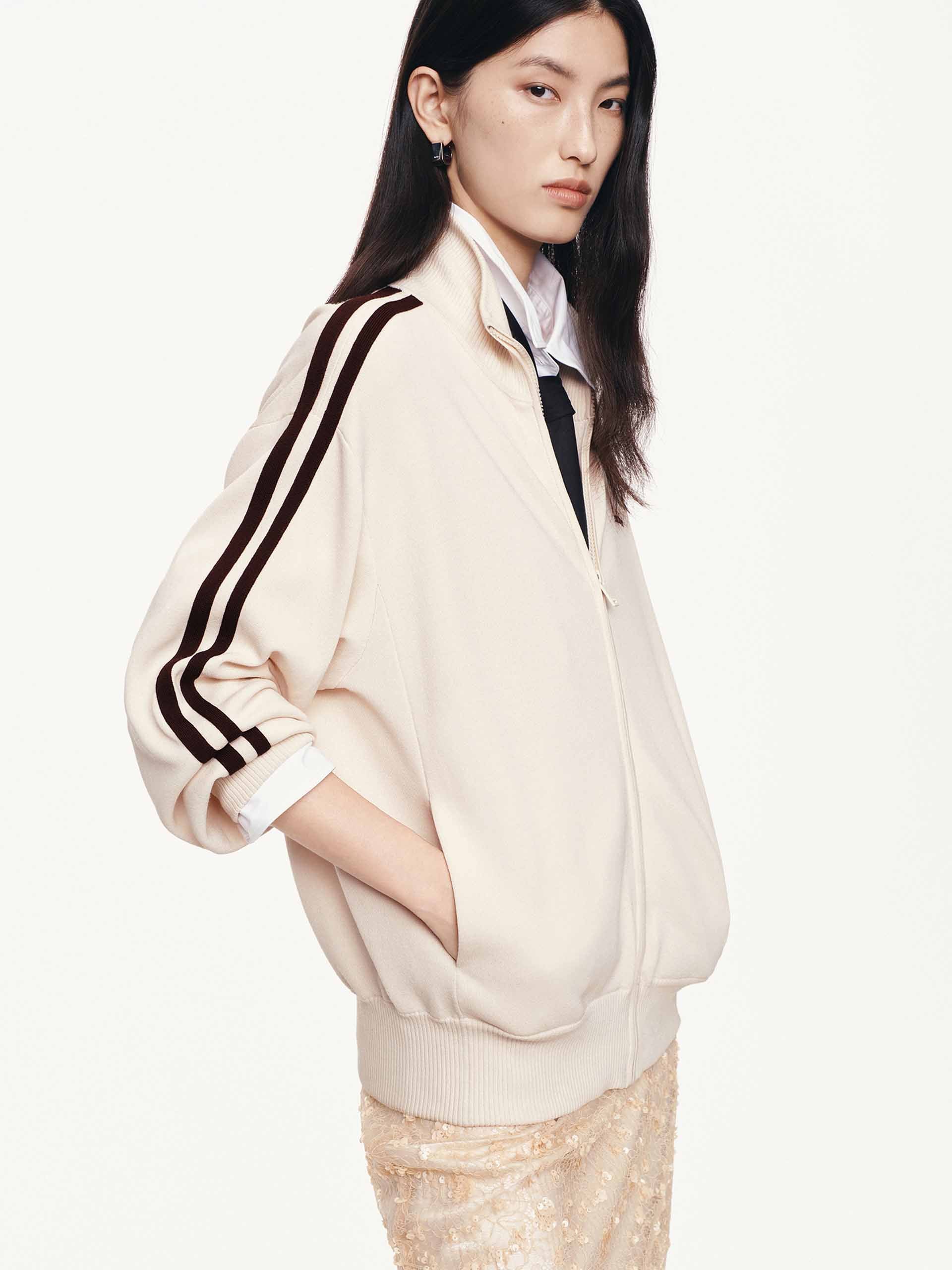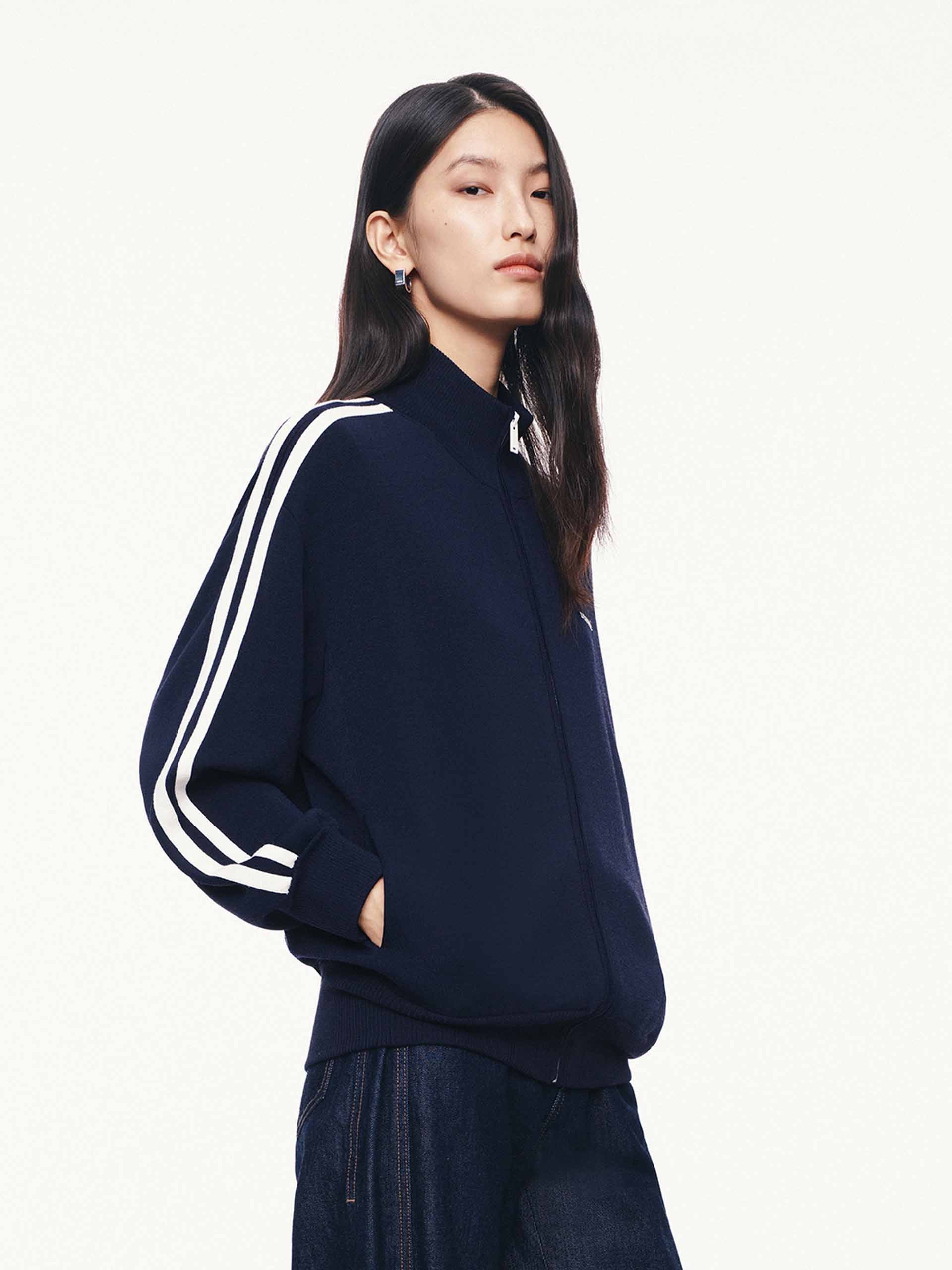 Elevate your casual wardrobe with the cardigan, the perfect fusion of comfort and modern edge. It boasts a contemporary athleisure silhouette that is as suitable for running errands as it is for relaxed social gatherings. The dynamic two-way zip closure allows for customizable styling, while the bold contrast trim detail frames the piece with a sharp, eye-catching pop.