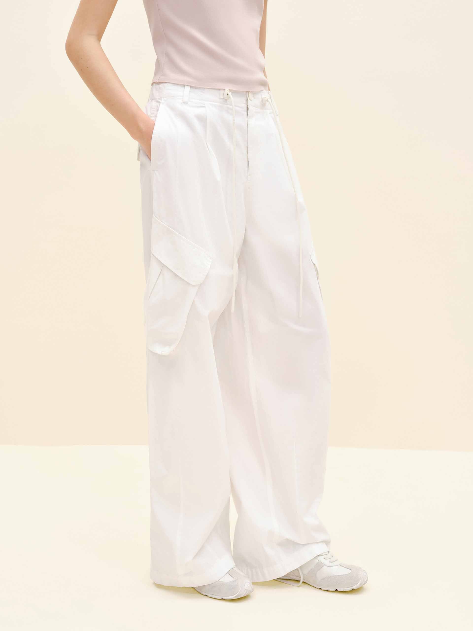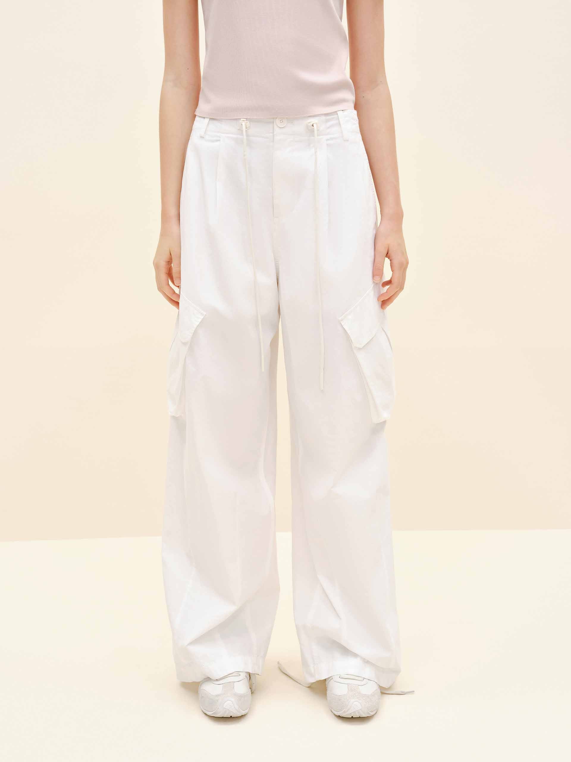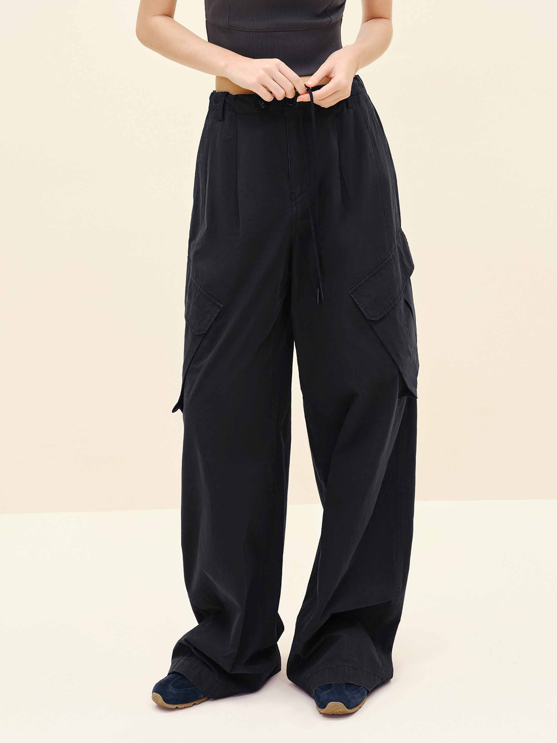 Blending utility with urban style, these trousers are built for both comfort and effortless cool. Functional cargo pockets add rugged appeal while keeping essentials within reach, and the zip and button closure ensures a secure fit. The elasticated waistband with adjustable drawstring detail allows for a customizable, comfortable wear, perfect for all-day ease.