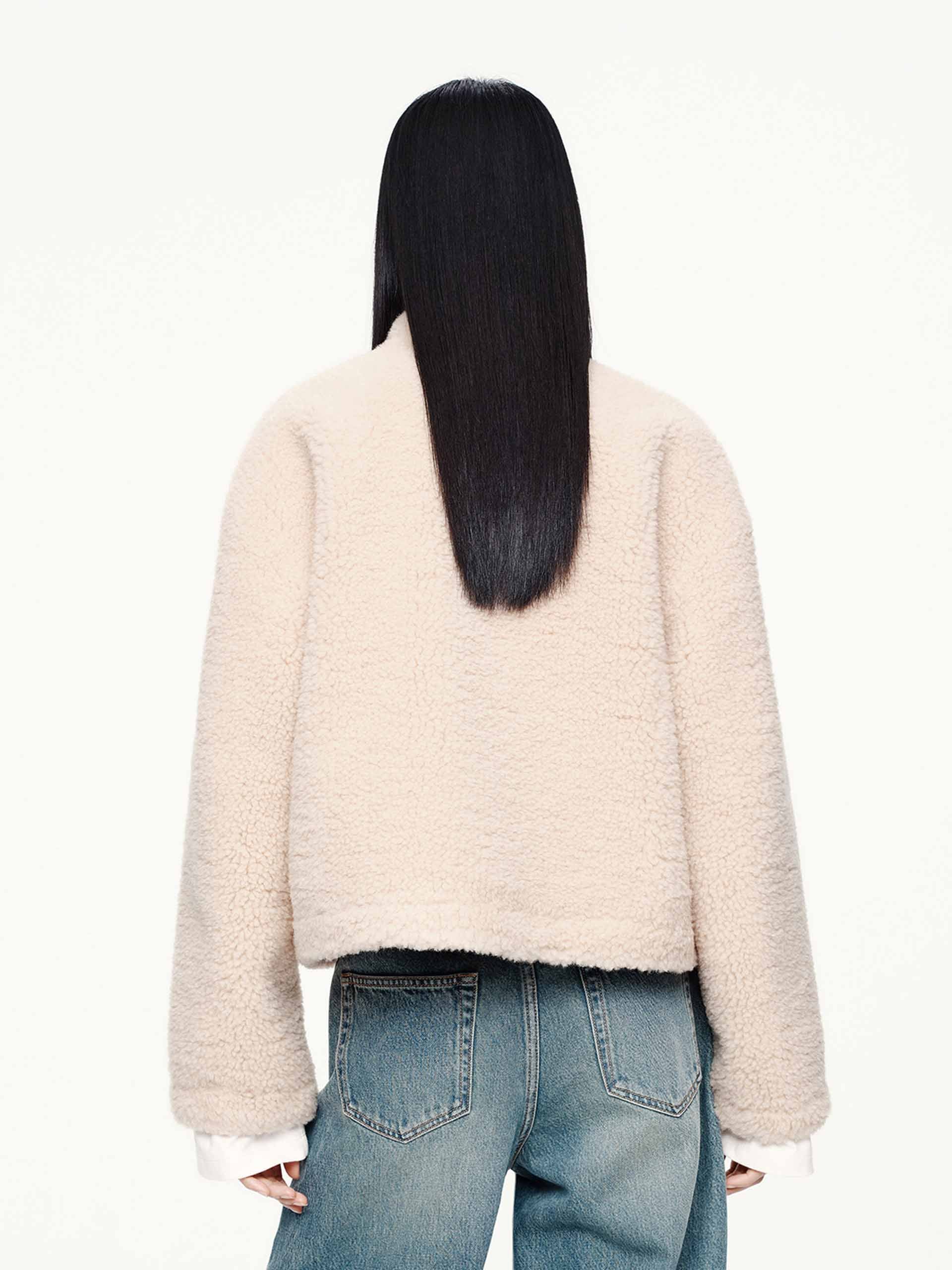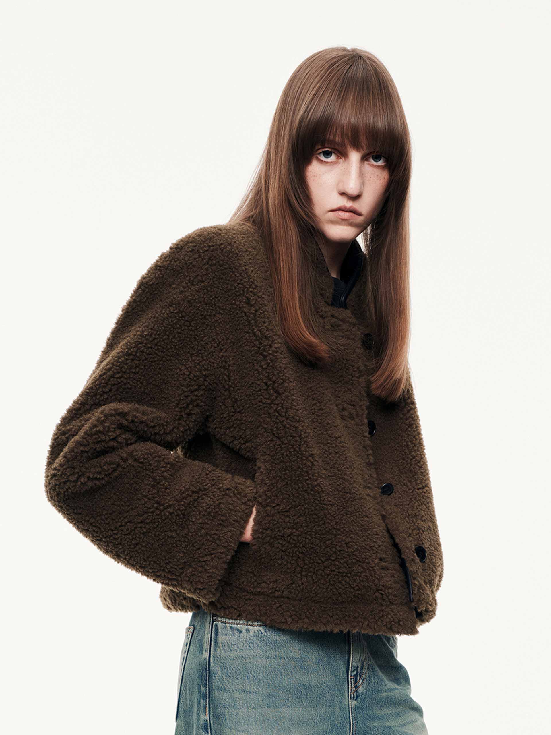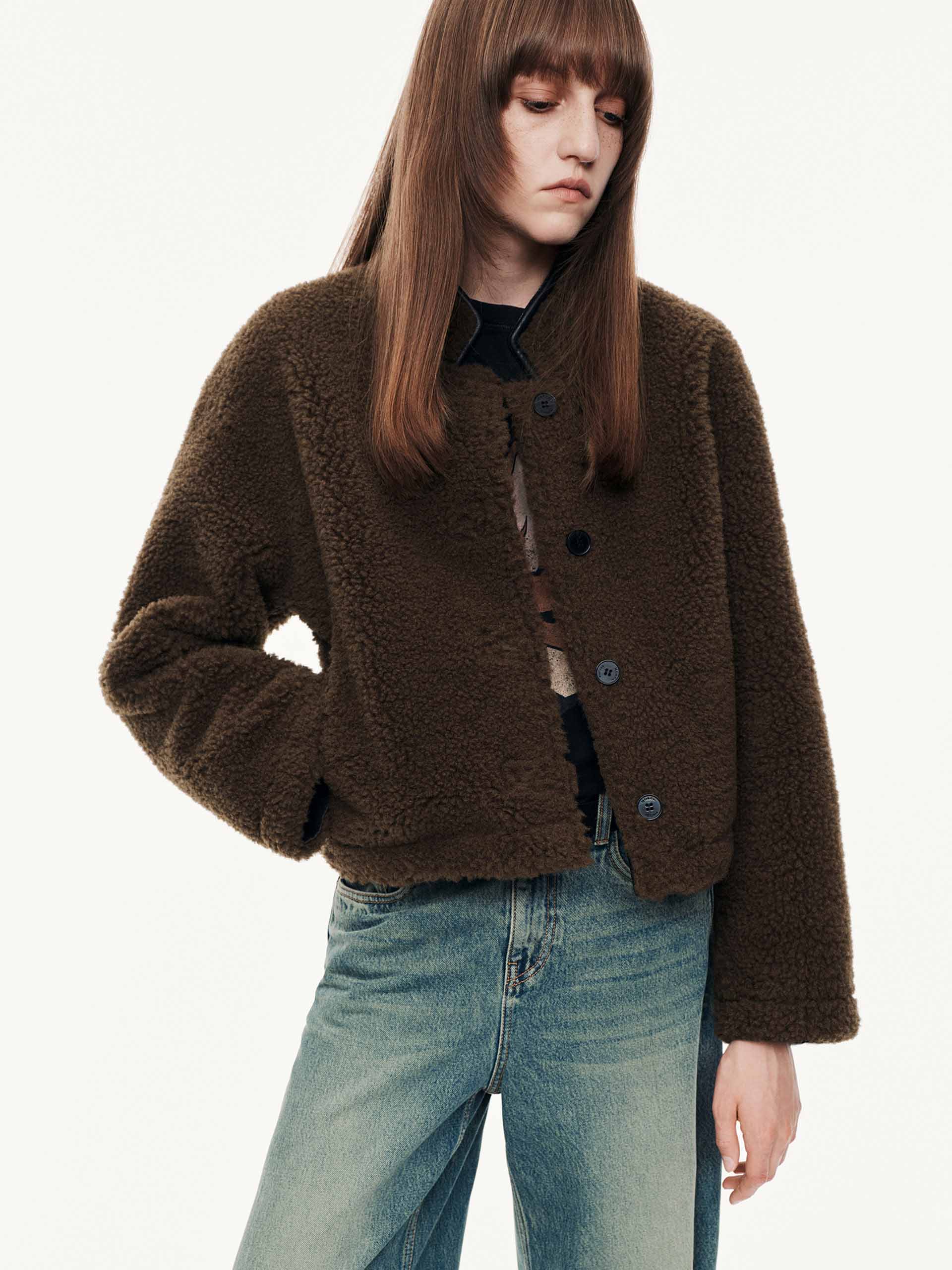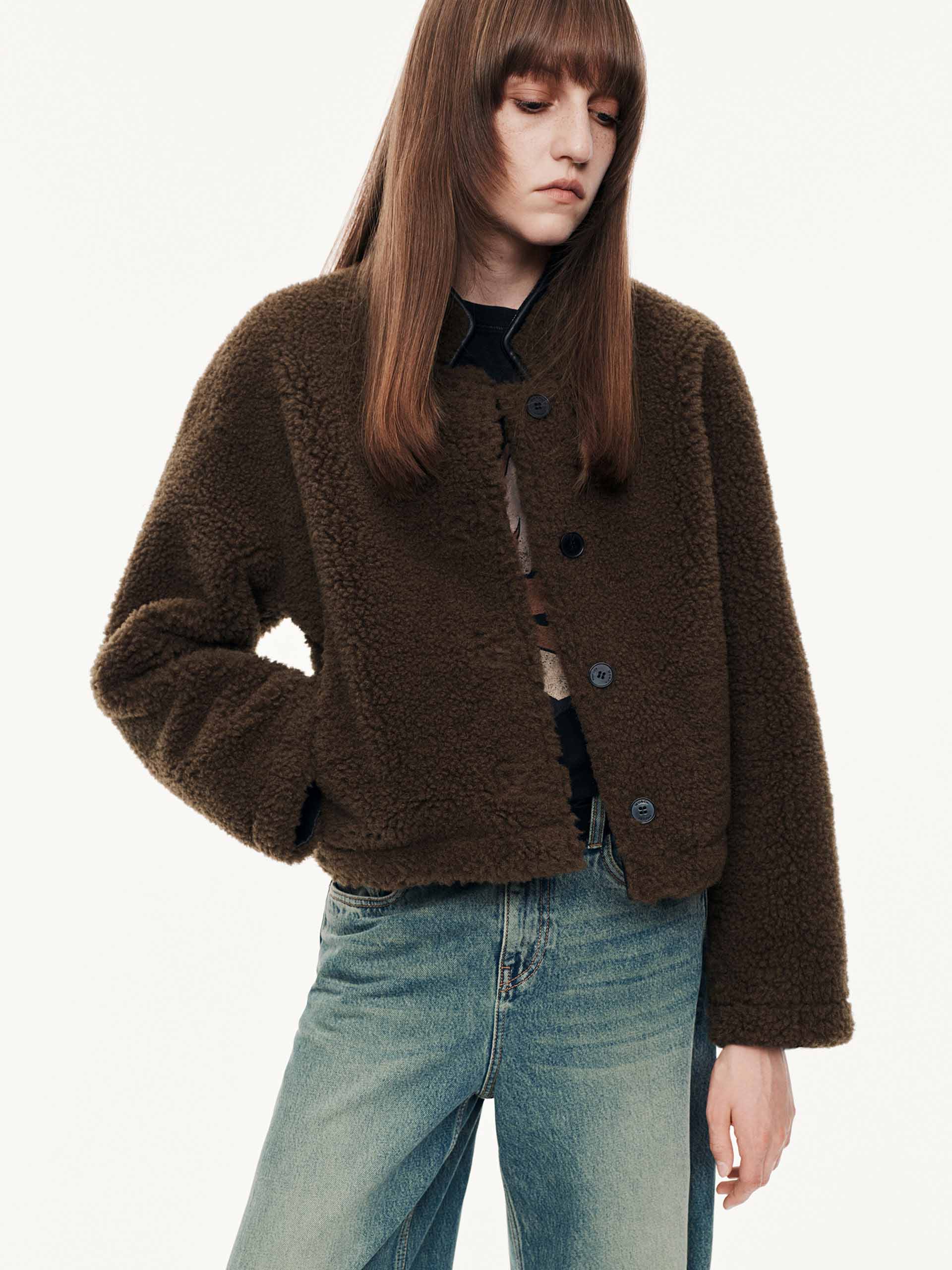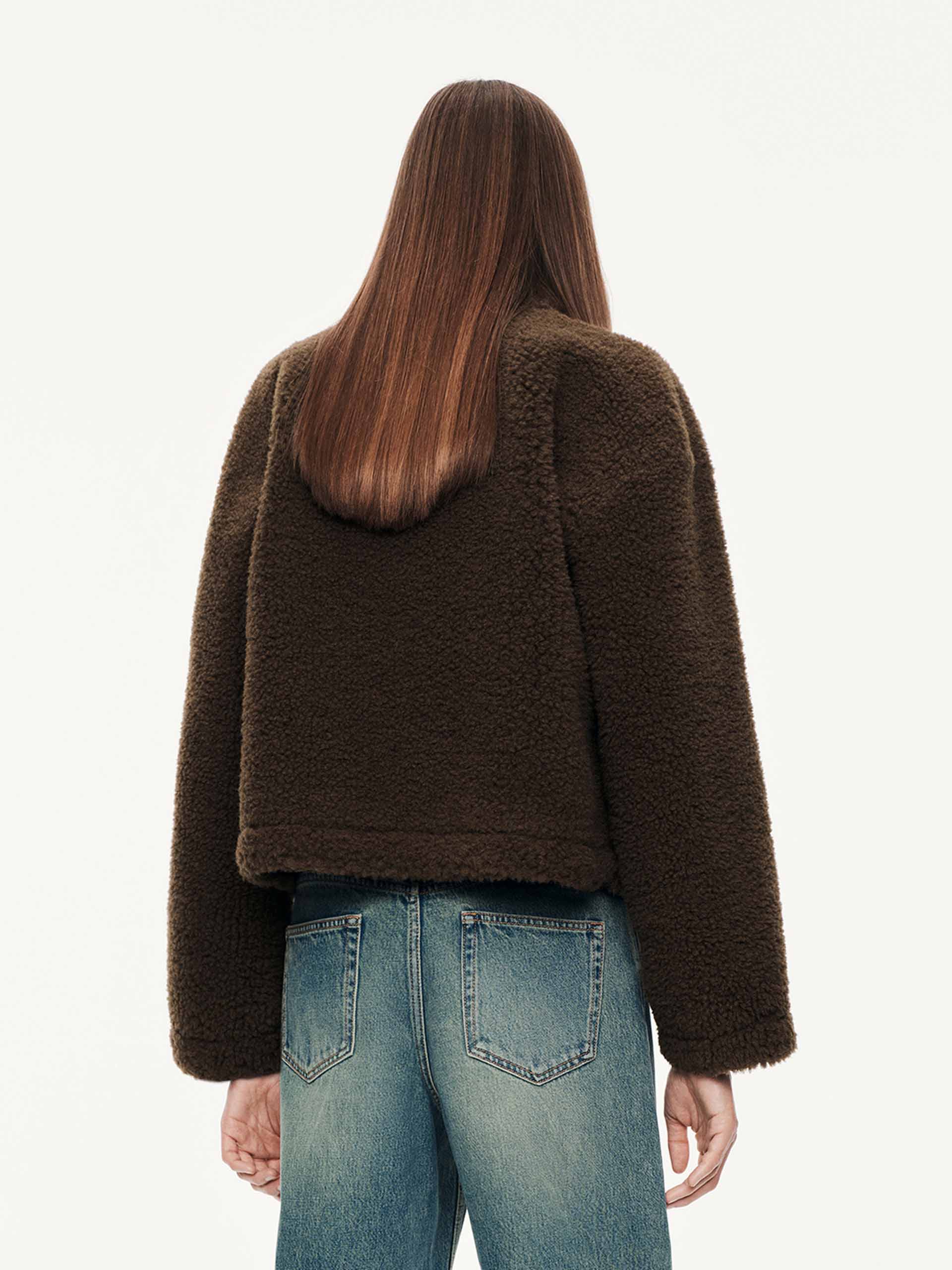 Embrace cozy-chic style with our coat, designed for those who love a blend of modern tailoring and plush comfort. The cropped fit offers a fresh look, while the ultra-soft faux shearling touch provides lightweight warmth and a luxurious feel. A structured stand collar for added sophistication and wind protection. The color may vary slightly in model images due to lighting. For the most accurate color, please refer to the individual product images.