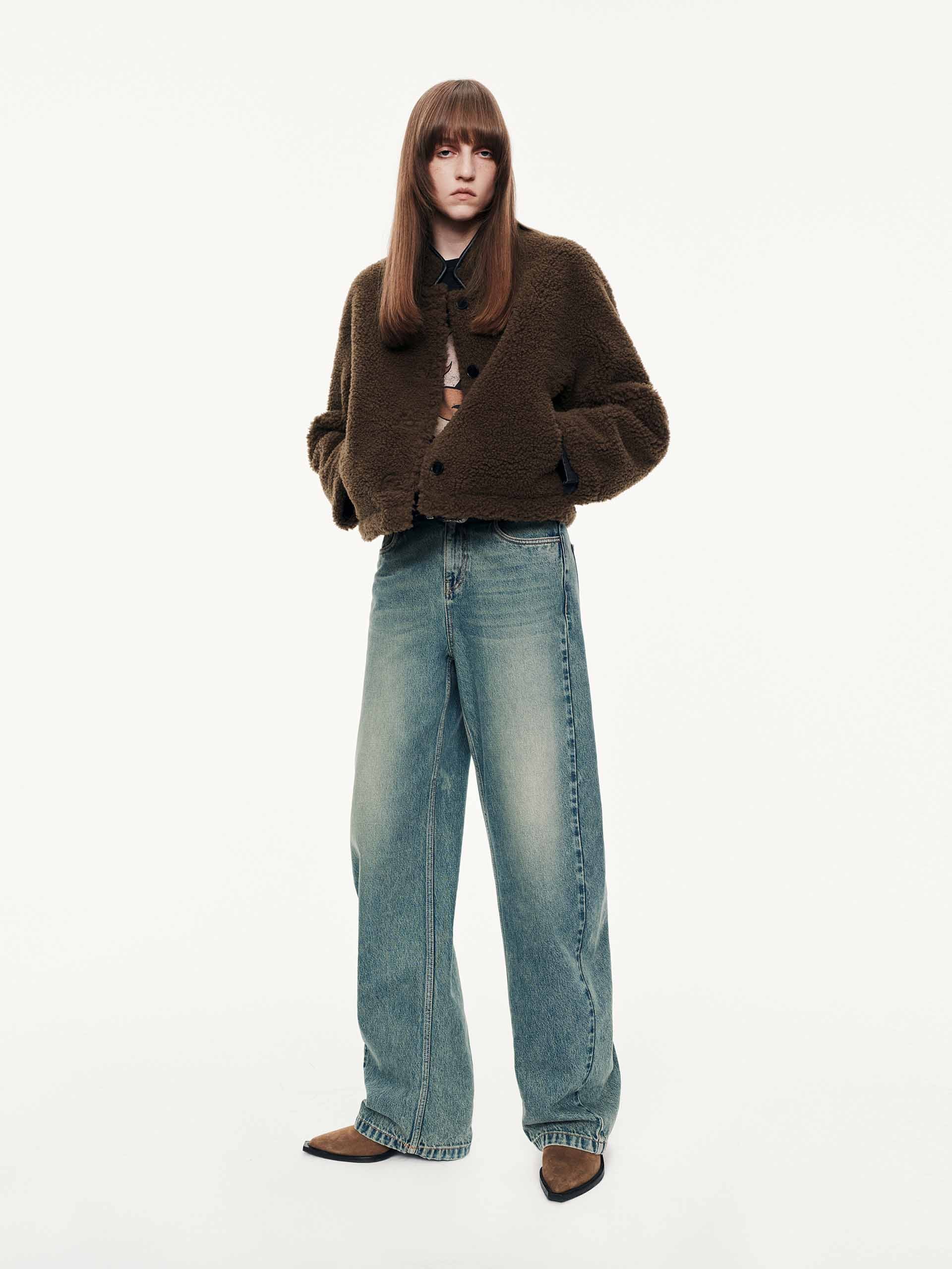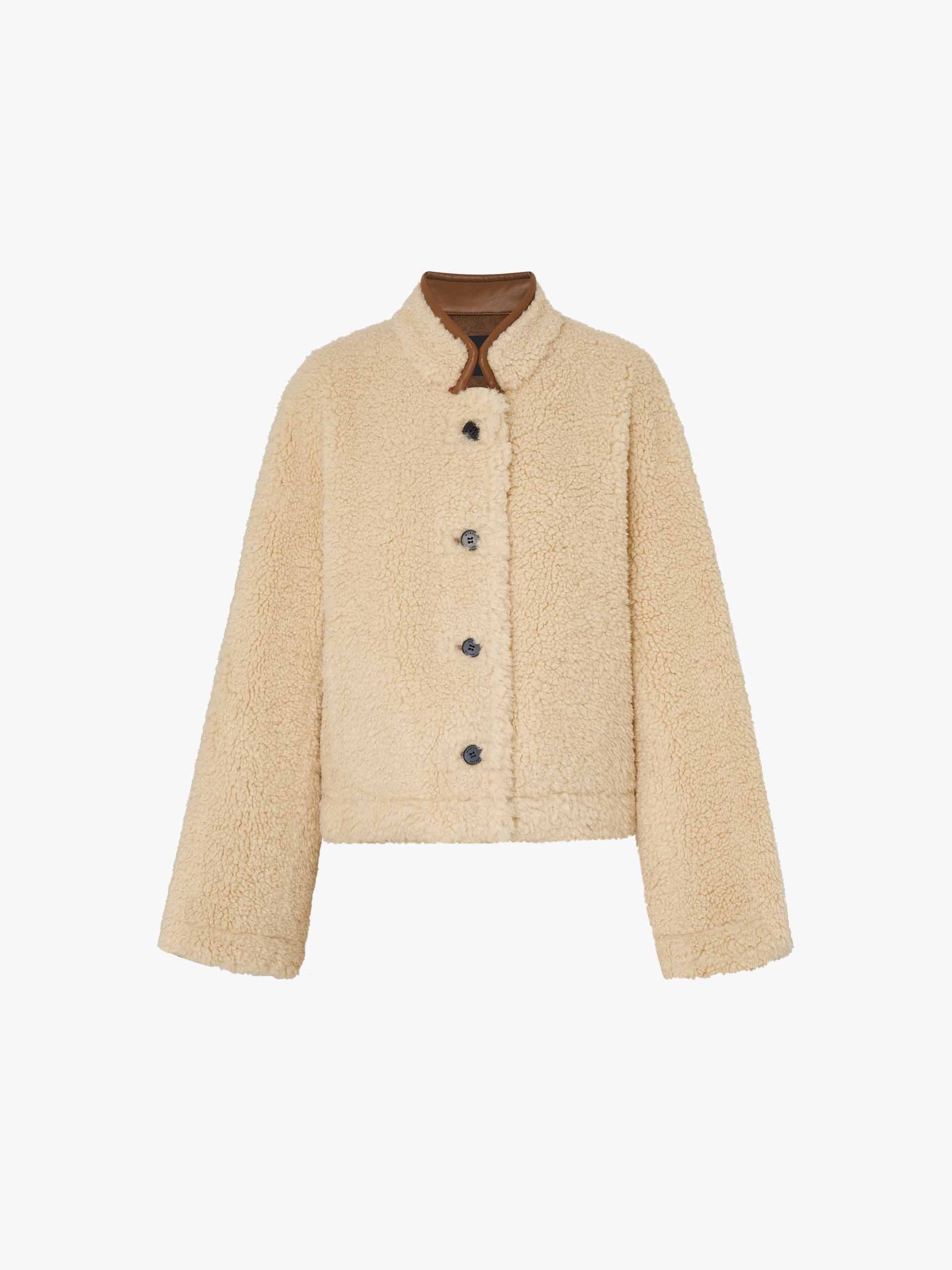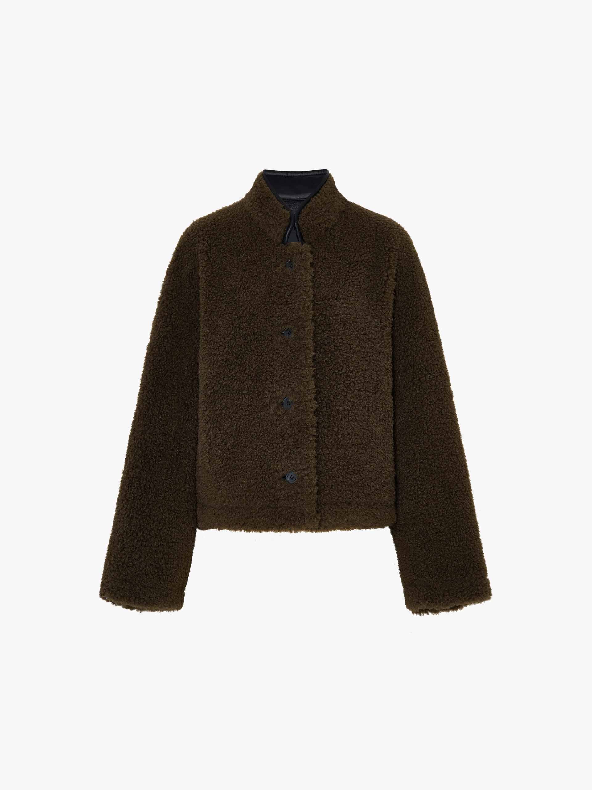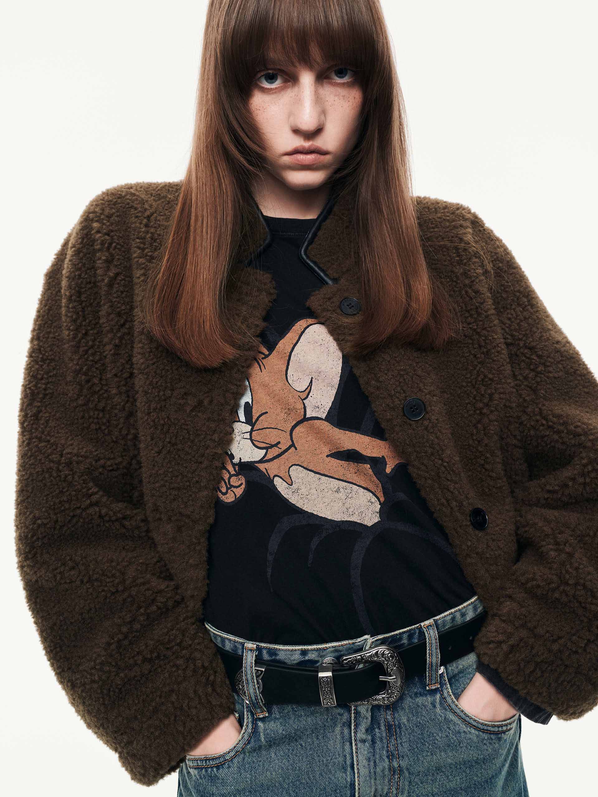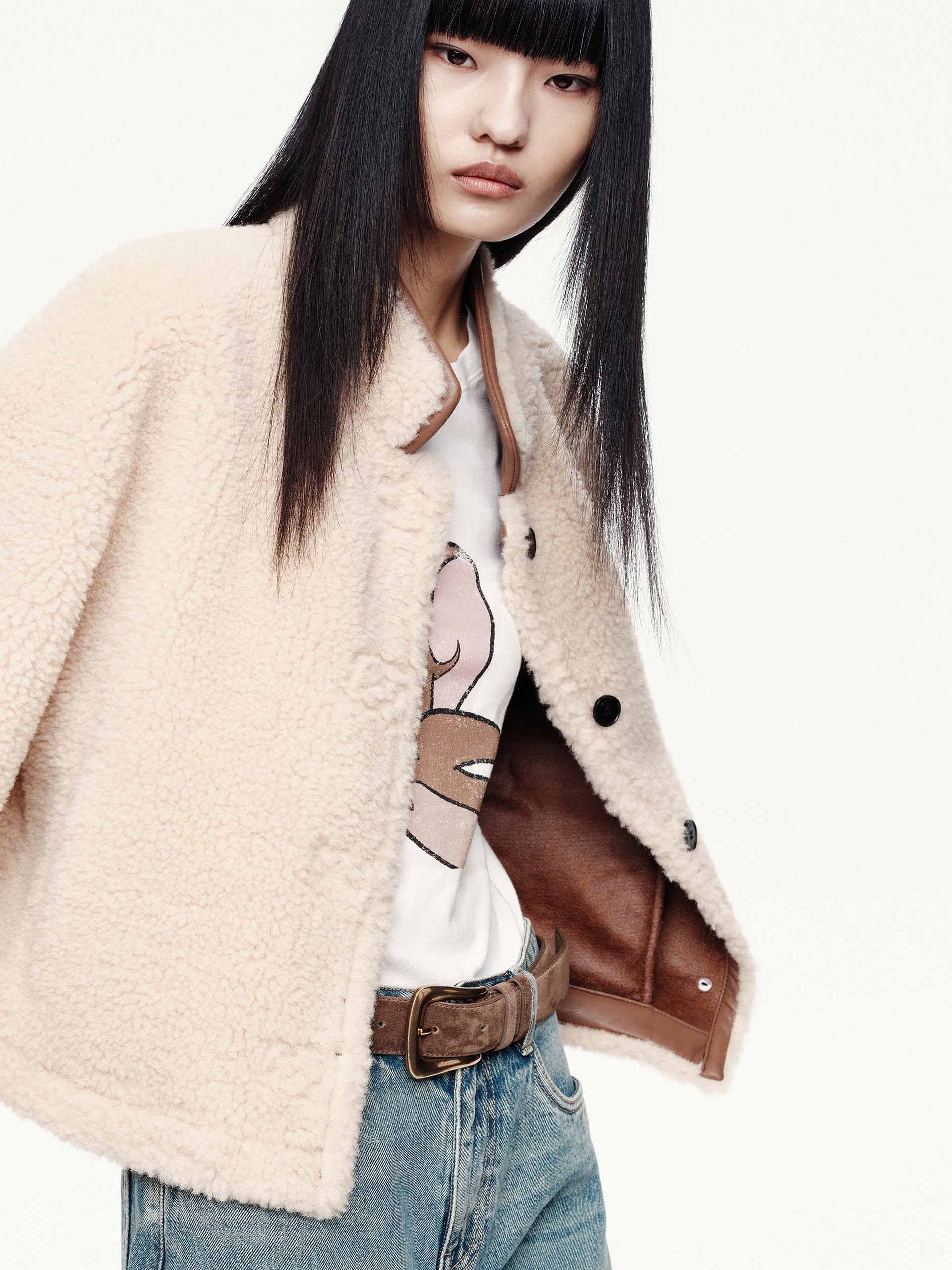 Embrace cozy-chic style with our coat, designed for those who love a blend of modern tailoring and plush comfort. The cropped fit offers a fresh look, while the ultra-soft faux shearling touch provides lightweight warmth and a luxurious feel. A structured stand collar for added sophistication and wind protection. The color may vary slightly in model images due to lighting. For the most accurate color, please refer to the individual product images.