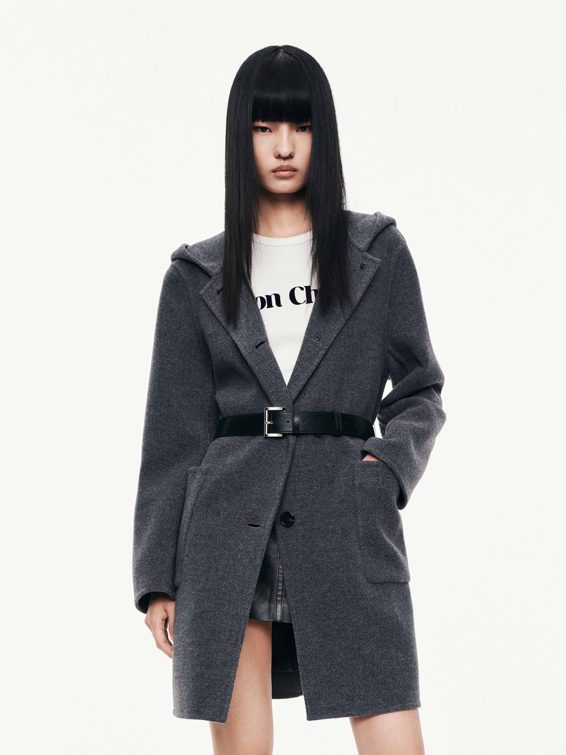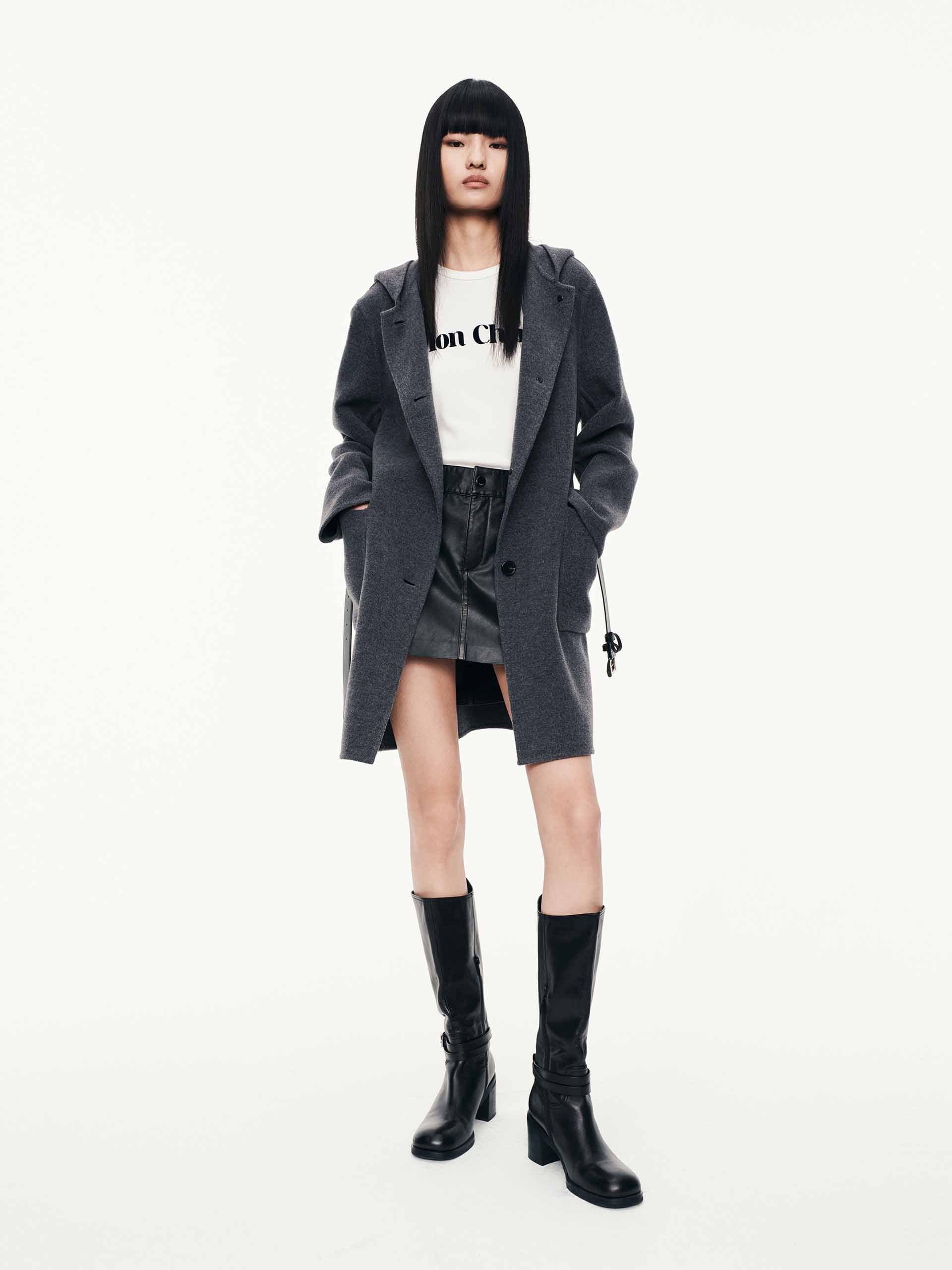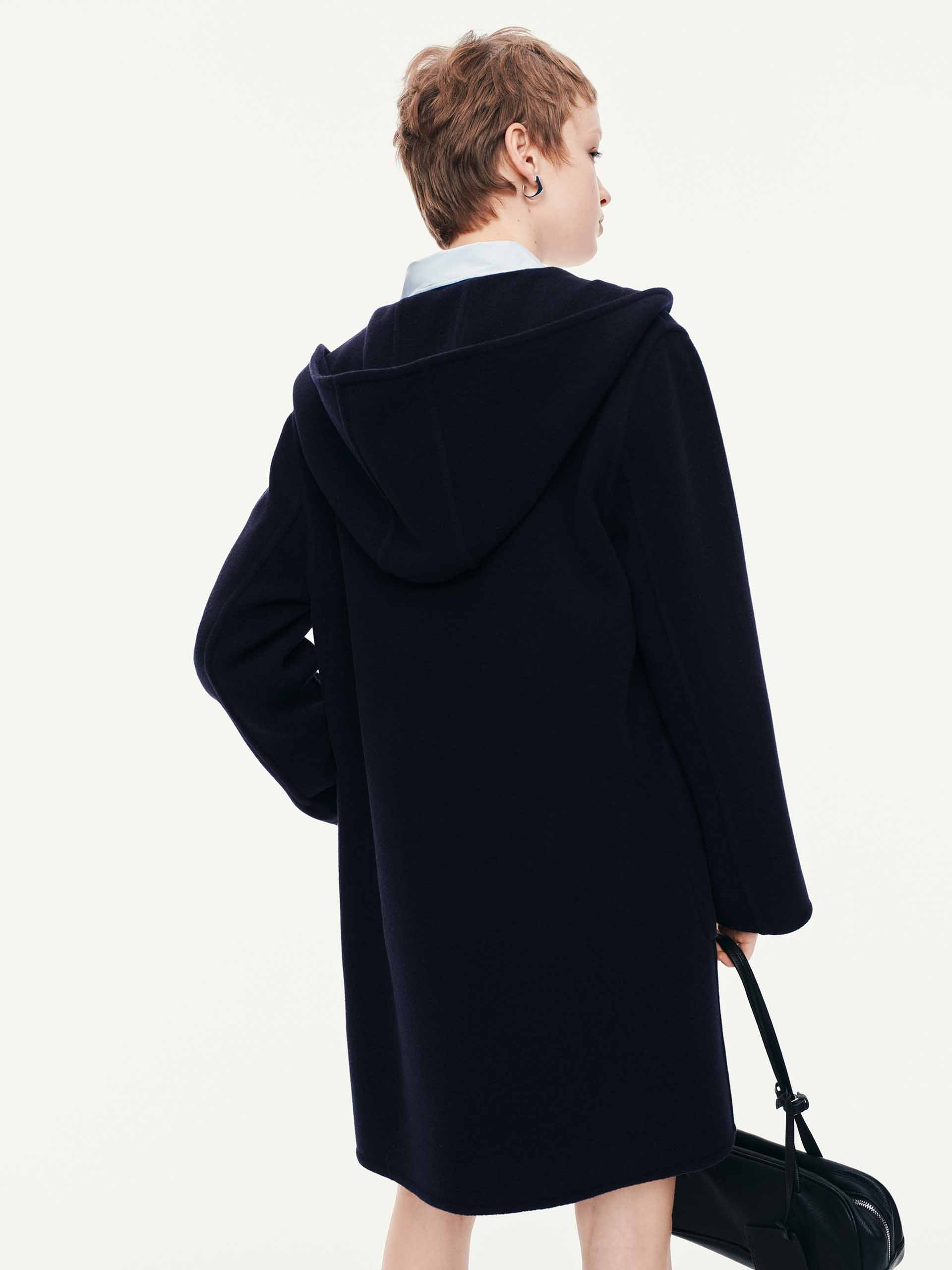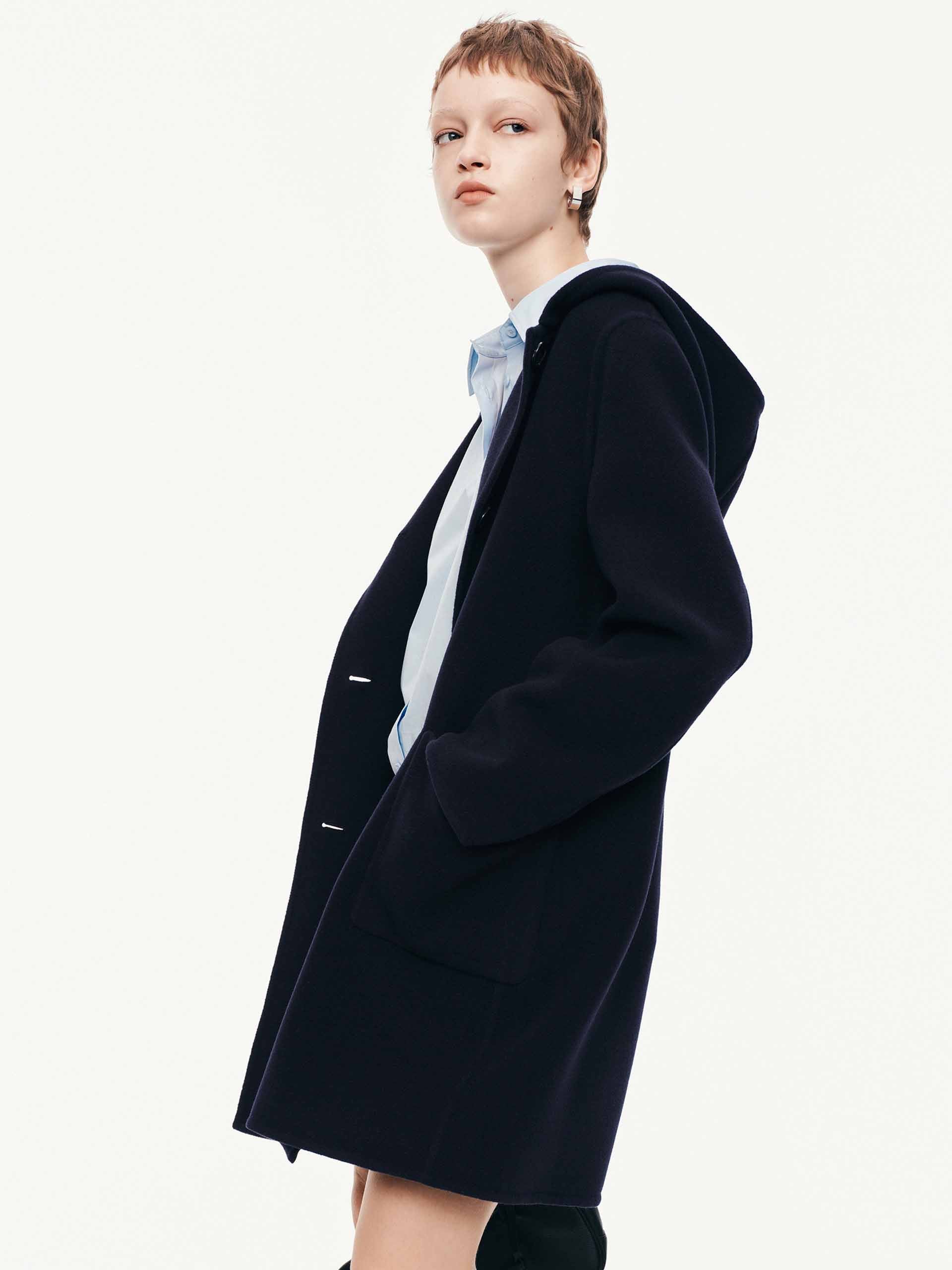 Embrace timeless elegance and modern functionality with the coat, expertly tailored for those who appreciate refined outerwear. It features a sophisticated button closure and practical patch pockets, blending classic tailoring with everyday convenience. The attached hood adds a touch of relaxed utility, while the included belt allows you to cinch the waist for a defined, elegant shape.