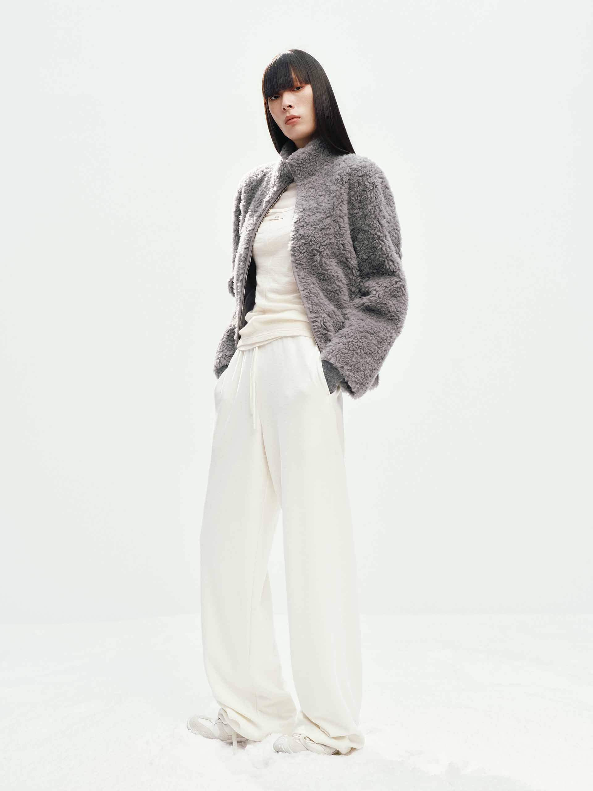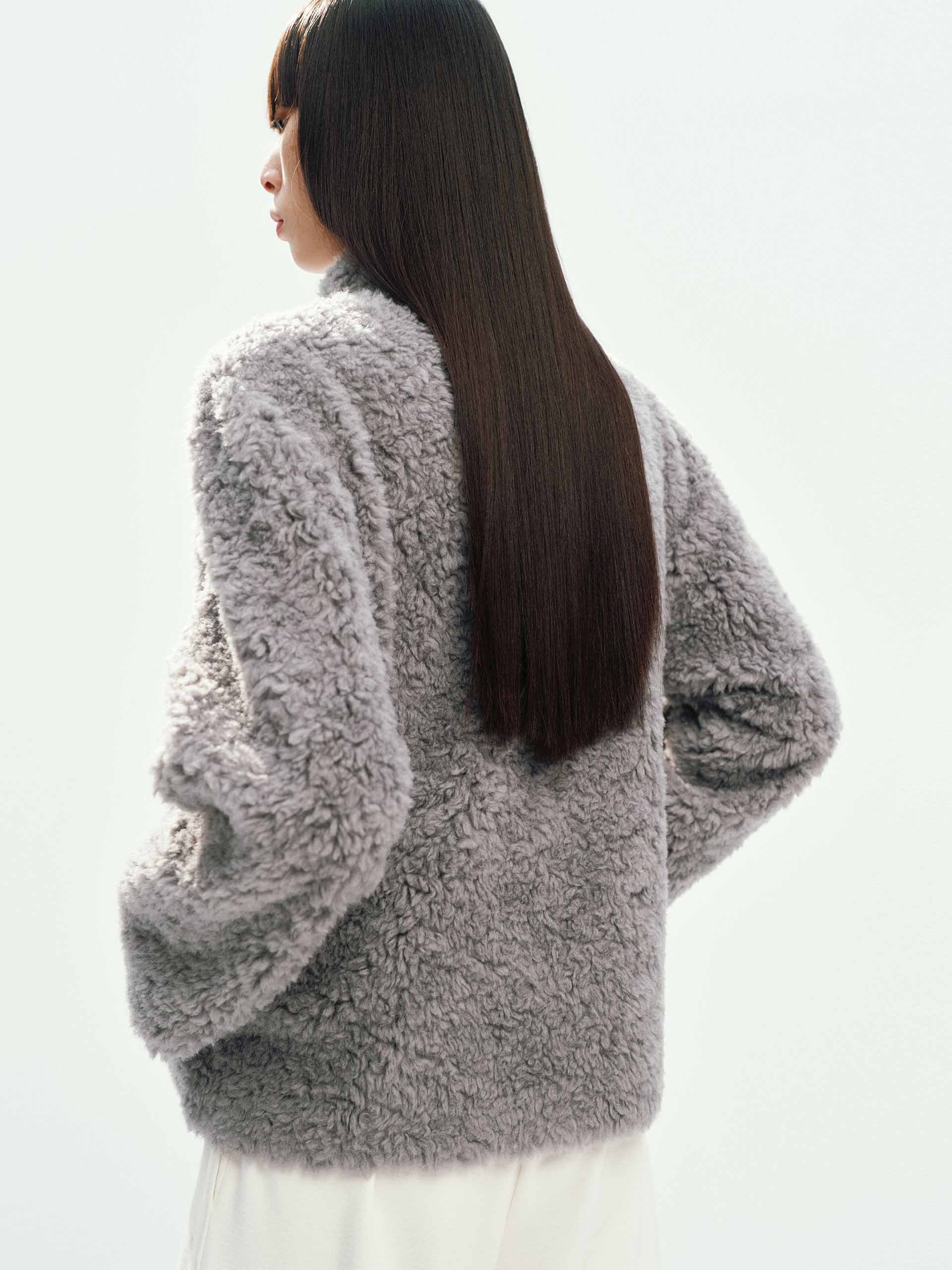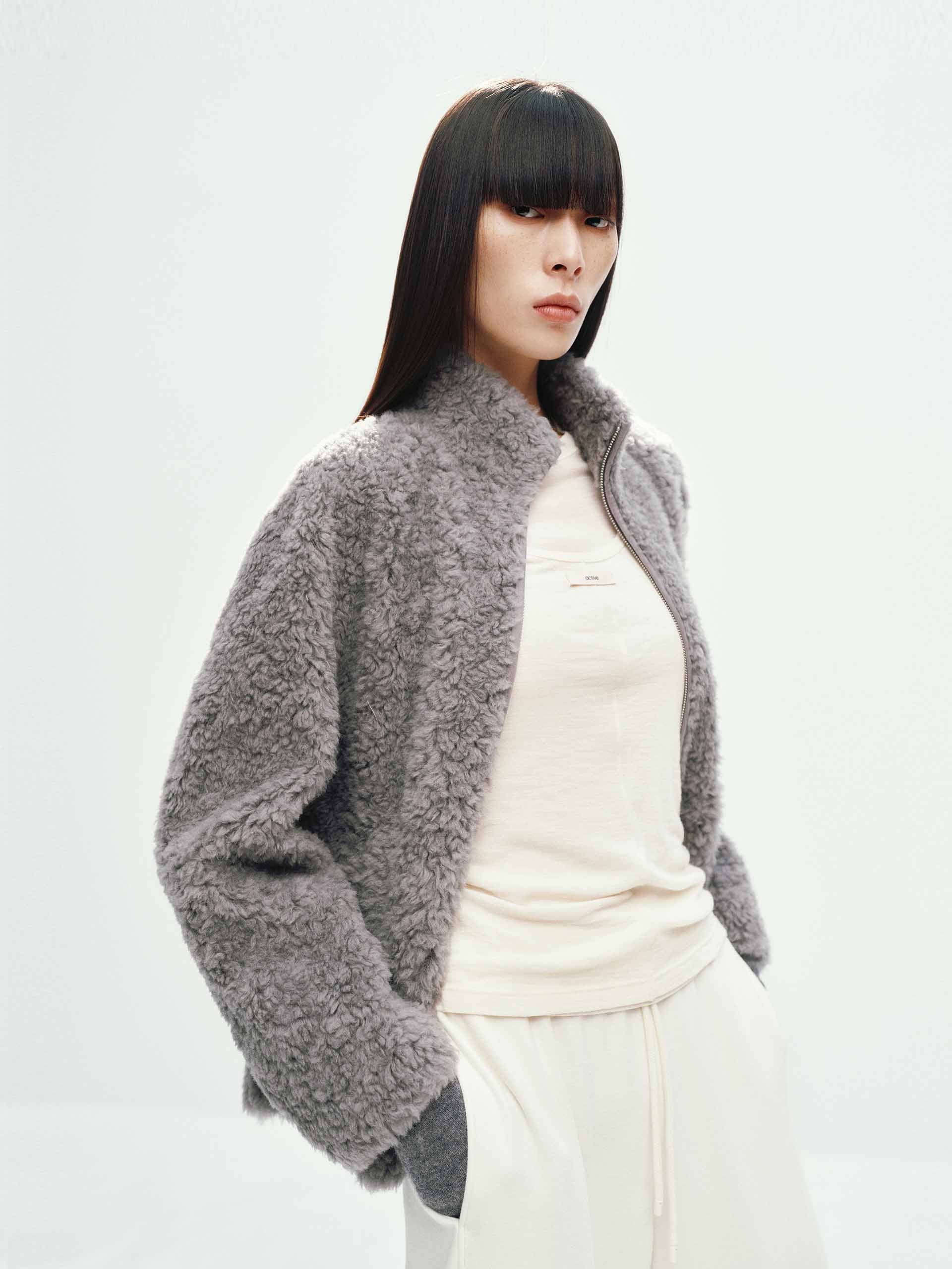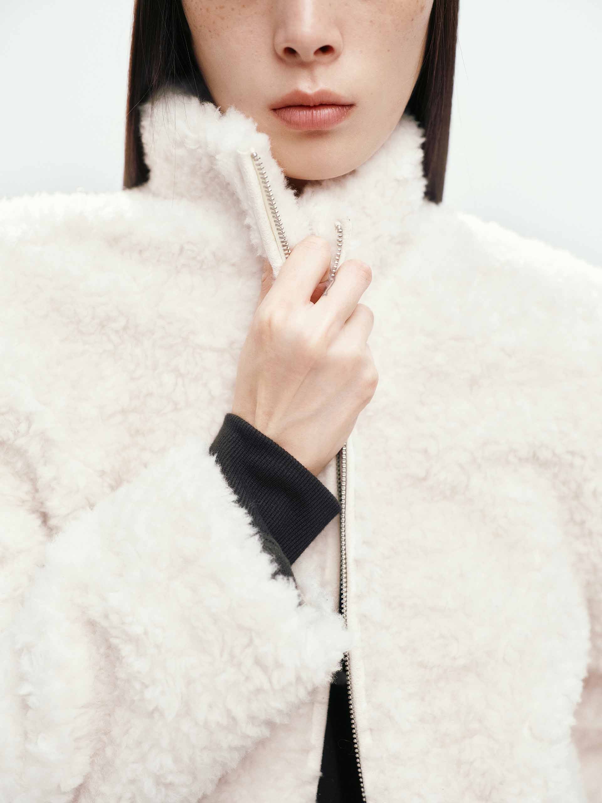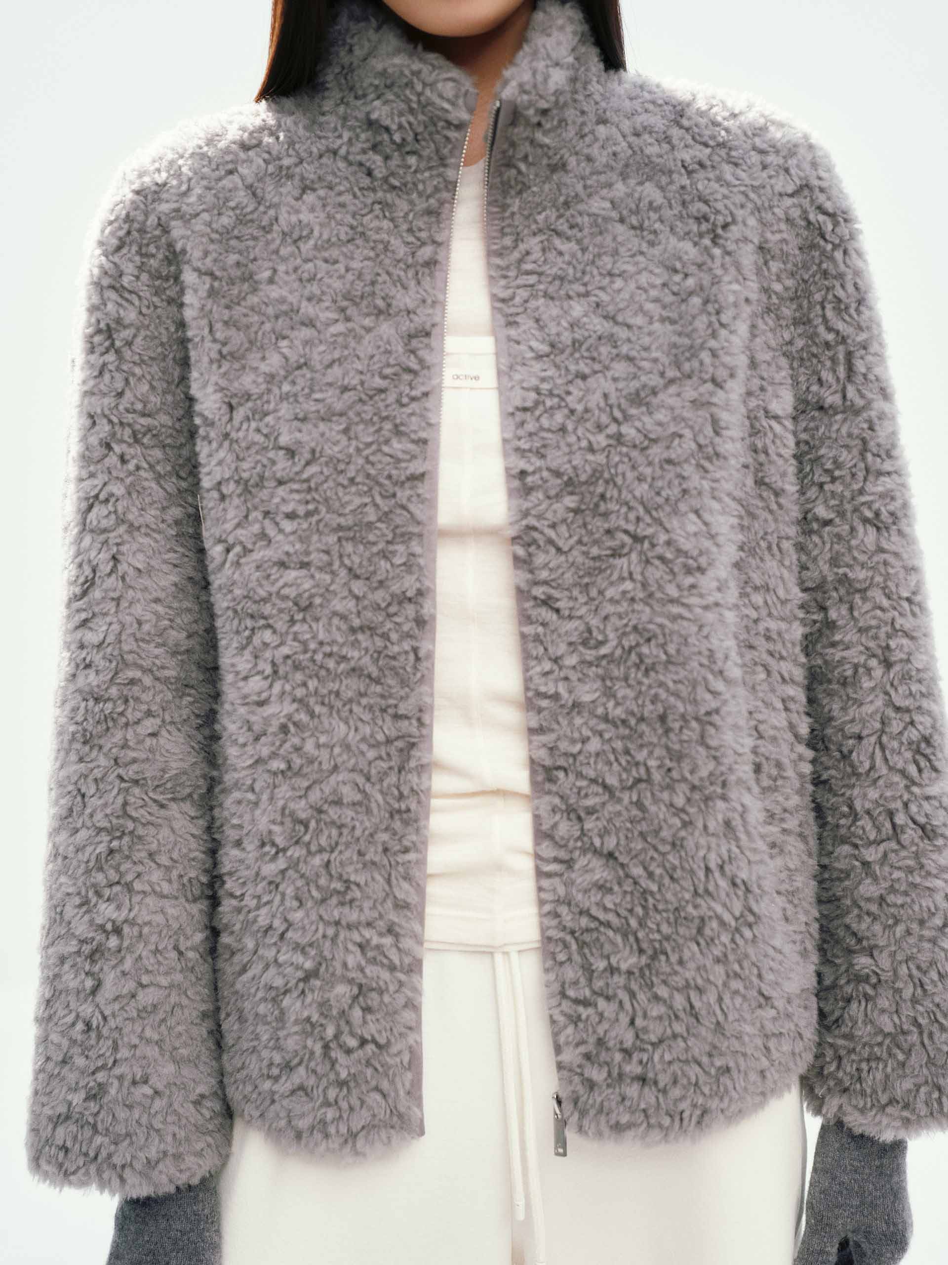 Faux Shearling Zipper Coat
