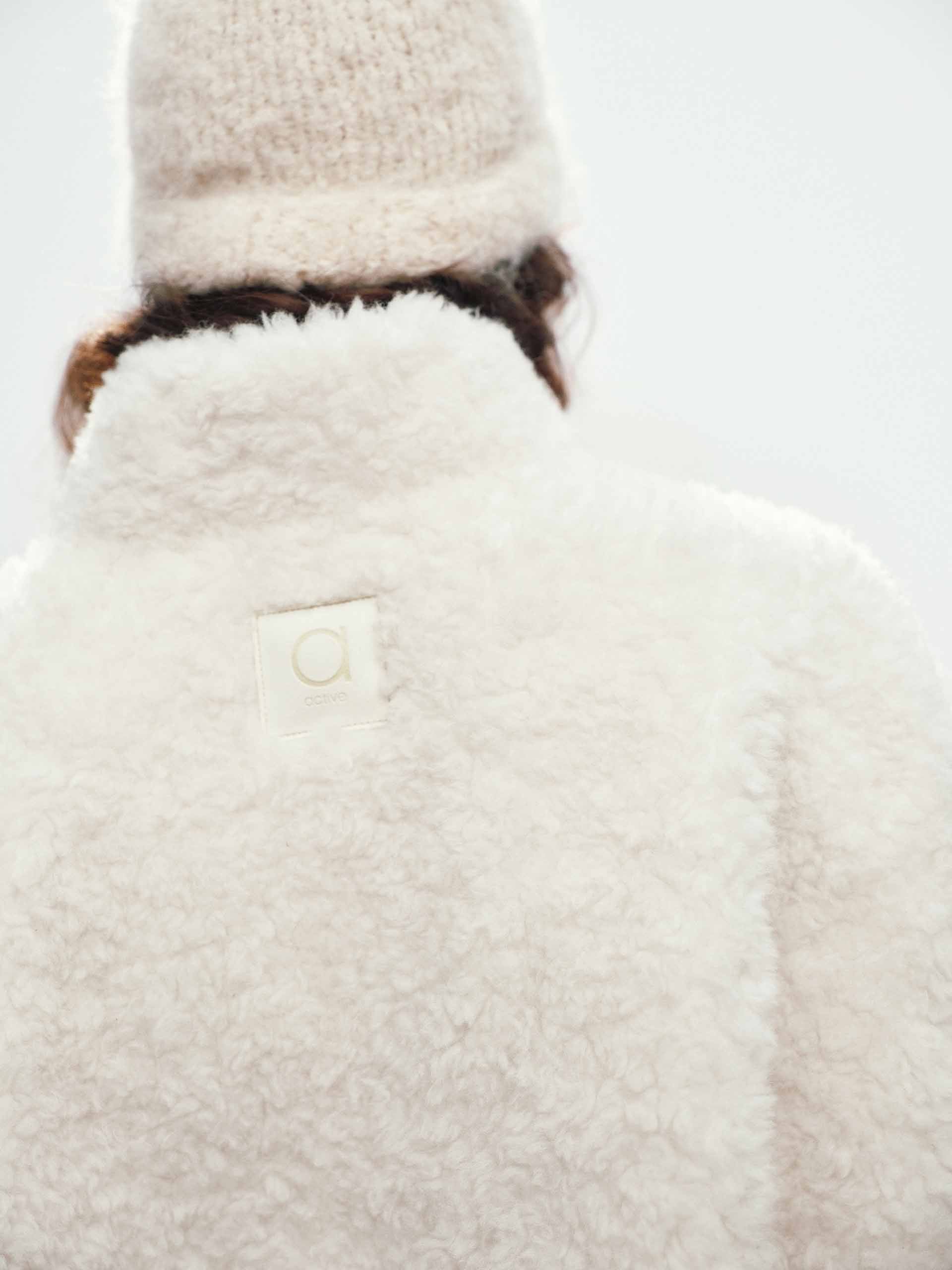 - Logo patch at the back, faux shearling touch