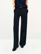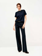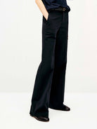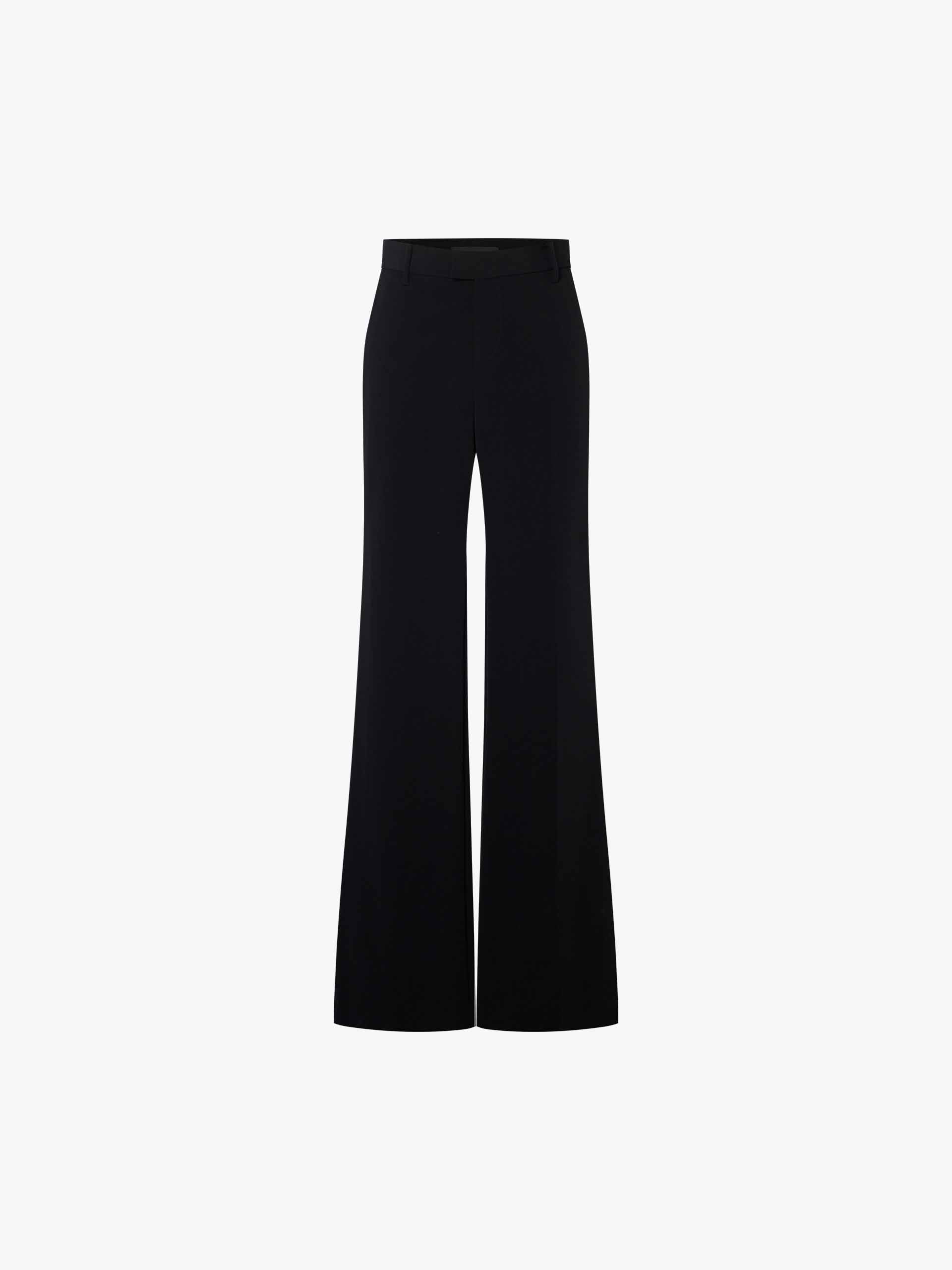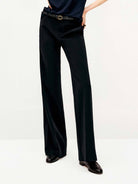 These pants are crafted from a luxe, fluid fabric with a subtle sheen and weightless drape. Slightly flared through the leg to elongate the silhouette, with discreet side pockets and a concealed hook-and-zip closure for a seamless finish. Polished, slimming, and effortlessly refined. Please note that the belt is not included.