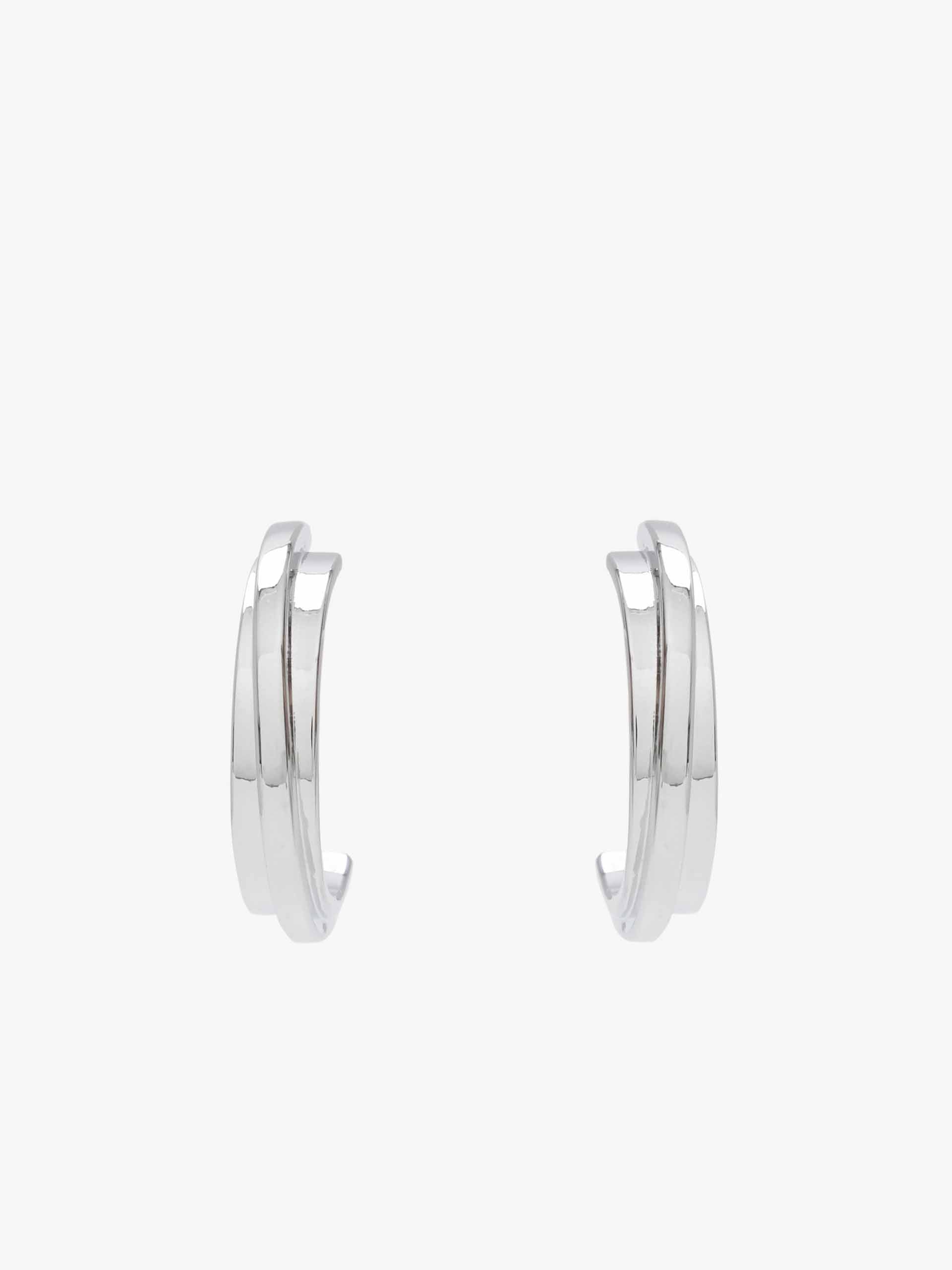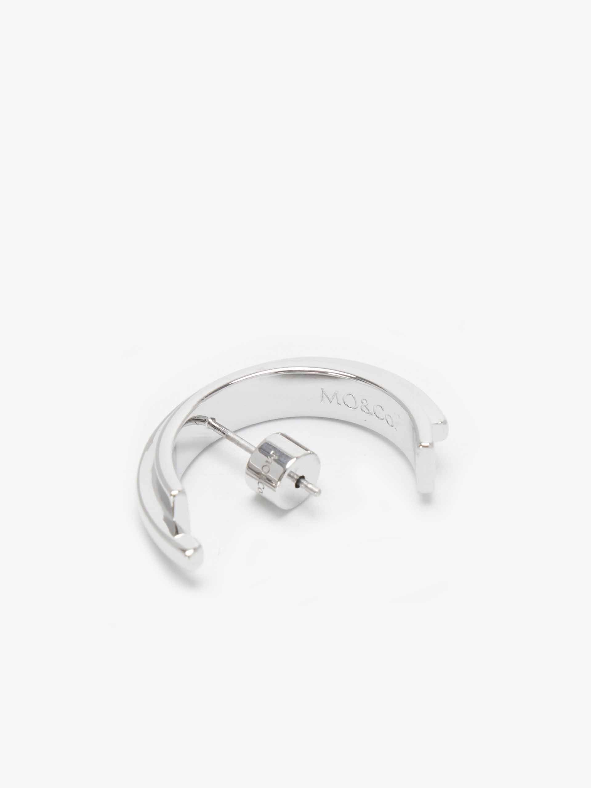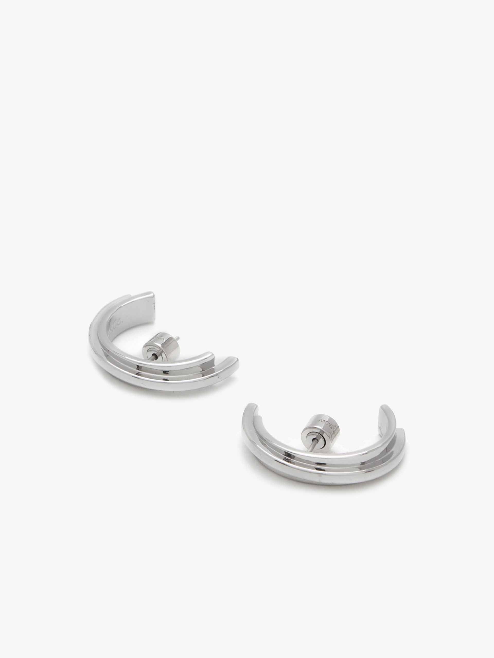 Enhance your wardrobe with a touch of sophistication through these exquisite earrings. Fashioned from copper and silver, these earrings boast a distinctive half-circle design, making them a flawless match for any outfit and creating an effortlessly stylish appearance. On the inner part of the hoop, a subtle logo pattern is intricately etched.